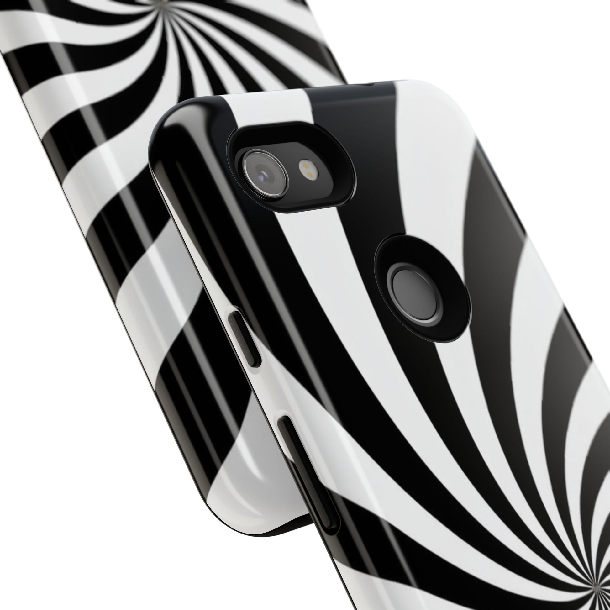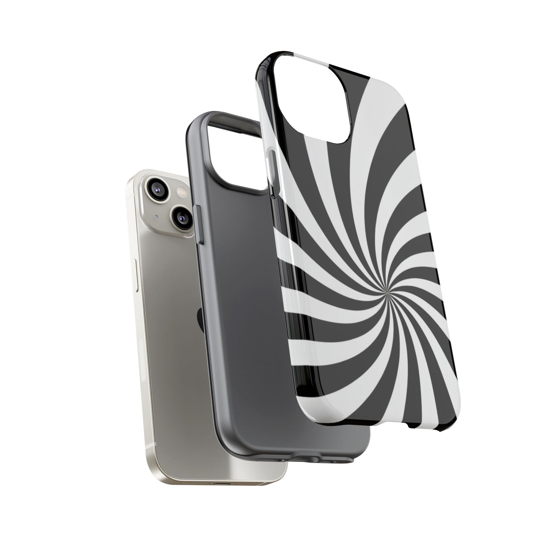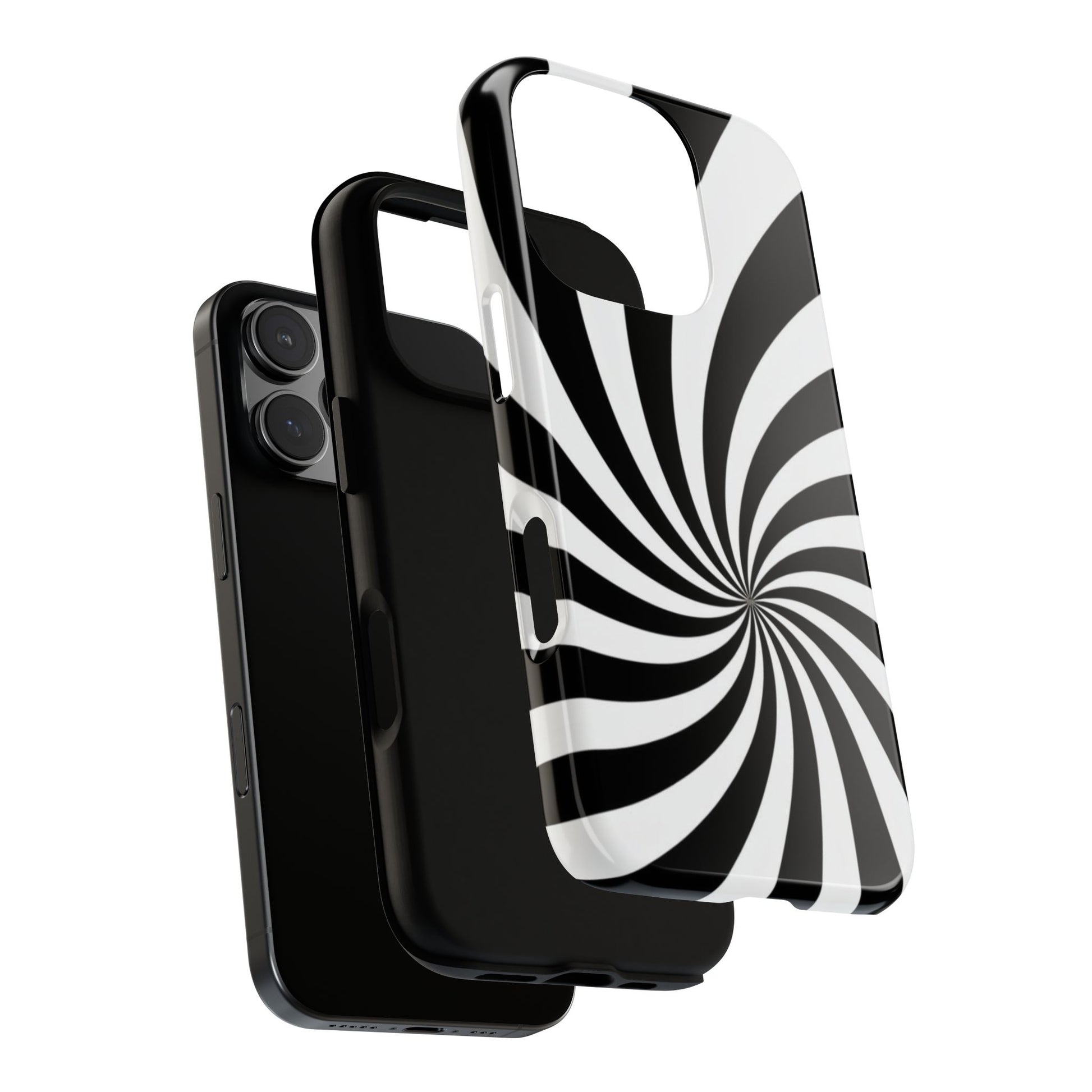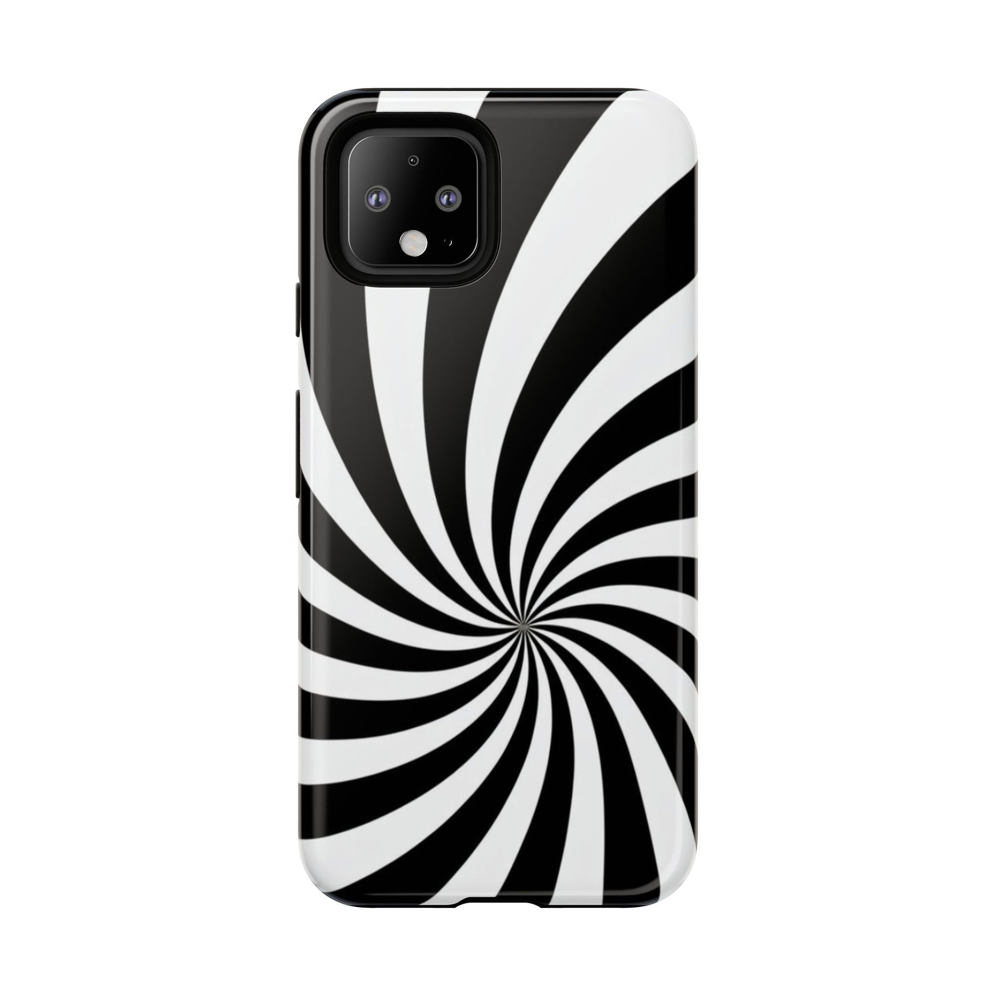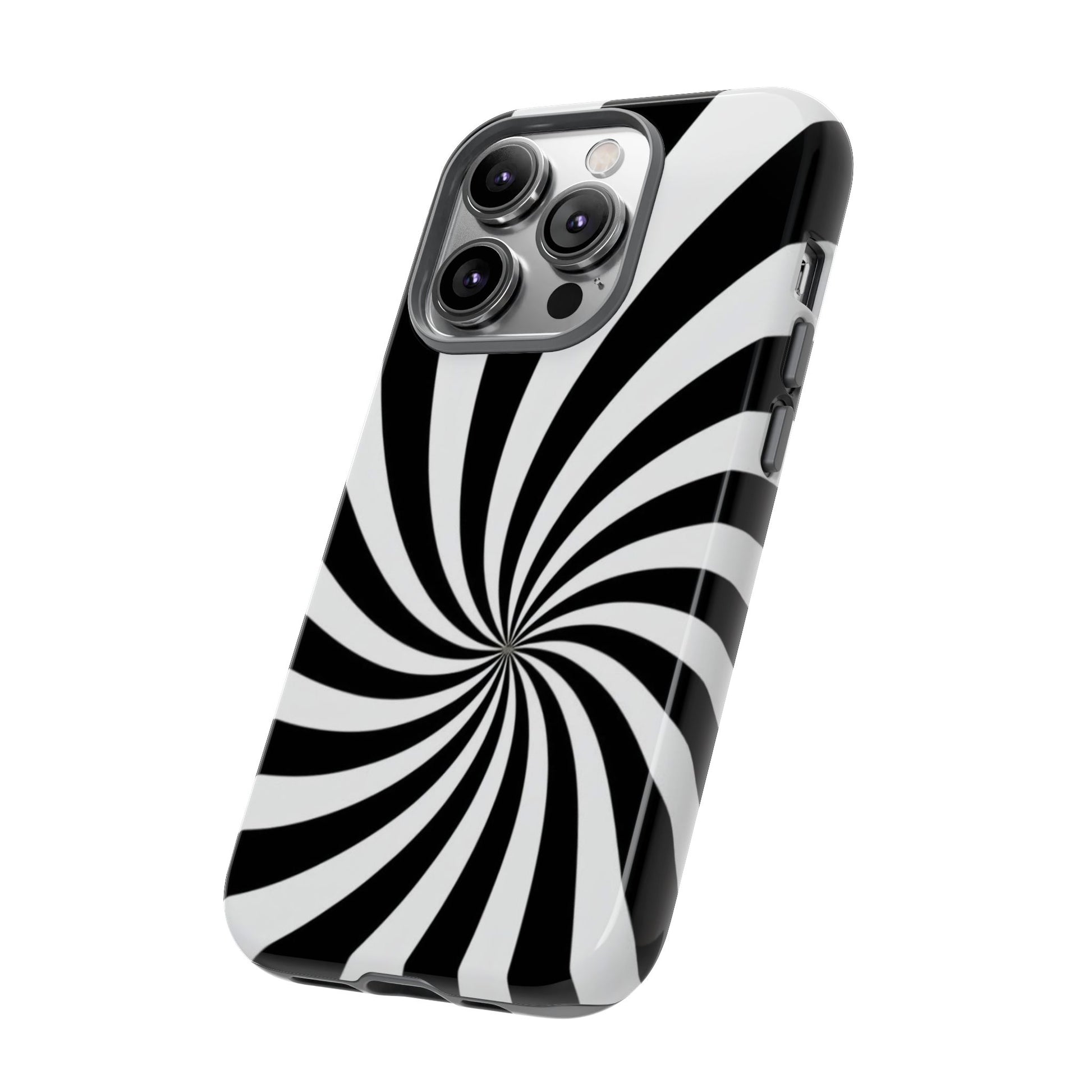 Introducing our stylish phone case, designed to protect your device while showcasing a bold visual flair. With its striking black and white spiral design, this case not only offers durability but also adds a contemporary touch to your everyday accessories. Feel the confidence as you go about your day, knowing your phone is safeguarded against drops and scratches. This versatile case is perfect for tech enthusiasts, students, or anyone who appreciates a modern aesthetic. Ideal for gifting on occasions such as birthdays, holidays, or as a thoughtful surprise for friends. Embrace a blend of form and function with our phone case – where style meets security!