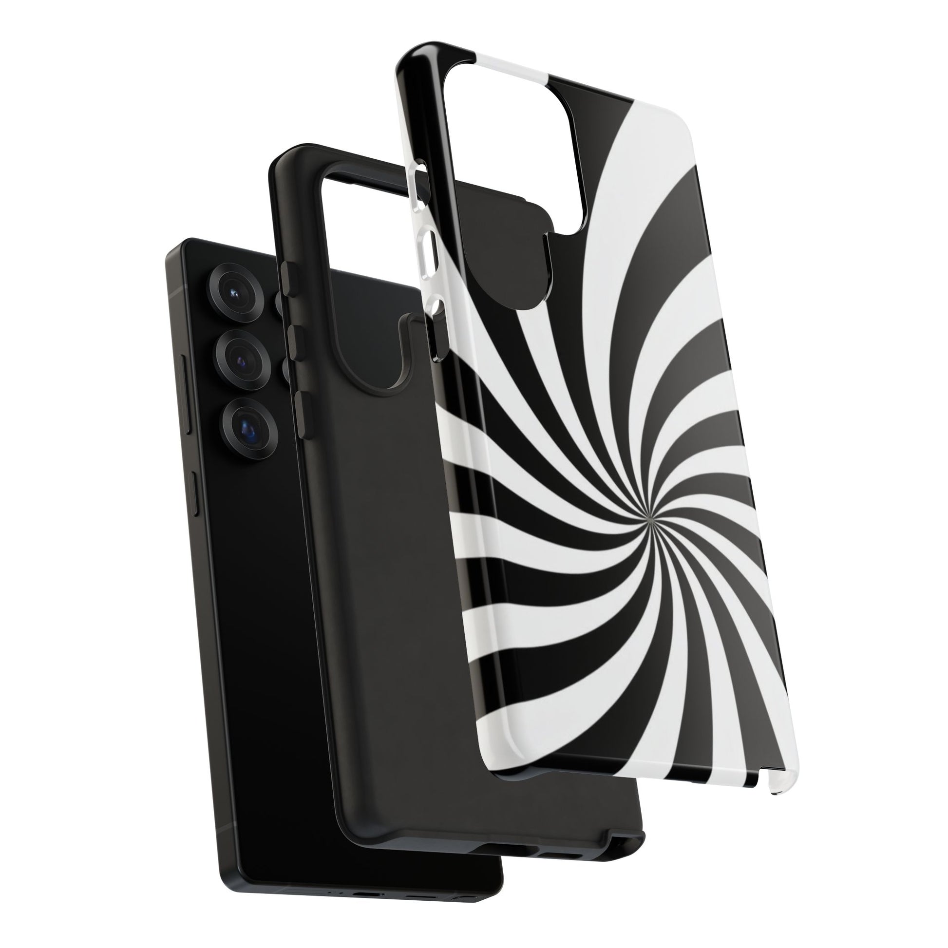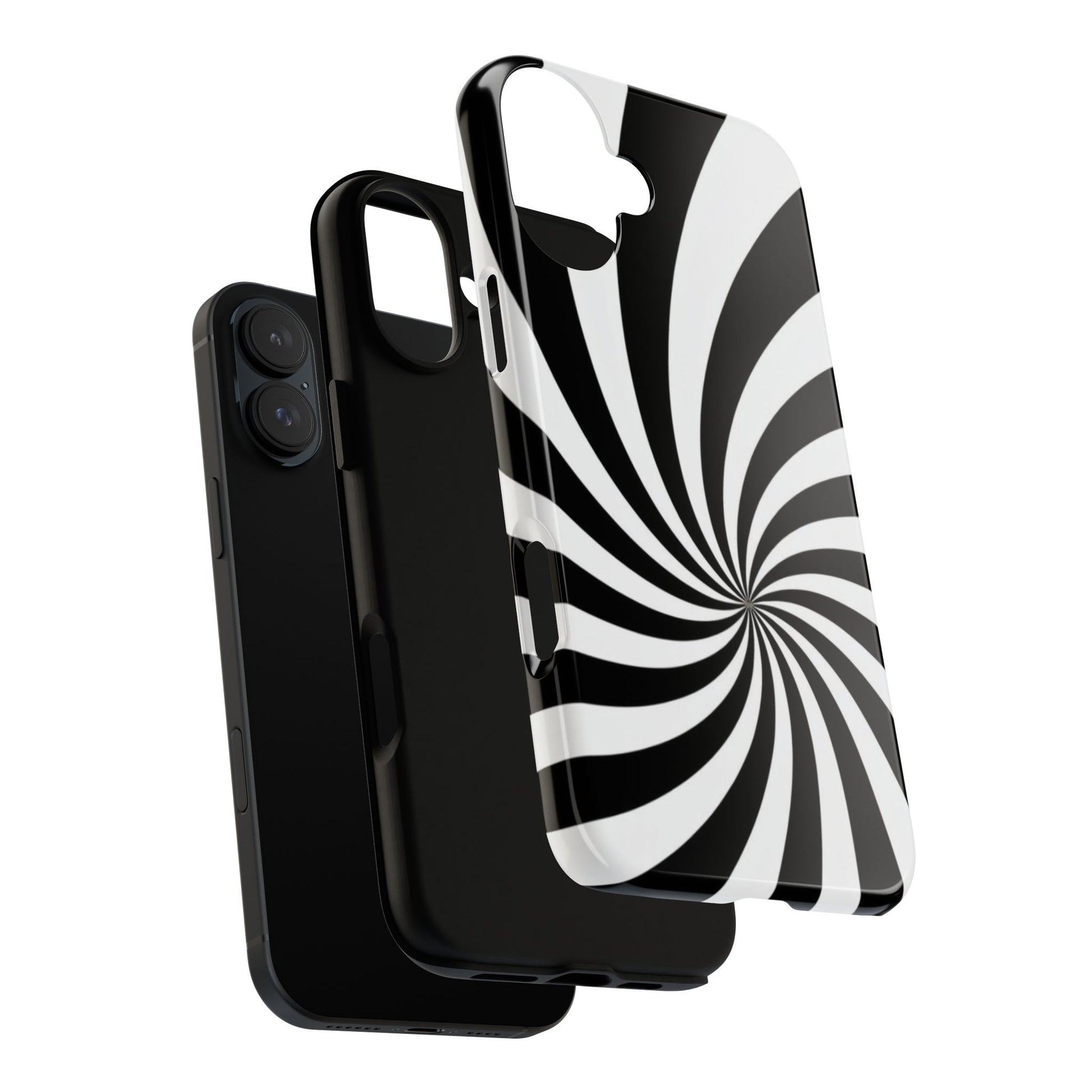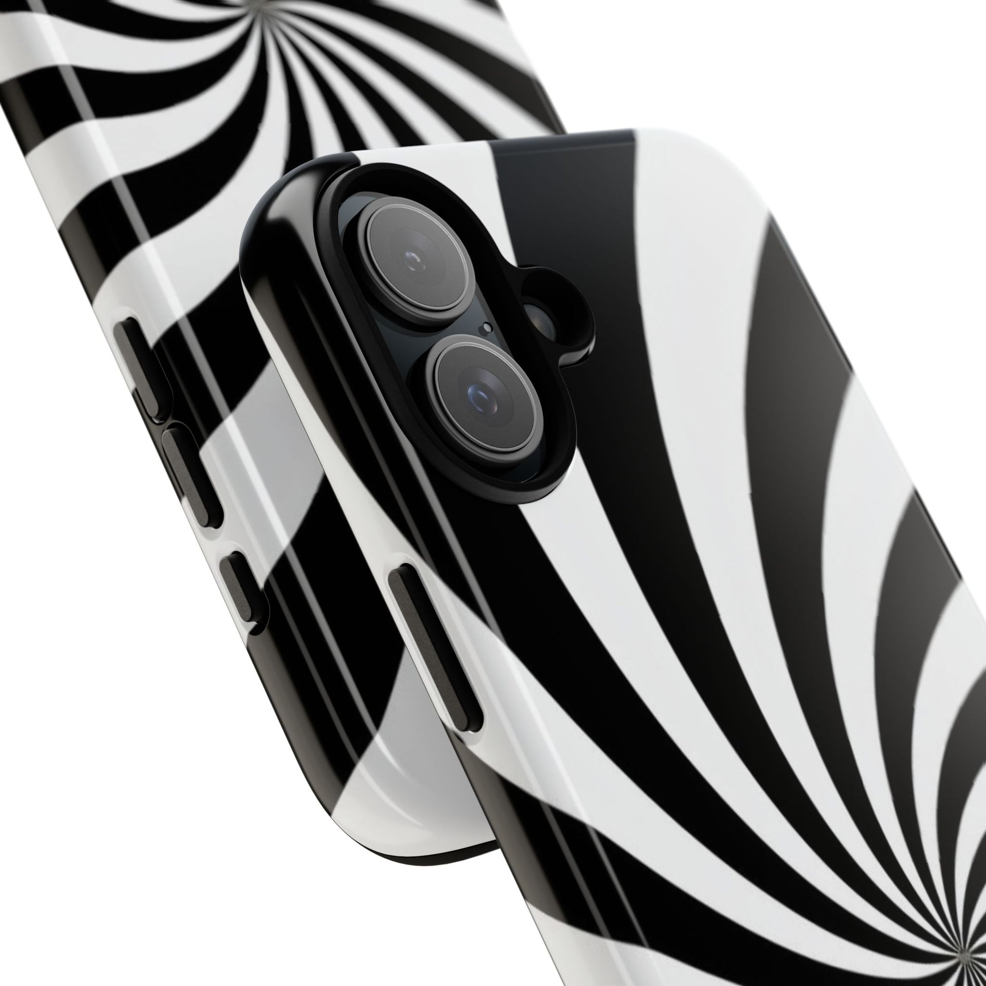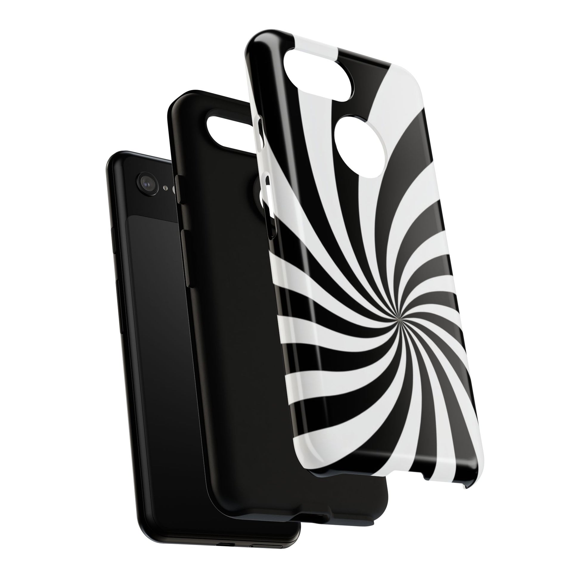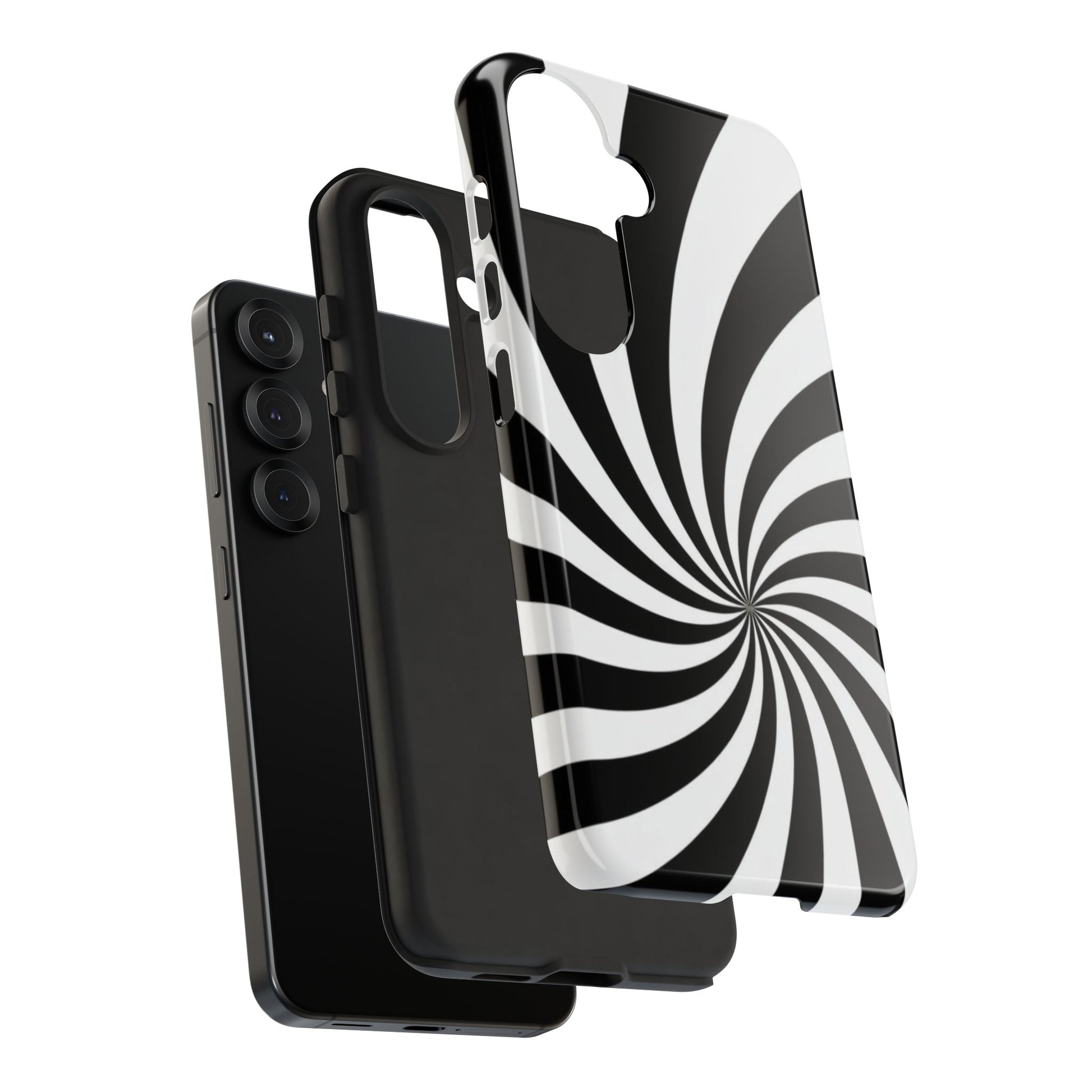 Introducing our stylish phone case, designed to protect your device while showcasing a bold visual flair. With its striking black and white spiral design, this case not only offers durability but also adds a contemporary touch to your everyday accessories. Feel the confidence as you go about your day, knowing your phone is safeguarded against drops and scratches. This versatile case is perfect for tech enthusiasts, students, or anyone who appreciates a modern aesthetic. Ideal for gifting on occasions such as birthdays, holidays, or as a thoughtful surprise for friends. Embrace a blend of form and function with our phone case – where style meets security!