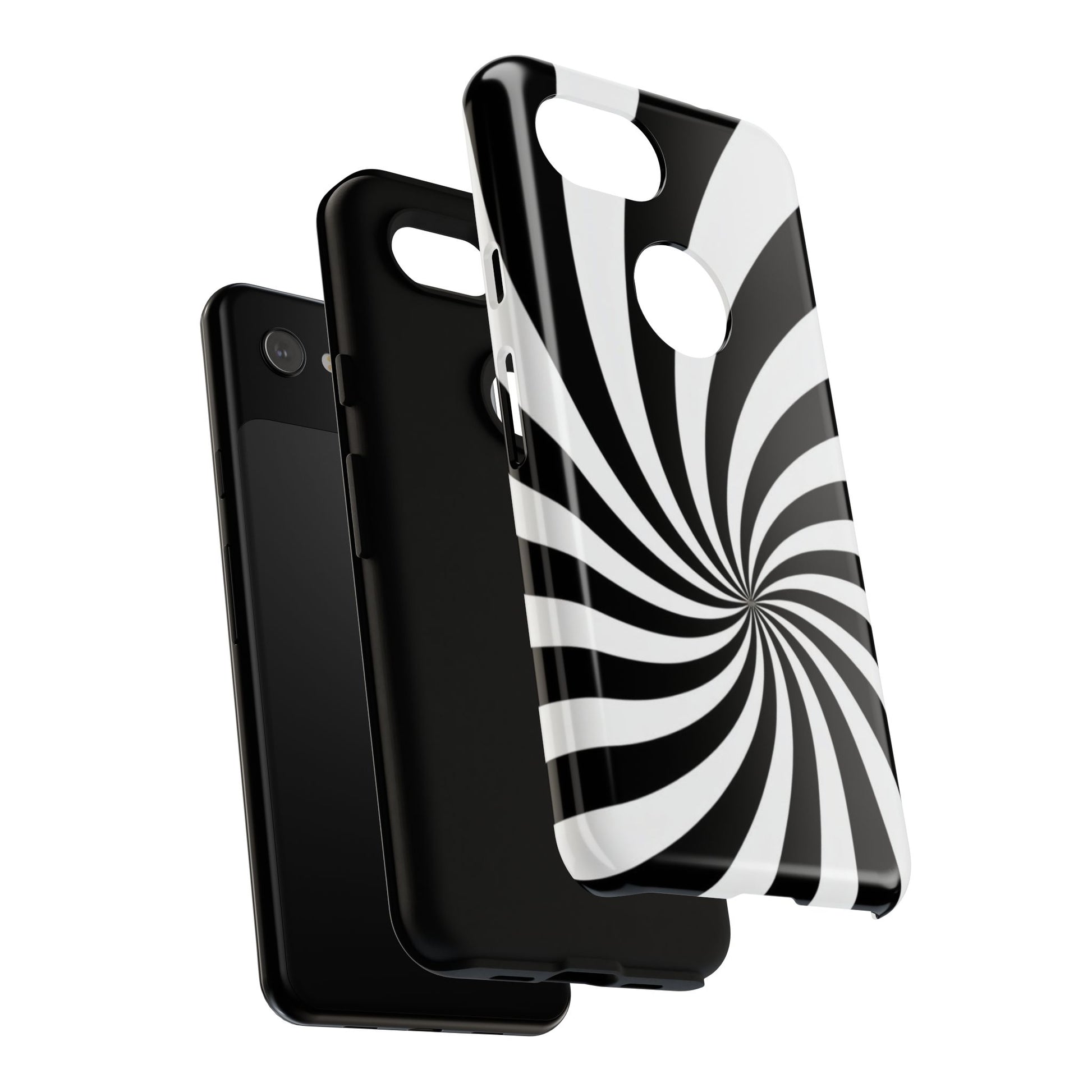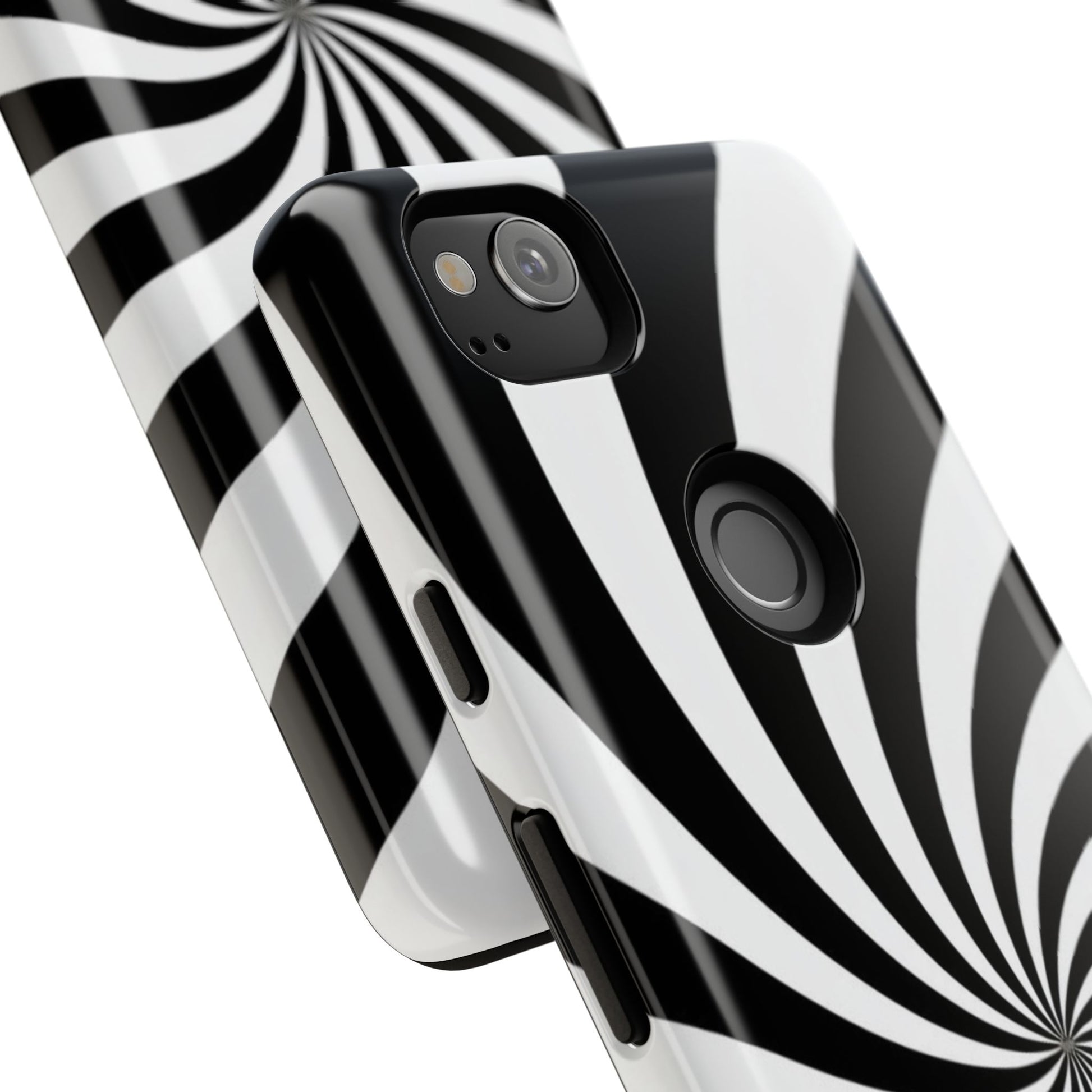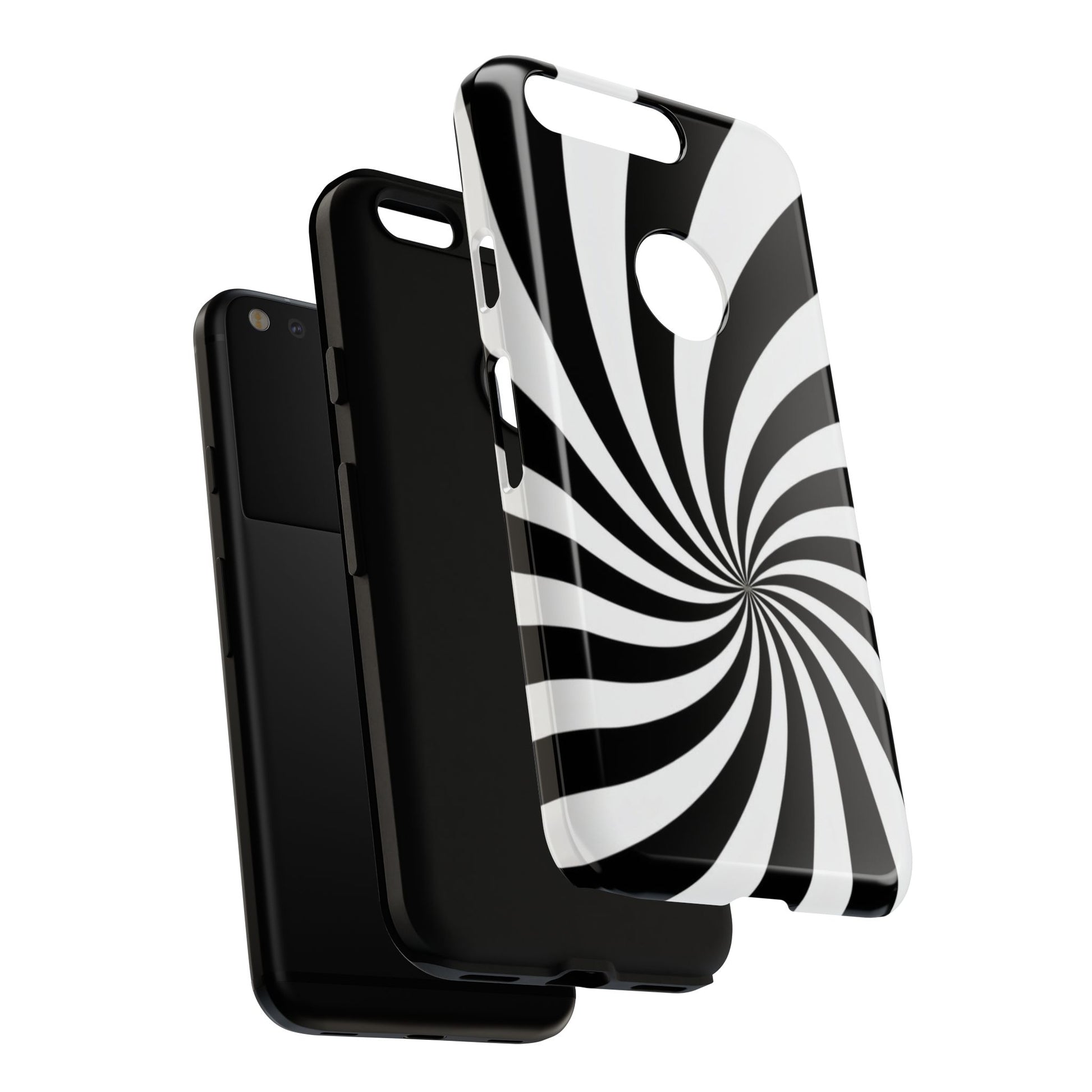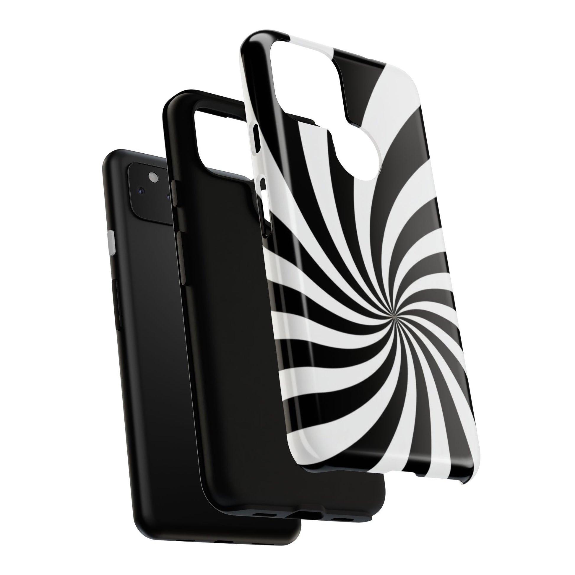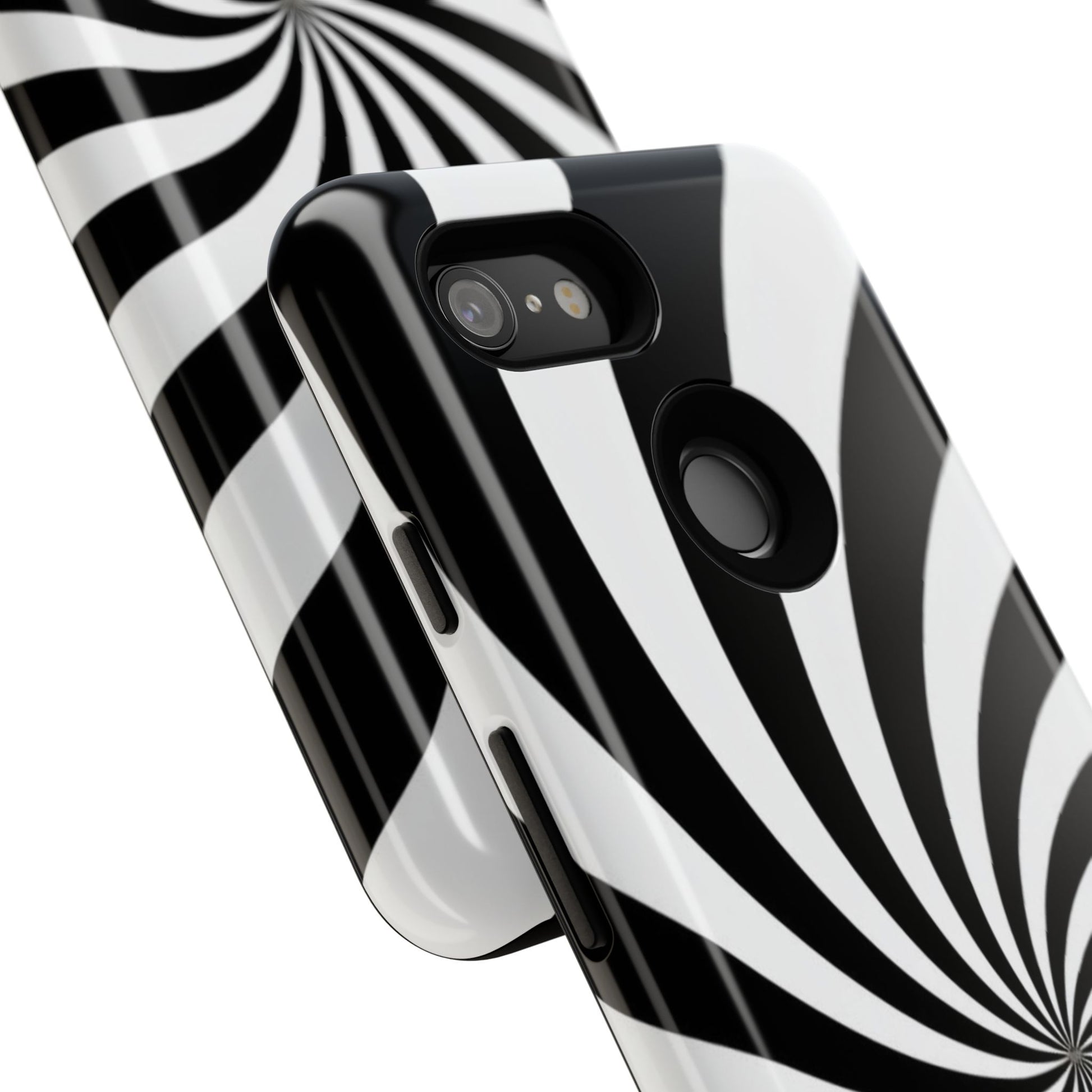 Introducing our stylish phone case, designed to protect your device while showcasing a bold visual flair. With its striking black and white spiral design, this case not only offers durability but also adds a contemporary touch to your everyday accessories. Feel the confidence as you go about your day, knowing your phone is safeguarded against drops and scratches. This versatile case is perfect for tech enthusiasts, students, or anyone who appreciates a modern aesthetic. Ideal for gifting on occasions such as birthdays, holidays, or as a thoughtful surprise for friends. Embrace a blend of form and function with our phone case – where style meets security!
