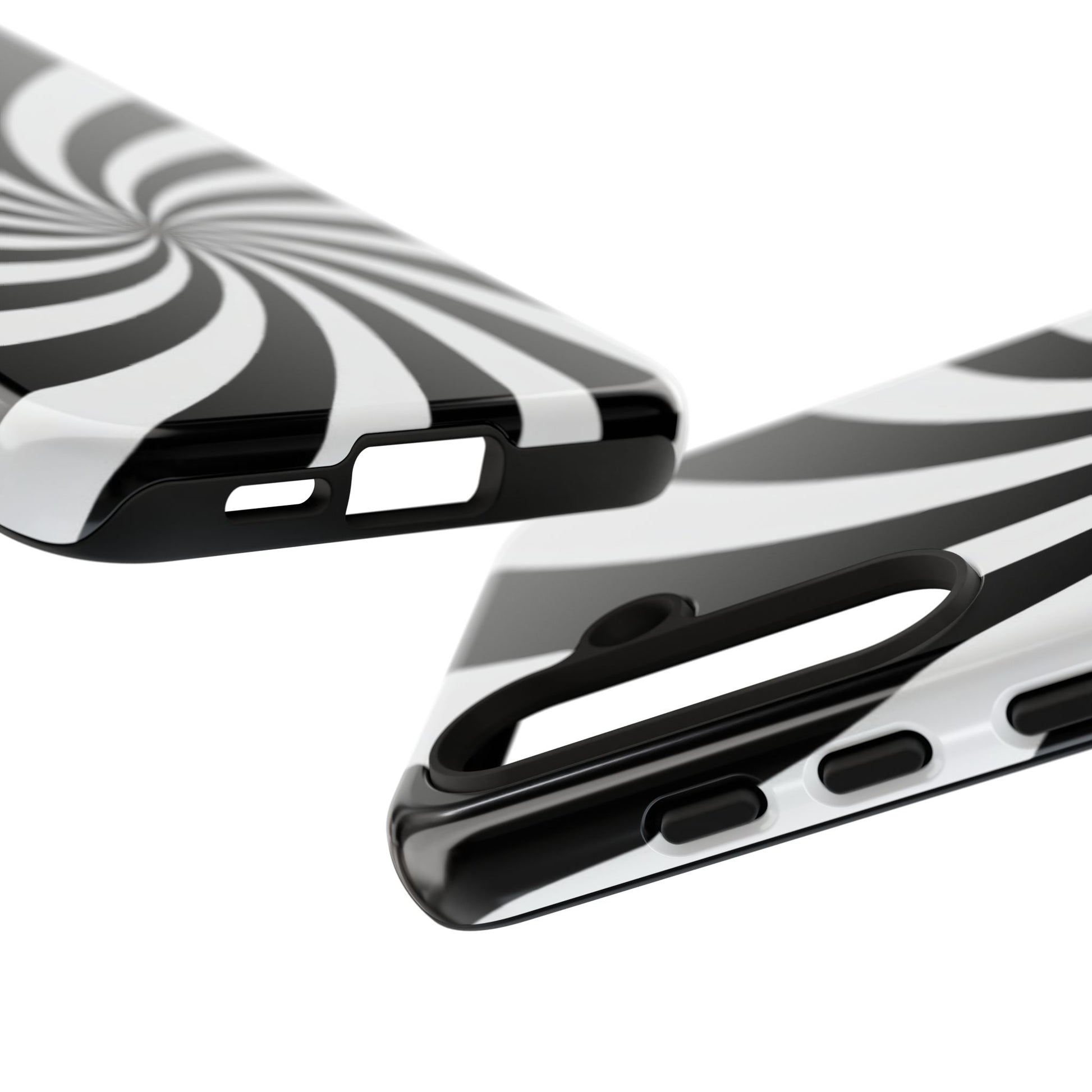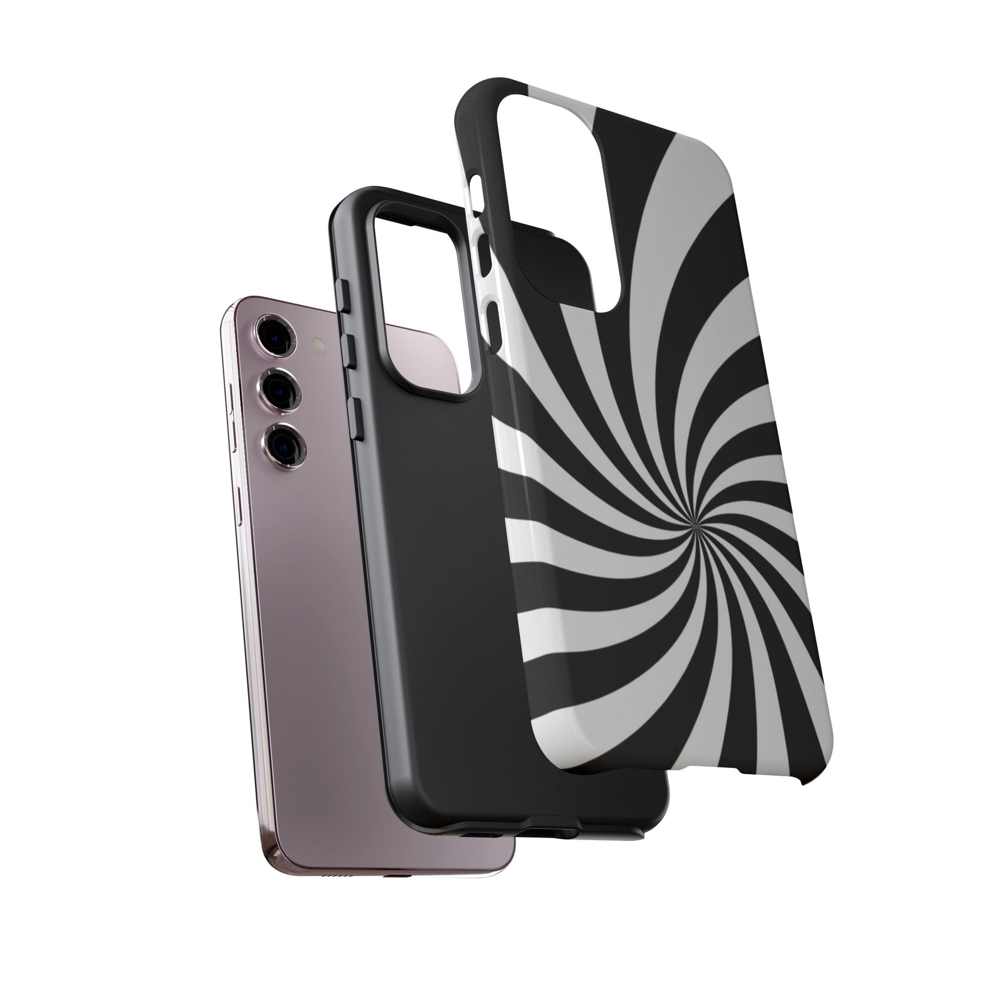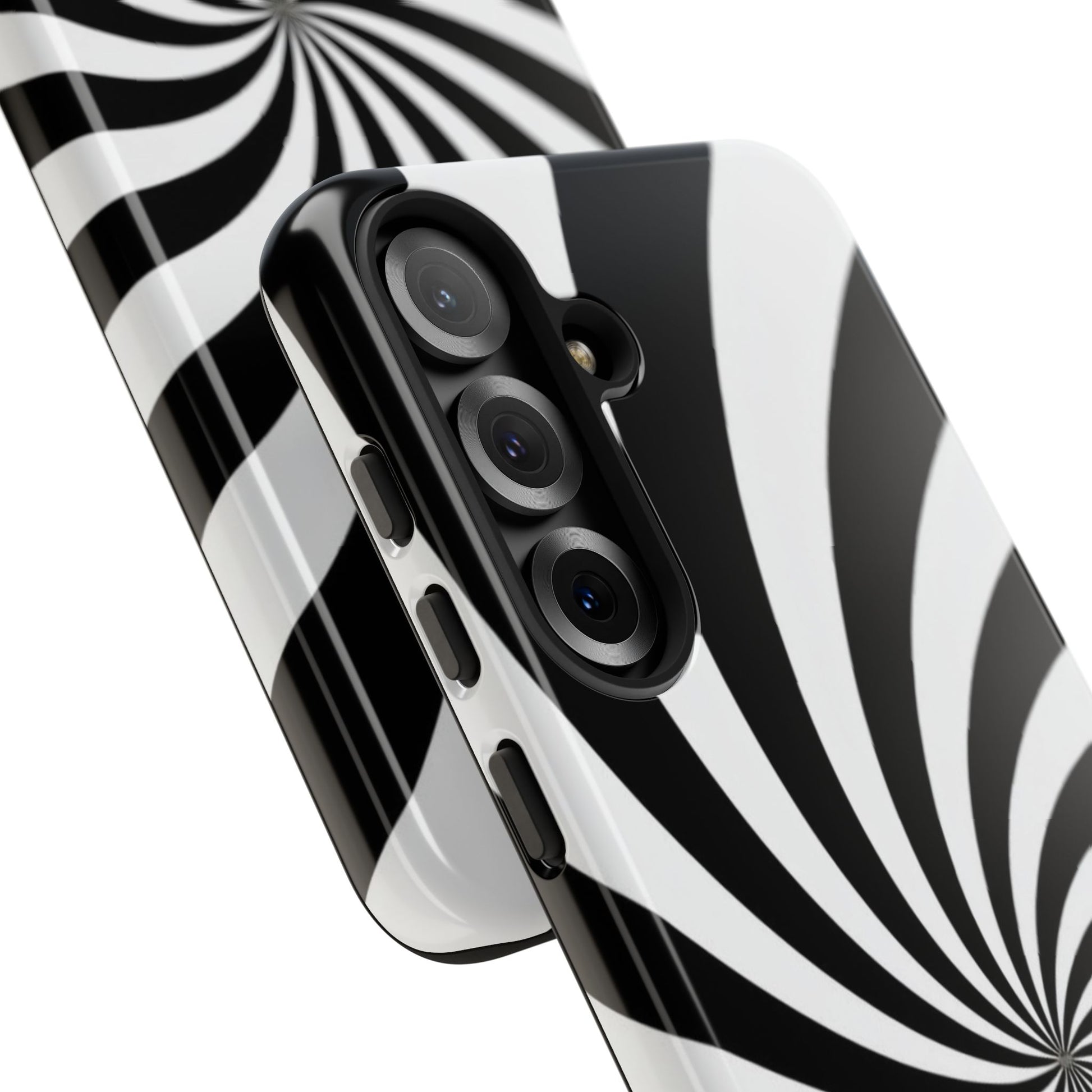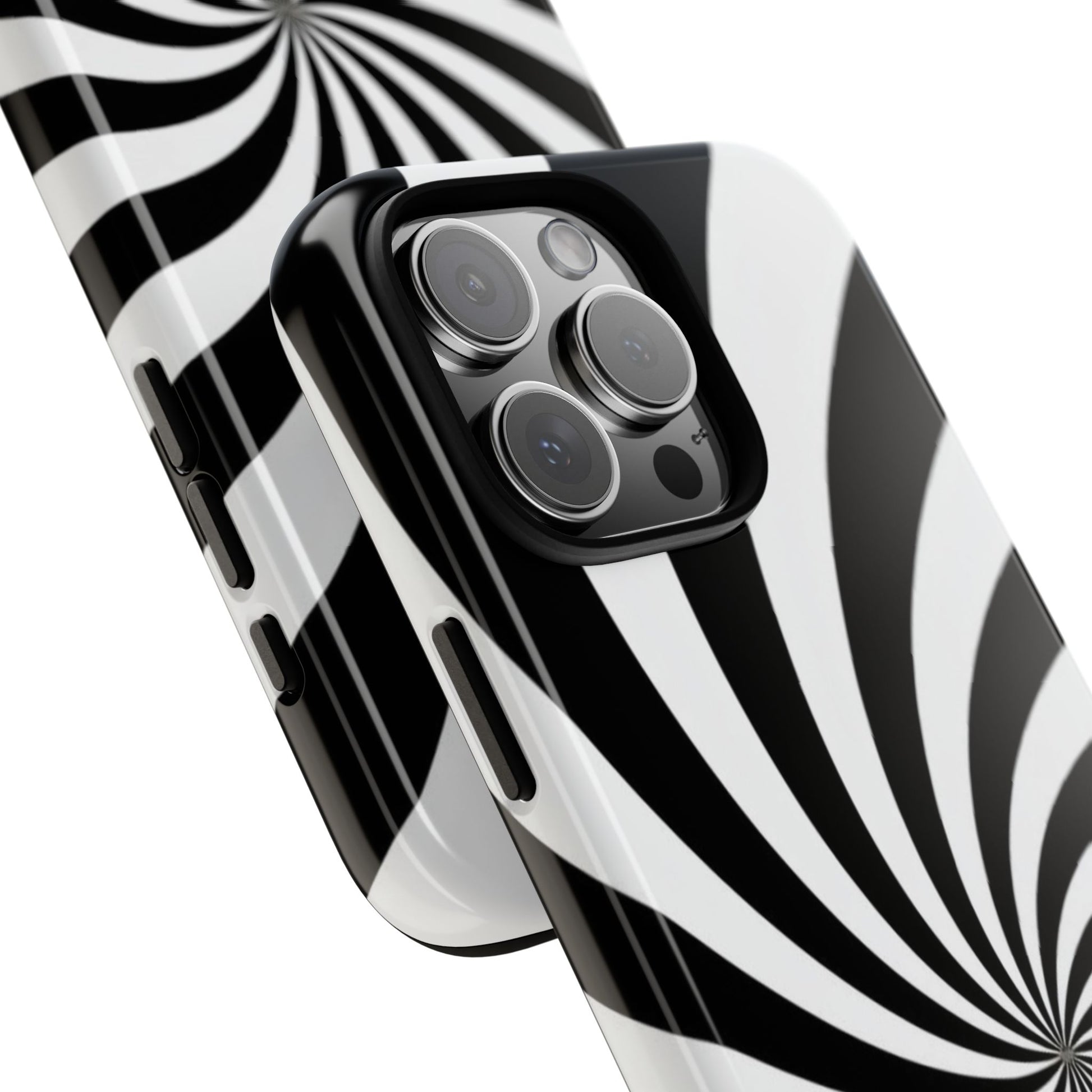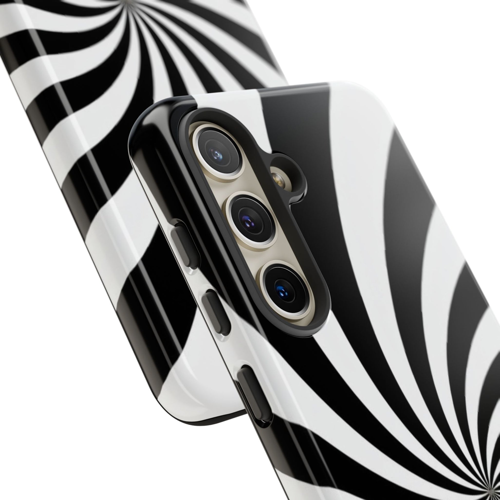 Introducing our stylish phone case, designed to protect your device while showcasing a bold visual flair. With its striking black and white spiral design, this case not only offers durability but also adds a contemporary touch to your everyday accessories. Feel the confidence as you go about your day, knowing your phone is safeguarded against drops and scratches. This versatile case is perfect for tech enthusiasts, students, or anyone who appreciates a modern aesthetic. Ideal for gifting on occasions such as birthdays, holidays, or as a thoughtful surprise for friends. Embrace a blend of form and function with our phone case – where style meets security!