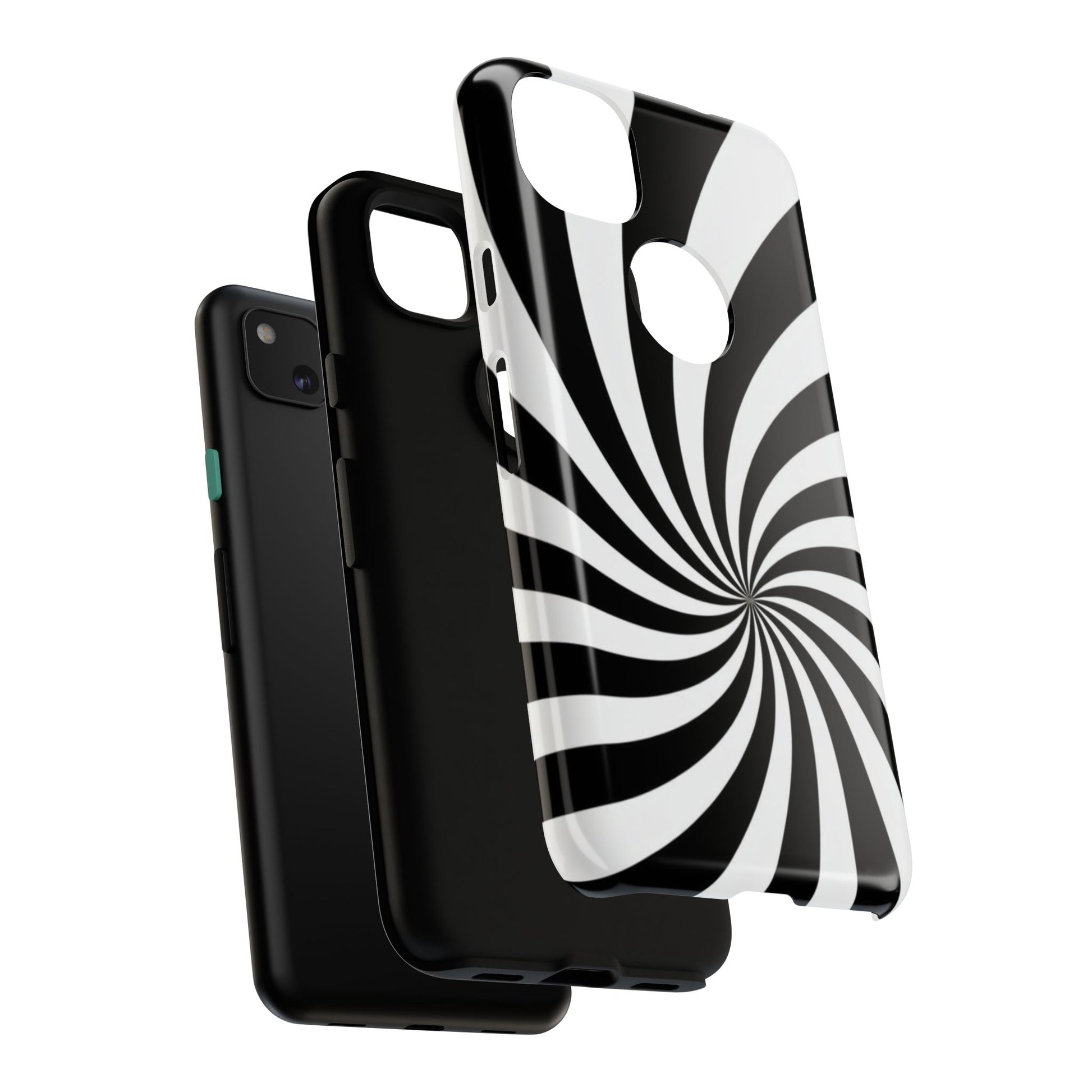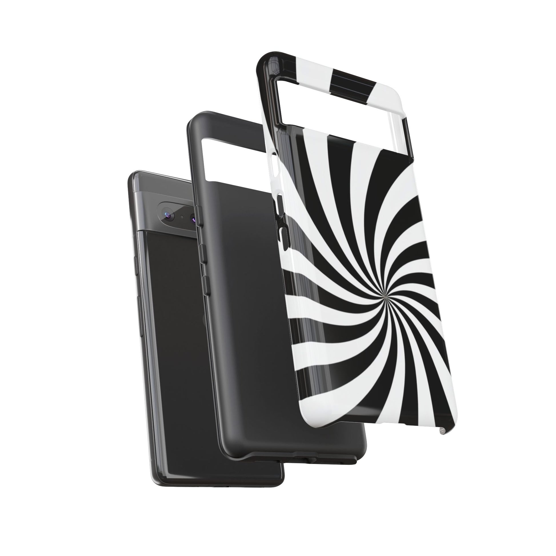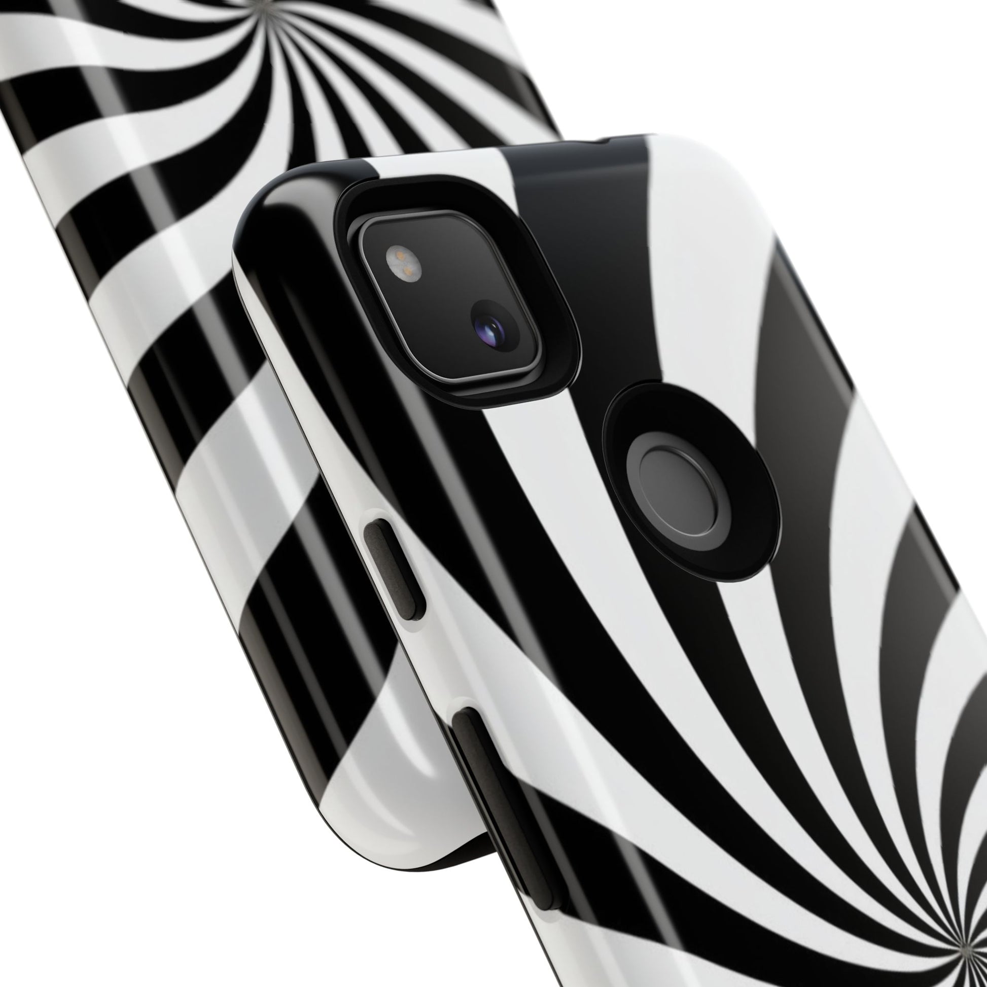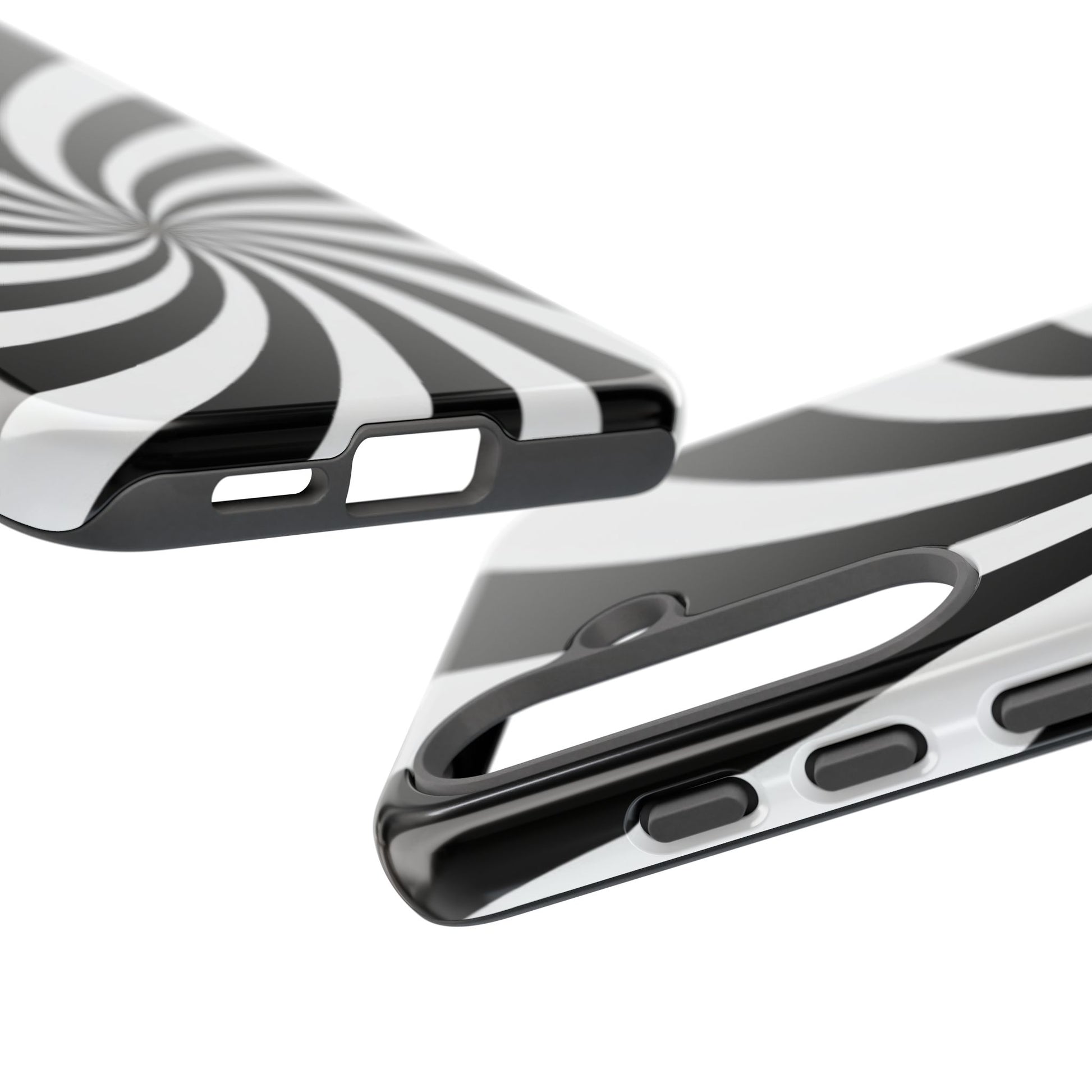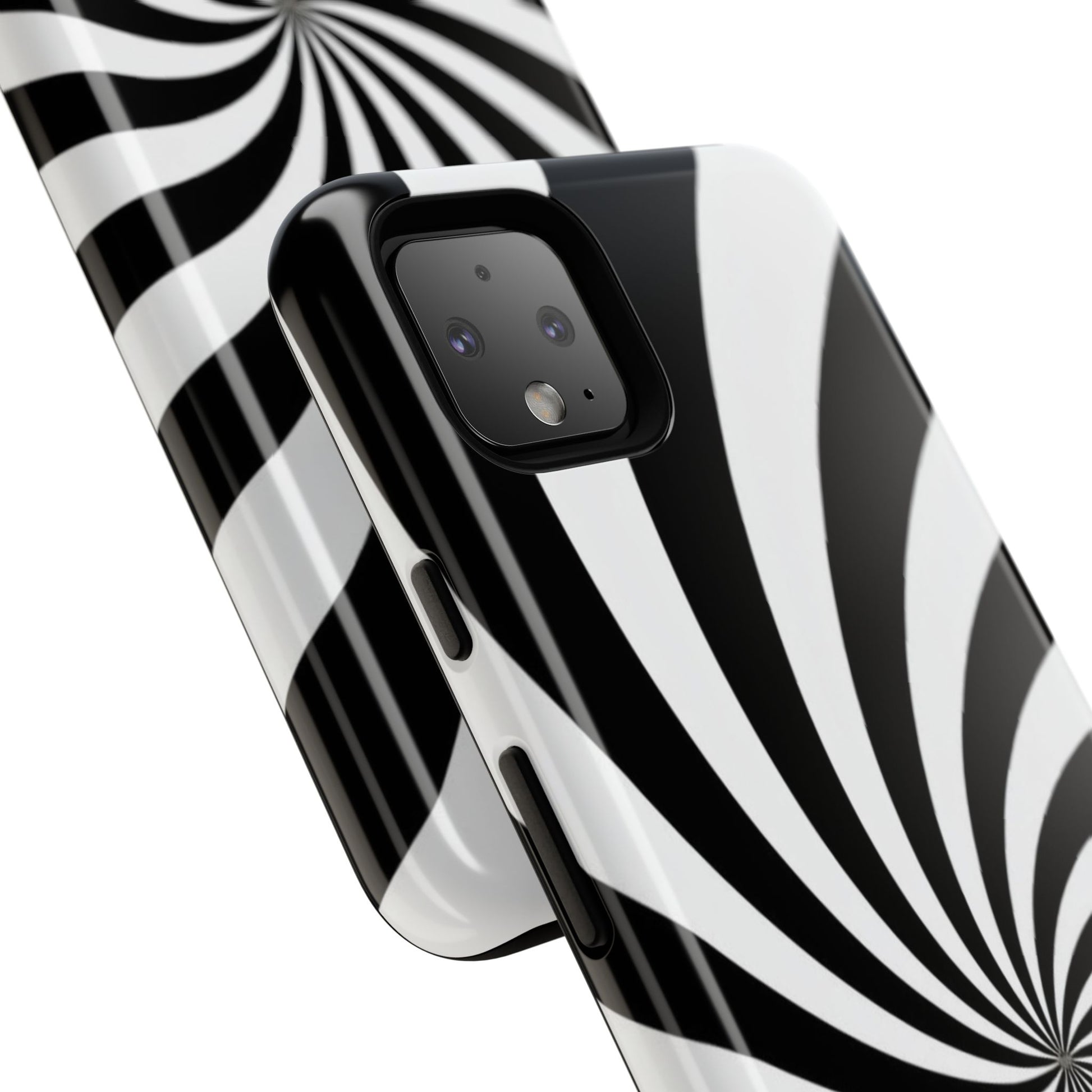 Introducing our stylish phone case, designed to protect your device while showcasing a bold visual flair. With its striking black and white spiral design, this case not only offers durability but also adds a contemporary touch to your everyday accessories. Feel the confidence as you go about your day, knowing your phone is safeguarded against drops and scratches. This versatile case is perfect for tech enthusiasts, students, or anyone who appreciates a modern aesthetic. Ideal for gifting on occasions such as birthdays, holidays, or as a thoughtful surprise for friends. Embrace a blend of form and function with our phone case – where style meets security!