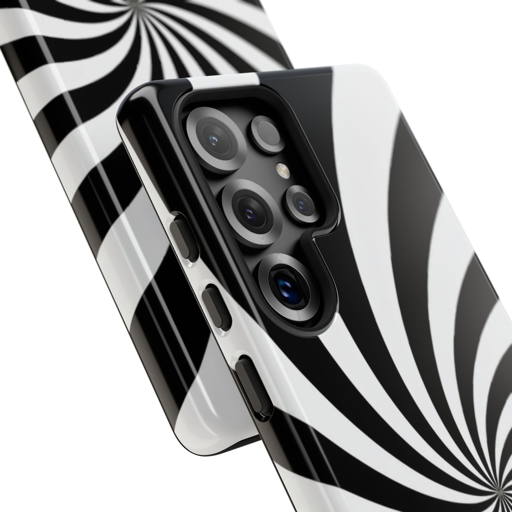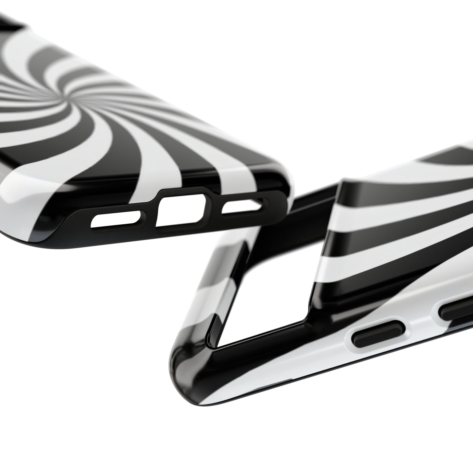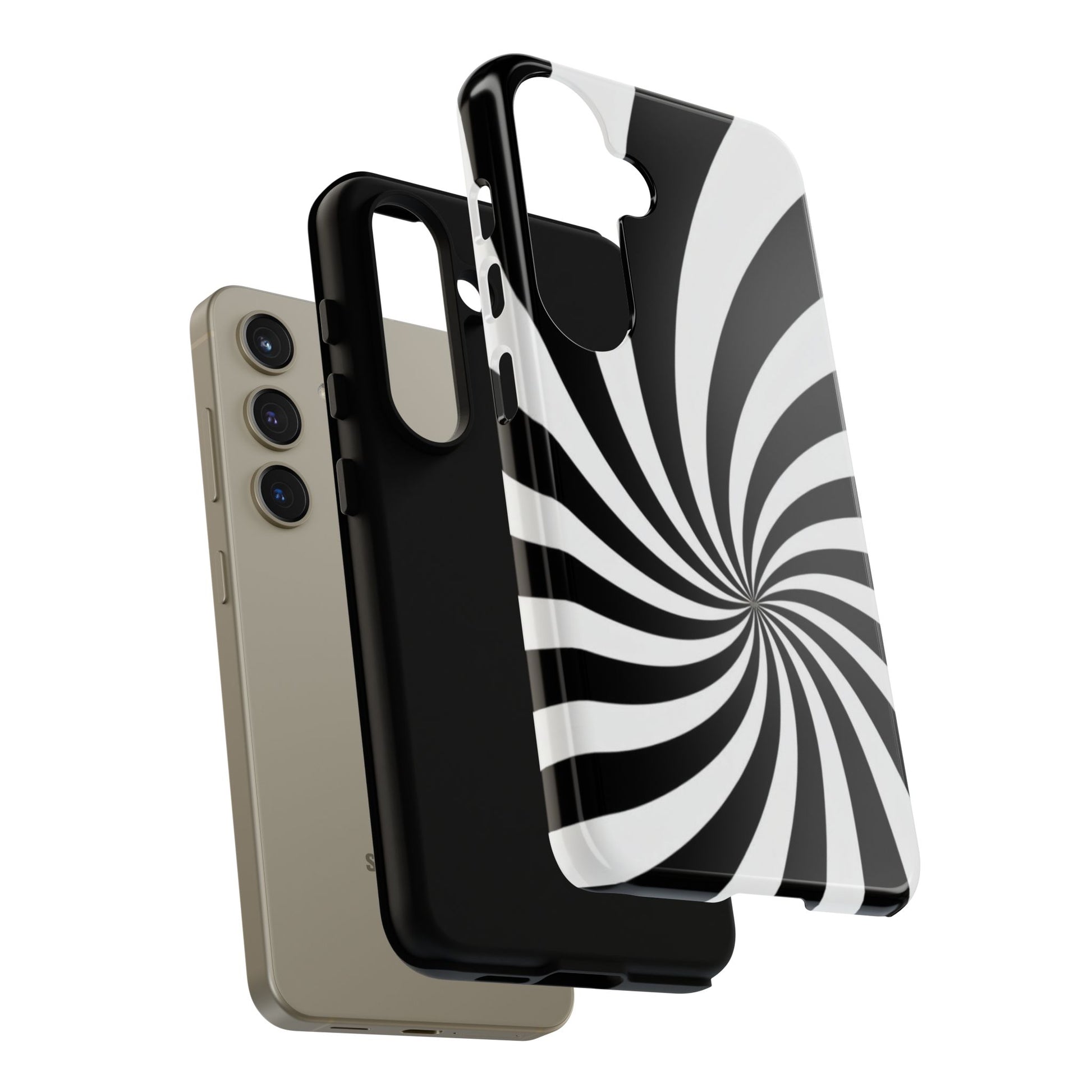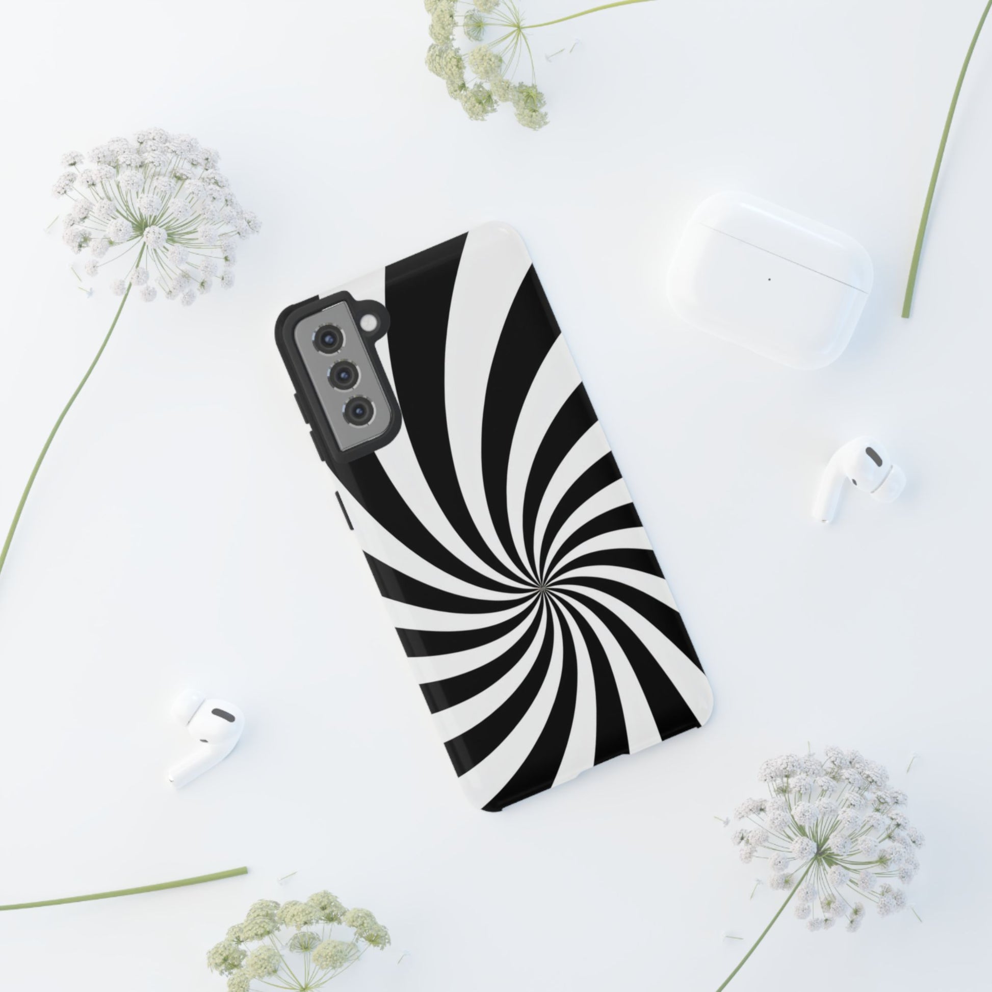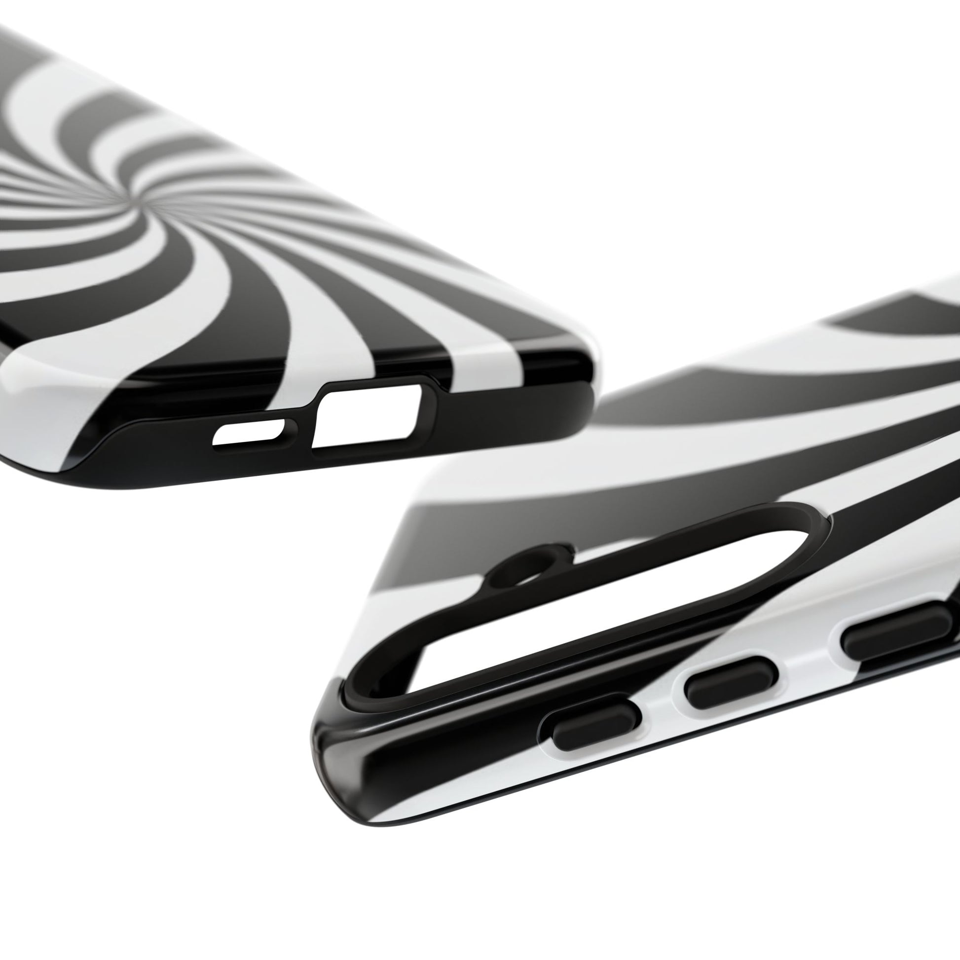 Introducing our stylish phone case, designed to protect your device while showcasing a bold visual flair. With its striking black and white spiral design, this case not only offers durability but also adds a contemporary touch to your everyday accessories. Feel the confidence as you go about your day, knowing your phone is safeguarded against drops and scratches. This versatile case is perfect for tech enthusiasts, students, or anyone who appreciates a modern aesthetic. Ideal for gifting on occasions such as birthdays, holidays, or as a thoughtful surprise for friends. Embrace a blend of form and function with our phone case – where style meets security!