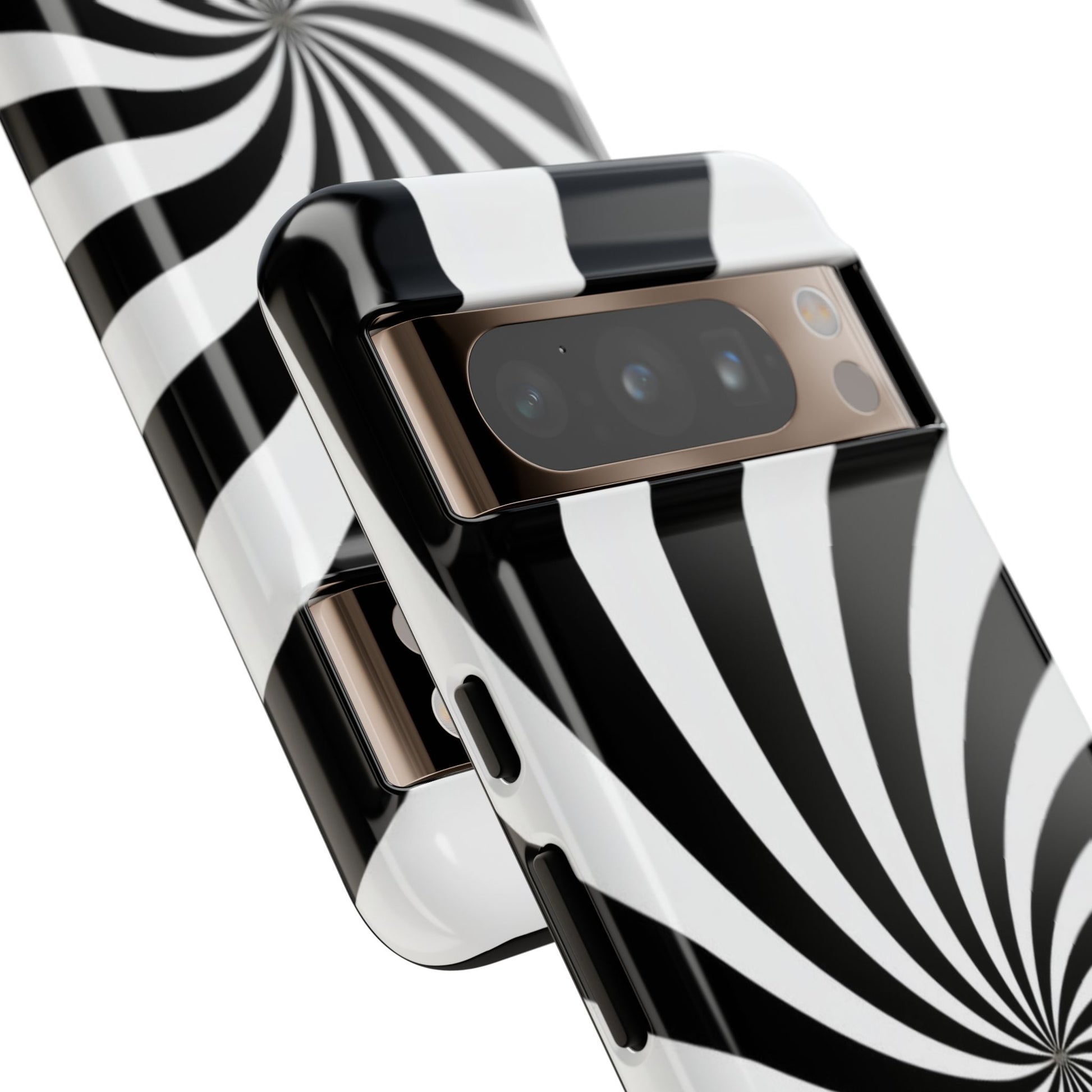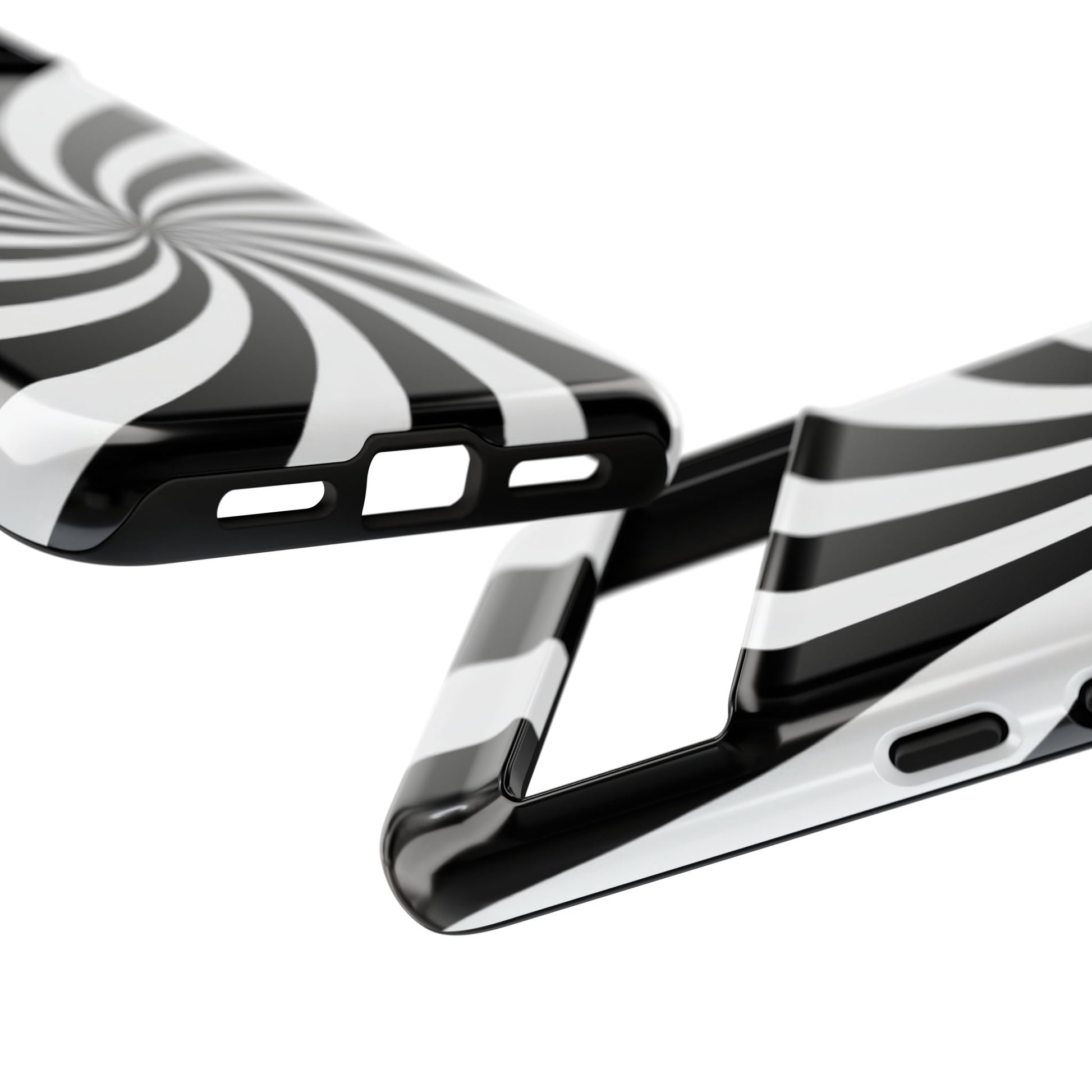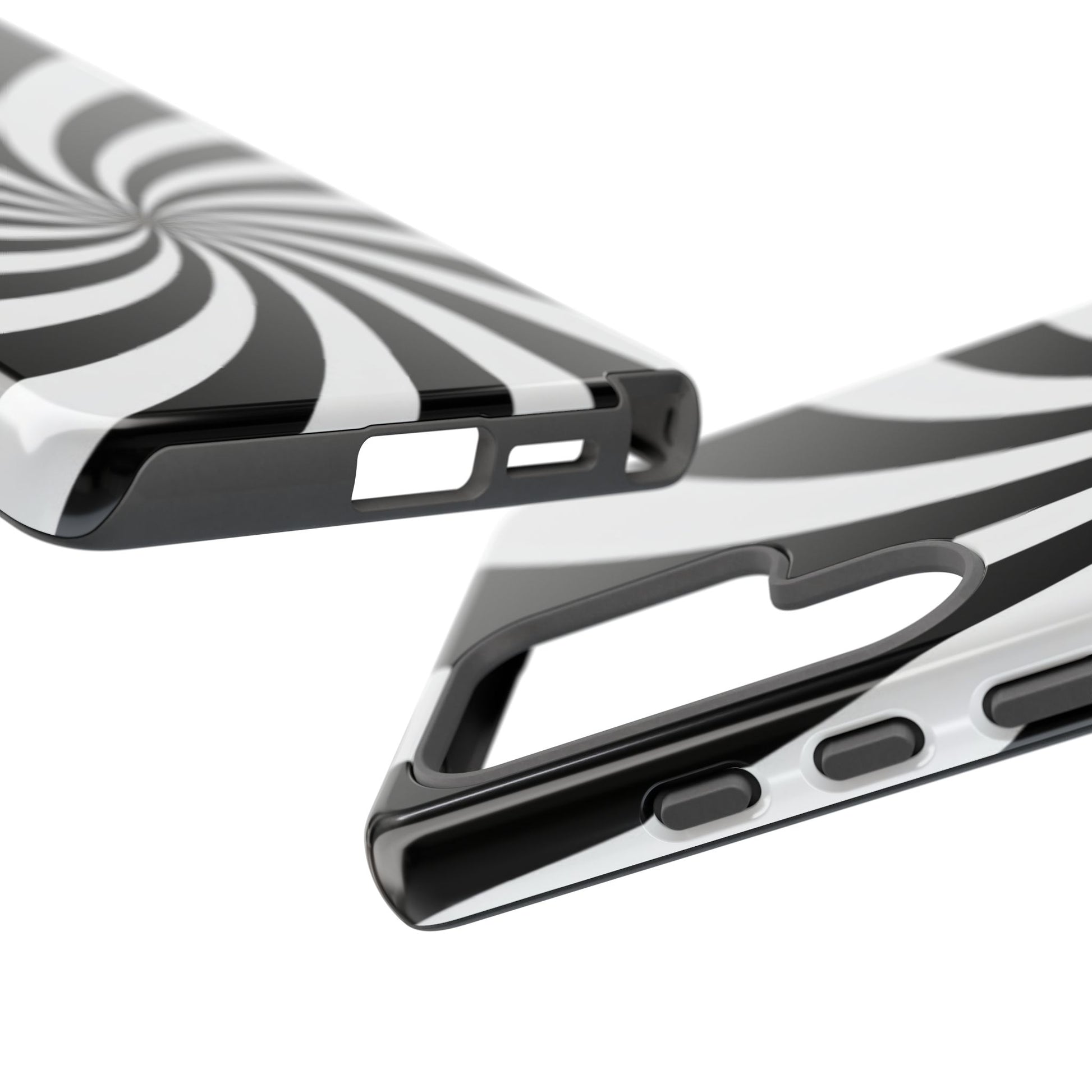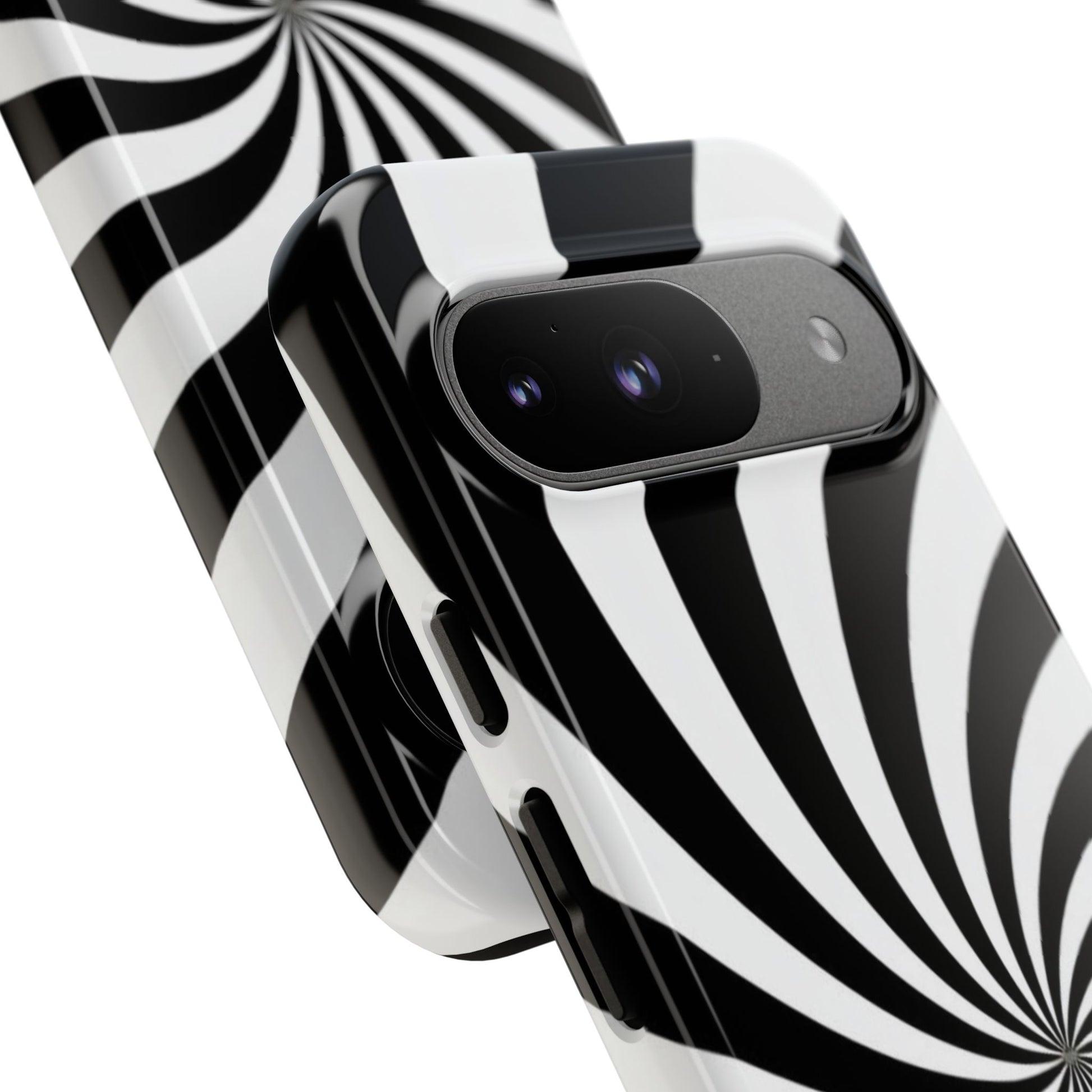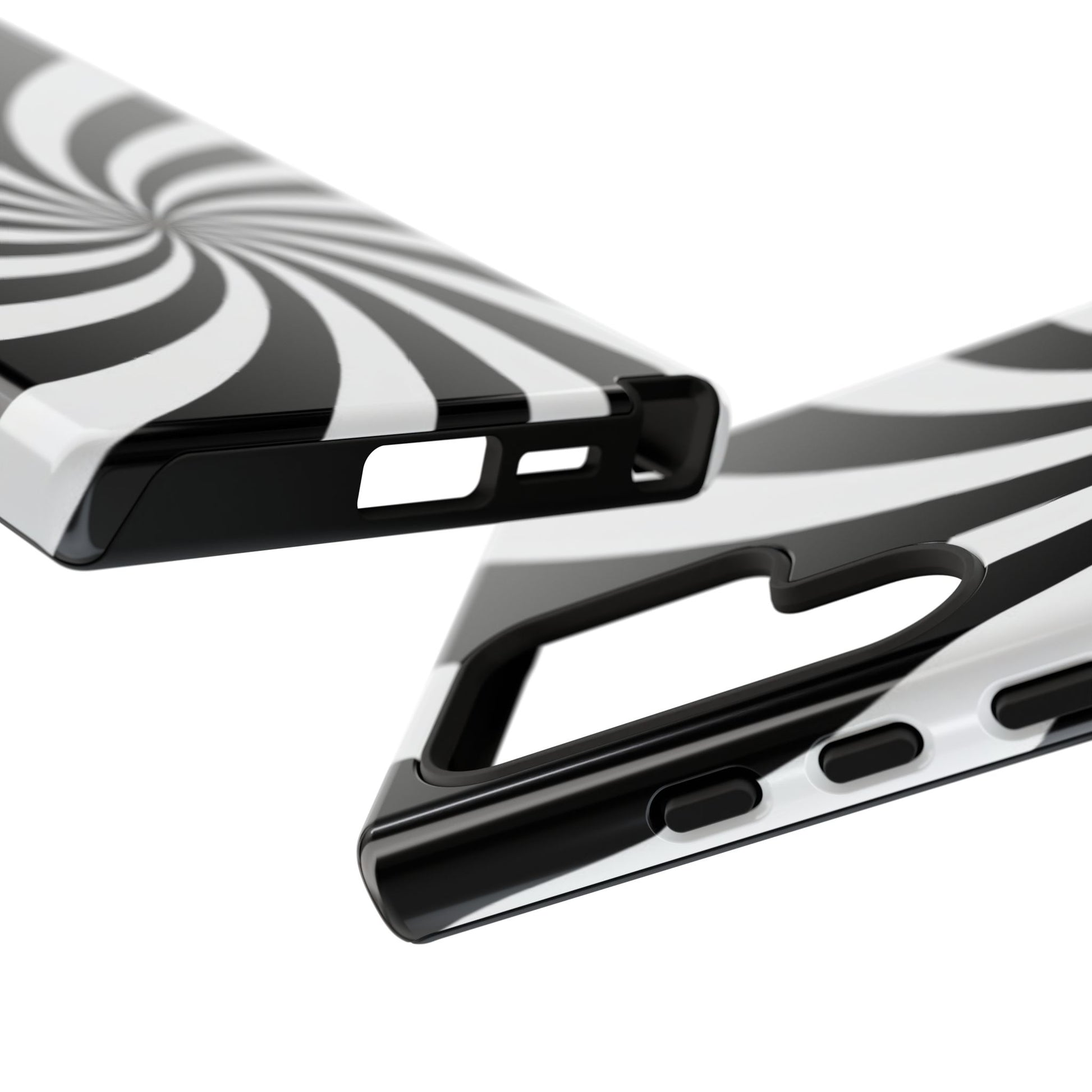 Introducing our stylish phone case, designed to protect your device while showcasing a bold visual flair. With its striking black and white spiral design, this case not only offers durability but also adds a contemporary touch to your everyday accessories. Feel the confidence as you go about your day, knowing your phone is safeguarded against drops and scratches. This versatile case is perfect for tech enthusiasts, students, or anyone who appreciates a modern aesthetic. Ideal for gifting on occasions such as birthdays, holidays, or as a thoughtful surprise for friends. Embrace a blend of form and function with our phone case – where style meets security!