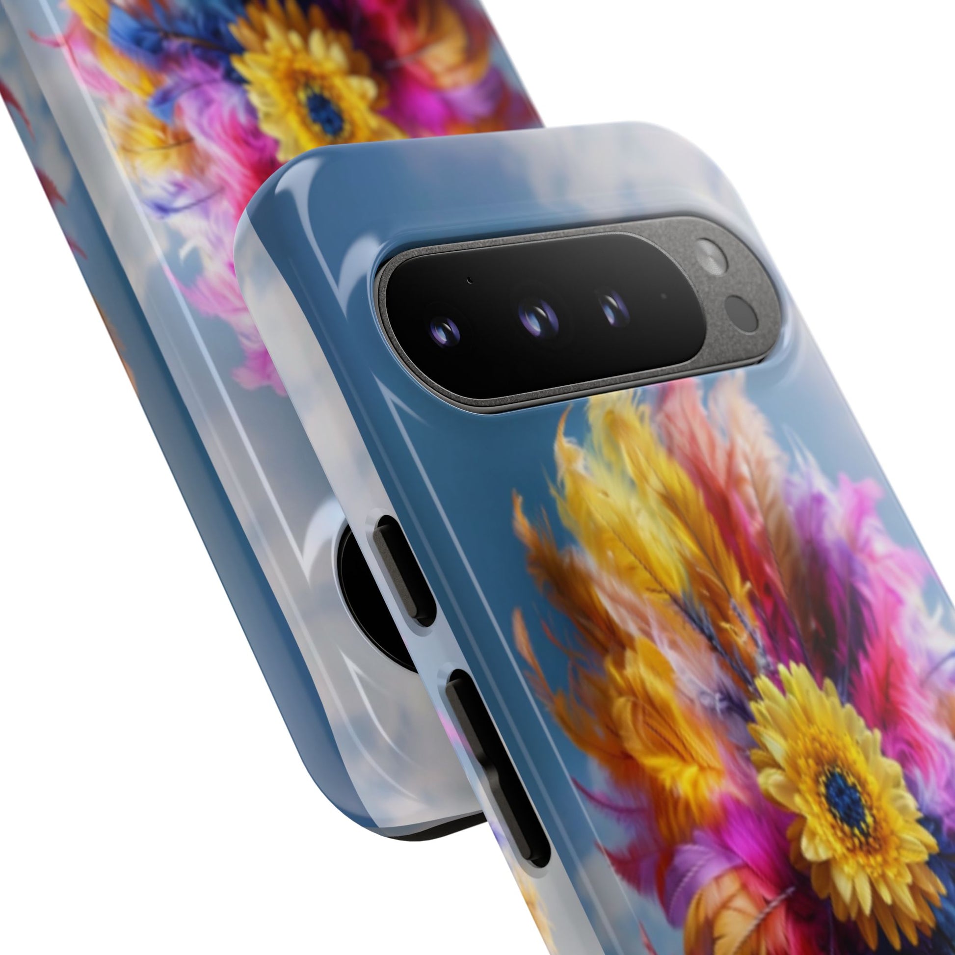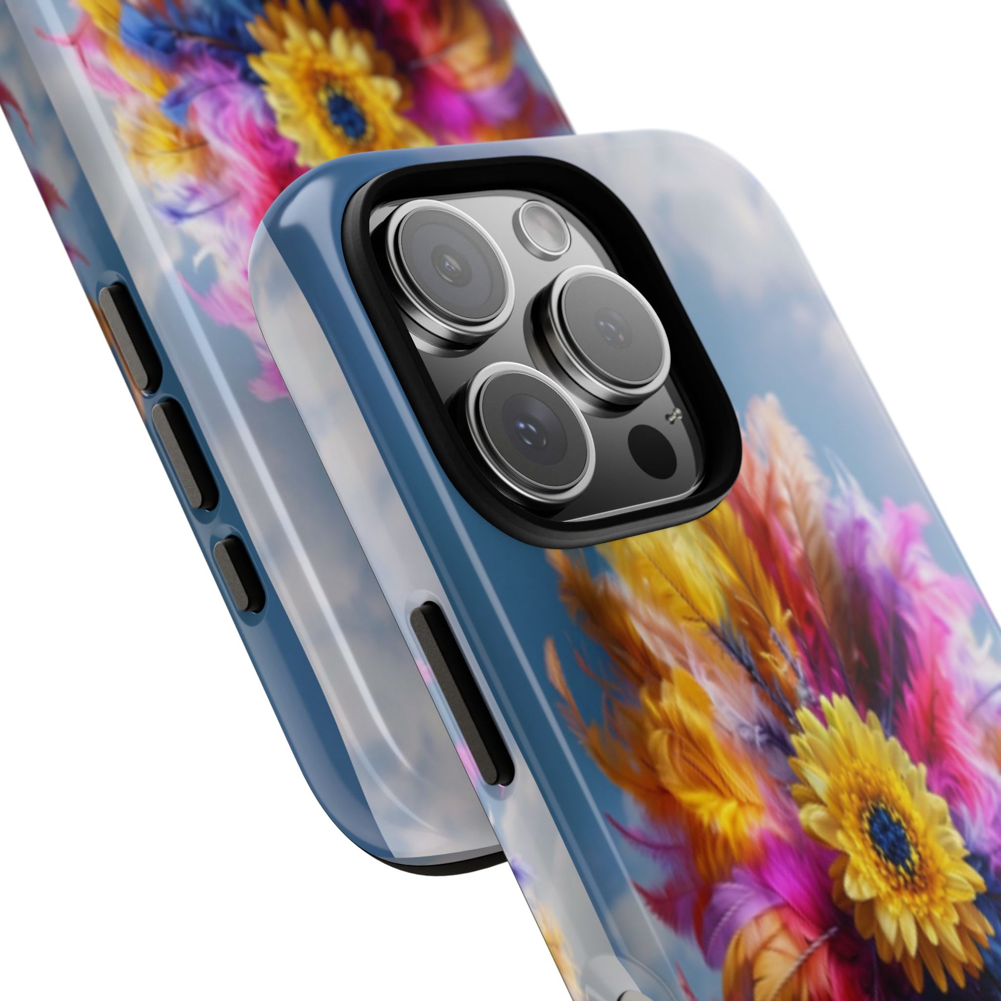 Elevate your style with this stunning protective phone case that merges durability with vibrant artistry. Featuring a striking design of colorful feathers and sunflowers against a clear sky backdrop, this case transforms your device into a unique statement piece. Perfect for anyone who loves to express their individuality, this phone case brings joy and positivity to your daily life, making it an ideal gift for friends and family alike. It's perfect for celebrations like birthdays, spring festivals, and even as a thoughtful gesture during holidays. With its eye-catching aesthetics, this product fits seamlessly into both everyday wear and special occasions, adding a splash of color to your tech essentials.