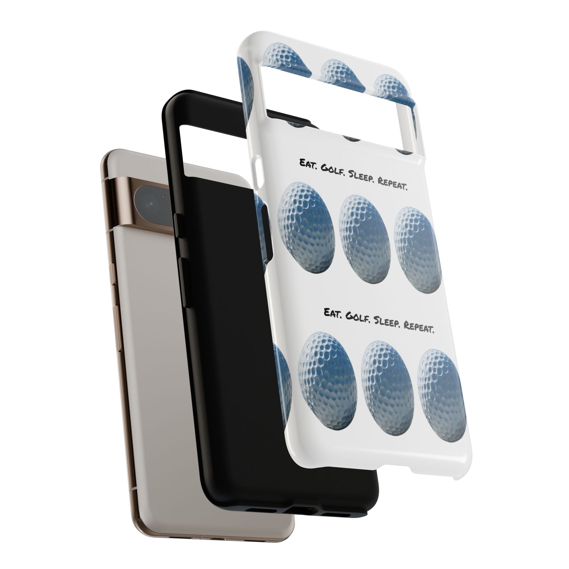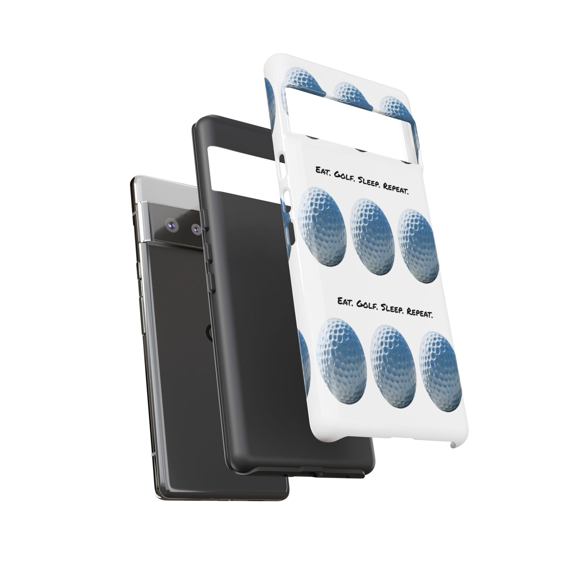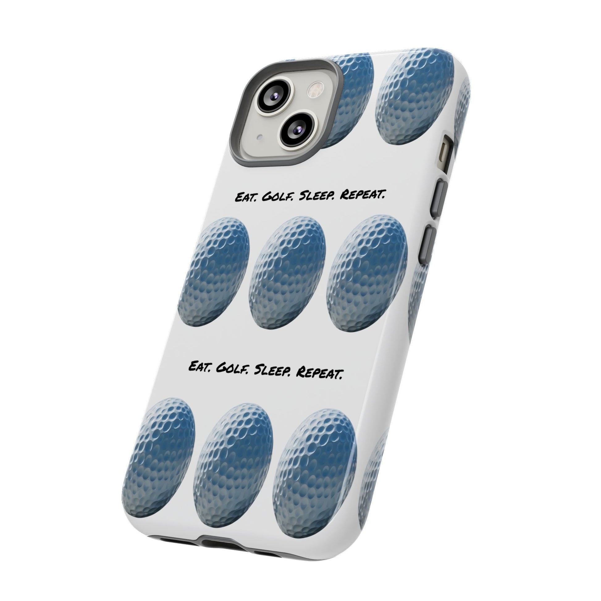 Introducing our sleek and stylish phone case designed for avid golfers! This durable phone case captures the essence of a golfer's lifestyle with its fun, repetitive slogan: "Eat. Golf. Sleep. Repeat." Perfect for those who live and breathe the sport, this case offers a combination of protection and personality. Featuring a glossy or matte finish, it's not just a protective accessory; it's a statement piece that resonates with golf lovers. Whether you're on the course or just out and about, this case fits seamlessly into your daily routine. Ideal for birthdays, holidays, or just treating yourself, it's a fantastic gift for any golfer looking to show off their passion!