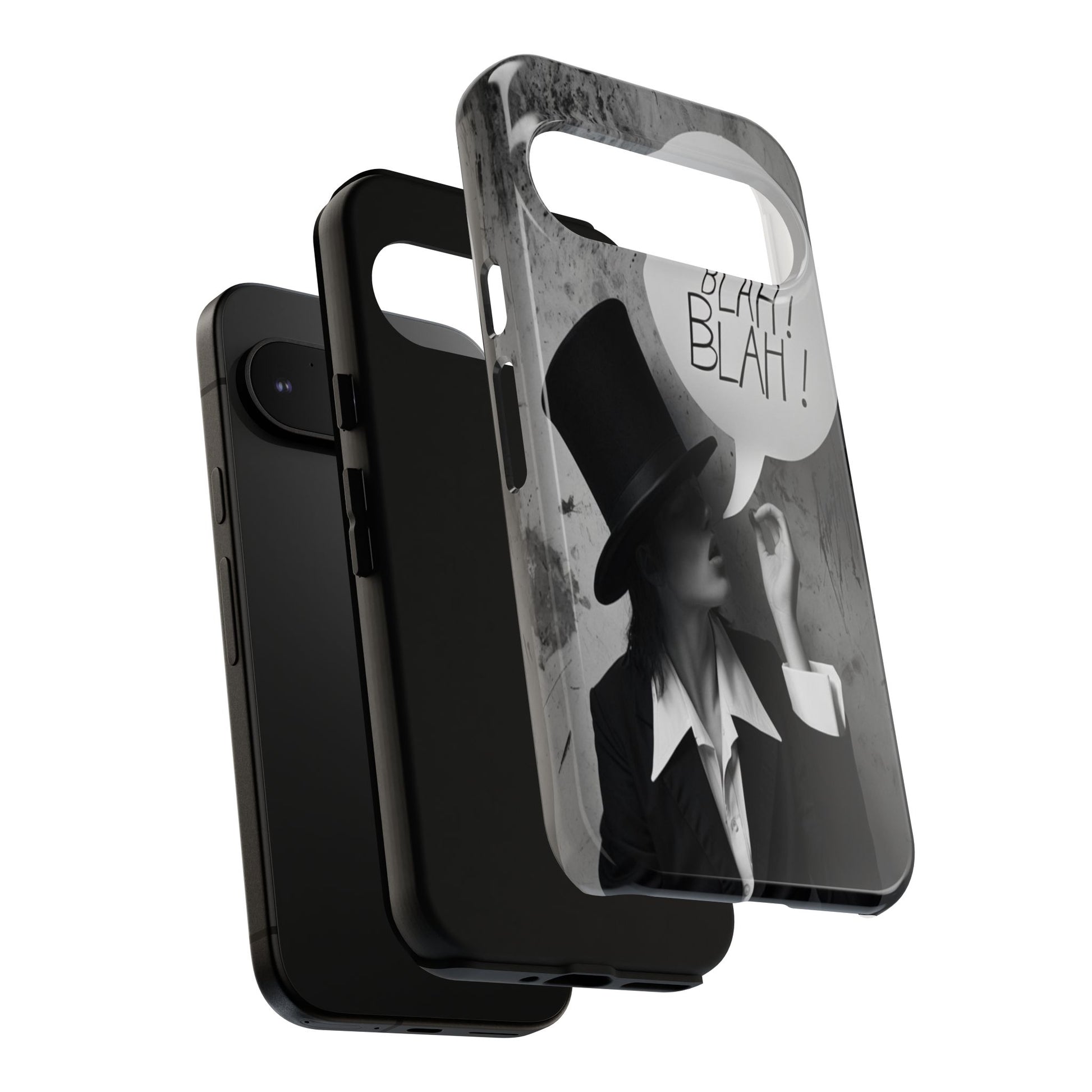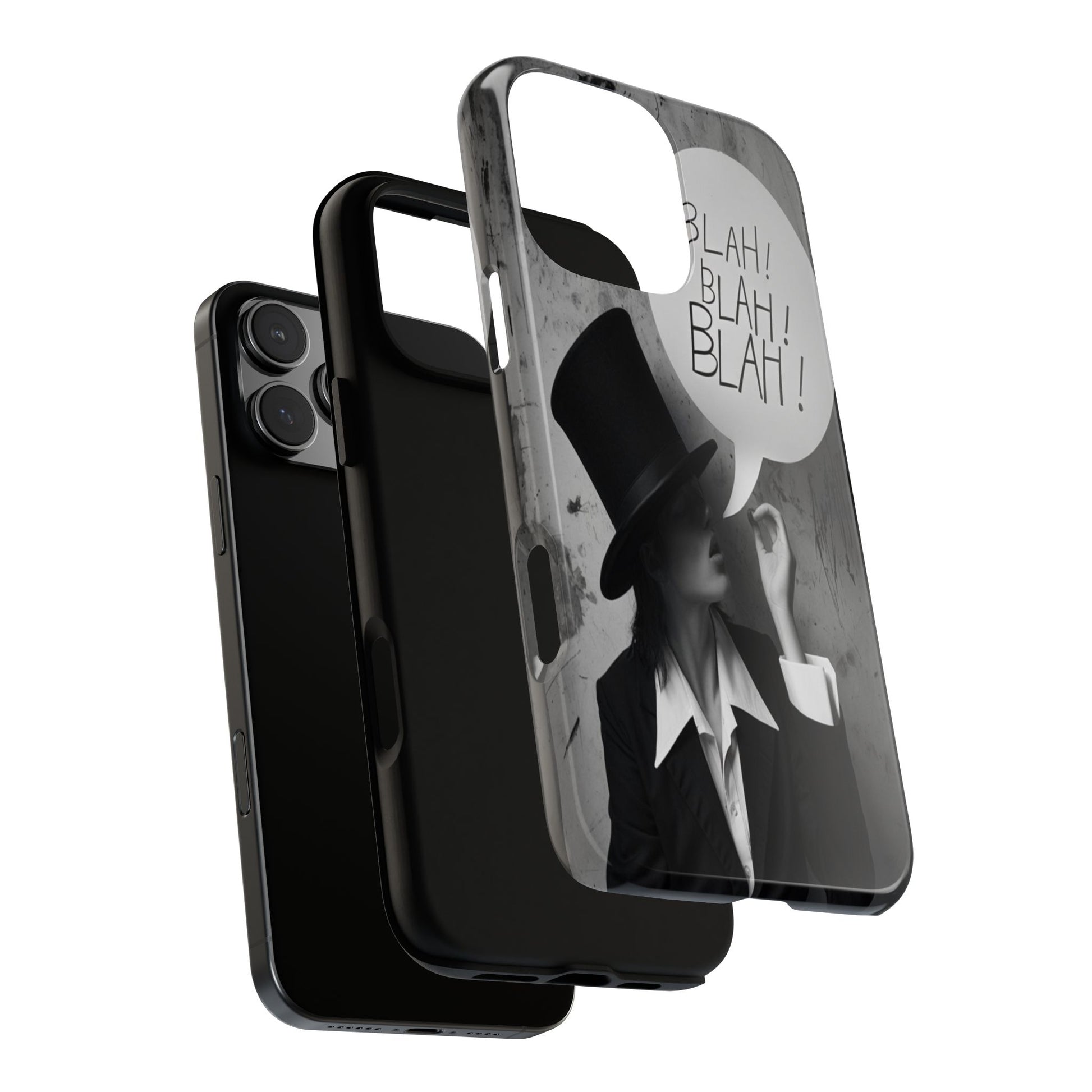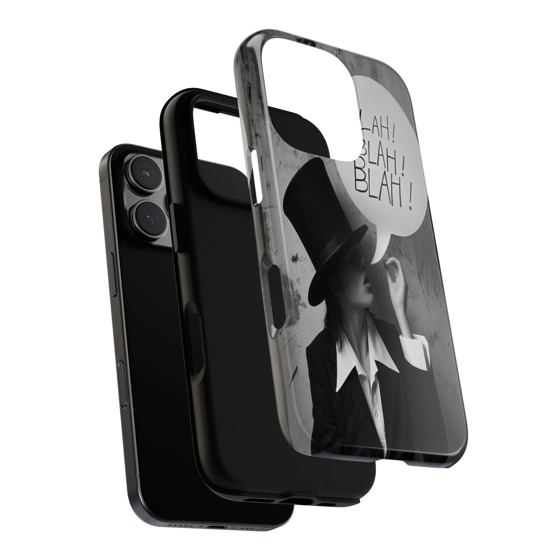 Introducing a stylish and durable phone case, perfect for those who love to express themselves with bold designs! This phone case features a striking image of a fashionable figure in a top hat, surrounded by a whimsical speech bubble, making it a unique accessory for your device. Its sleek design not only looks great but also provides exceptional protection for your phone. Ideal for young adults and anyone wanting to showcase a blend of personality and functionality, this case is a perfect gift for holidays like birthdays, graduations, or just as a treat for yourself. Enjoy peace of mind knowing your phone is secure while making a fashionable statement!
