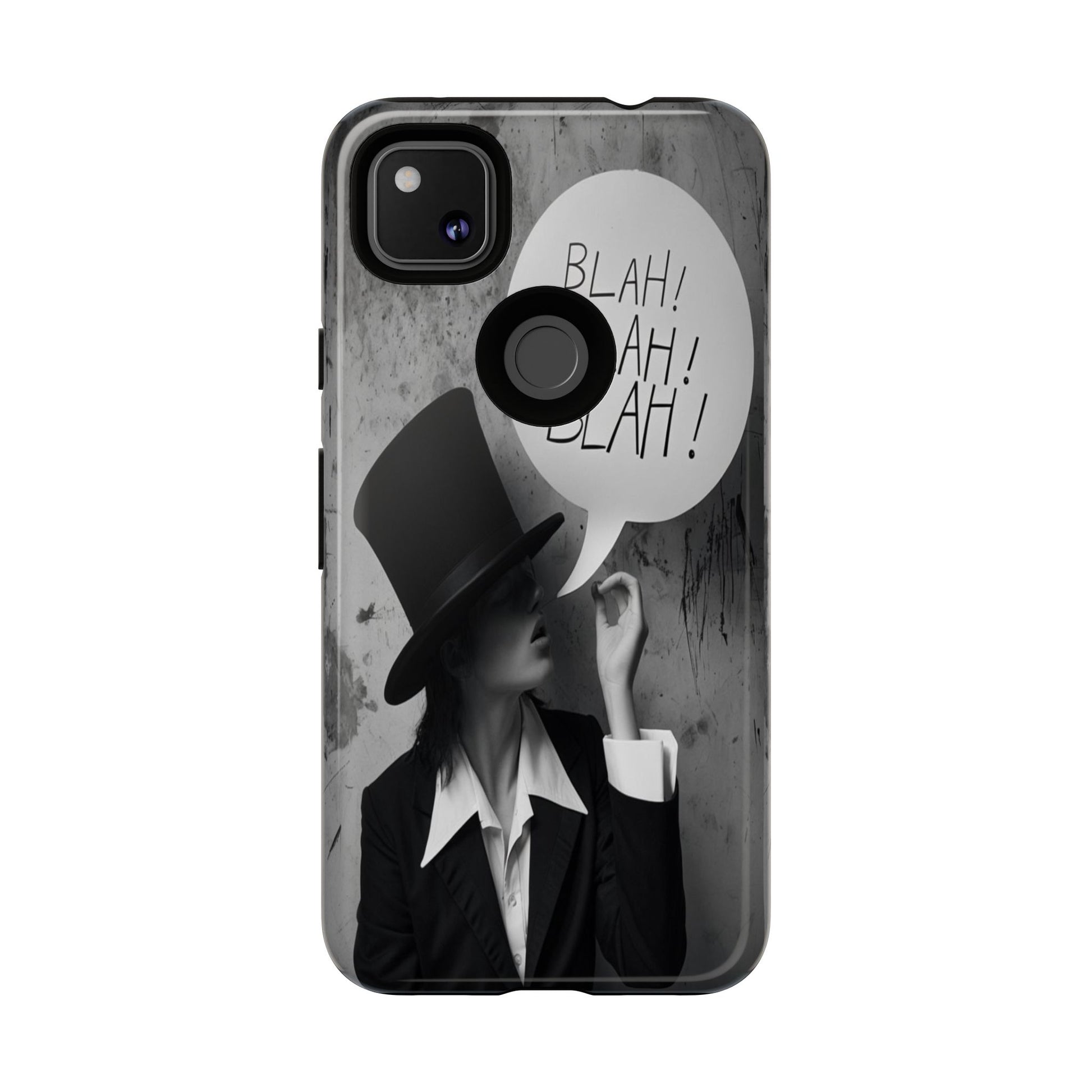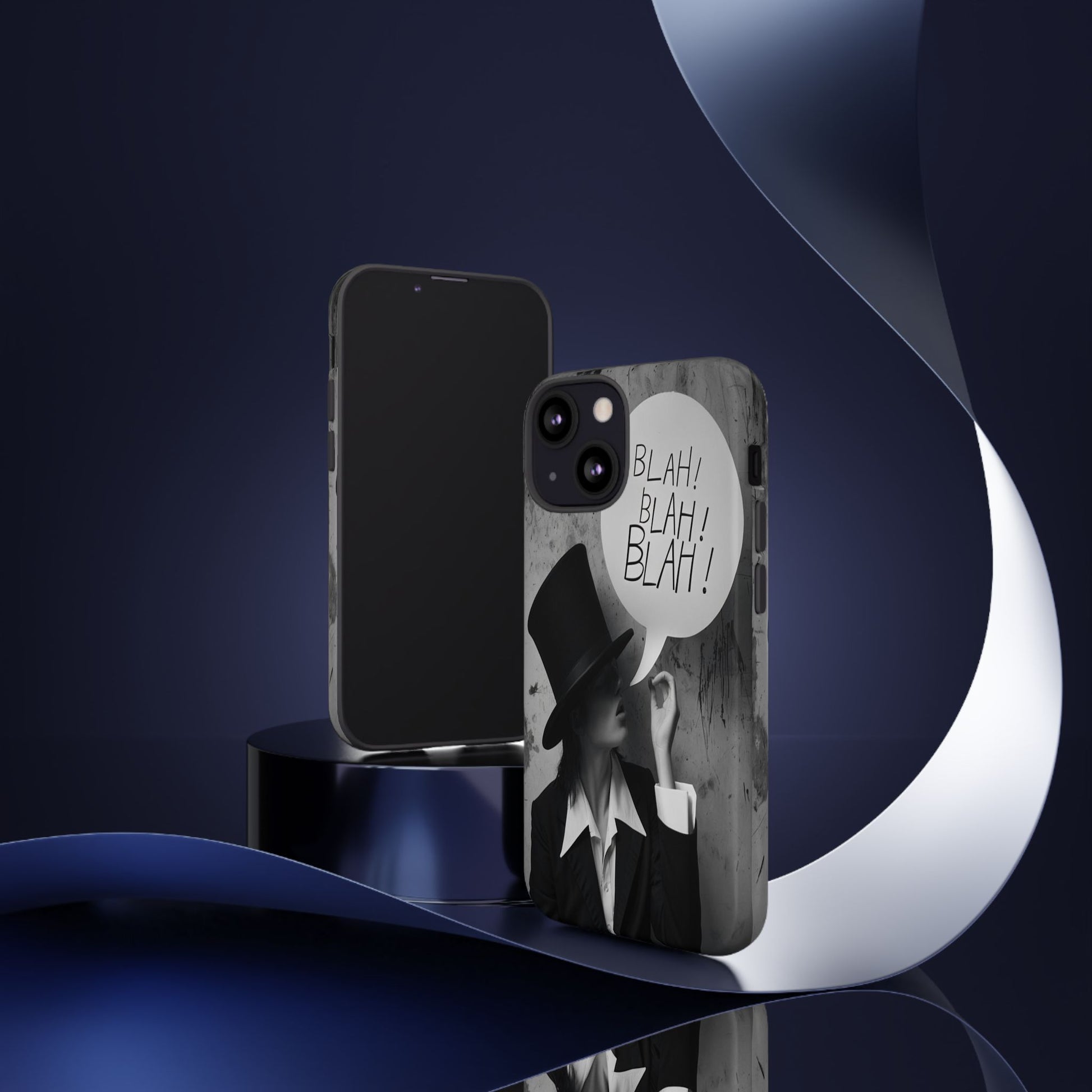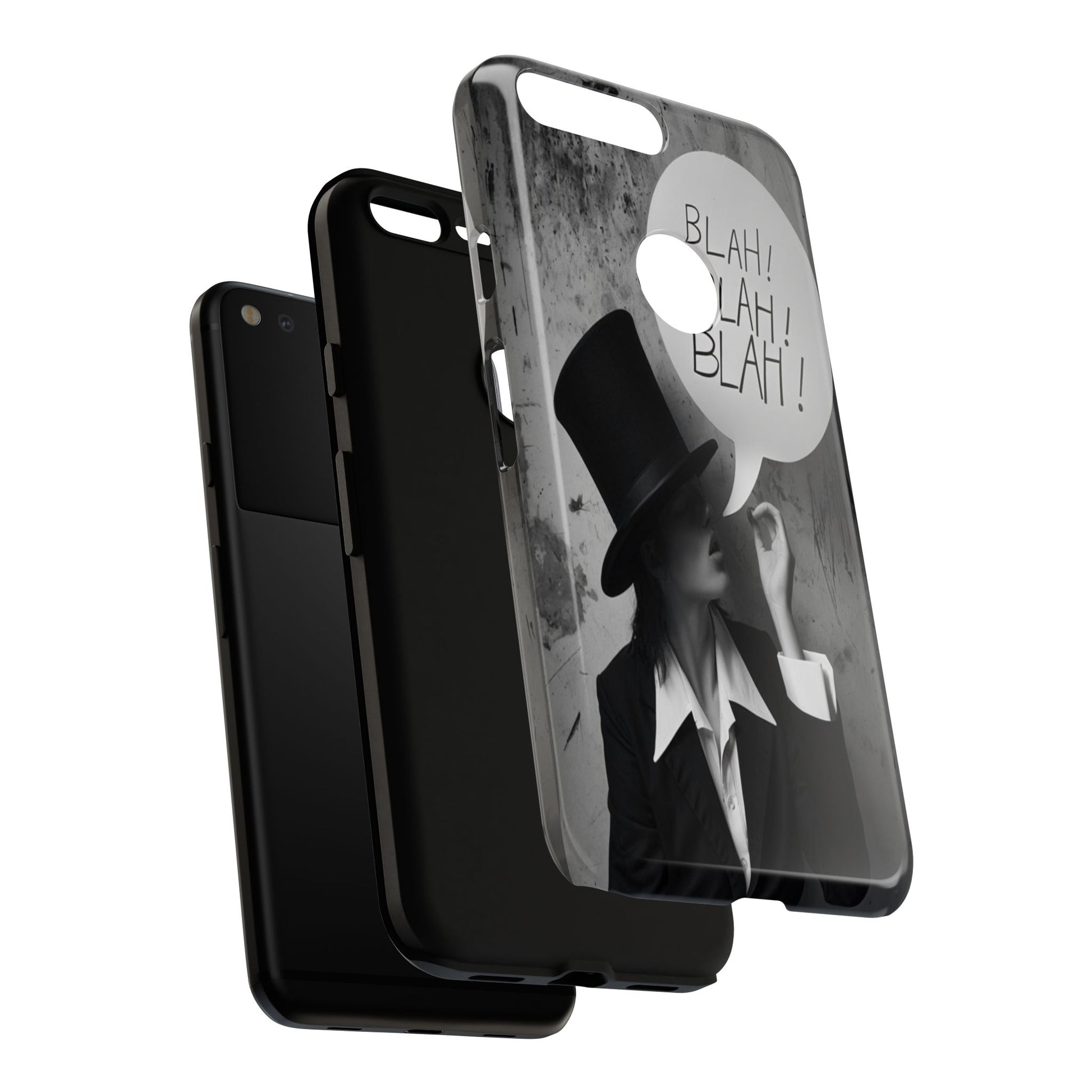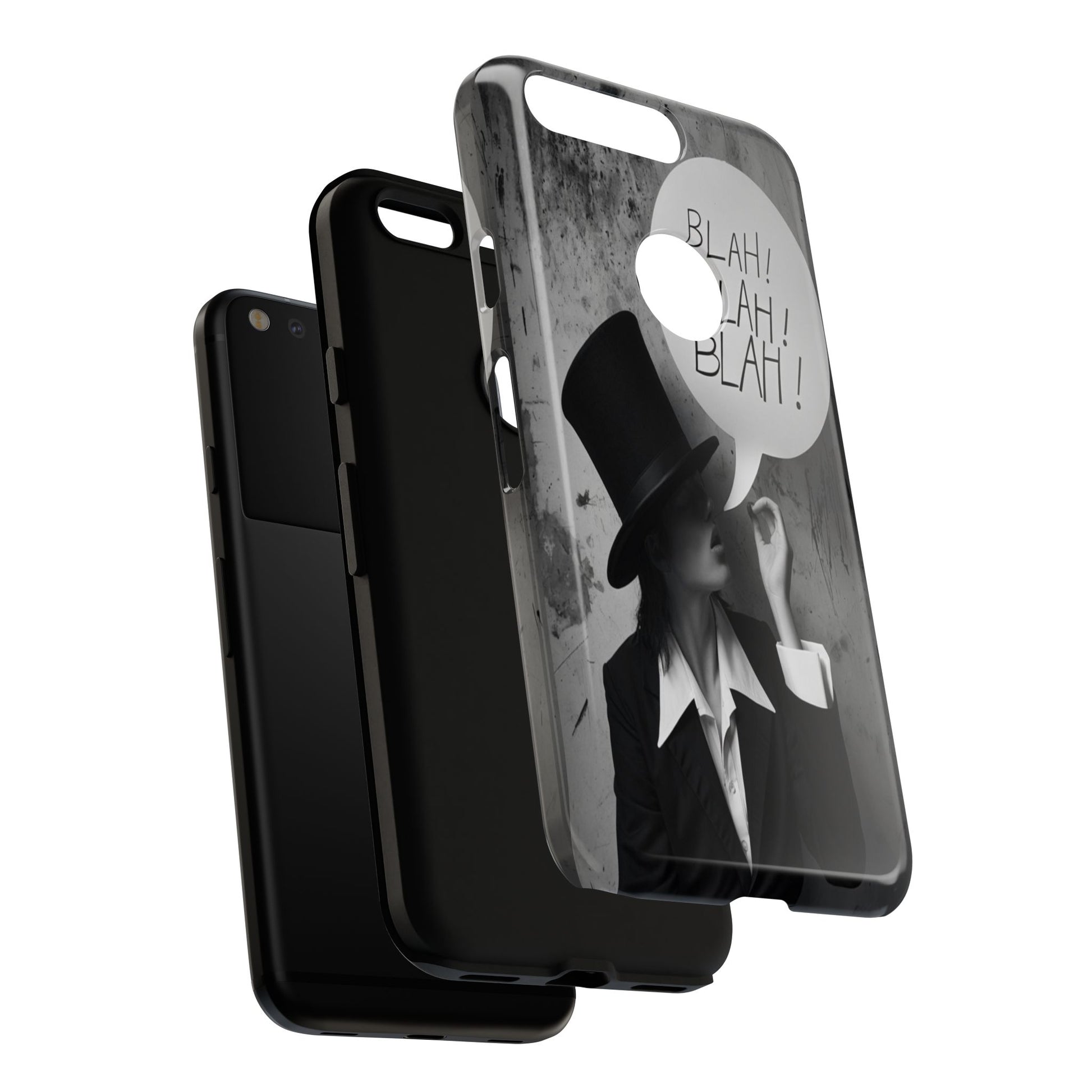 Introducing a stylish and durable phone case, perfect for those who love to express themselves with bold designs! This phone case features a striking image of a fashionable figure in a top hat, surrounded by a whimsical speech bubble, making it a unique accessory for your device. Its sleek design not only looks great but also provides exceptional protection for your phone. Ideal for young adults and anyone wanting to showcase a blend of personality and functionality, this case is a perfect gift for holidays like birthdays, graduations, or just as a treat for yourself. Enjoy peace of mind knowing your phone is secure while making a fashionable statement!