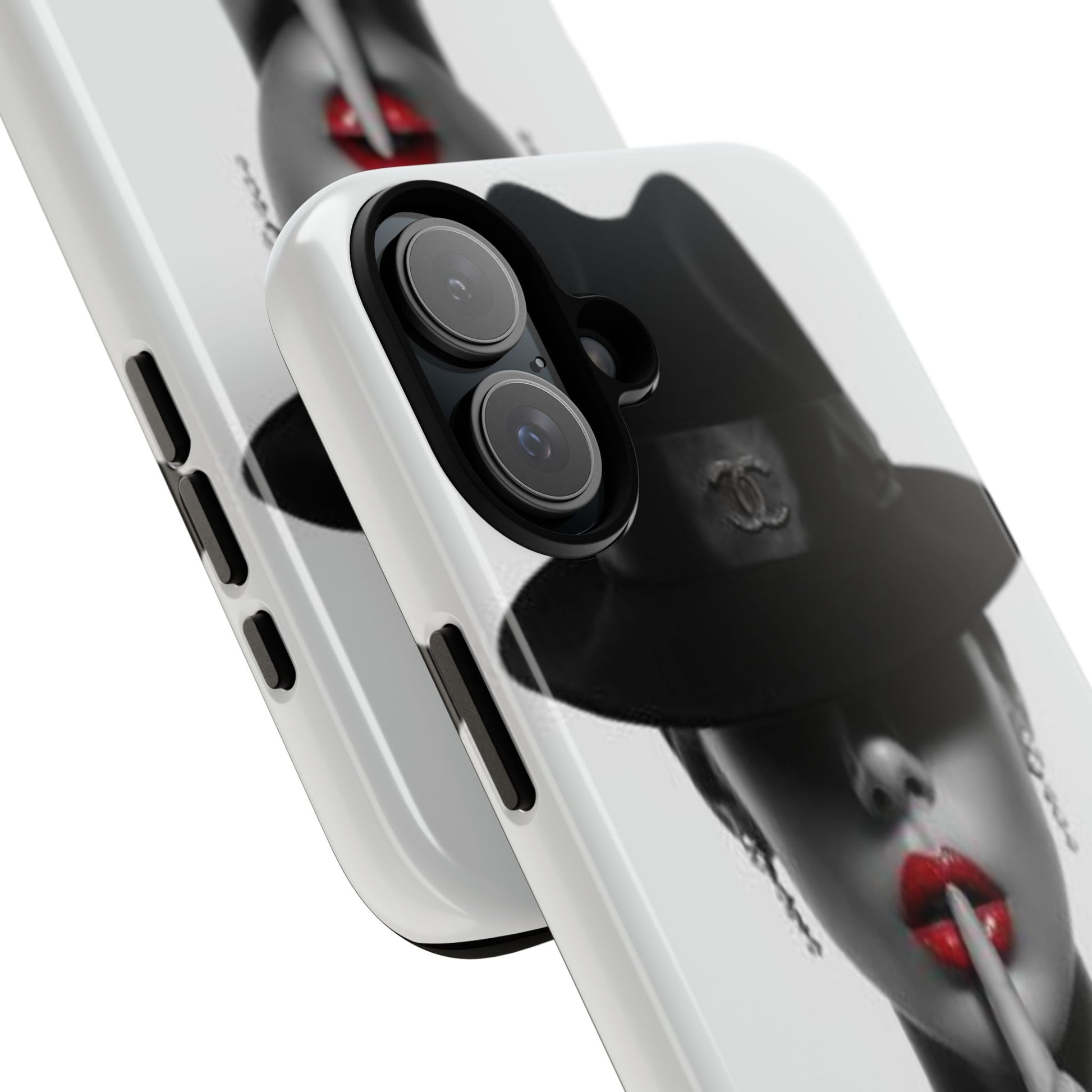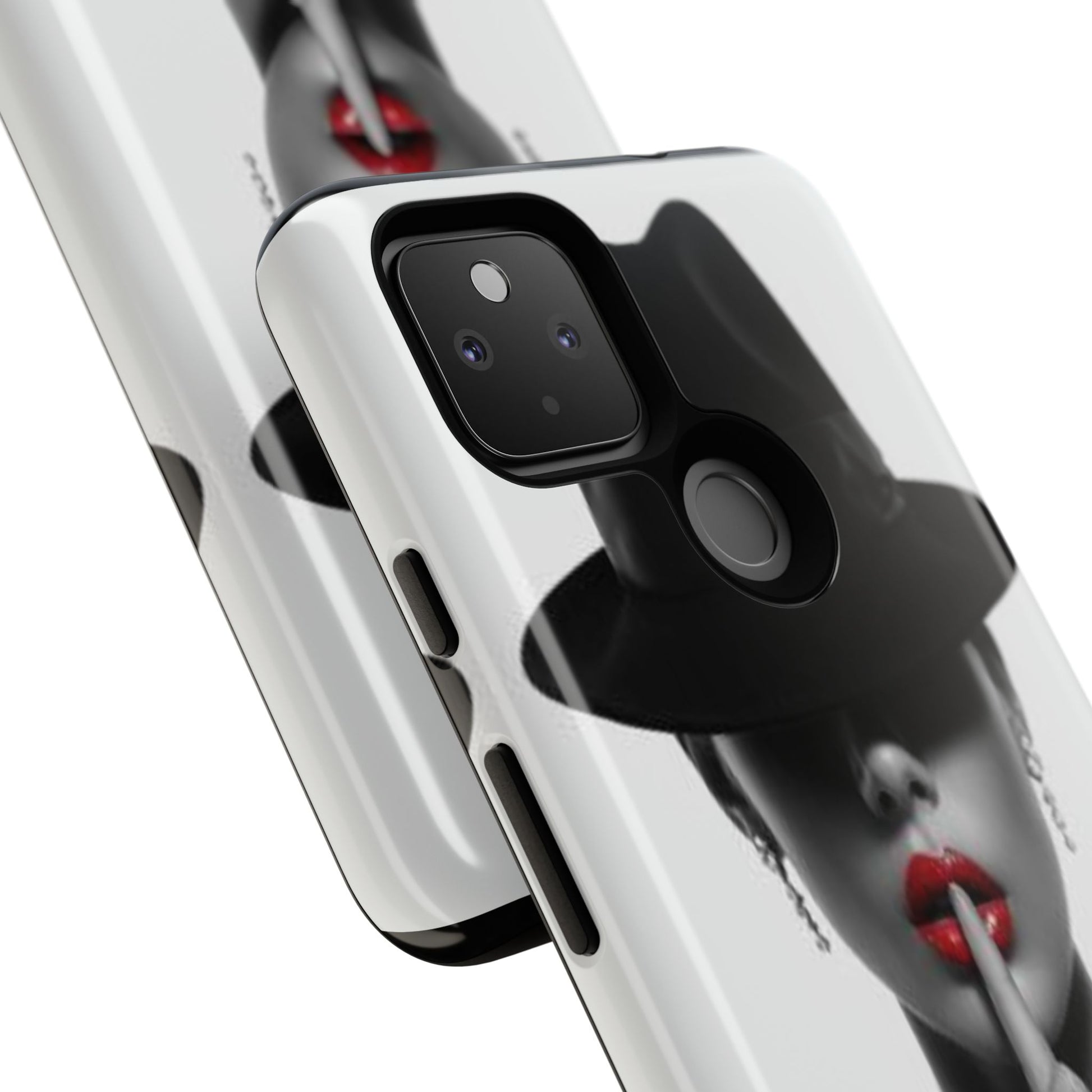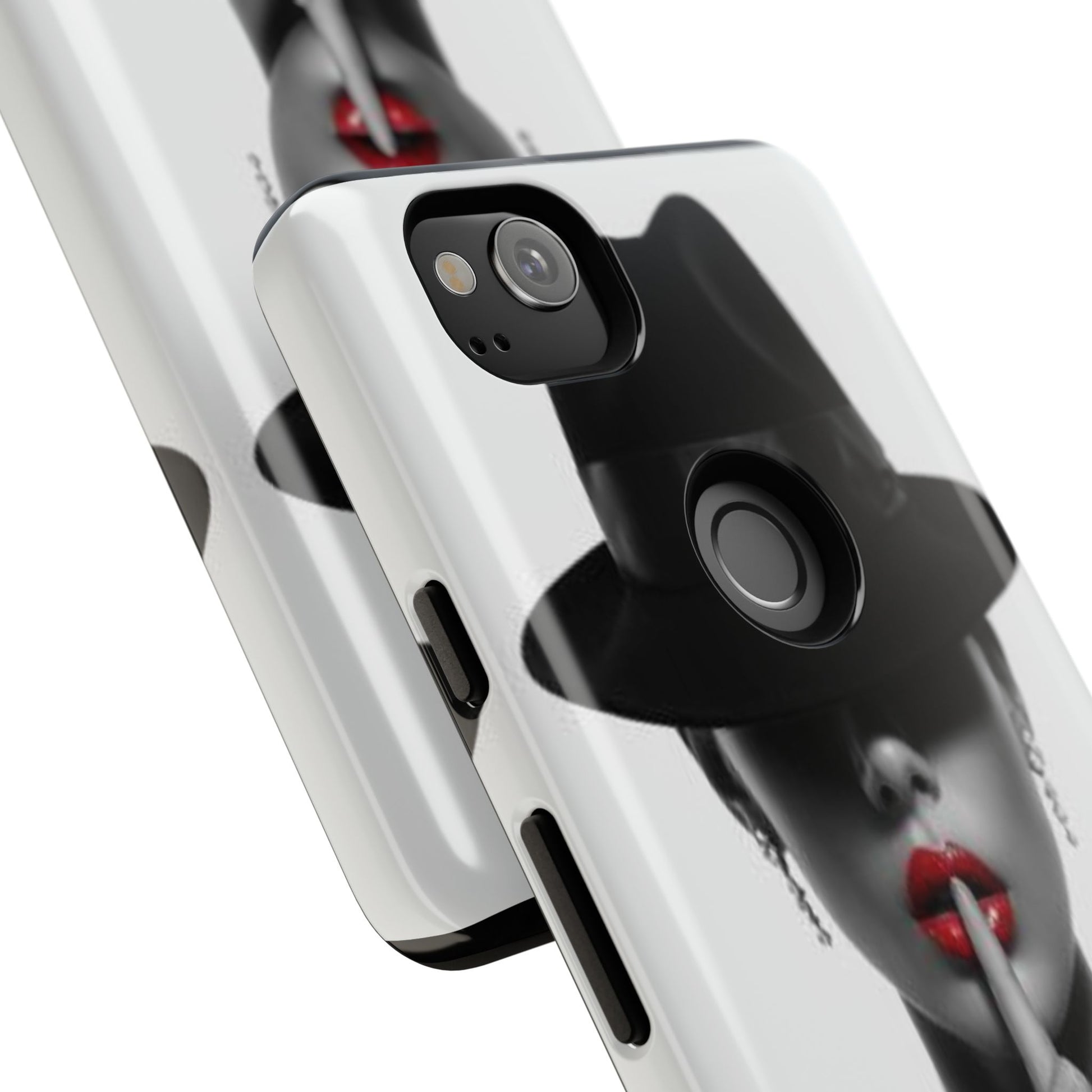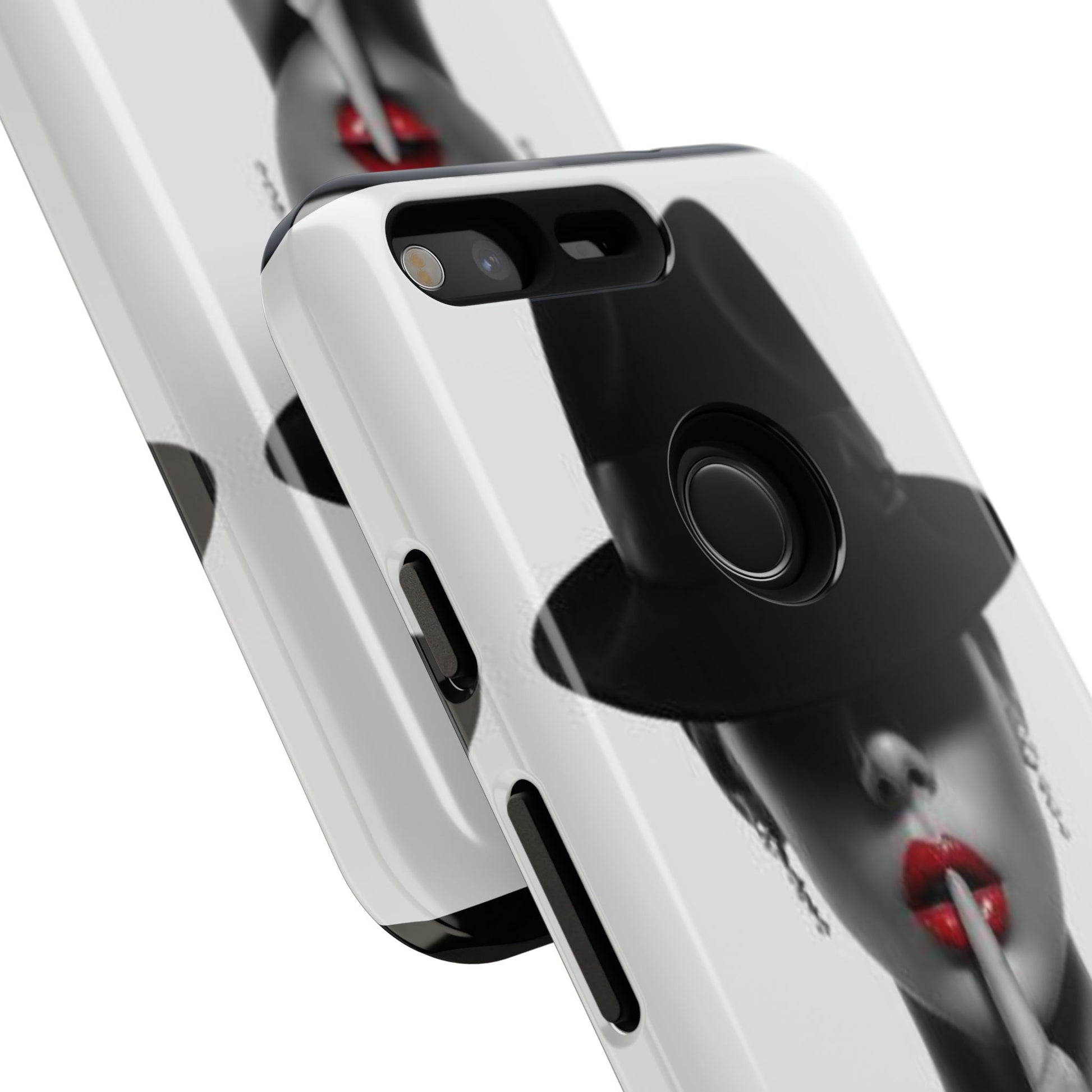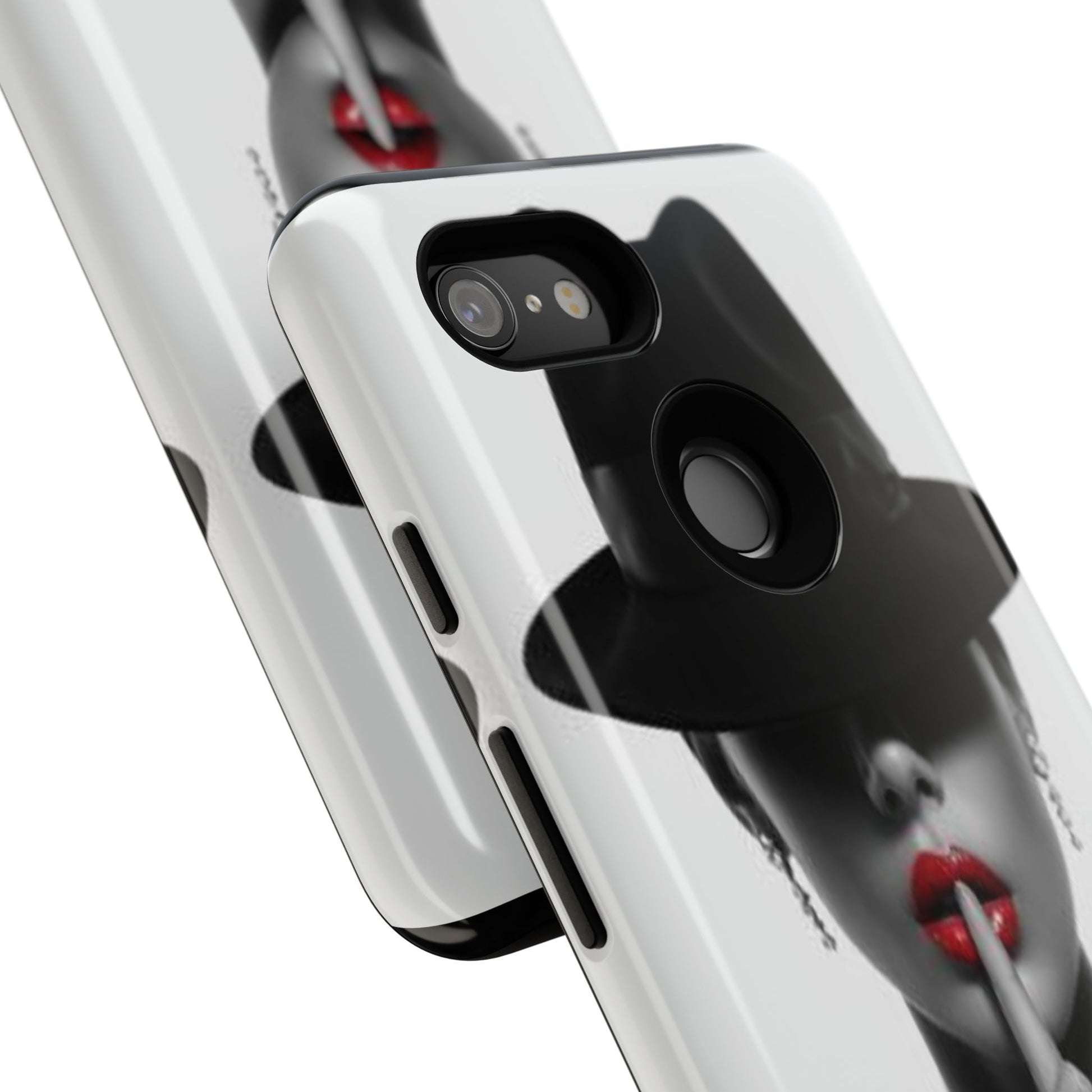 A sleek, dual-layer protective phone case with a striking monochrome portrait and bold red accent. The high-density 3D wrap print captures fine detail across the full shell, while the soft TPU silicone liner cushions against drops and shocks. Weather-resistant inks and certified materials keep the artwork looking sharp outdoors, and the slim profile keeps ports open and wireless charging available. This case brings subtle glamour and everyday protection to your device — a confident, stylish shield for daily routines and coffee-shop moments.
