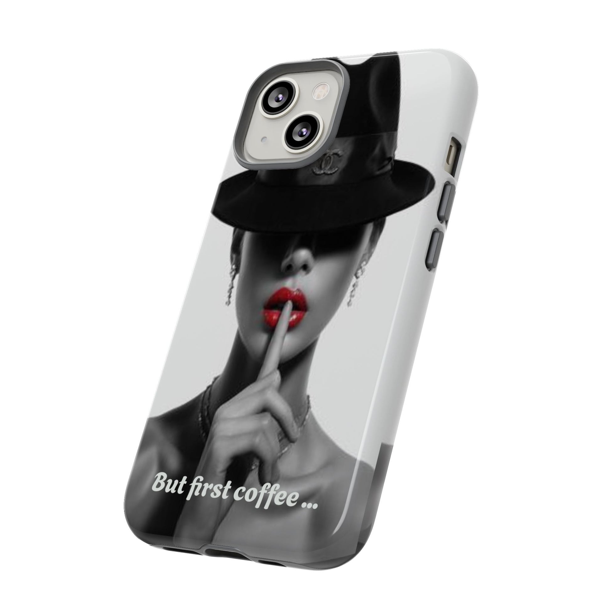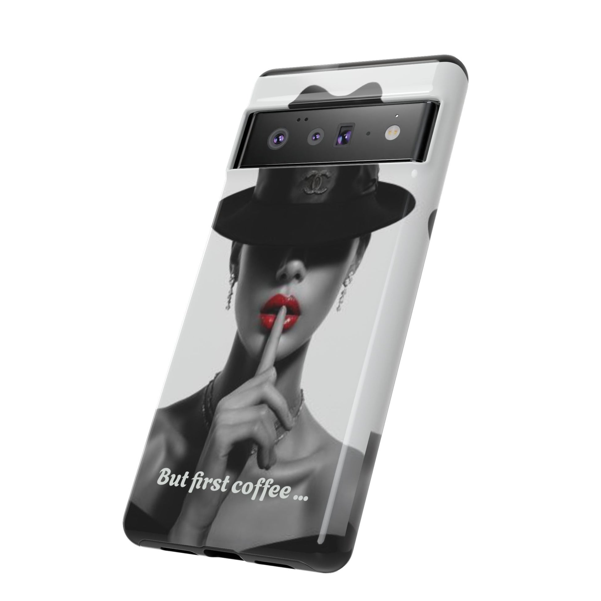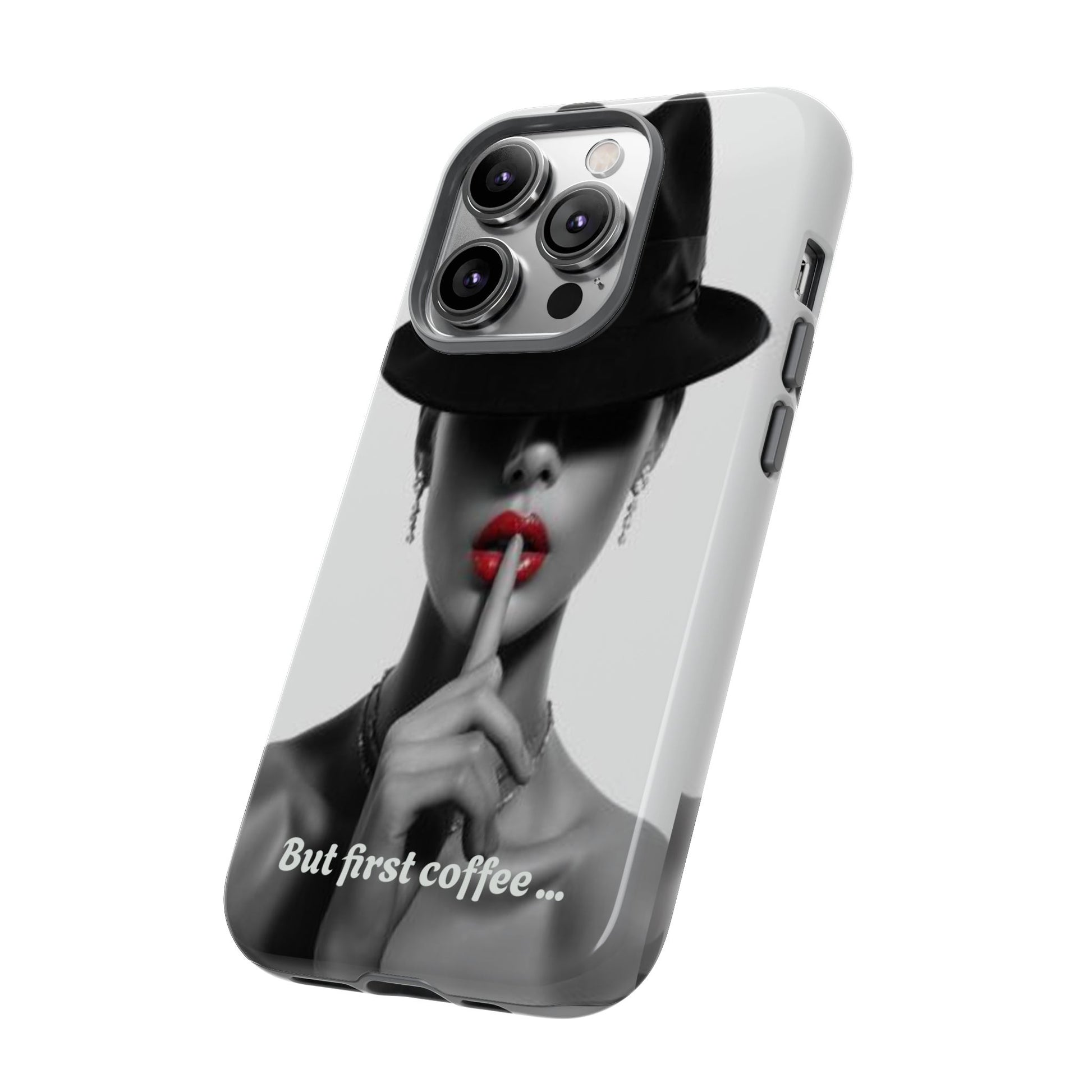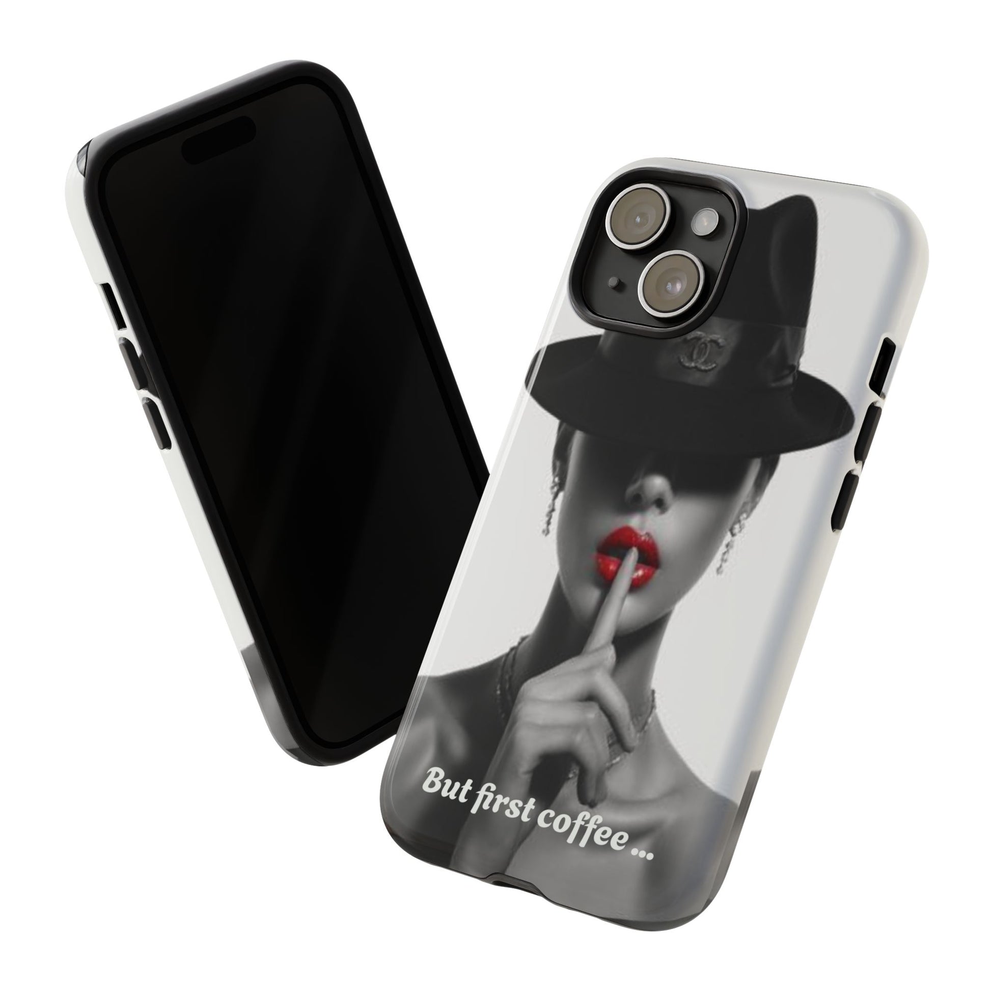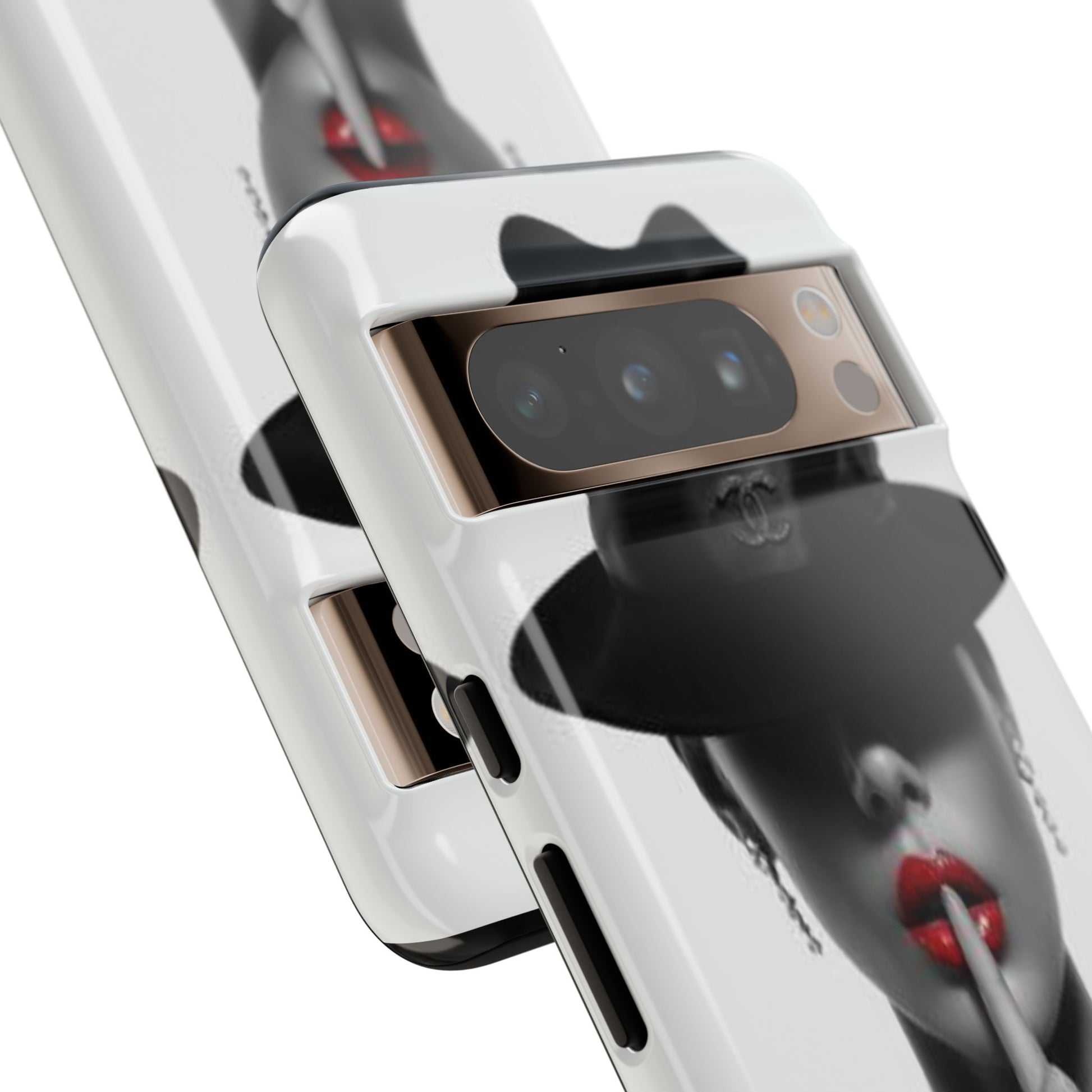 A sleek, dual-layer protective phone case with a striking monochrome portrait and bold red accent. The high-density 3D wrap print captures fine detail across the full shell, while the soft TPU silicone liner cushions against drops and shocks. Weather-resistant inks and certified materials keep the artwork looking sharp outdoors, and the slim profile keeps ports open and wireless charging available. This case brings subtle glamour and everyday protection to your device — a confident, stylish shield for daily routines and coffee-shop moments.