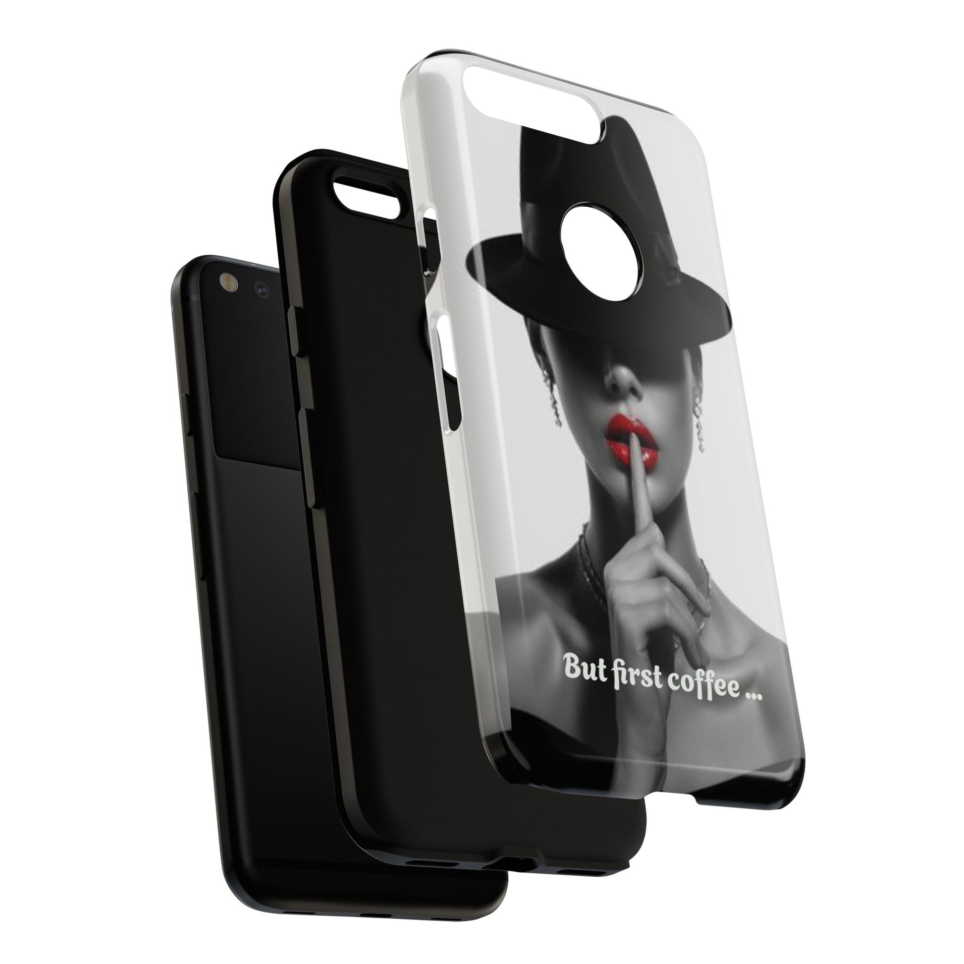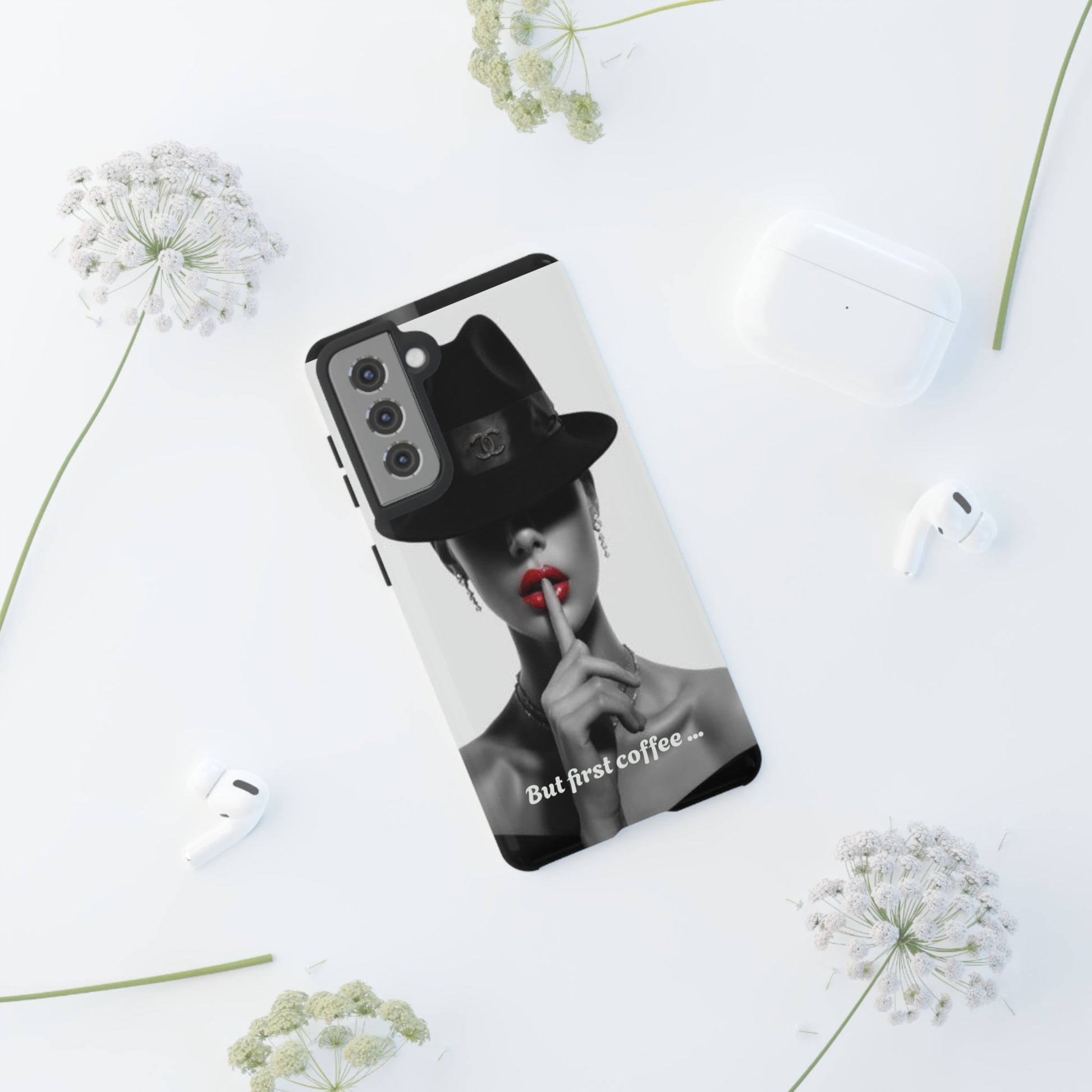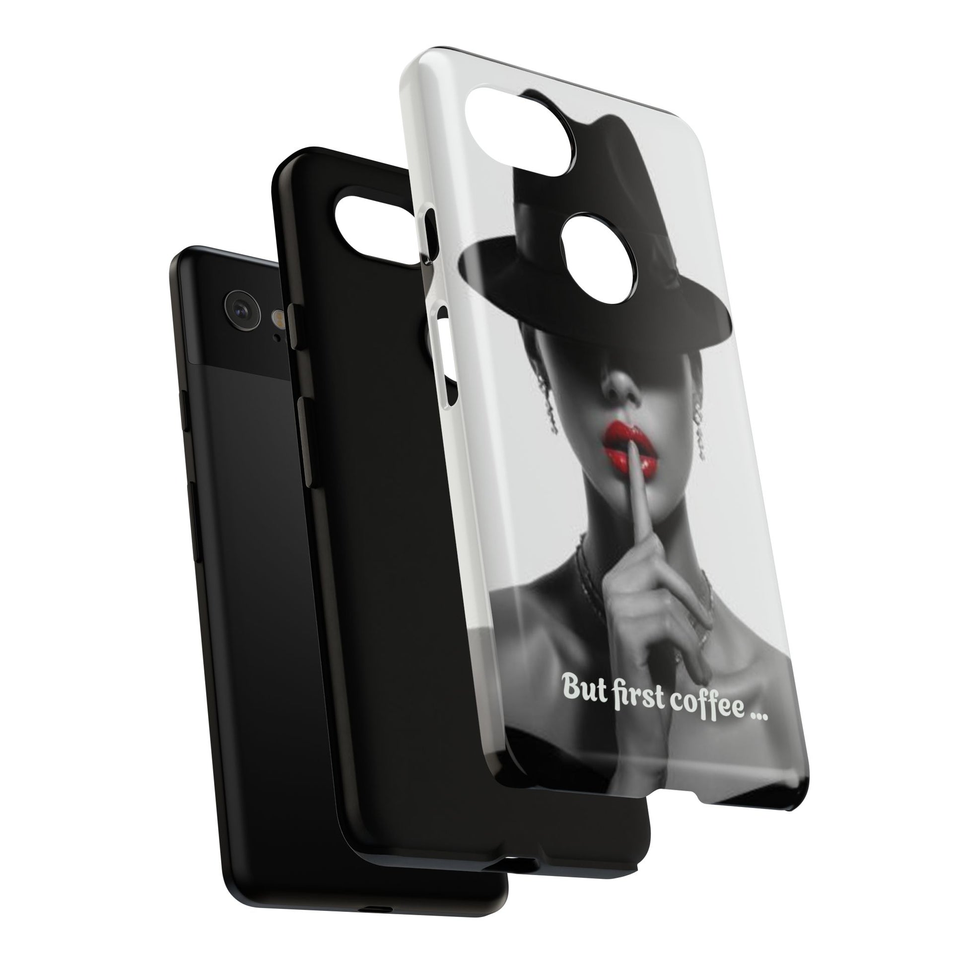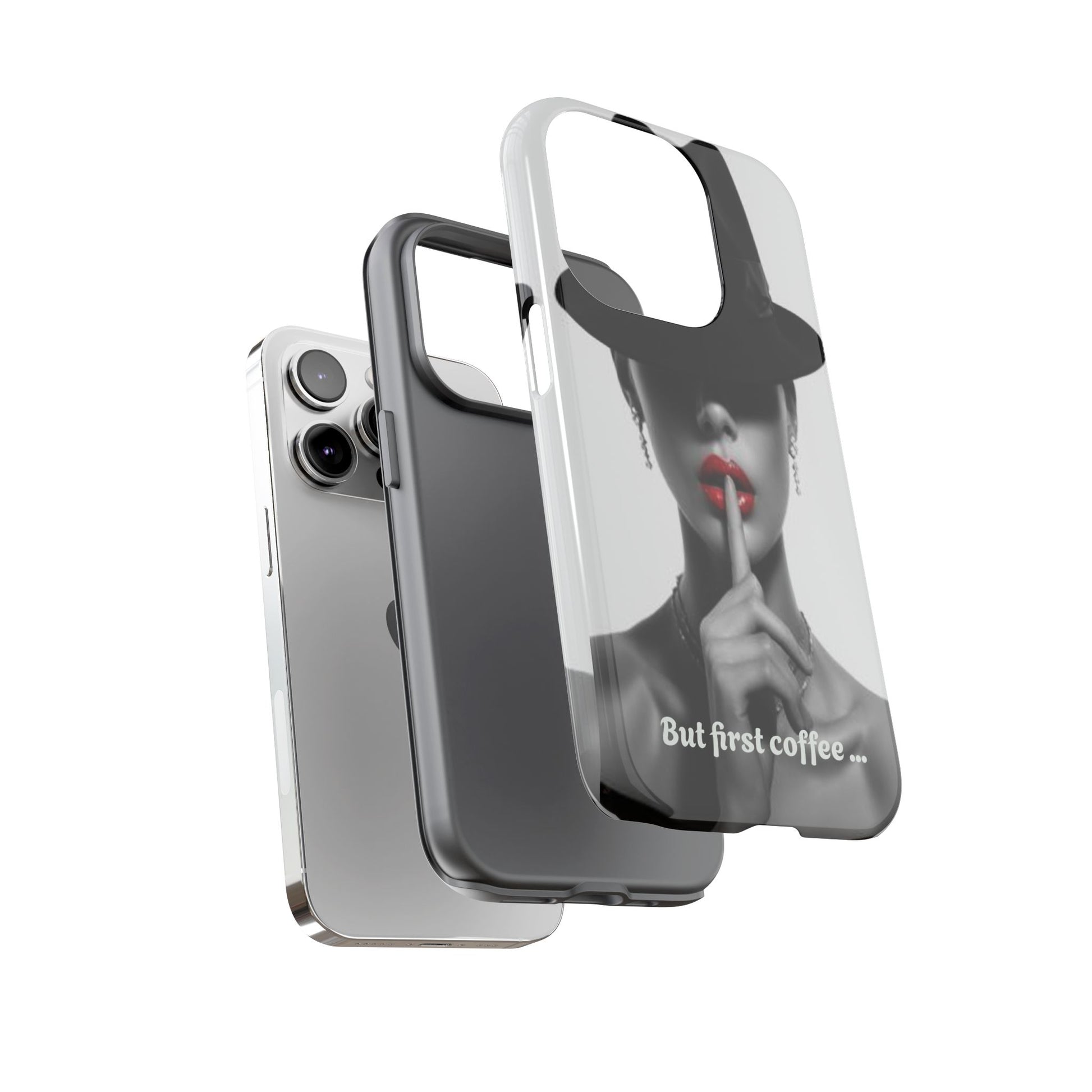 A sleek, dual-layer protective phone case with a striking monochrome portrait and bold red accent. The high-density 3D wrap print captures fine detail across the full shell, while the soft TPU silicone liner cushions against drops and shocks. Weather-resistant inks and certified materials keep the artwork looking sharp outdoors, and the slim profile keeps ports open and wireless charging available. This case brings subtle glamour and everyday protection to your device — a confident, stylish shield for daily routines and coffee-shop moments.