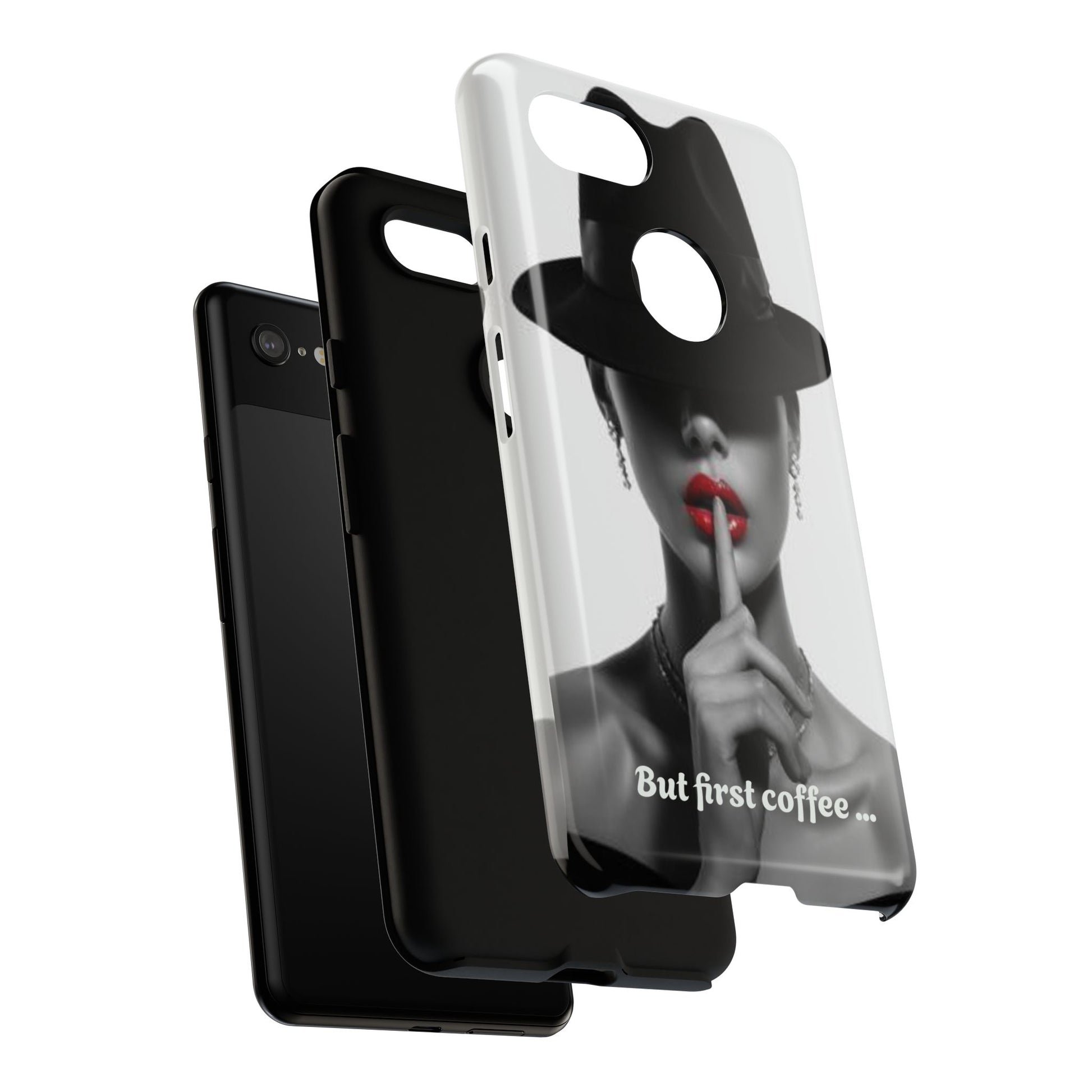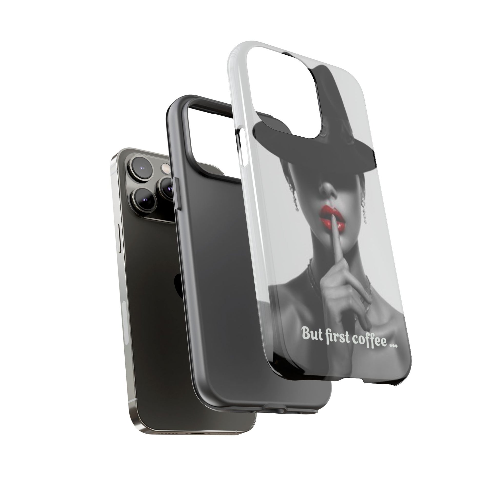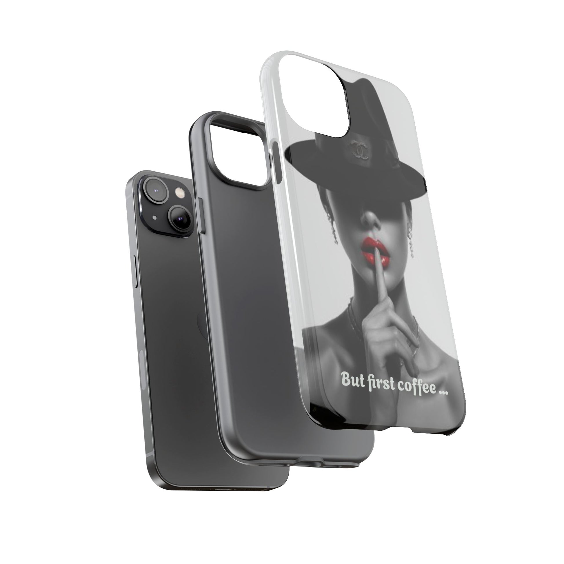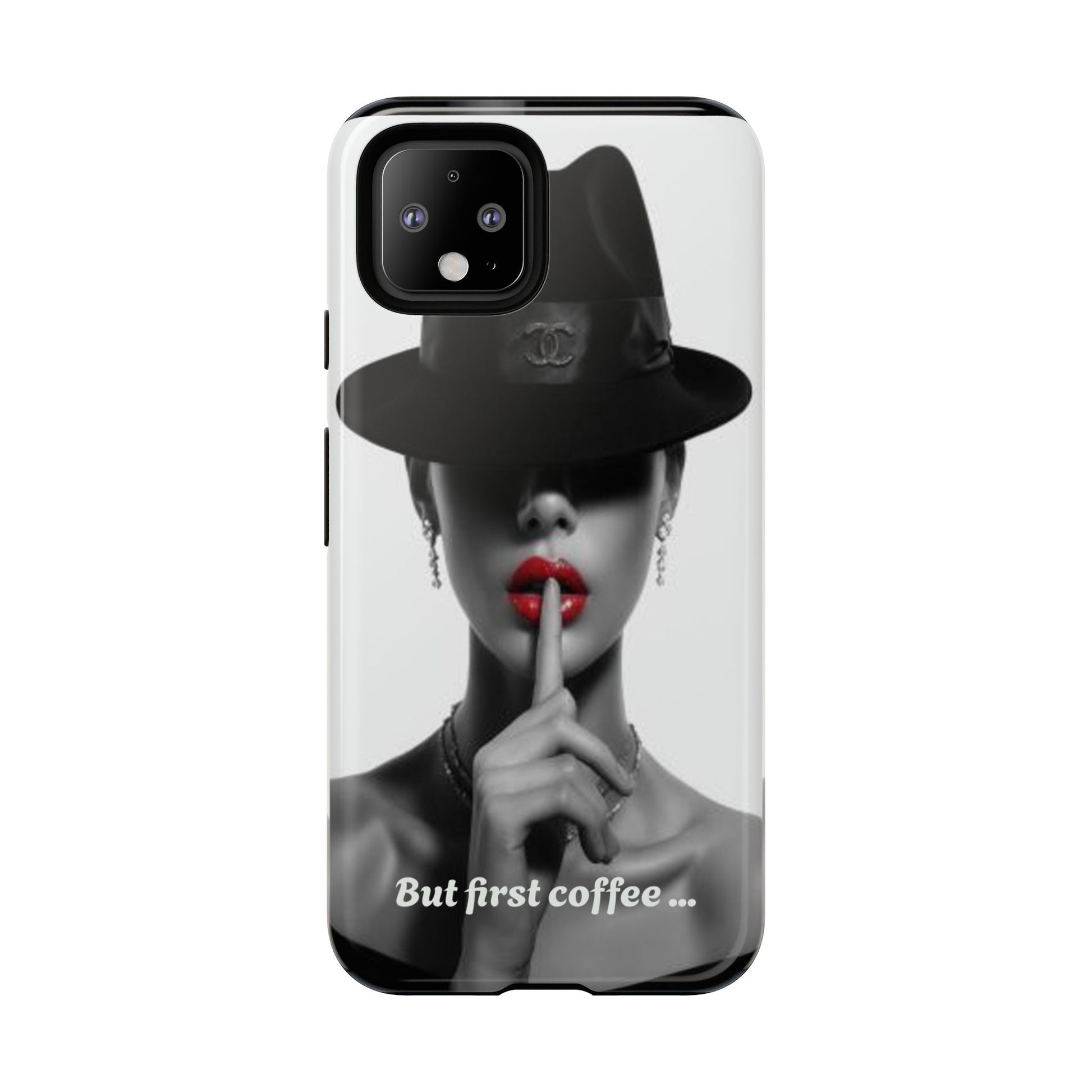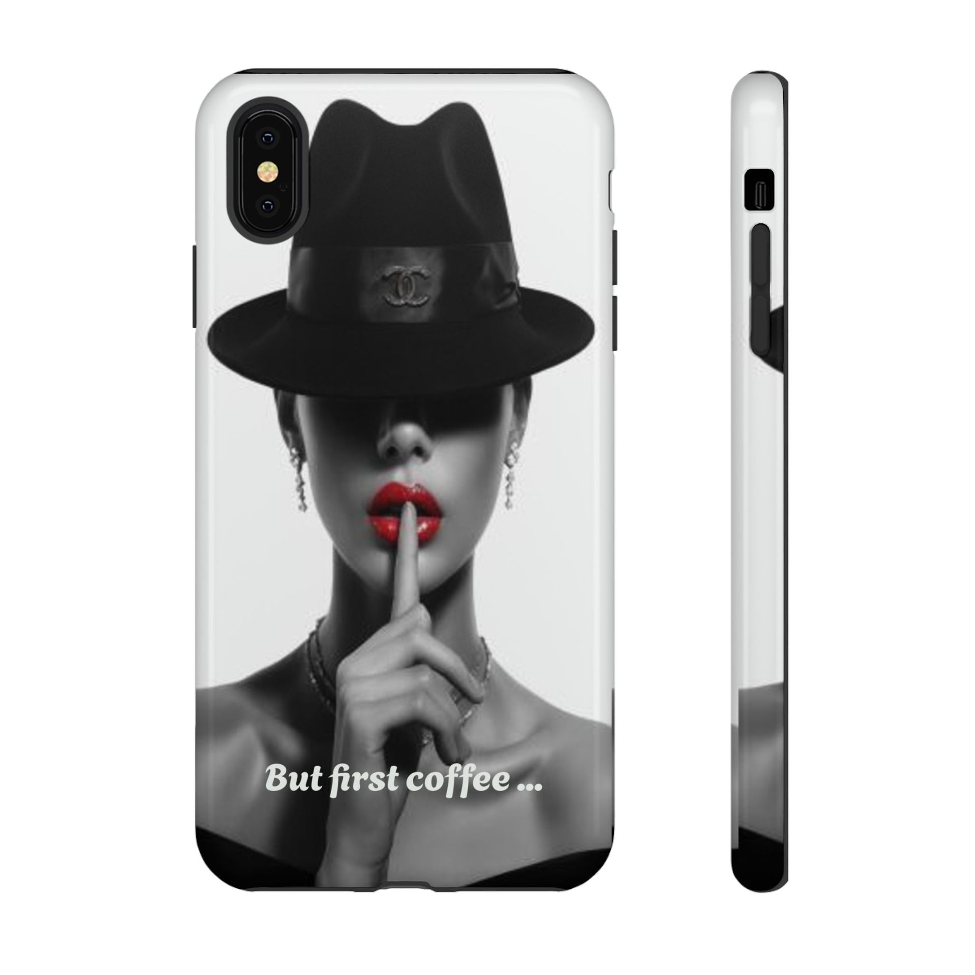 A sleek, dual-layer protective phone case with a striking monochrome portrait and bold red accent. The high-density 3D wrap print captures fine detail across the full shell, while the soft TPU silicone liner cushions against drops and shocks. Weather-resistant inks and certified materials keep the artwork looking sharp outdoors, and the slim profile keeps ports open and wireless charging available. This case brings subtle glamour and everyday protection to your device — a confident, stylish shield for daily routines and coffee-shop moments.