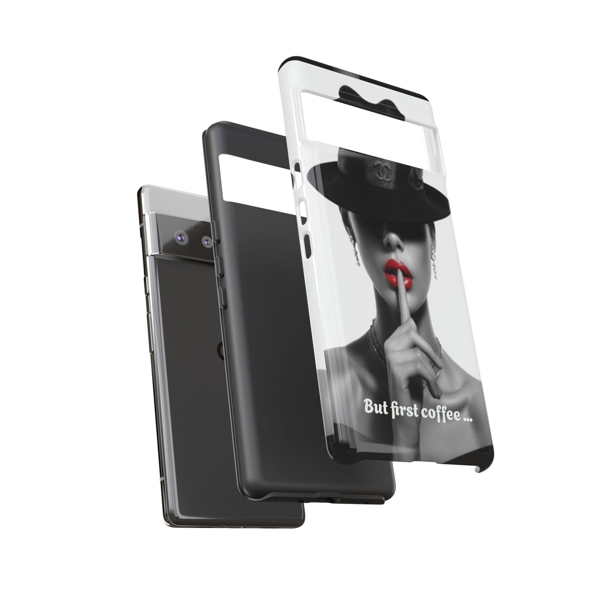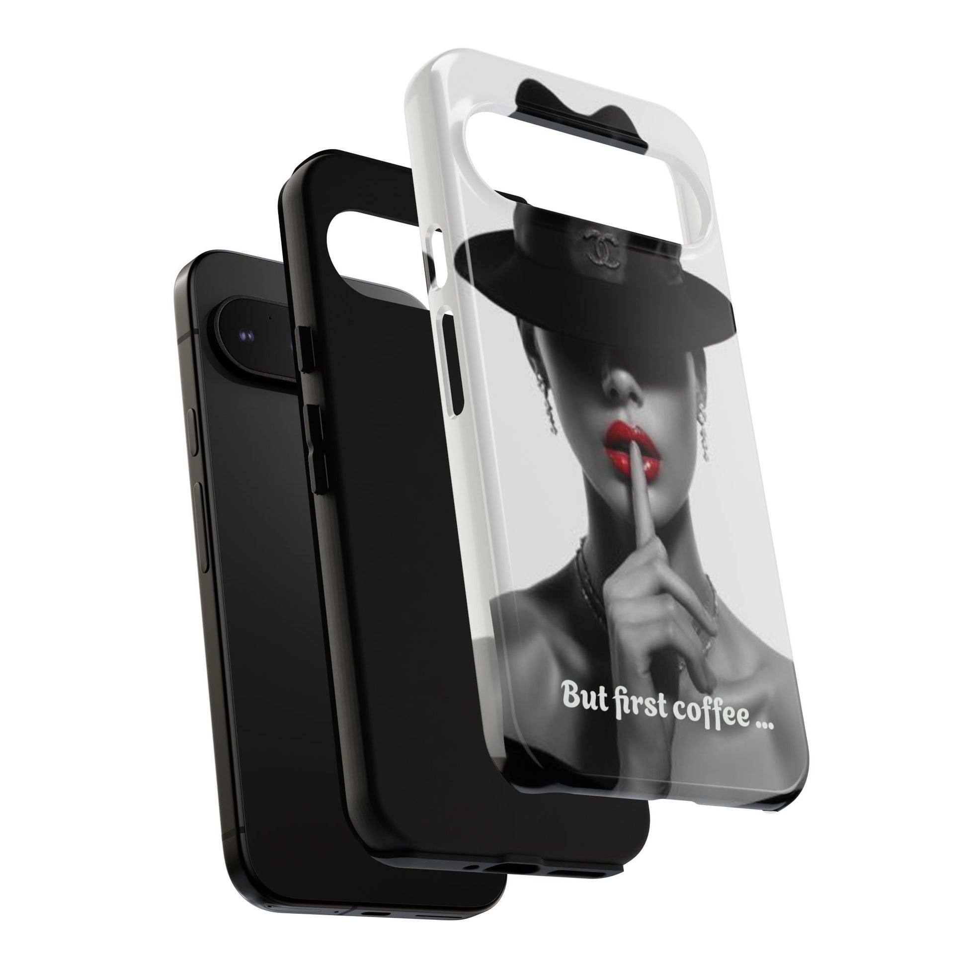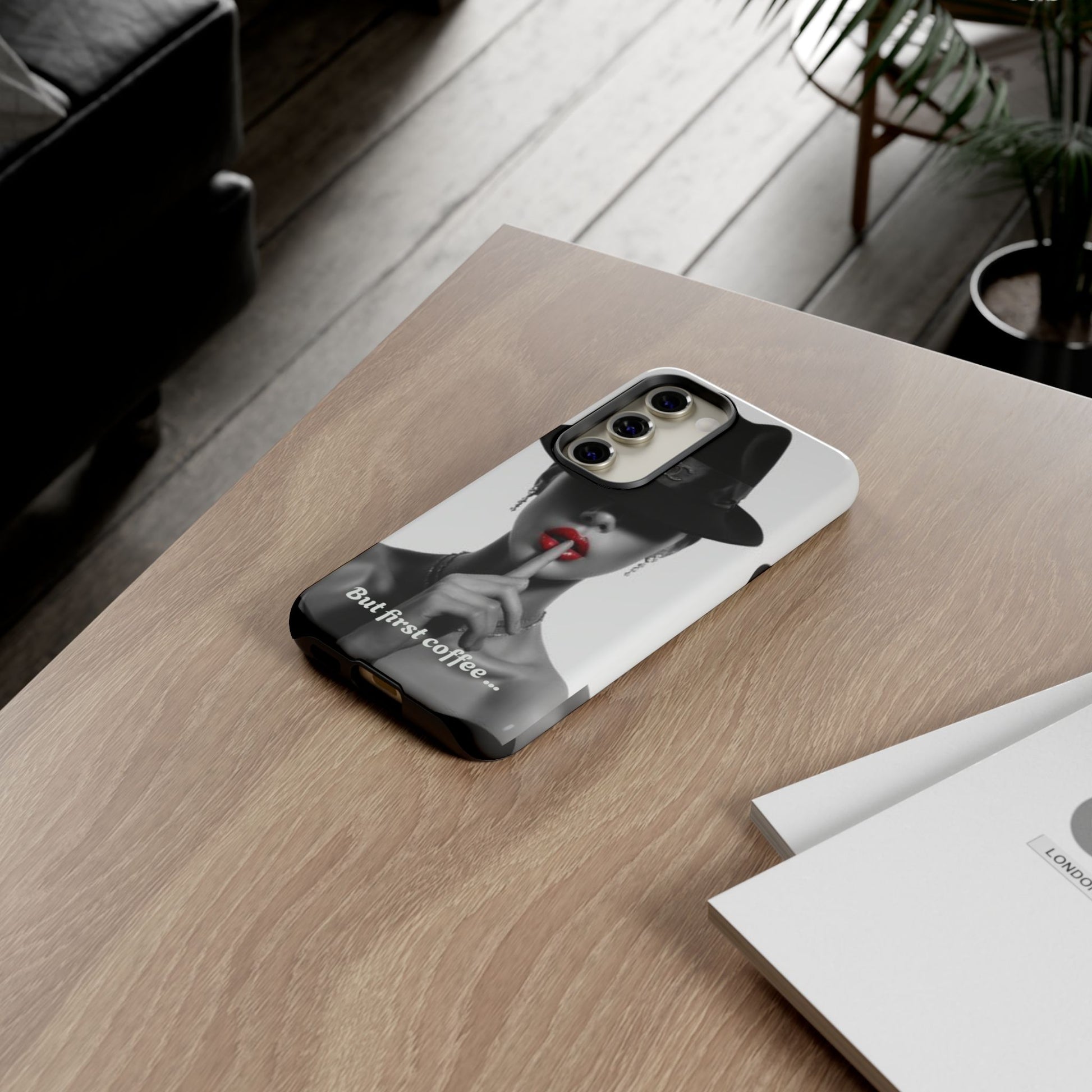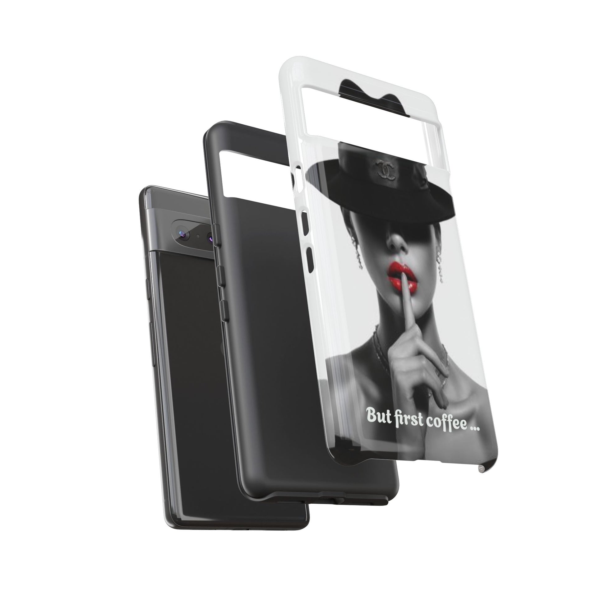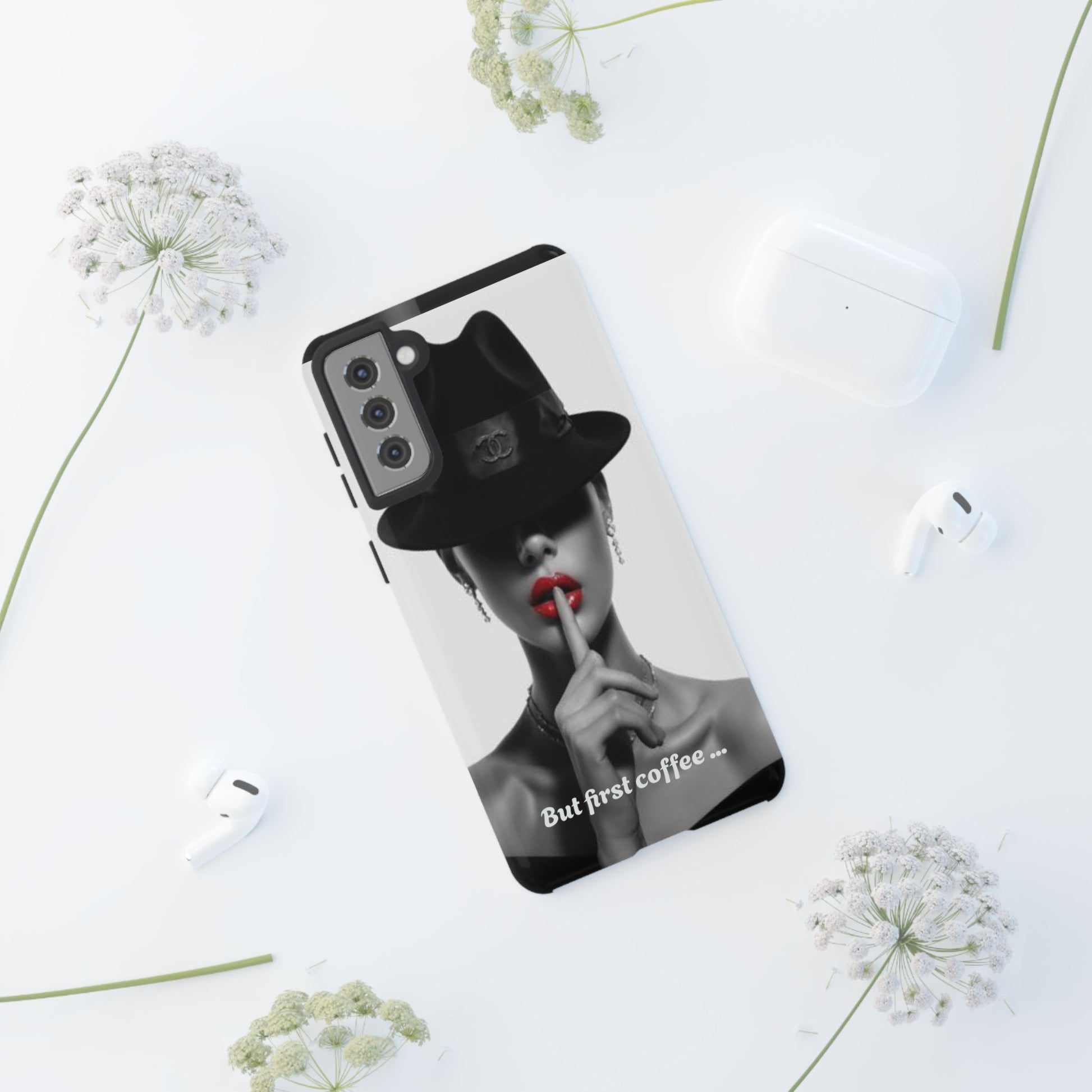 A sleek, dual-layer protective phone case with a striking monochrome portrait and bold red accent. The high-density 3D wrap print captures fine detail across the full shell, while the soft TPU silicone liner cushions against drops and shocks. Weather-resistant inks and certified materials keep the artwork looking sharp outdoors, and the slim profile keeps ports open and wireless charging available. This case brings subtle glamour and everyday protection to your device — a confident, stylish shield for daily routines and coffee-shop moments.