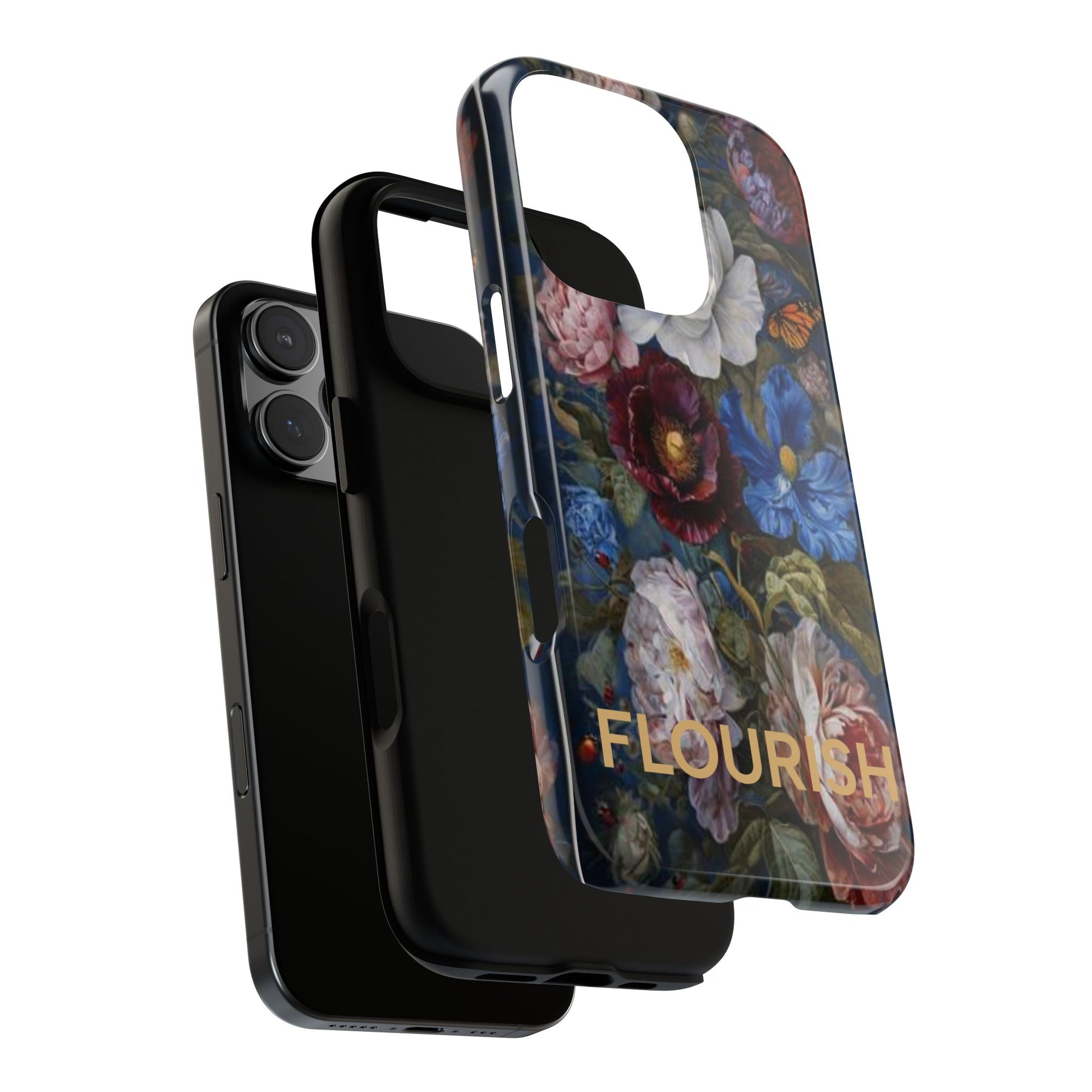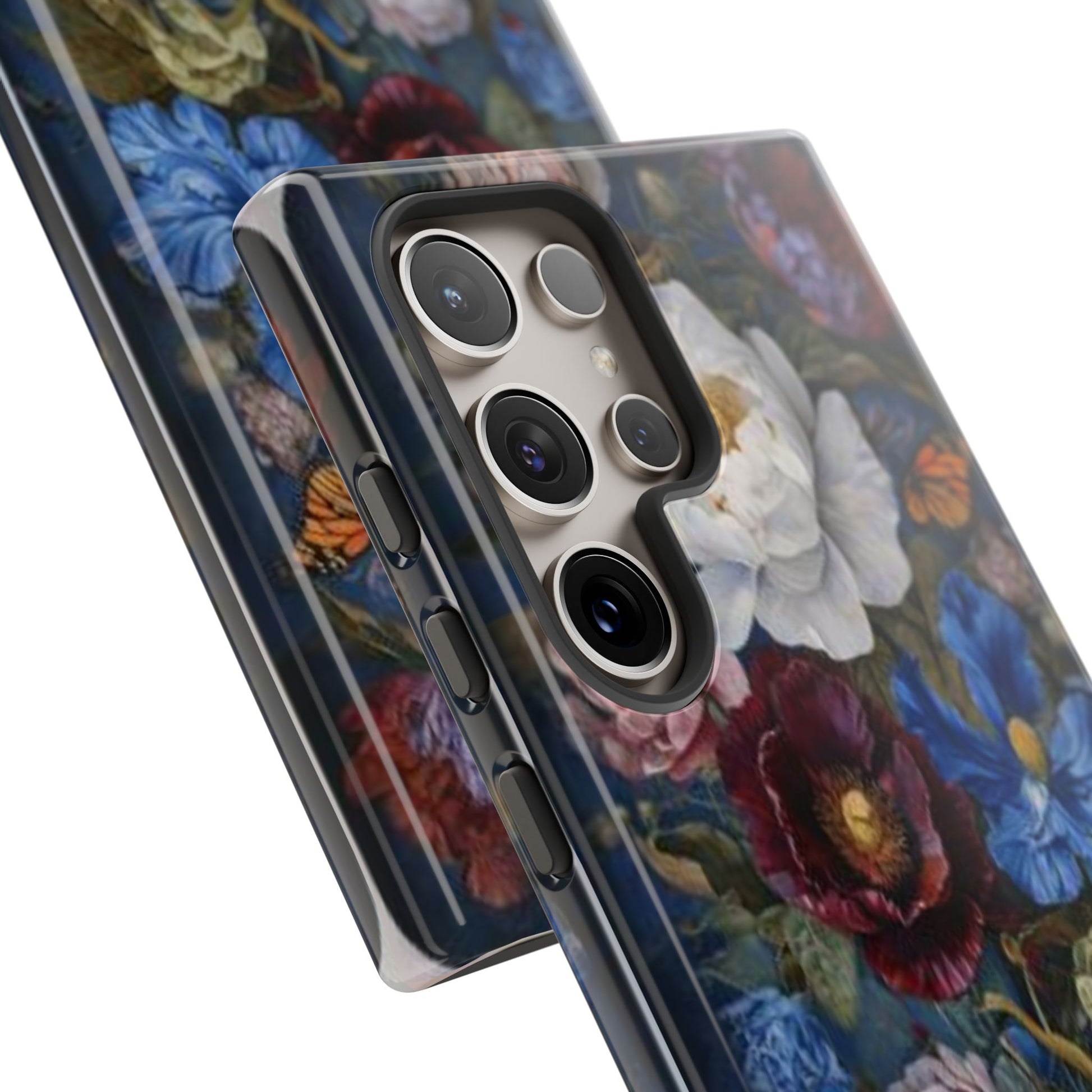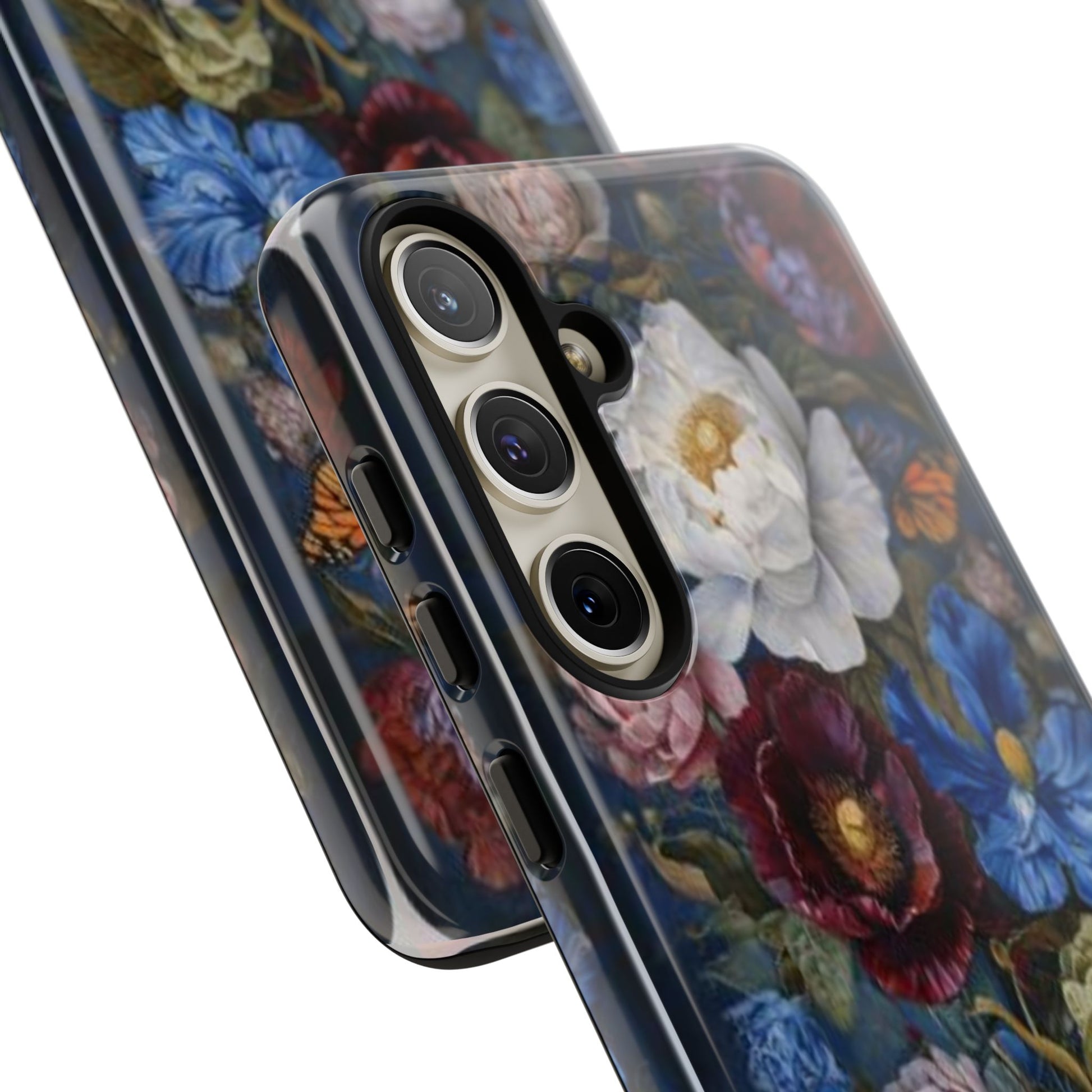 This protective phone case wraps an old-master floral still life around your device, turning everyday carry into a small, portable canvas. The deep, painterly blooms and muted navy background create a quietly luxurious look that ages like a favorite book. The case cushions shocks with a dual-layer construction and a soft TPU liner while a glossy or matte finish preserves rich colors. Use it when you want your phone to feel considered—an accessory that blends artful style with reliable protection for daily life and travel.