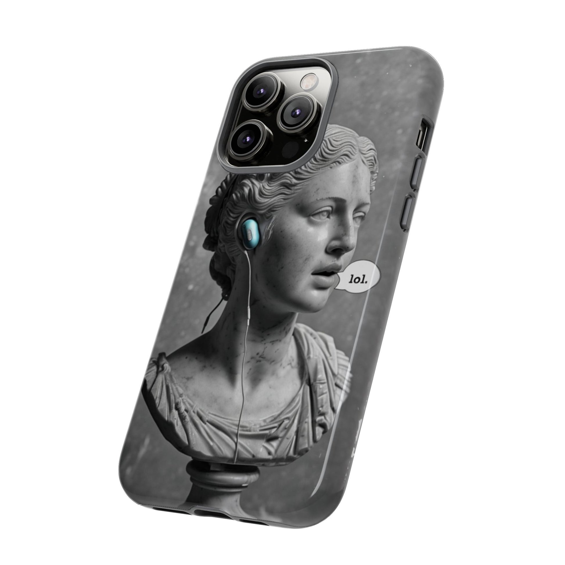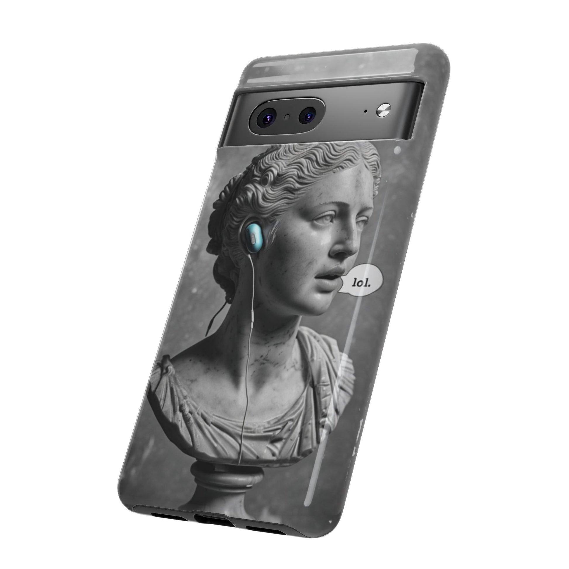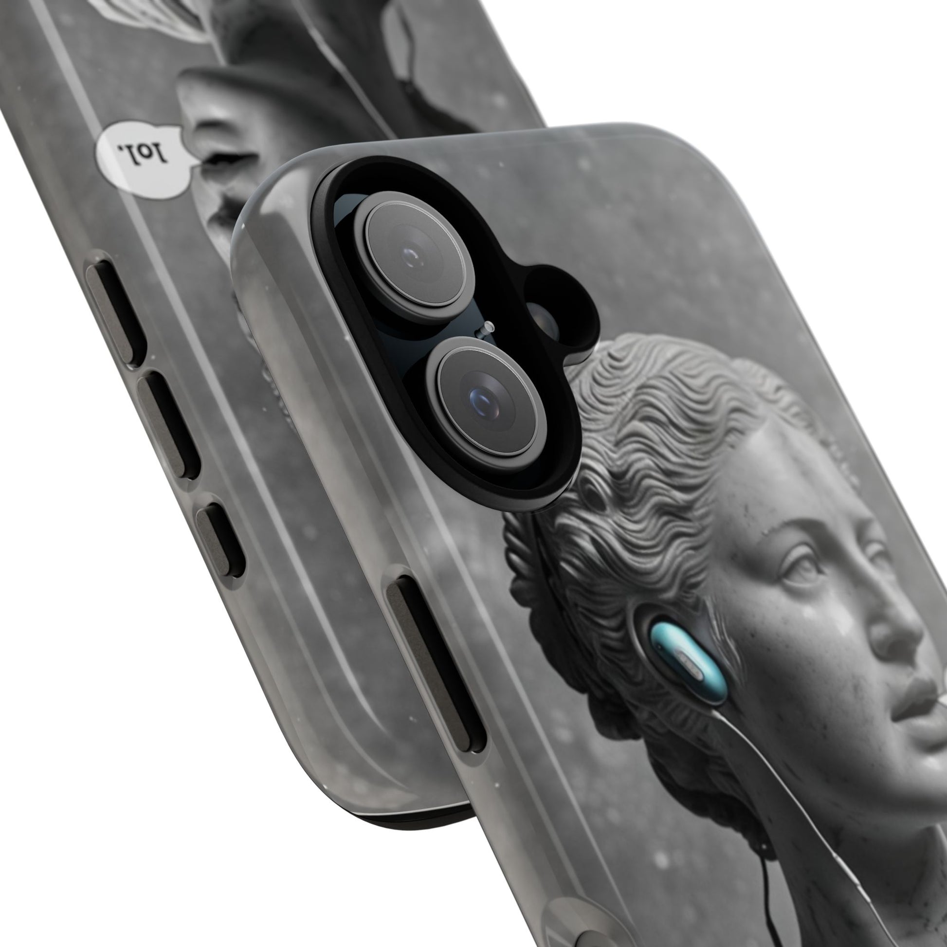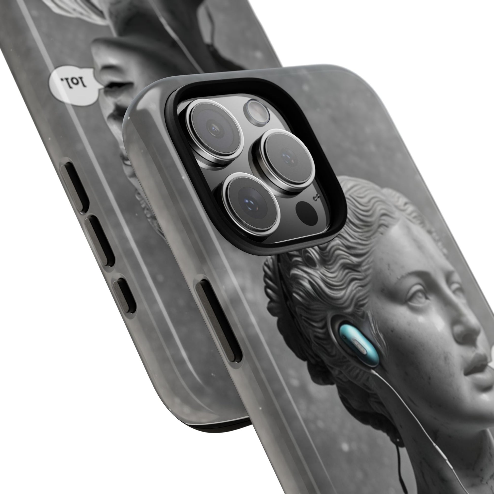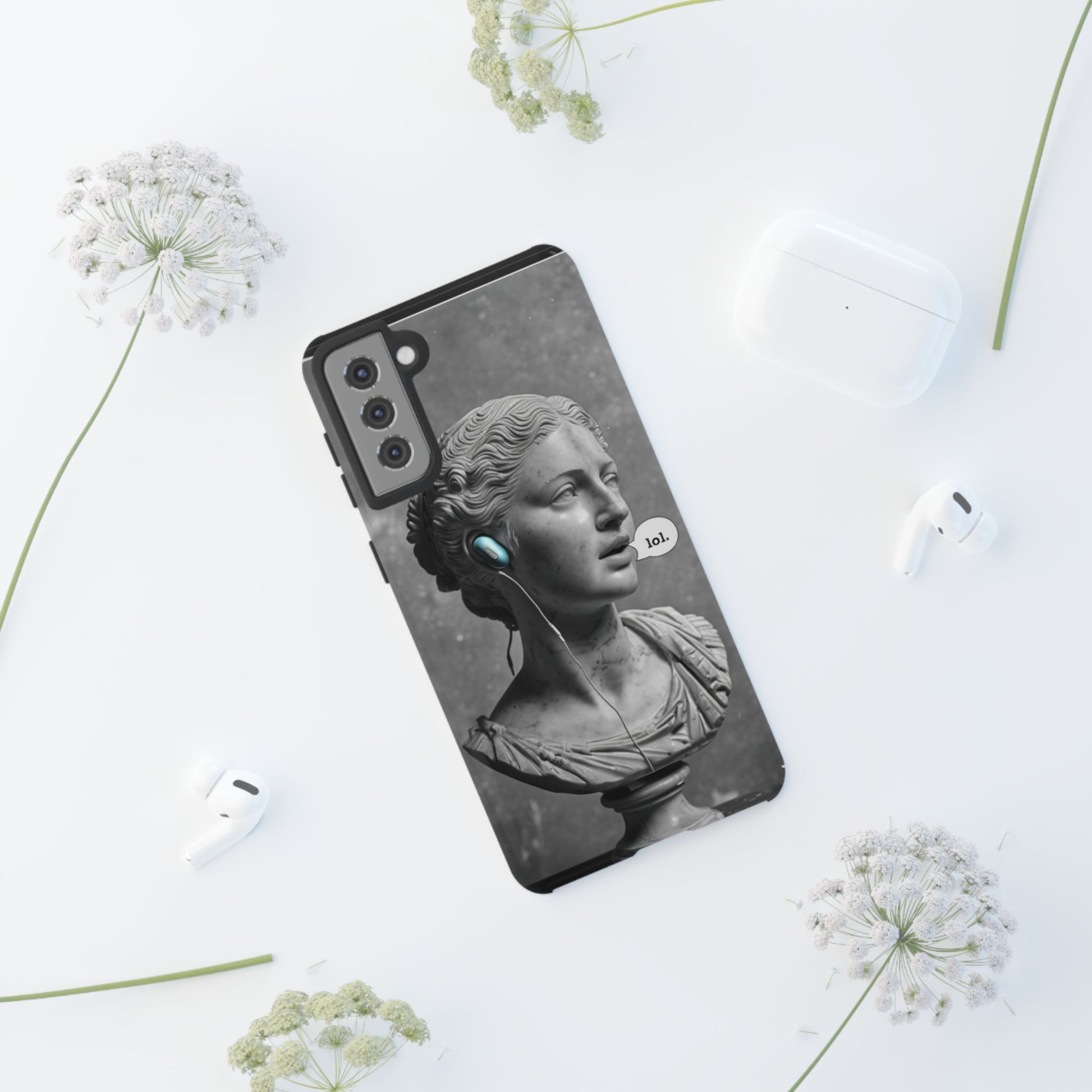 This case mixes the timeless with the tech-savvy. Our "Ancient Amplified" features a classic Roman bust rocking Air Pods, perfectly blending the beauty of history with the beat of modern technology. It's a conversation starter that shows that ancient wisdom and the power of music are always in style. Step into the future with a little bit of the past.
