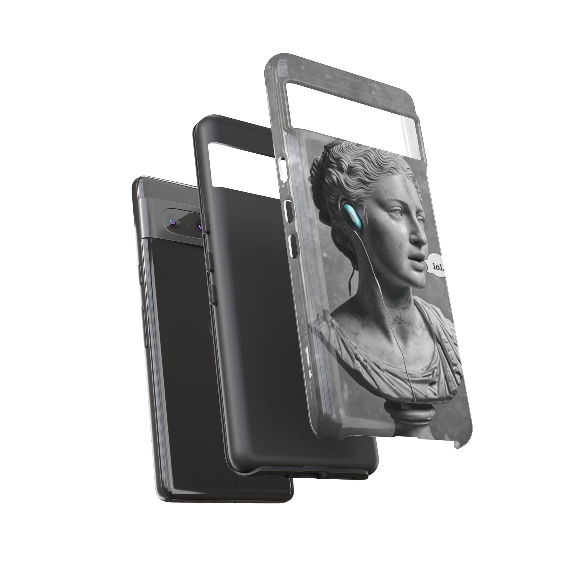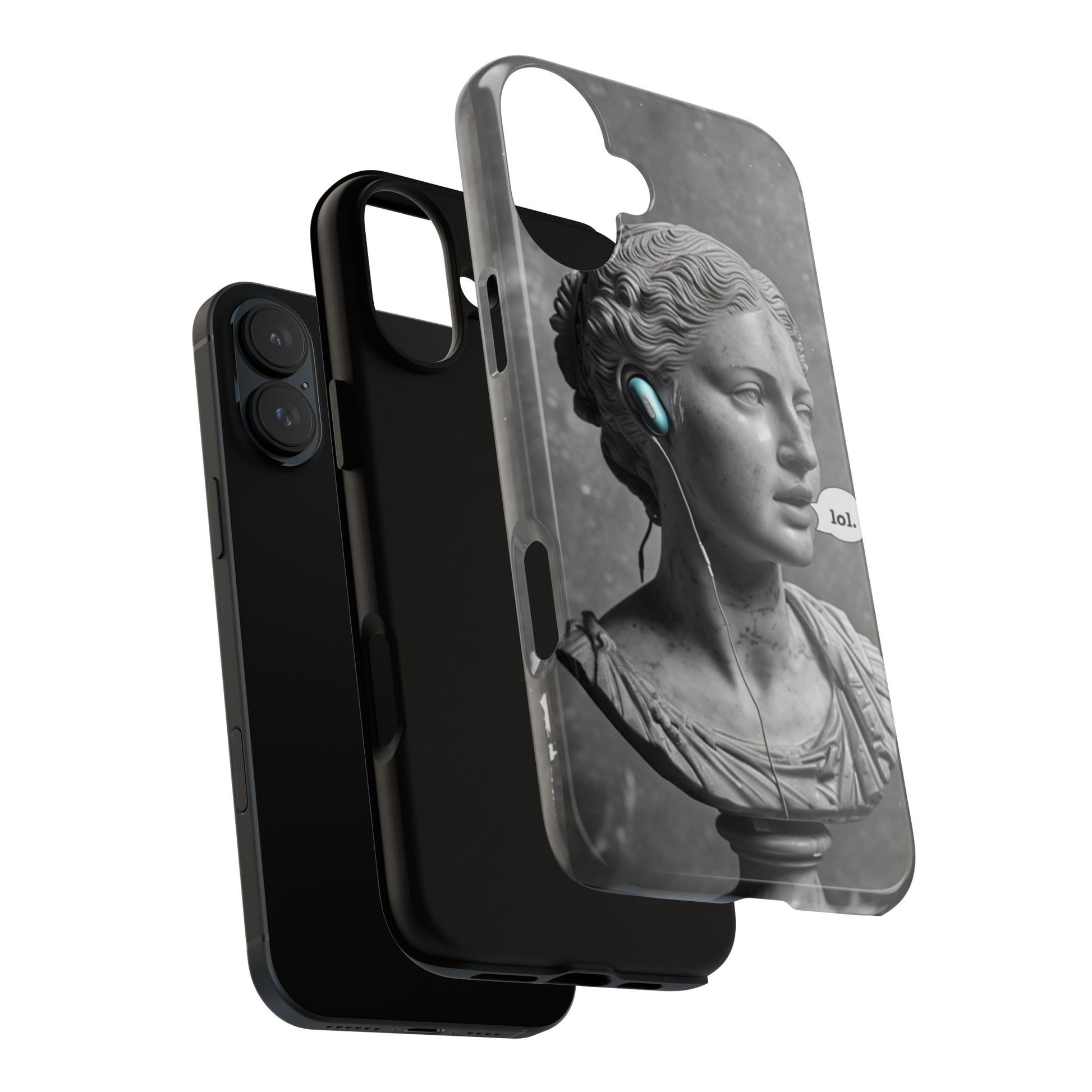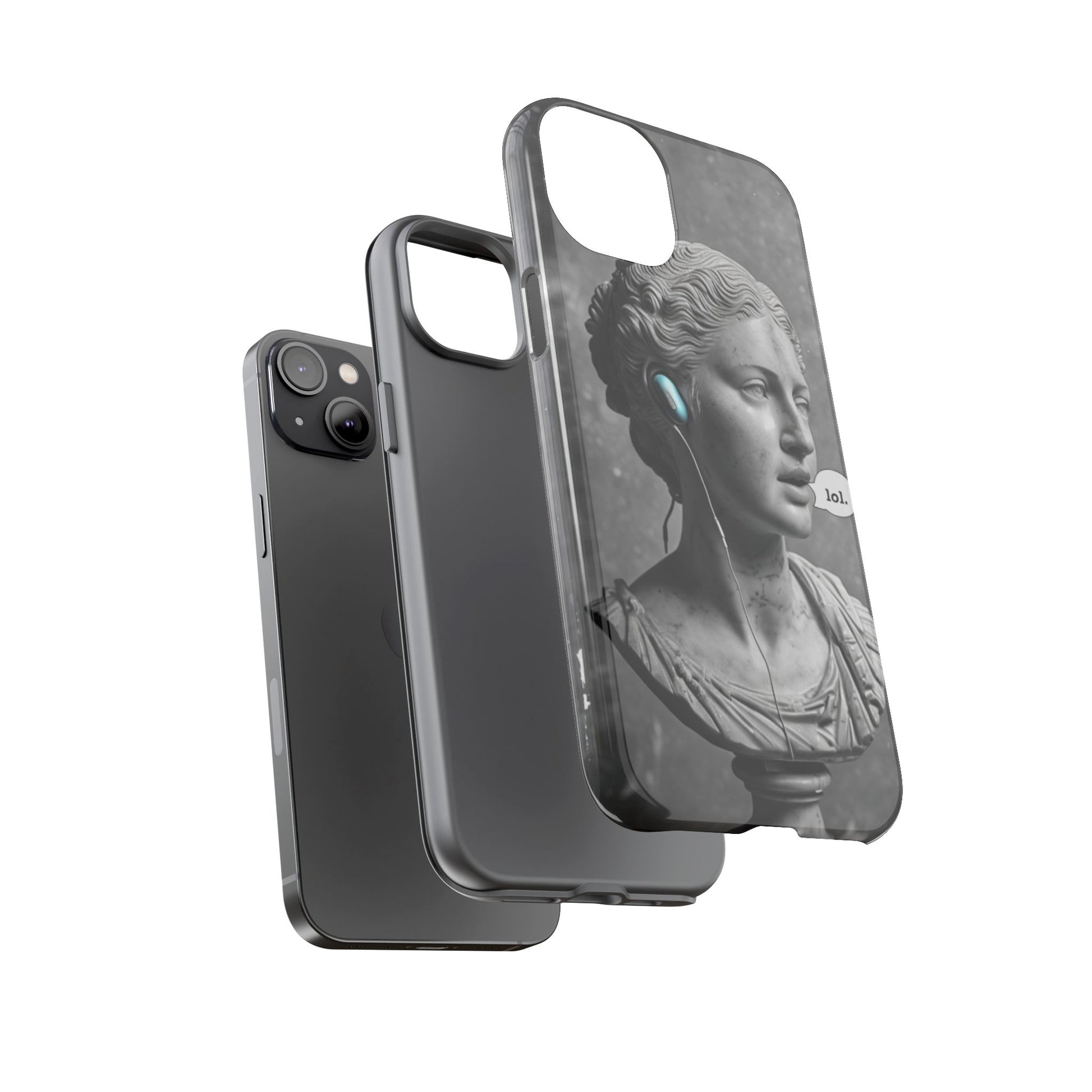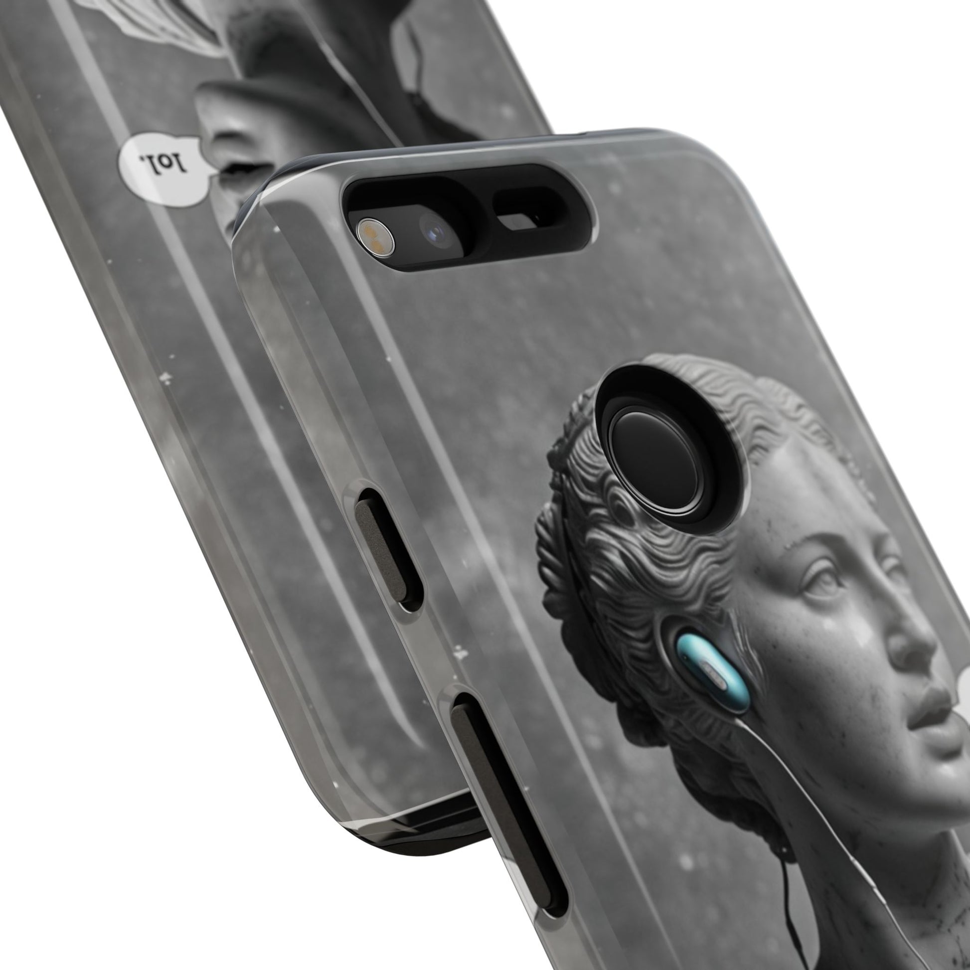 This case mixes the timeless with the tech-savvy. Our "Ancient Amplified" features a classic Roman bust rocking Air Pods, perfectly blending the beauty of history with the beat of modern technology. It's a conversation starter that shows that ancient wisdom and the power of music are always in style. Step into the future with a little bit of the past.