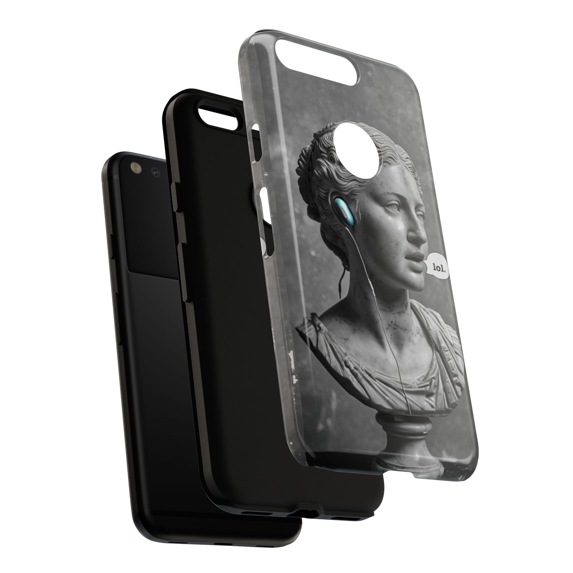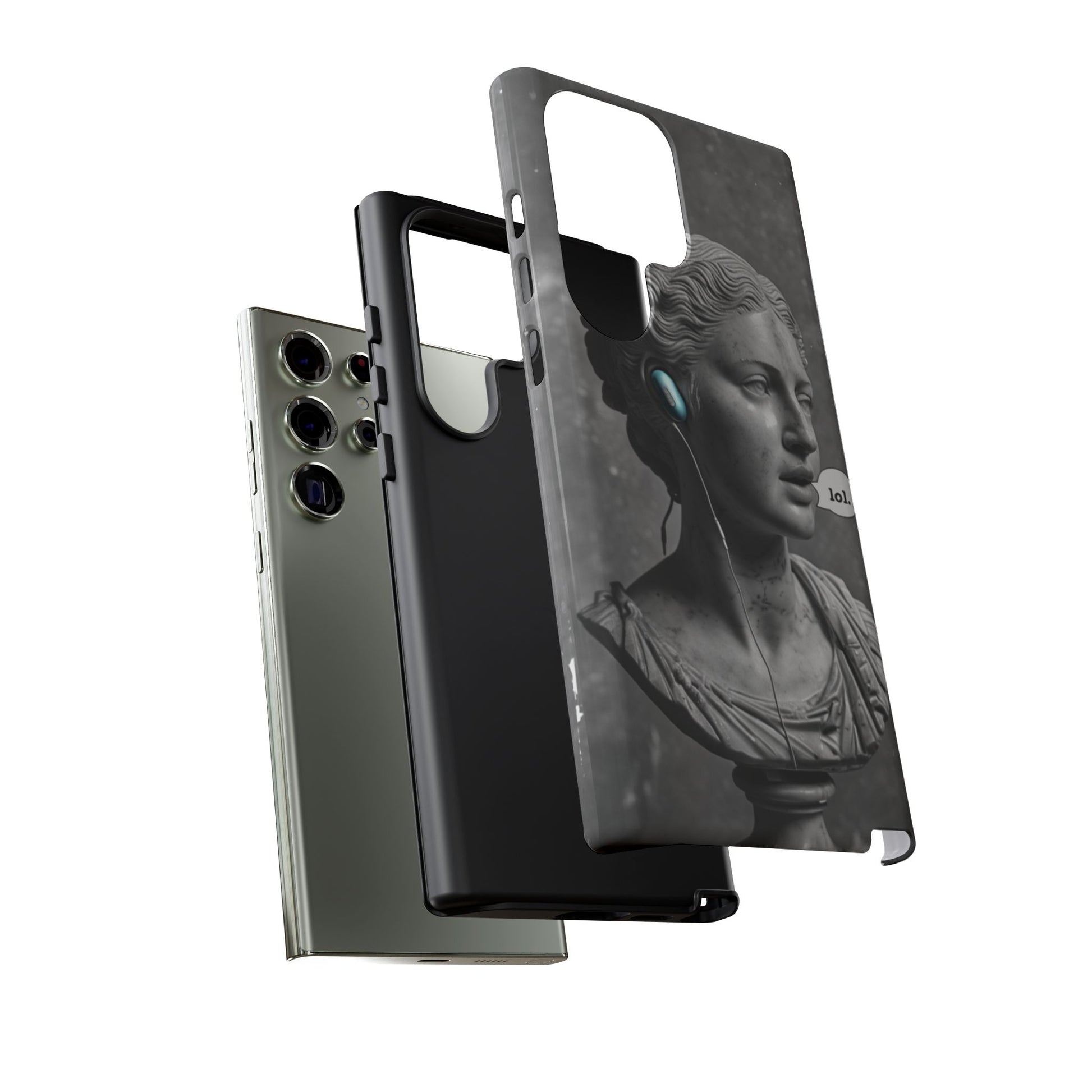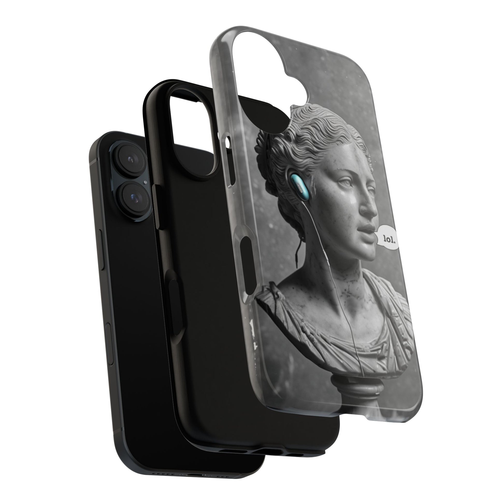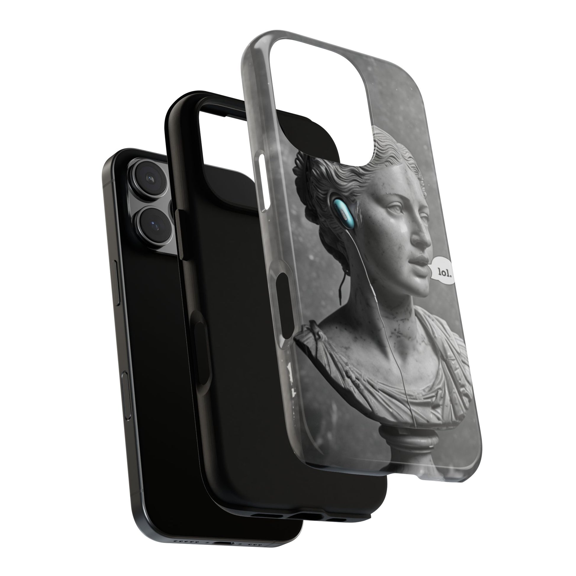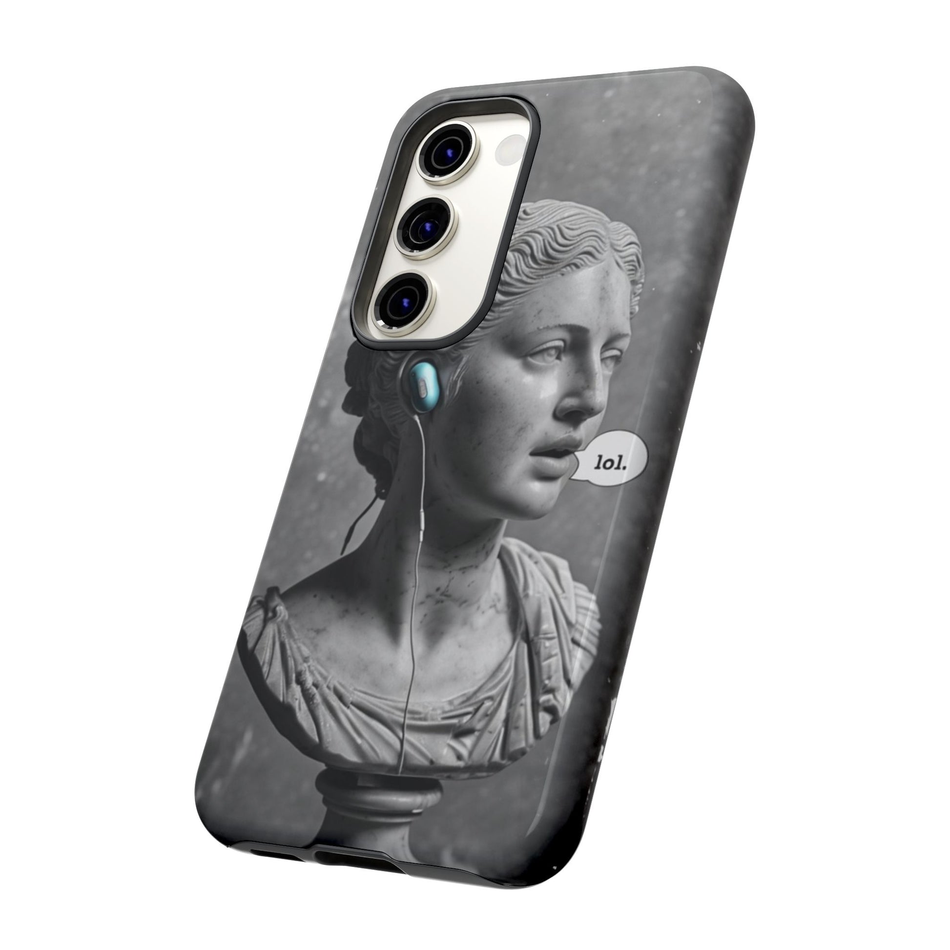 This case mixes the timeless with the tech-savvy. Our "Ancient Amplified" features a classic Roman bust rocking Air Pods, perfectly blending the beauty of history with the beat of modern technology. It's a conversation starter that shows that ancient wisdom and the power of music are always in style. Step into the future with a little bit of the past.