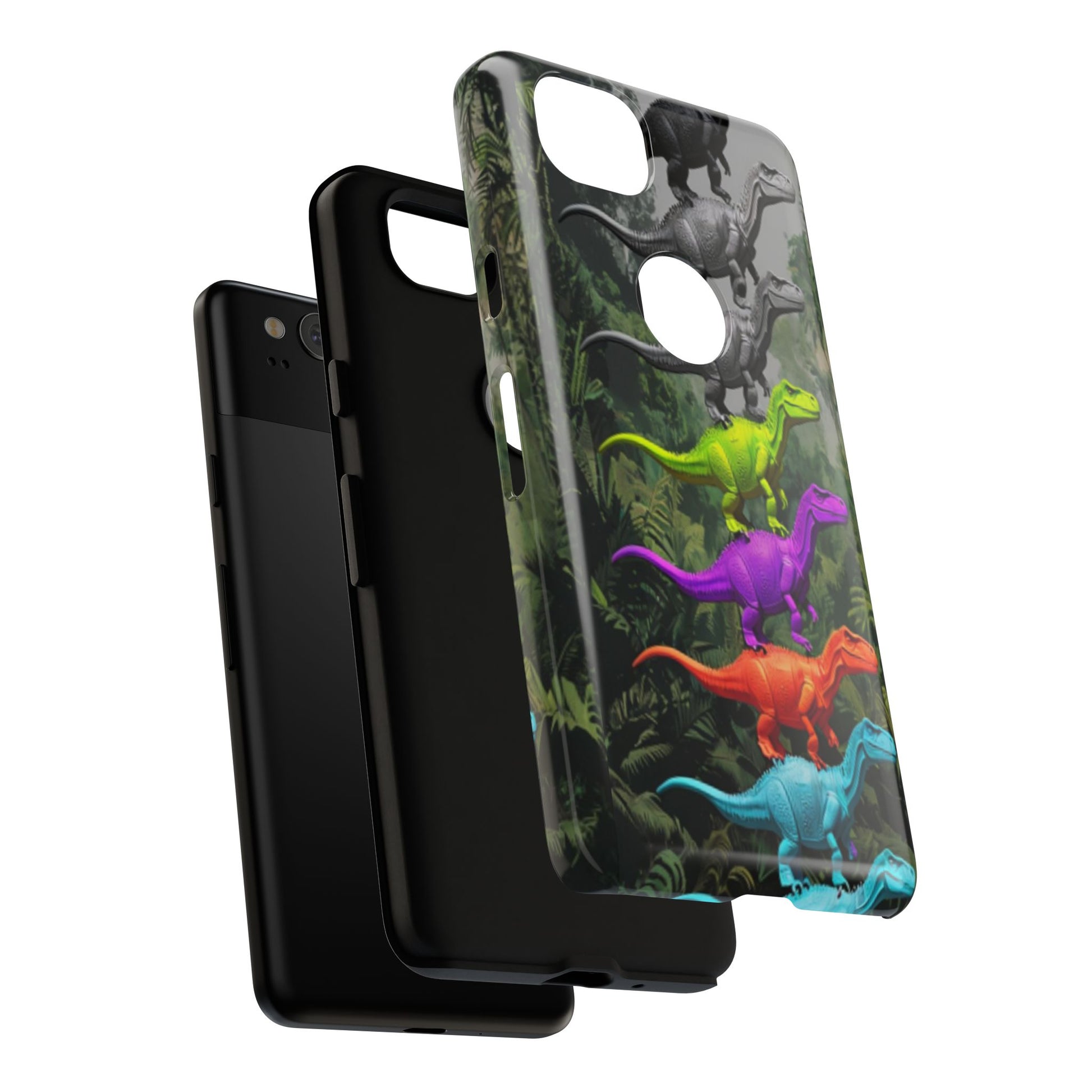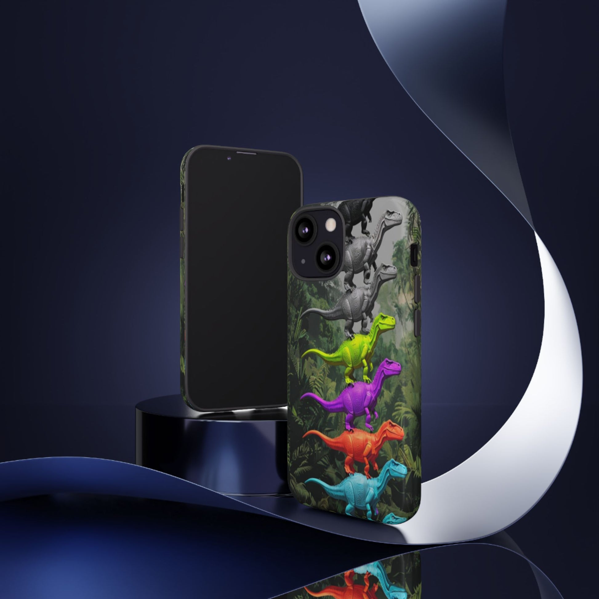Protect your device with style using this unique phone case, featuring a vibrant design of playful, stacked dinosaurs. This phone case combines functionality with a fun aesthetic, perfect for anyone who loves a touch of whimsy in their everyday life. Whether you're a parent wanting to add some personality to your phone or simply a dinosaur enthusiast, this case is sure to bring a smile. Ideal for birthday gifts, holiday surprises, or any celebration! Plus, the durable construction ensures it can keep up with your active lifestyle while adding a dash of color to your tech accessories.