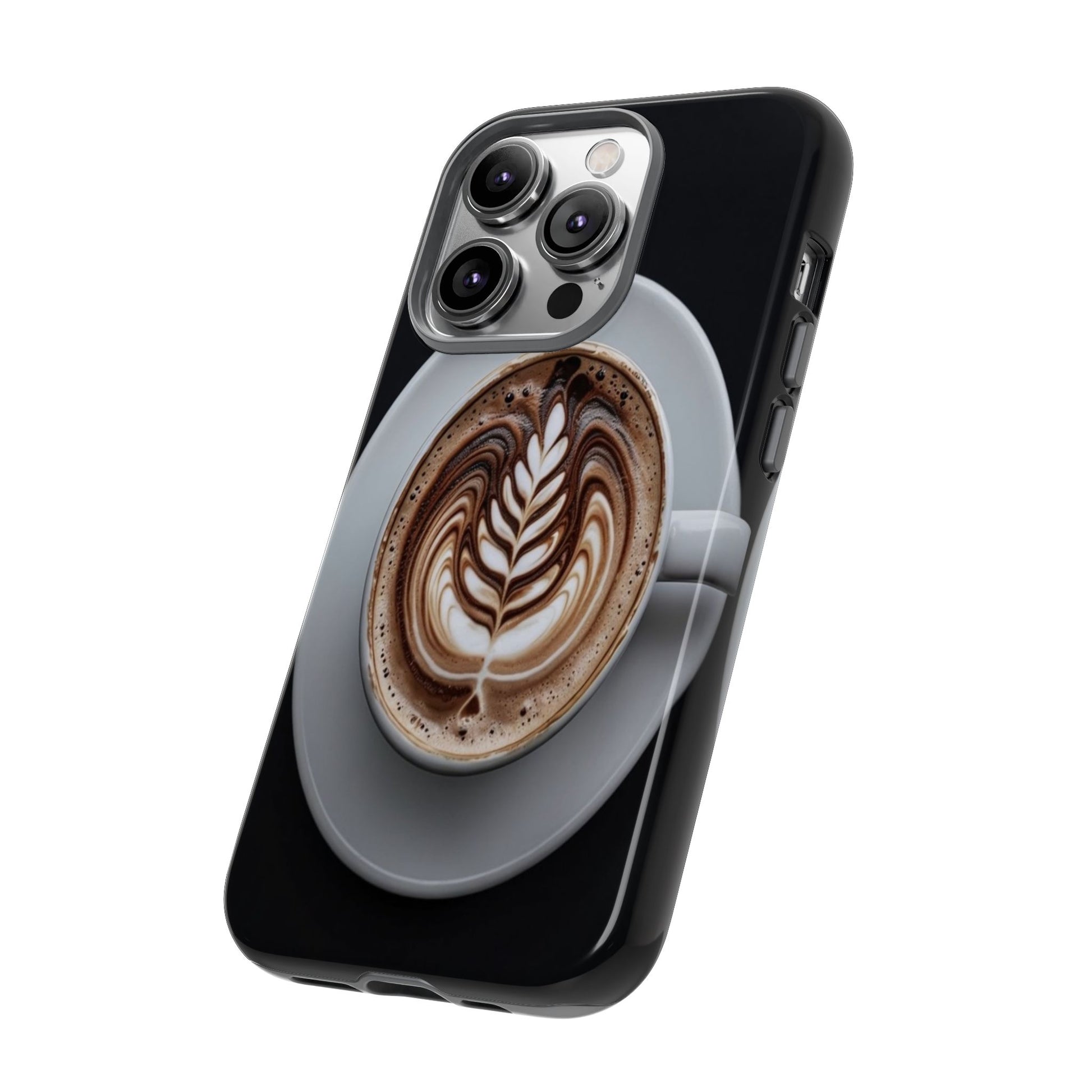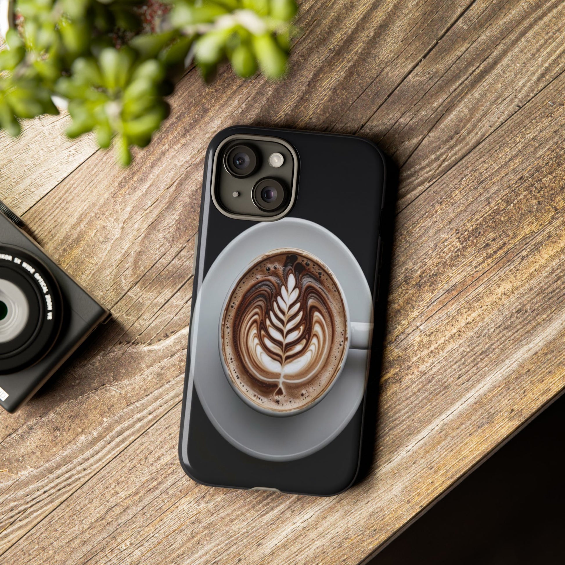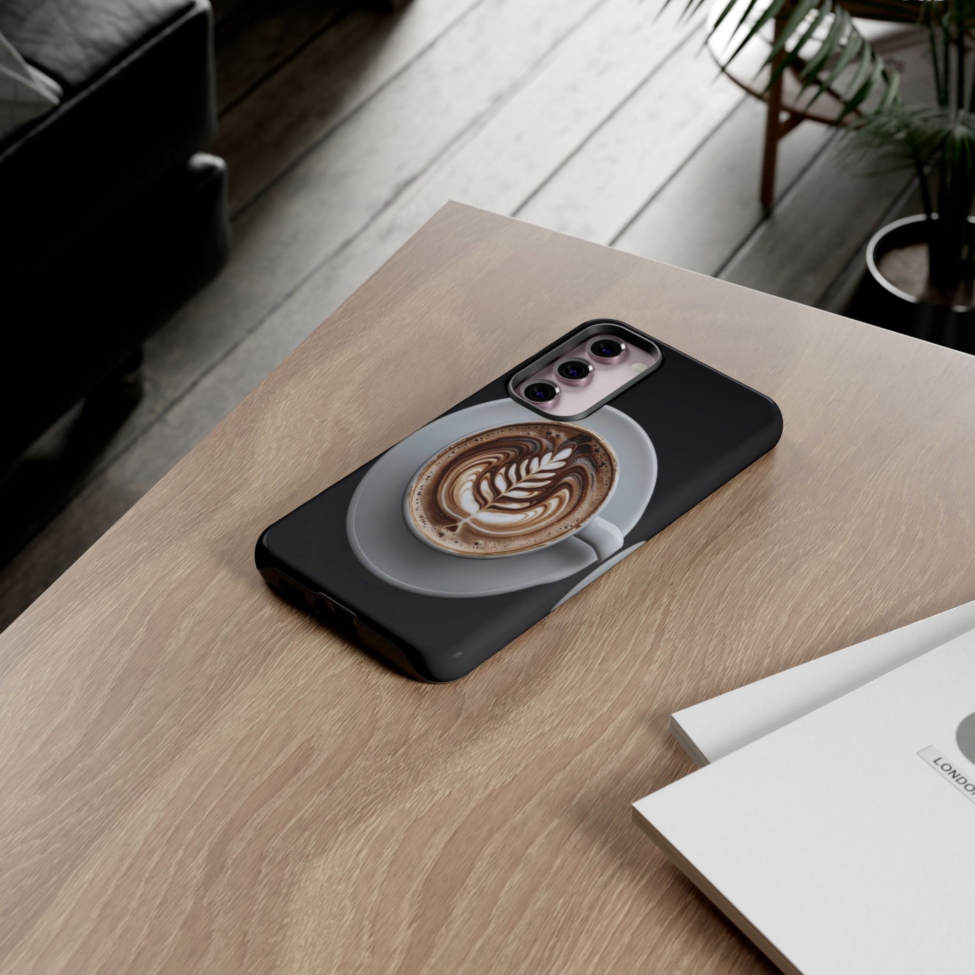 This protective phone case brings the quiet joy of a morning coffee to your pocket. A lifelike latte art image sits centered on a deep black background, giving the cup a gallery-like focus. The dual-layer construction — rigid polycarbonate shell with a soft TPU silicone liner — feels substantial while absorbing shocks from daily drops. With full 3D wrap printing and UV-resistant inks, the image stays vivid through autumn walks and sunny café terraces. Clear port openings and wireless charging compatibility keep the case practical; glossy and matte finish options let you choose a look that fits your style. Designed for adult users who care about both aesthetics and protection, this case pairs a warm, familiar moment with reliable everyday durability.