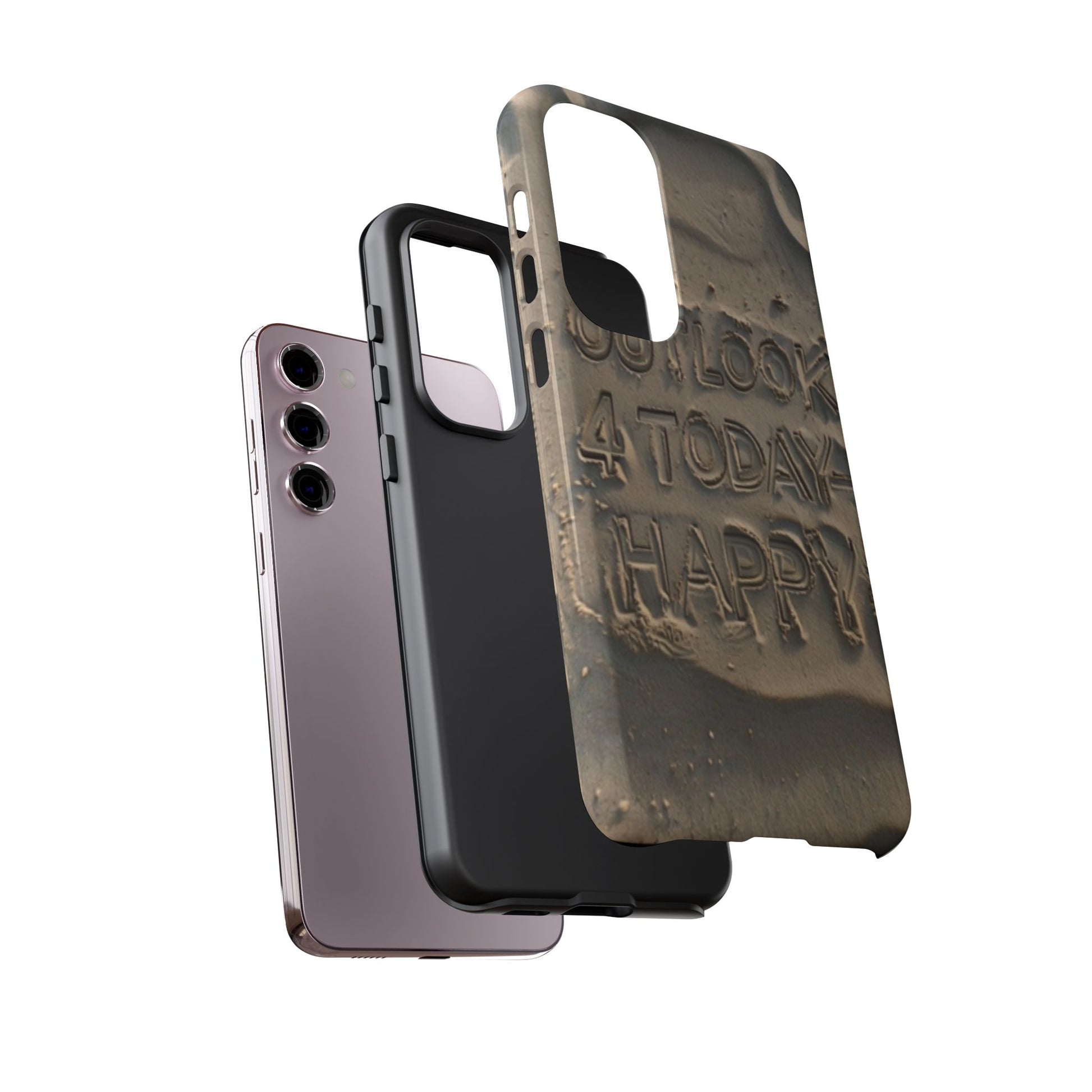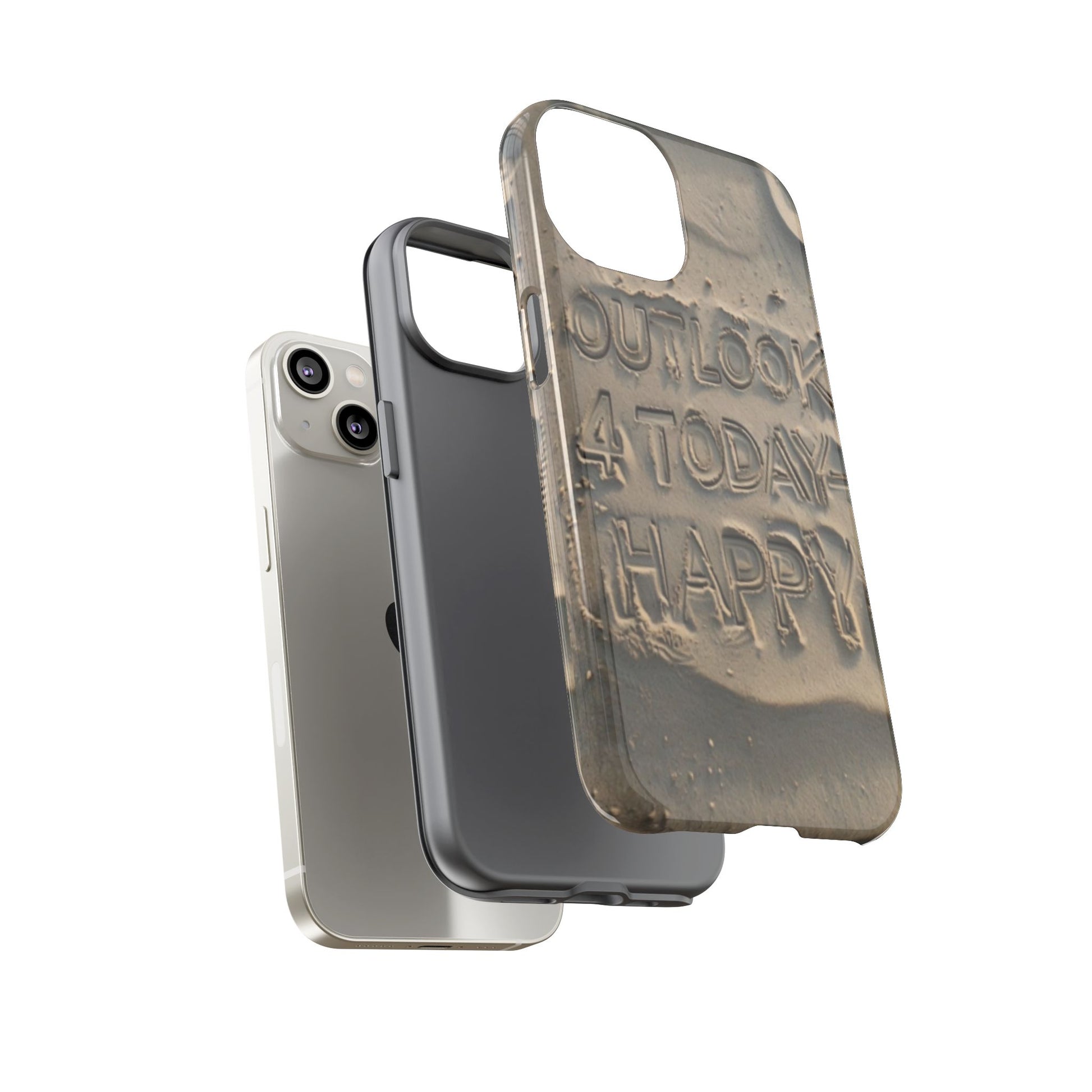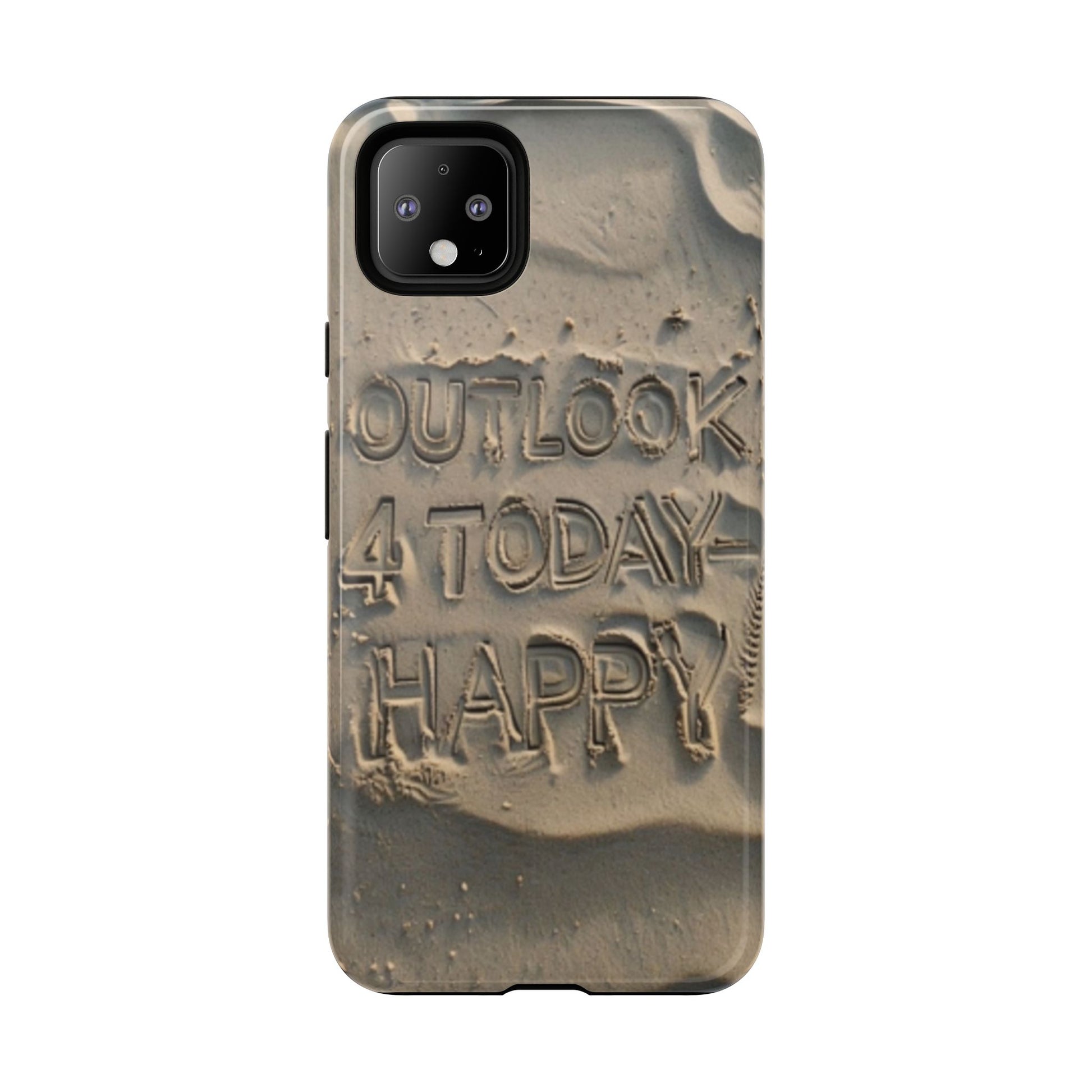 Introducing our stylish Phone Case, designed to protect your device while making a statement. With a unique sand-textured design that features the inspiring message 'Outlook 4 Today - Happy,' this case not only safeguards your phone but also spreads positivity. Its durable construction ensures that it withstands the daily hustle and bustle, making it perfect for active individuals or anyone looking to add a touch of personality to their tech. Whether you're heading to the beach, celebrating a birthday, or just enjoying a sunny day, this phone case fits seamlessly into your lifestyle. Ideal for adults who appreciate both form and function, it's a thoughtful gift for occasions like holidays, graduations, or simply to brighten someone's day.
