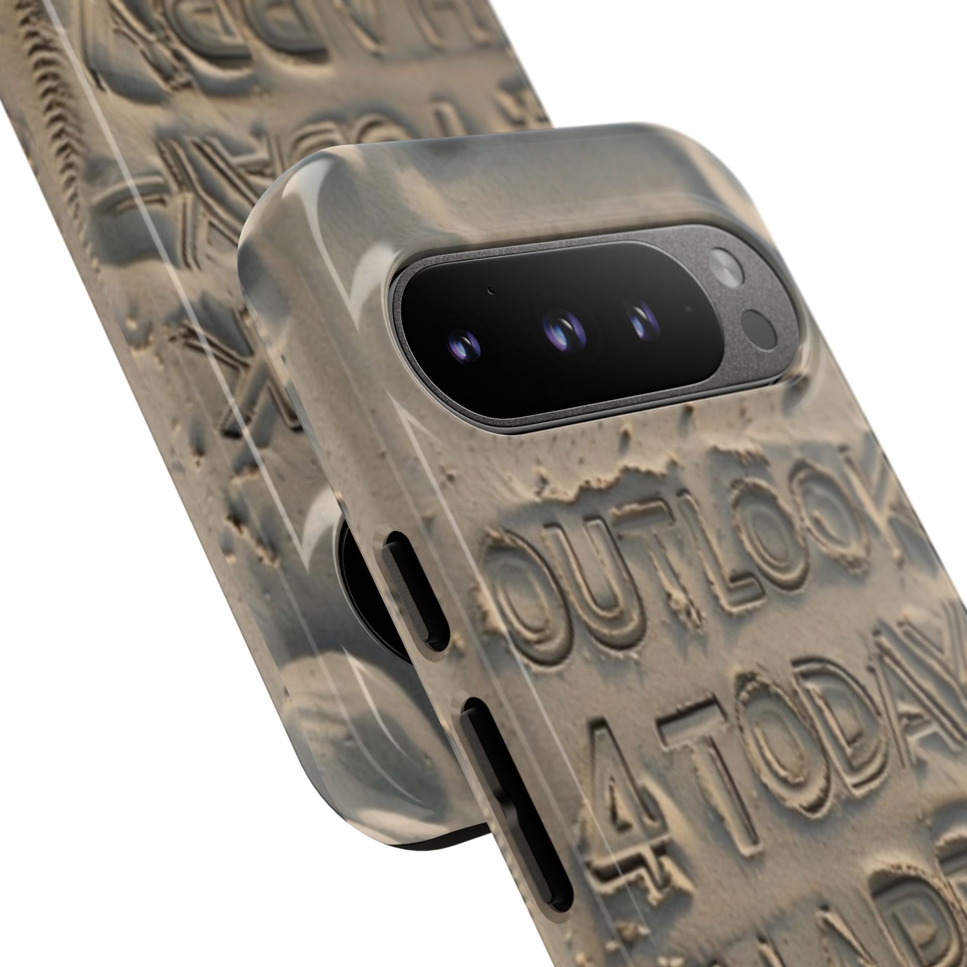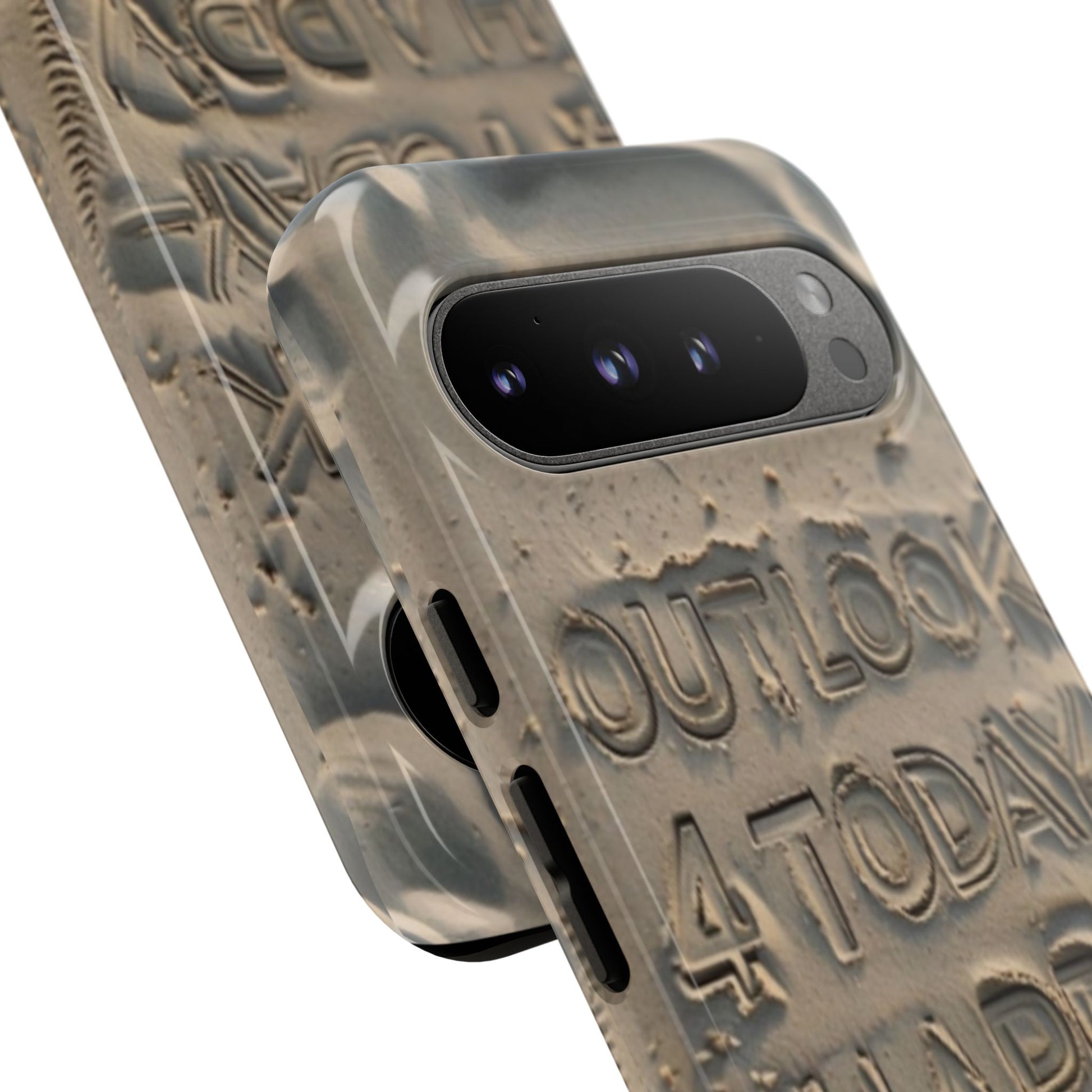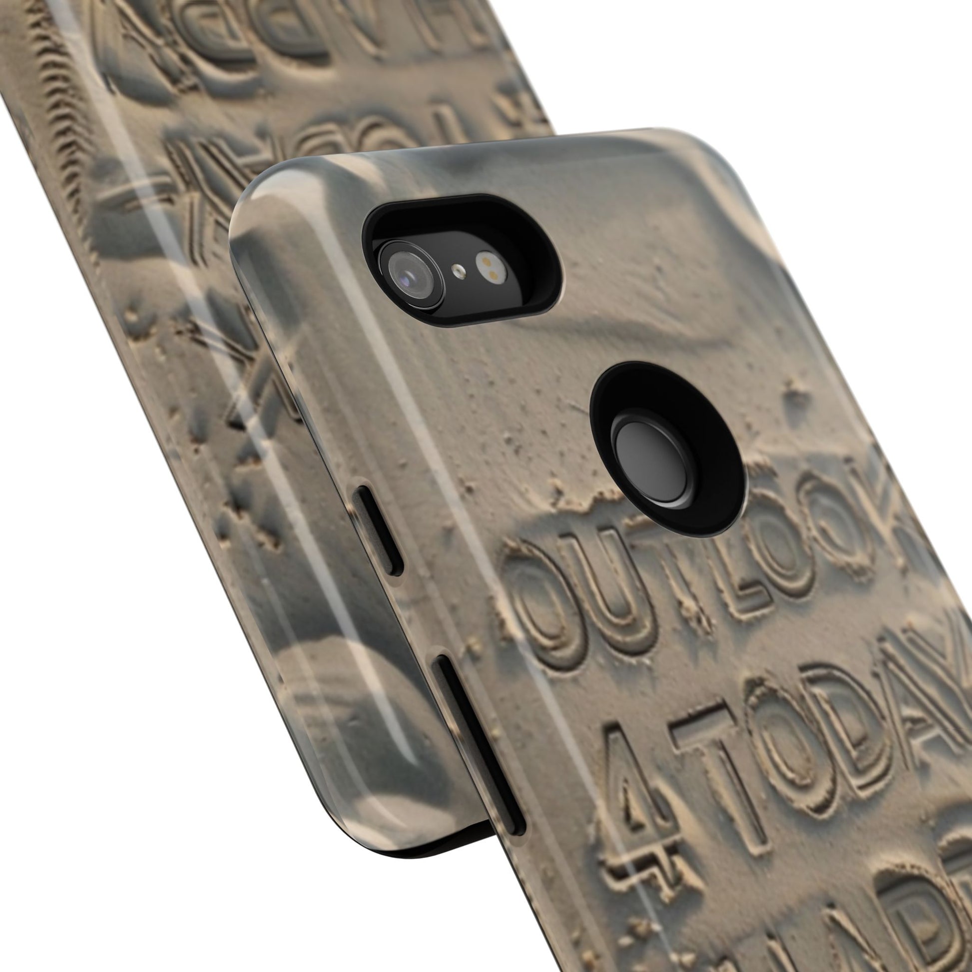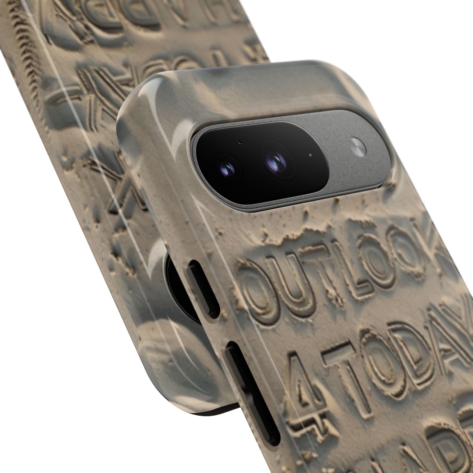 Introducing our stylish Phone Case, designed to protect your device while making a statement. With a unique sand-textured design that features the inspiring message 'Outlook 4 Today - Happy,' this case not only safeguards your phone but also spreads positivity. Its durable construction ensures that it withstands the daily hustle and bustle, making it perfect for active individuals or anyone looking to add a touch of personality to their tech. Whether you're heading to the beach, celebrating a birthday, or just enjoying a sunny day, this phone case fits seamlessly into your lifestyle. Ideal for adults who appreciate both form and function, it's a thoughtful gift for occasions like holidays, graduations, or simply to brighten someone's day.