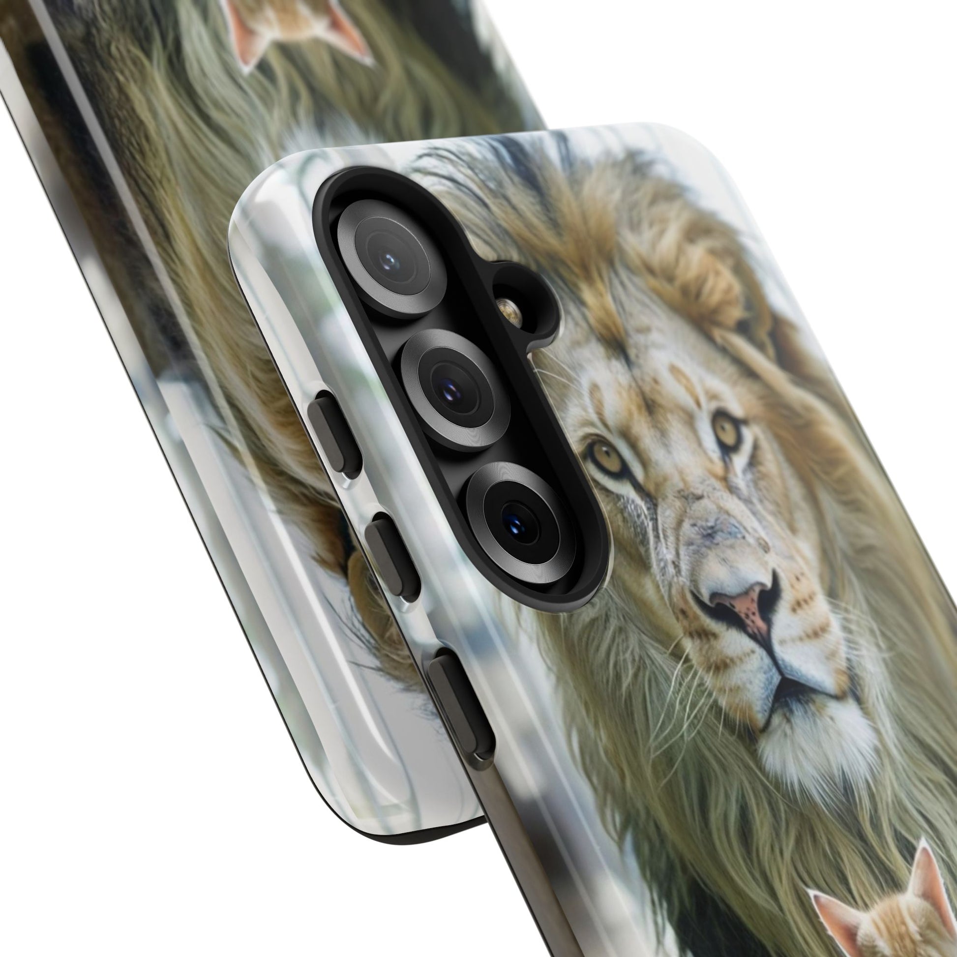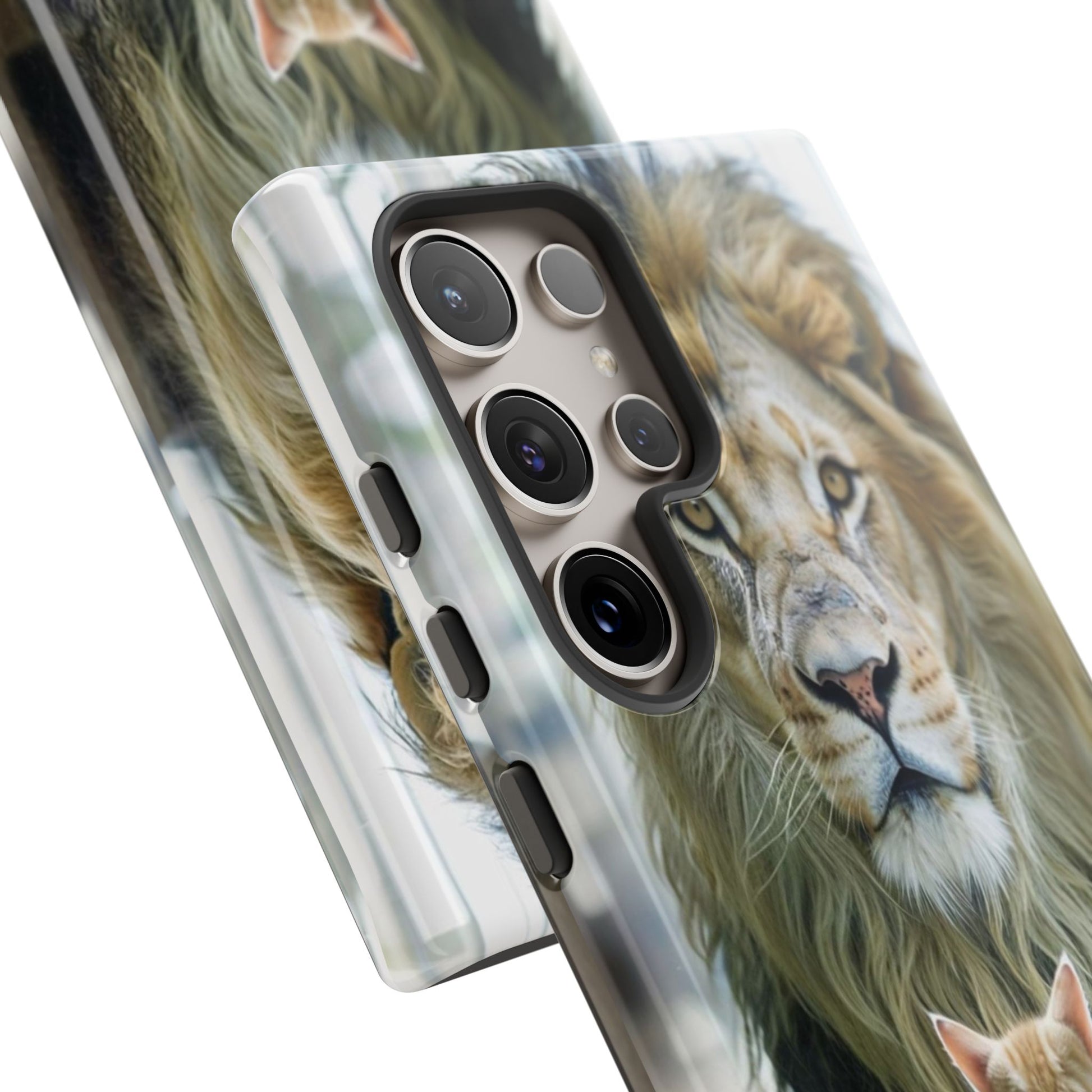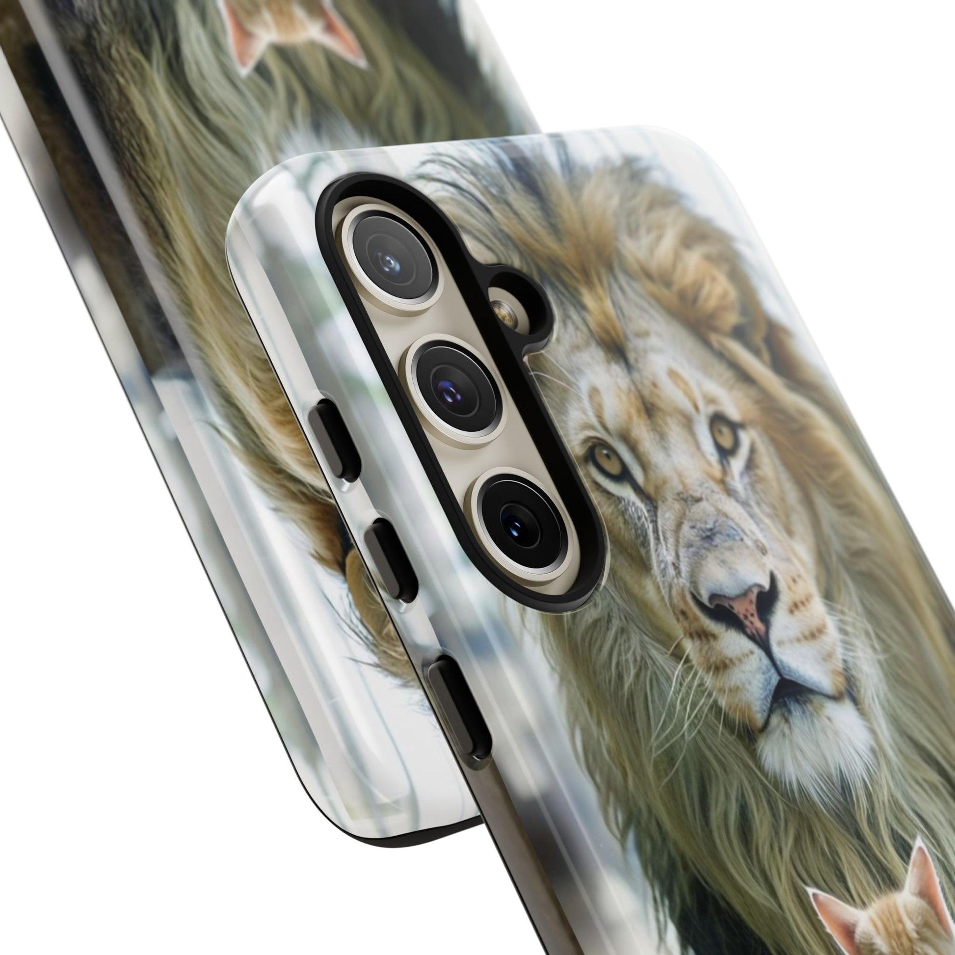 Introducing our stunning Protective Phone Case, featuring an eye-catching design that captures a beautiful moment between a kitten and a lion. This case not only protects your phone but also serves as a statement piece, reflecting strength and curiosity. Ideal for animal lovers, adventurers, and those who appreciate powerful imagery, this phone case is perfect for everyday use or as a thoughtful gift. Celebrate moments like birthdays or just because, and bring a sense of wonder into your daily life. Whether you're at work, school, or out with friends, this case adds a unique touch to your style while keeping your device safe.