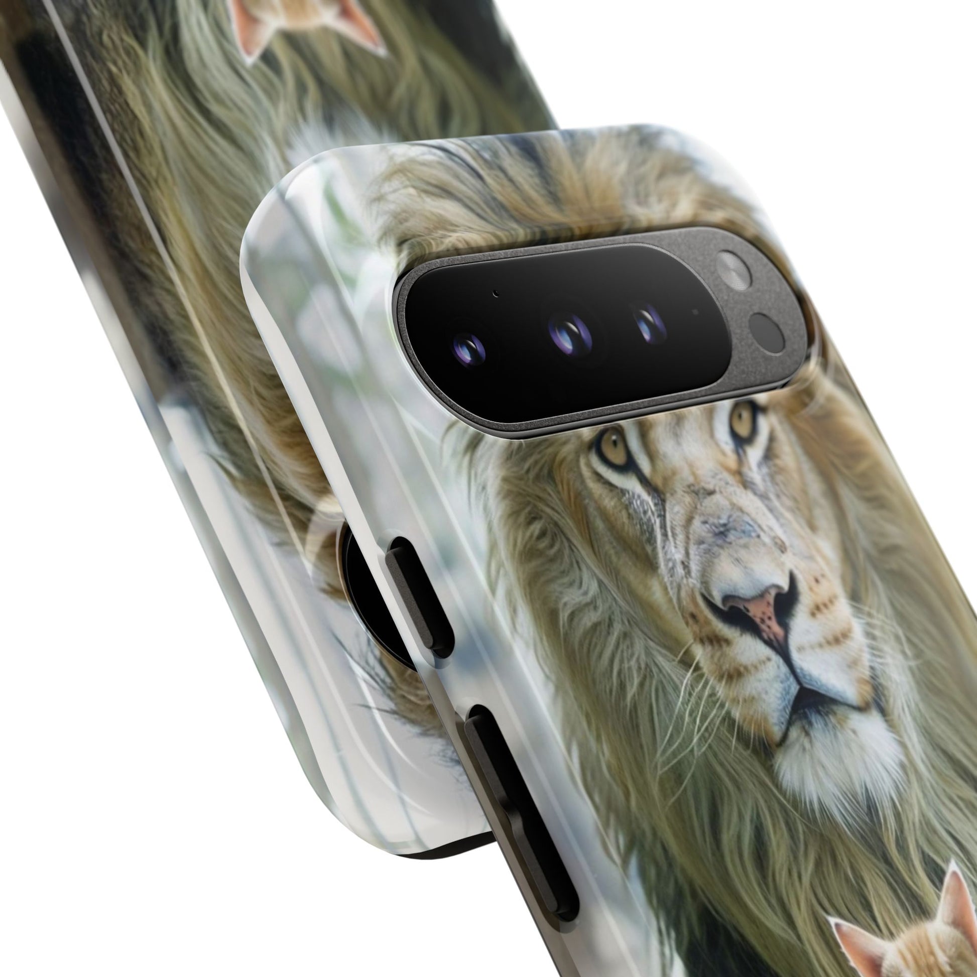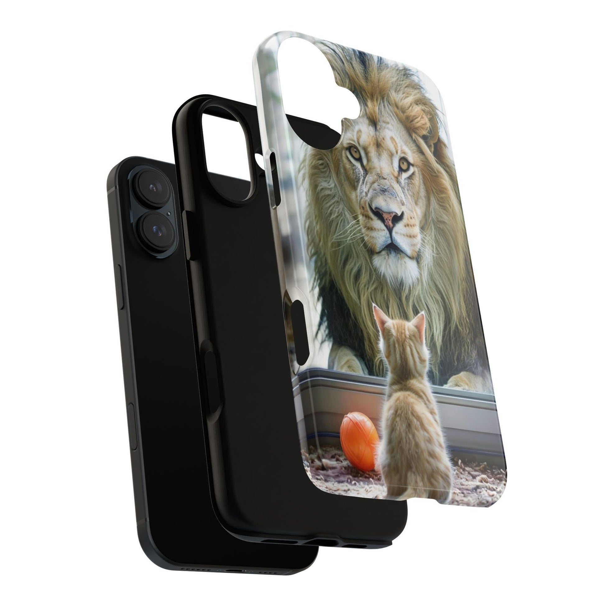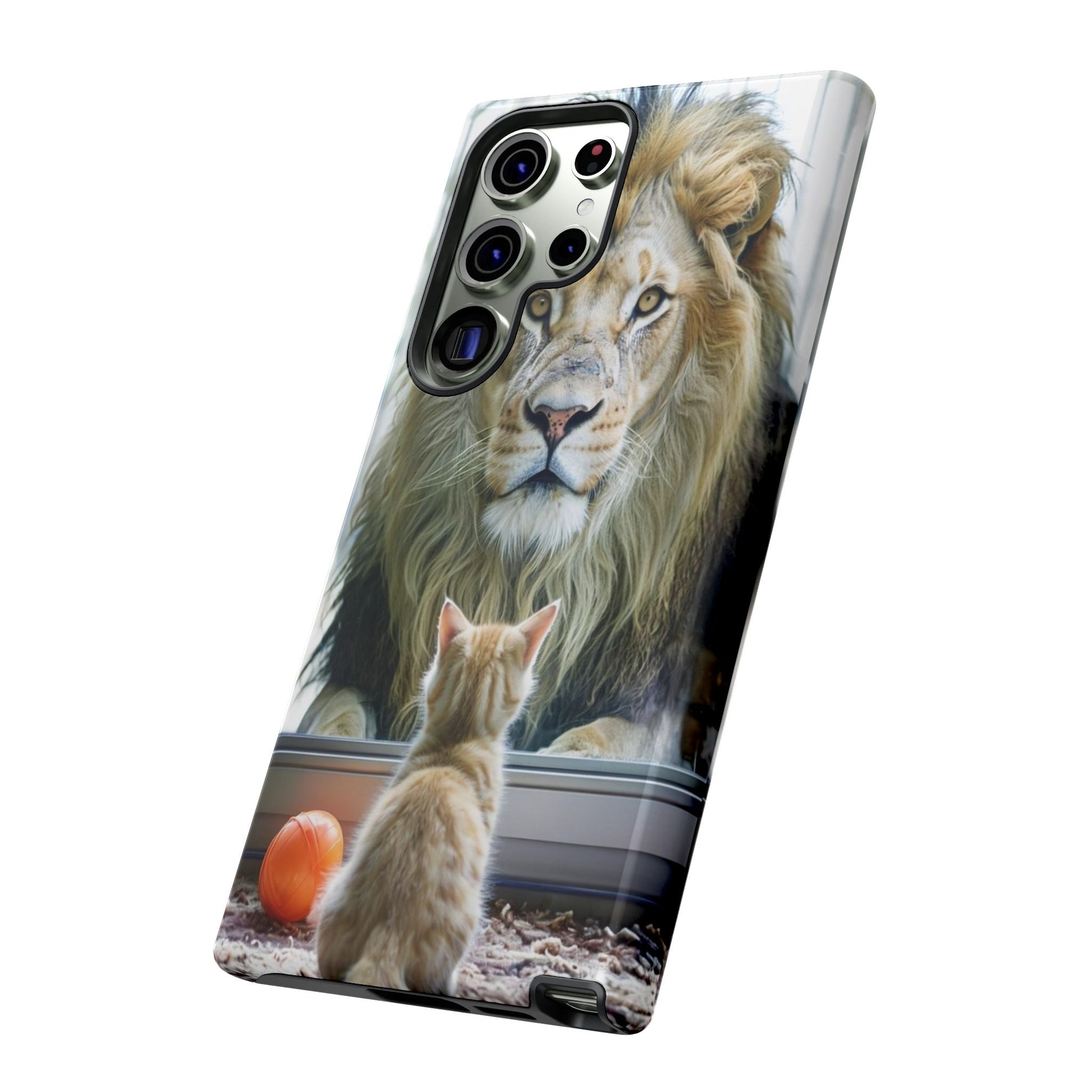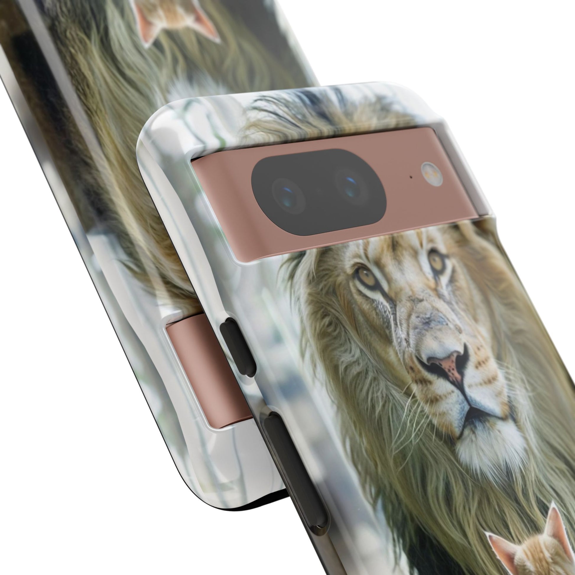 Introducing our stunning Protective Phone Case, featuring an eye-catching design that captures a beautiful moment between a kitten and a lion. This case not only protects your phone but also serves as a statement piece, reflecting strength and curiosity. Ideal for animal lovers, adventurers, and those who appreciate powerful imagery, this phone case is perfect for everyday use or as a thoughtful gift. Celebrate moments like birthdays or just because, and bring a sense of wonder into your daily life. Whether you're at work, school, or out with friends, this case adds a unique touch to your style while keeping your device safe.