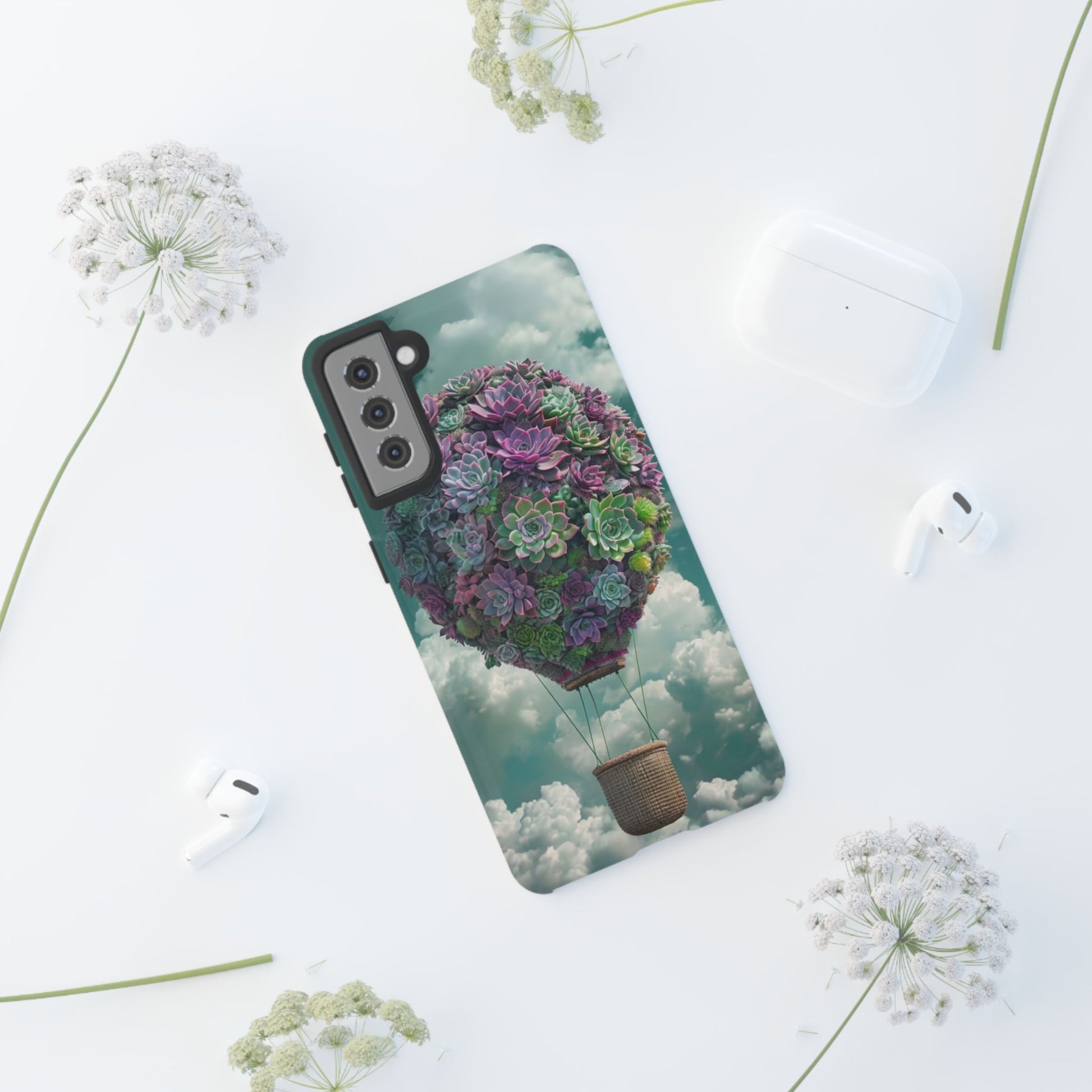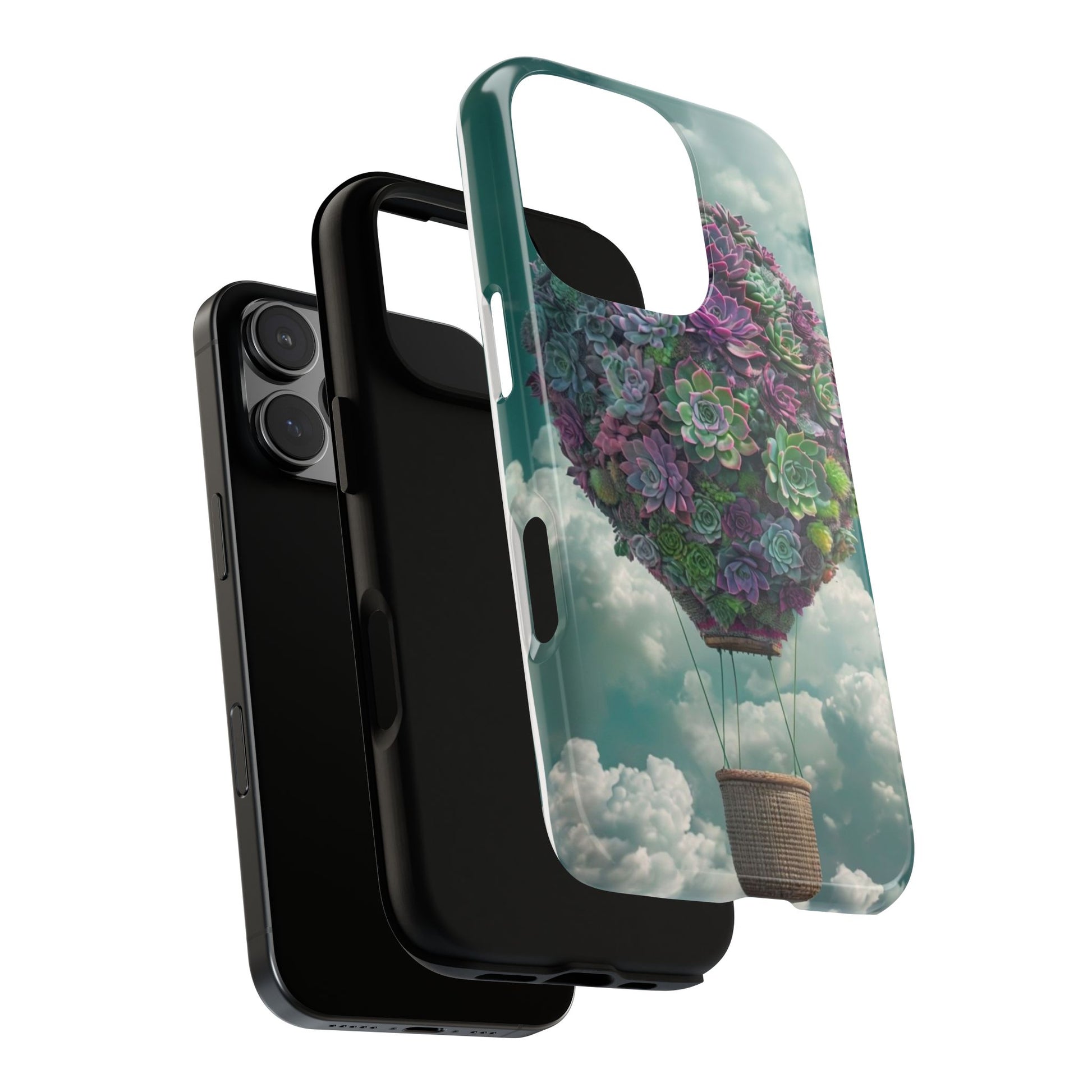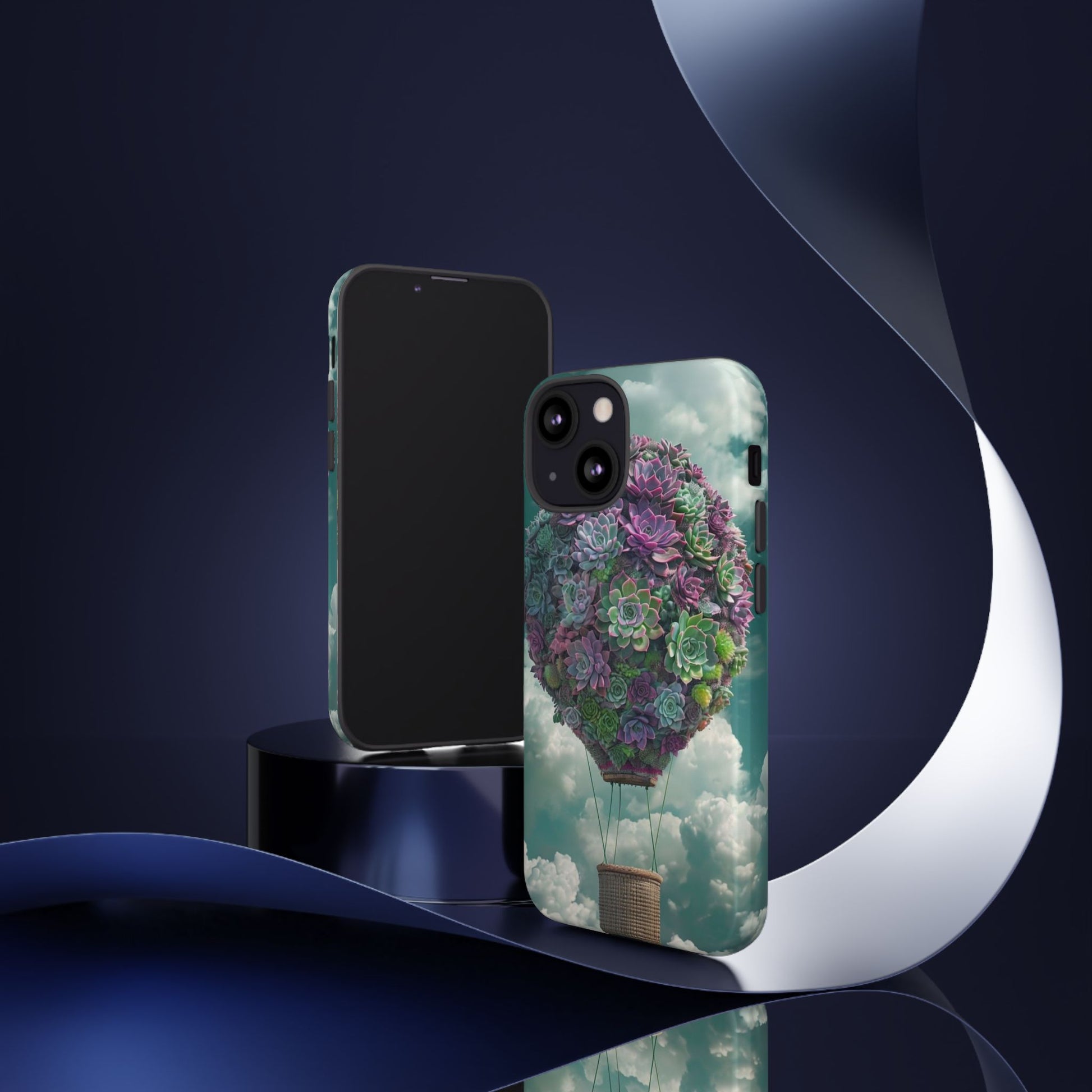 Elevate your device with this stylish protective phone case that features a vibrant hot air balloon design adorned with lush succulents. Perfectly blending functionality with art, this case not only protects your phone from drops and scratches but also adds a touch of whimsy to your everyday life. Its glossy or matte finish ensures it feels as good as it looks, making it a must-have accessory for anyone looking to express their individuality. This phone case is ideal for nature lovers, travelers, and anyone who enjoys colorful aesthetics. Whether it's a birthday, holiday, or just a thoughtful gift, this design is sure to bring joy and inspiration to the recipient.