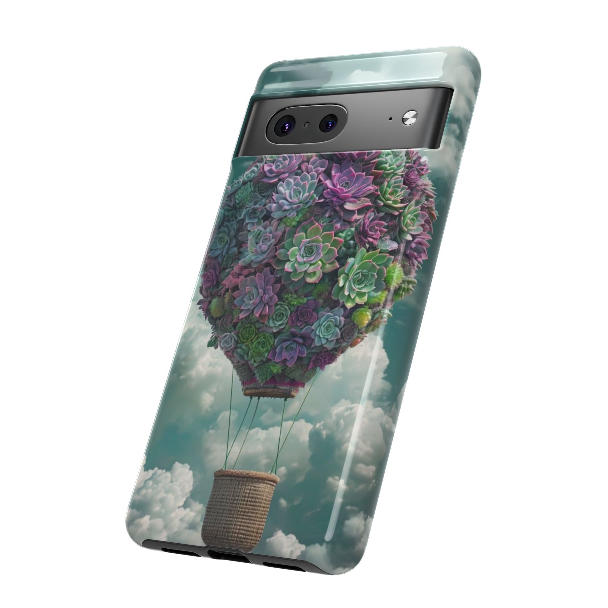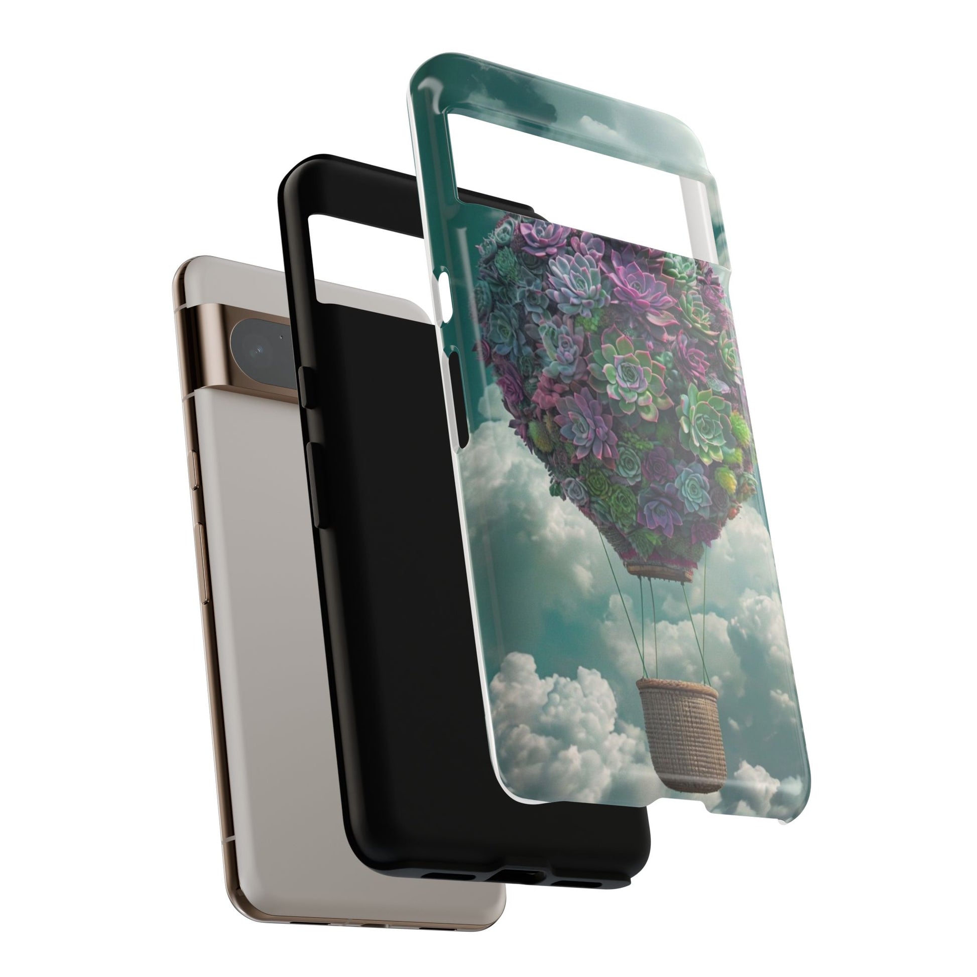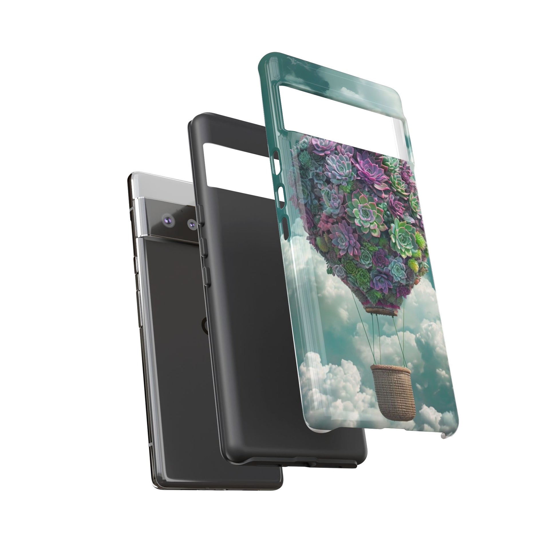 Elevate your device with this stylish protective phone case that features a vibrant hot air balloon design adorned with lush succulents. Perfectly blending functionality with art, this case not only protects your phone from drops and scratches but also adds a touch of whimsy to your everyday life. Its glossy or matte finish ensures it feels as good as it looks, making it a must-have accessory for anyone looking to express their individuality. This phone case is ideal for nature lovers, travelers, and anyone who enjoys colorful aesthetics. Whether it's a birthday, holiday, or just a thoughtful gift, this design is sure to bring joy and inspiration to the recipient.