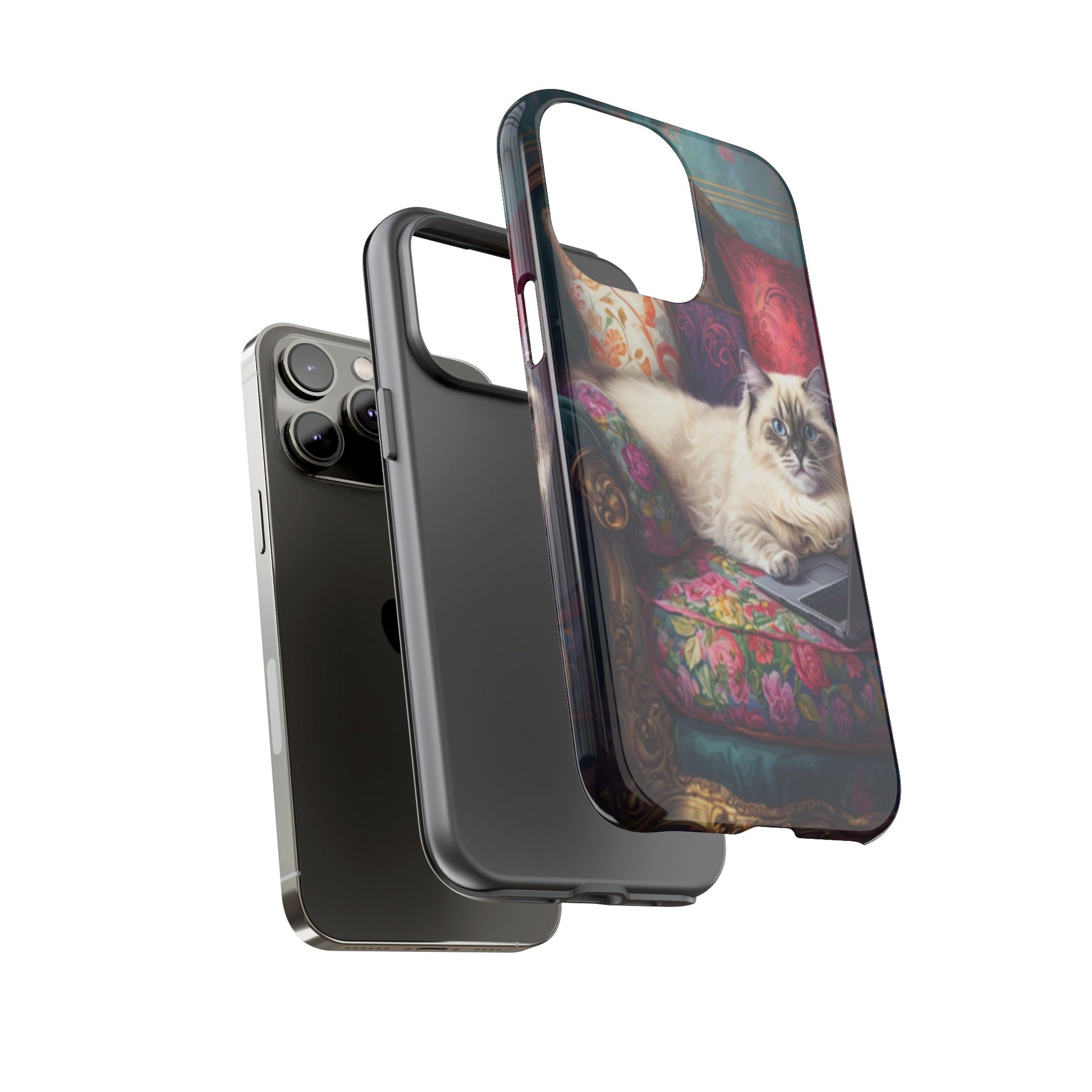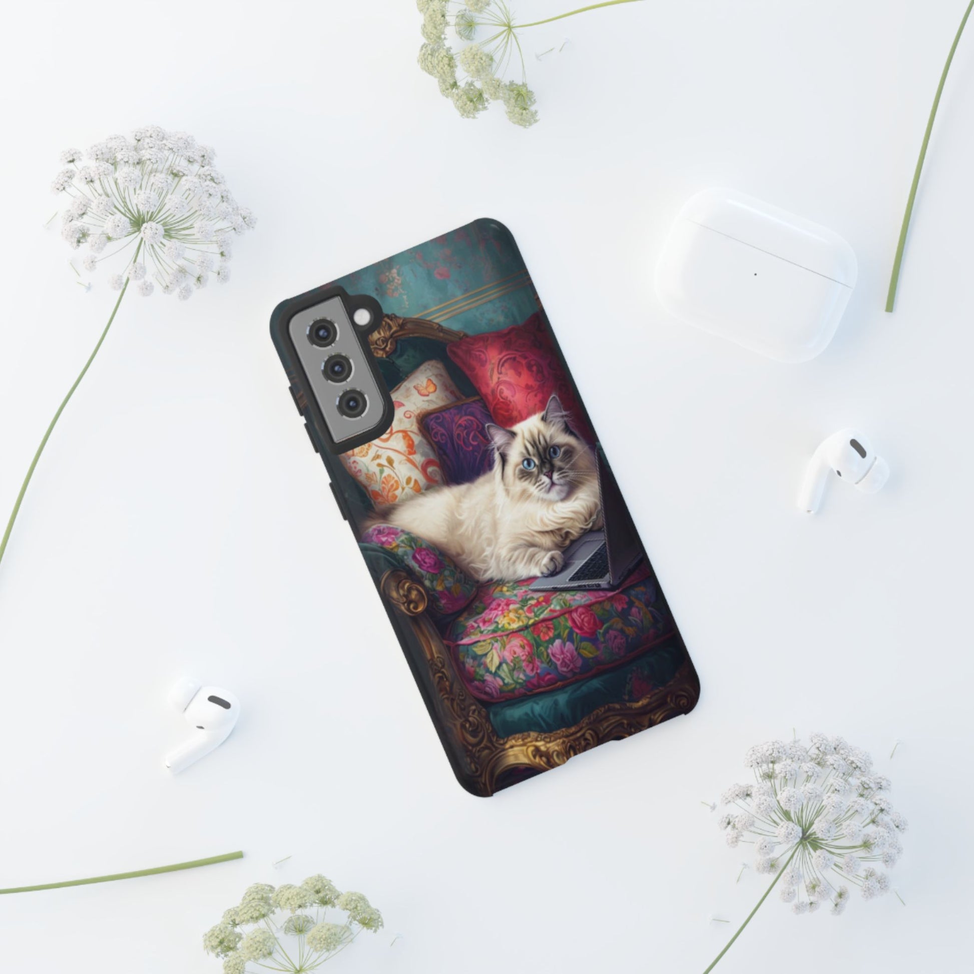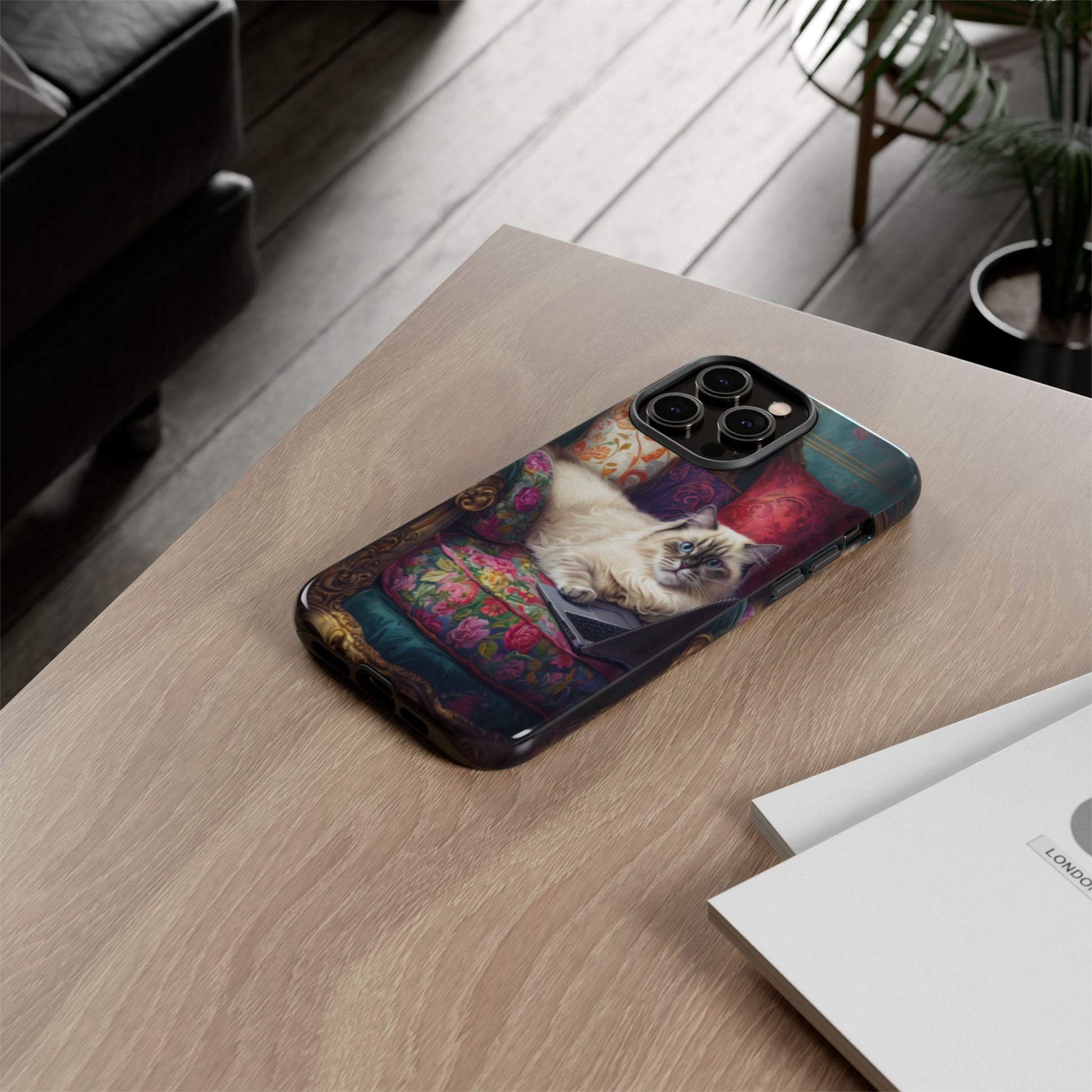 Introducing a stylish and protective phone case that complements your everyday life while showcasing your love for unique art. This durable case is designed to resonate with cat lovers and art enthusiasts alike, featuring a stunning image of a lounging feline that adds charm to any device. Perfect for daily use, this phone case allows you to express your personality while keeping your phone safe. It's an ideal gift for special occasions such as birthdays, holidays, or simply to celebrate the joy of pet ownership. Whether you're at home, work, or on the go, this phone case effortlessly combines functionality with artistic flair, making it a must-have accessory.