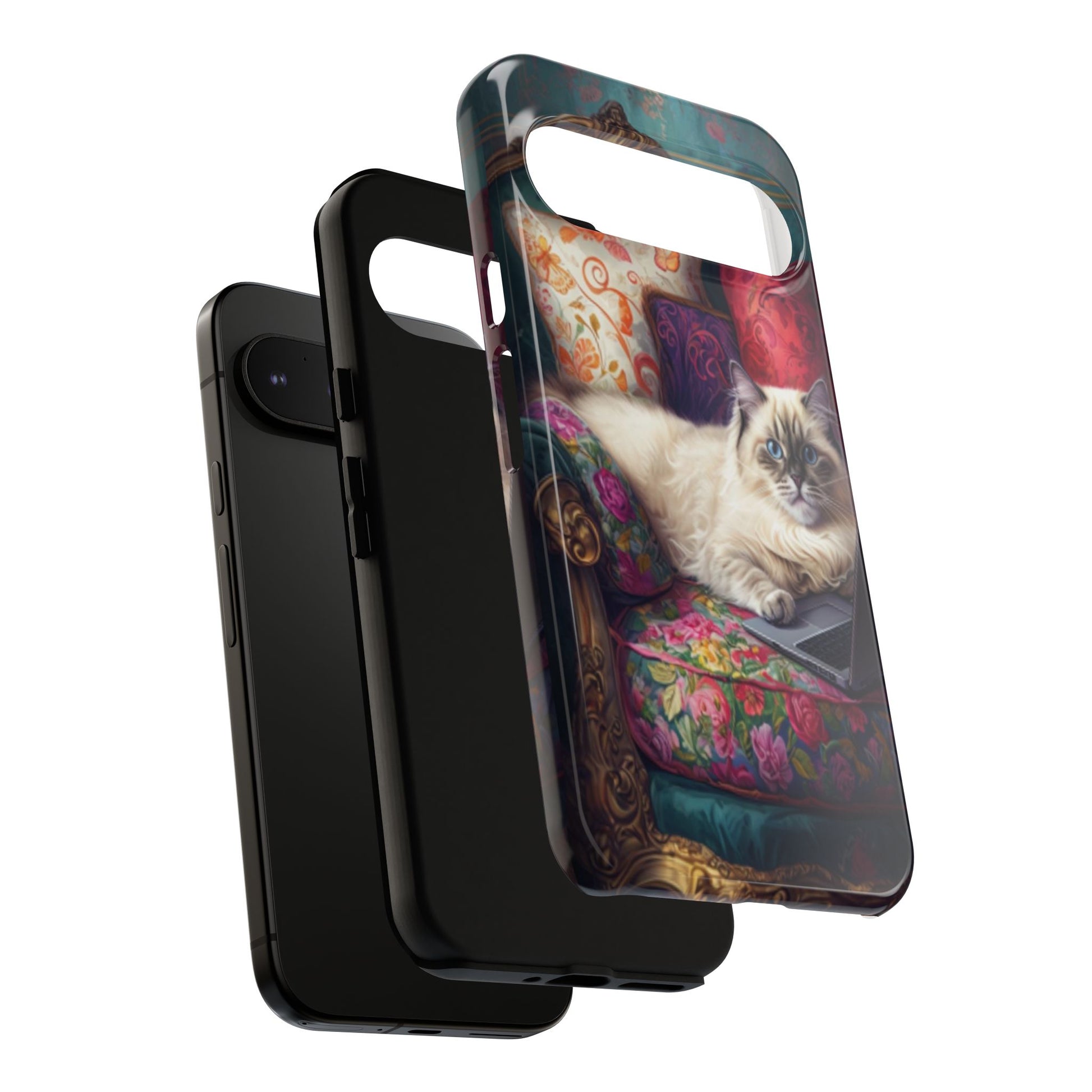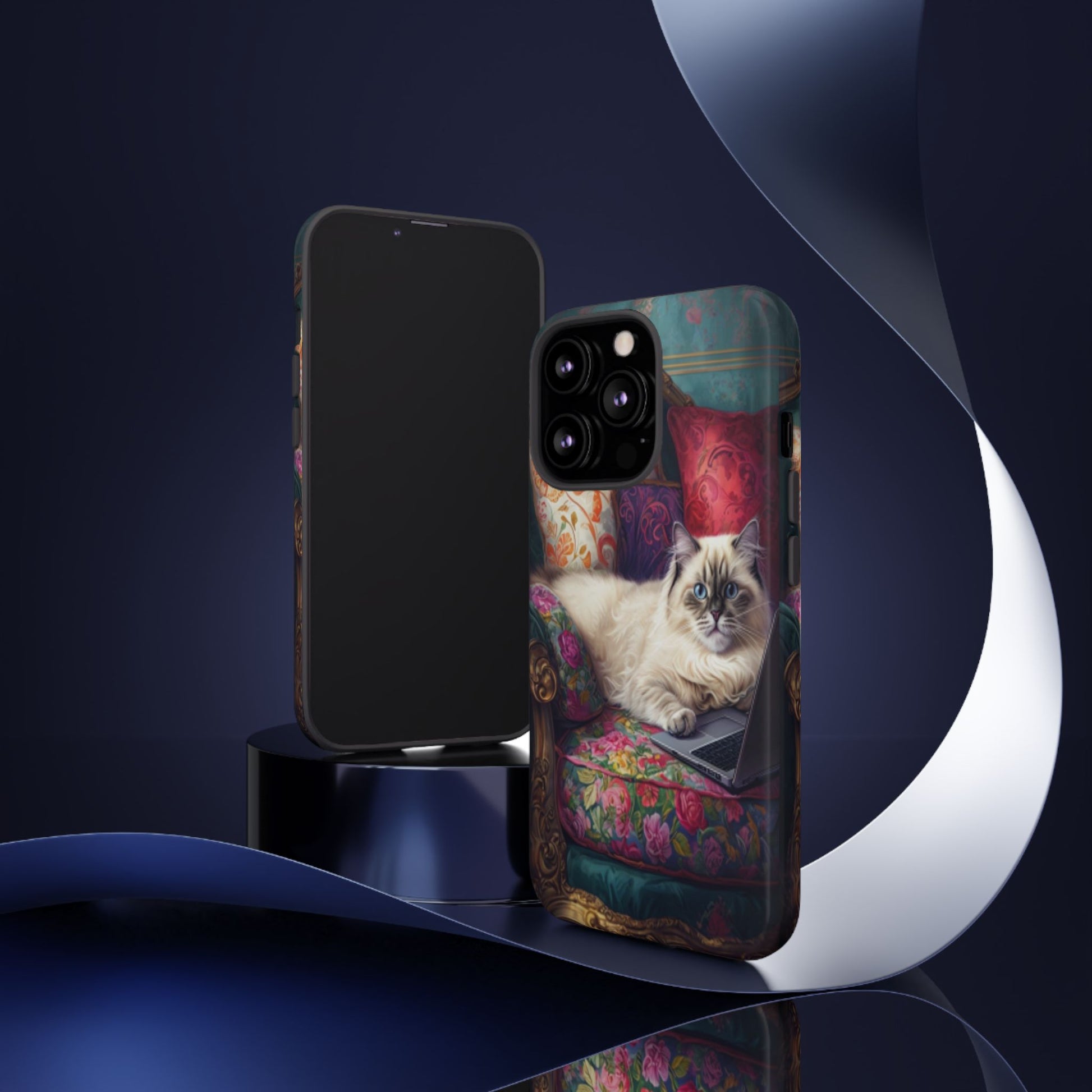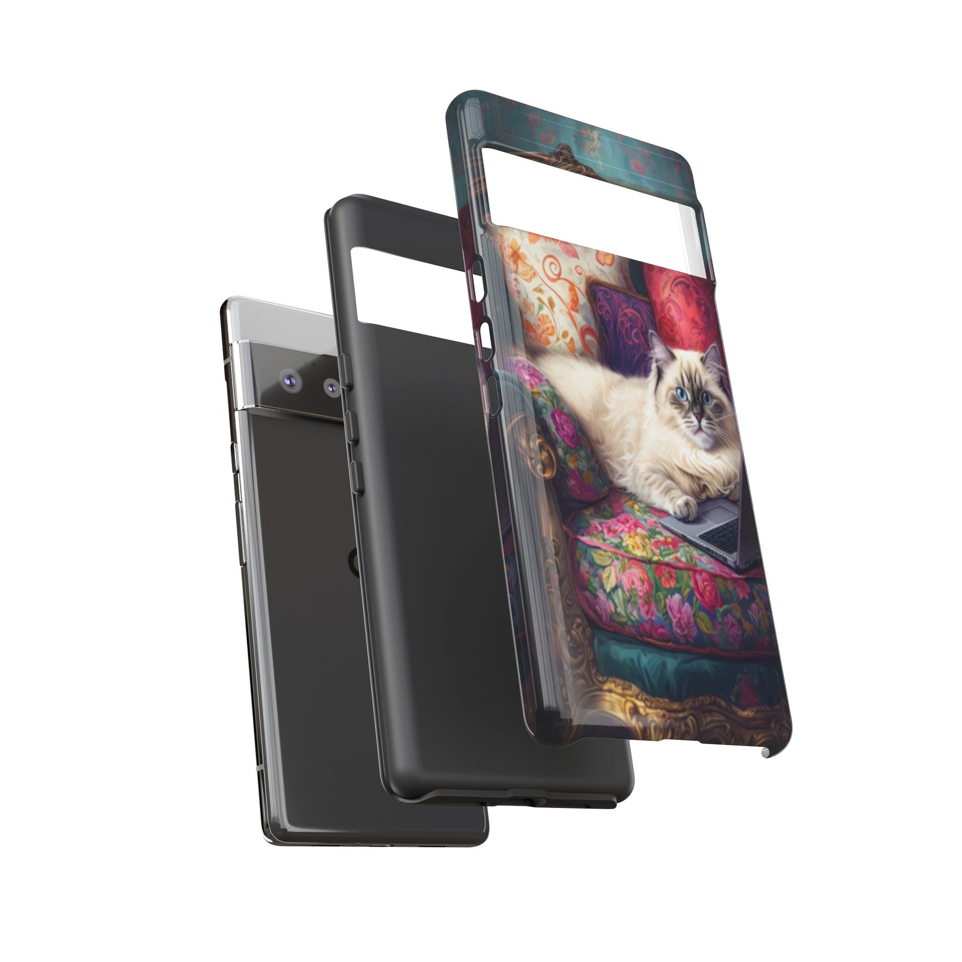 Introducing a stylish and protective phone case that complements your everyday life while showcasing your love for unique art. This durable case is designed to resonate with cat lovers and art enthusiasts alike, featuring a stunning image of a lounging feline that adds charm to any device. Perfect for daily use, this phone case allows you to express your personality while keeping your phone safe. It's an ideal gift for special occasions such as birthdays, holidays, or simply to celebrate the joy of pet ownership. Whether you're at home, work, or on the go, this phone case effortlessly combines functionality with artistic flair, making it a must-have accessory.