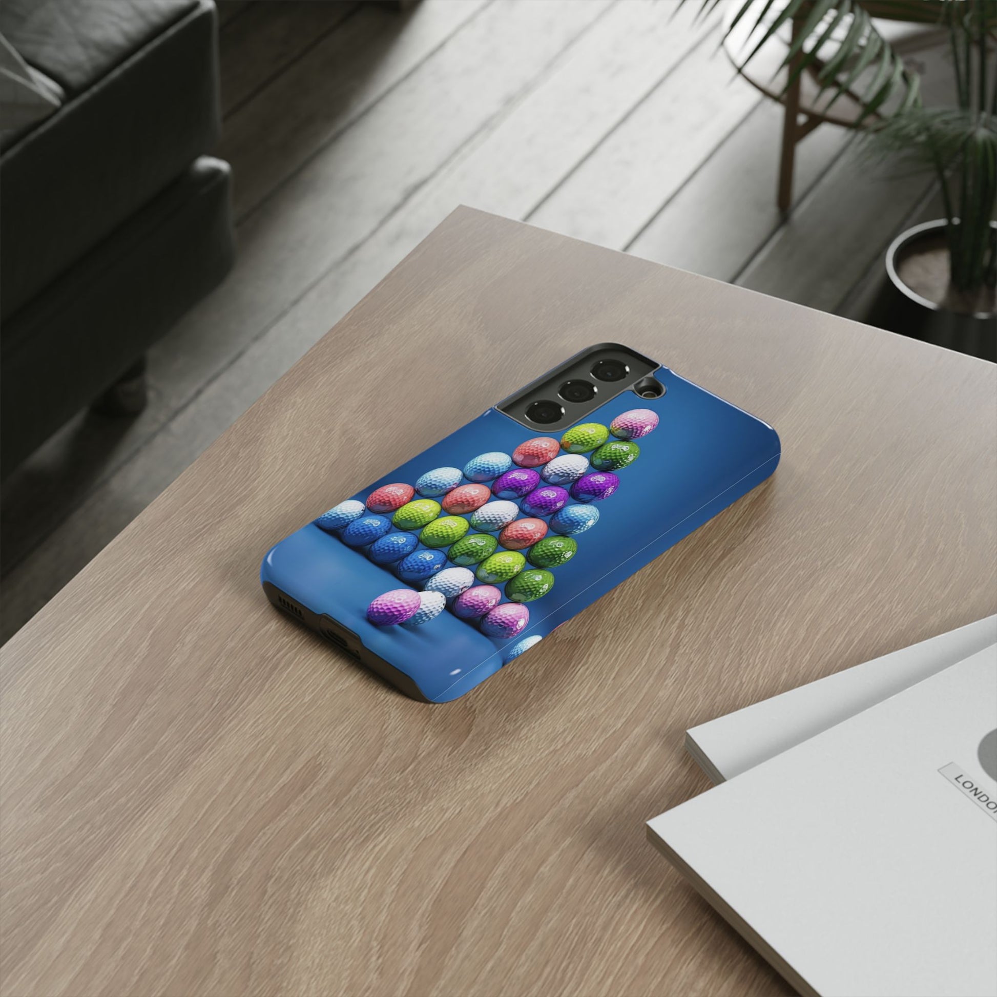 Introducing a striking **phone case** that combines style with robust protection. The colorful design features a playful stack of vibrant eggs, making it the perfect accessory for anyone looking to add a splash of personality to their device. Whether you’re heading to a spring celebration, an Easter gathering, or simply want to brighten your everyday life, this phone case is designed to impress. It’s ideal for individuals who appreciate unique aesthetics while valuing the safety of their devices. This case is particularly suited for adults who want their phone to reflect their joyful spirit and love for festive occasions.
