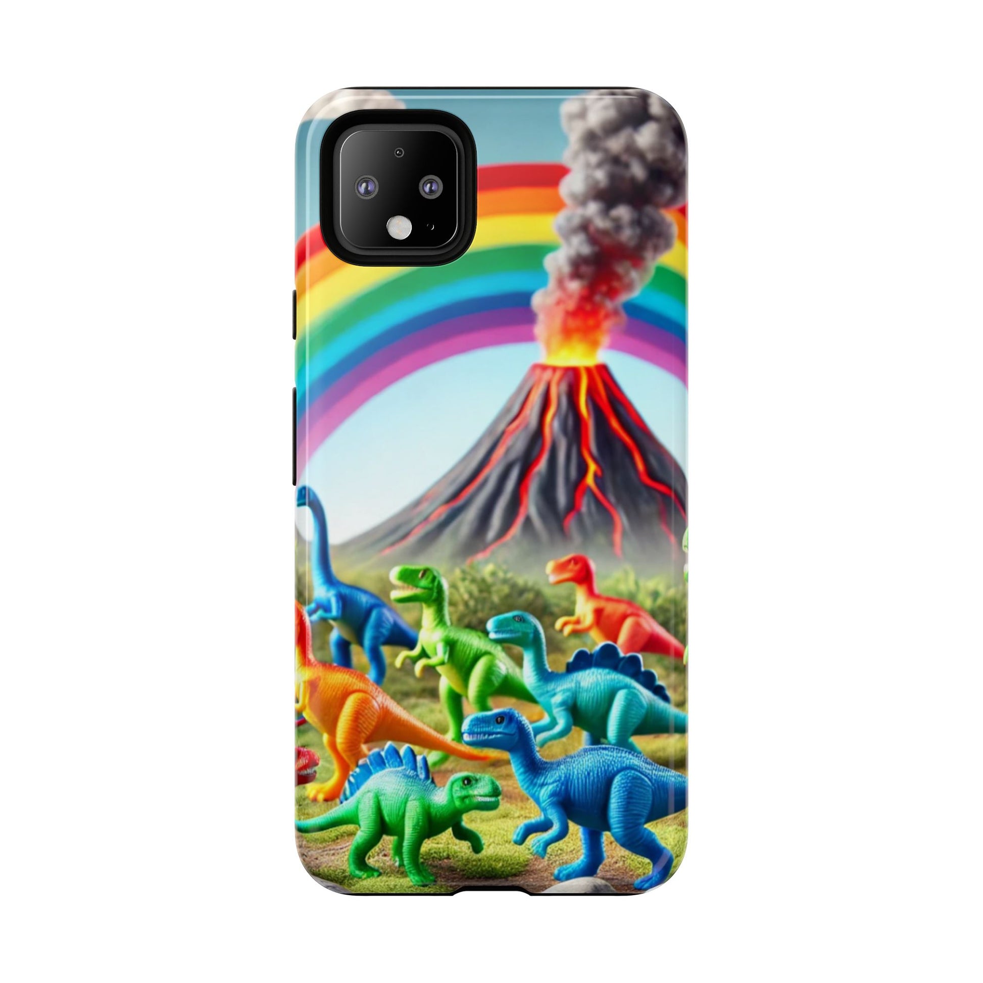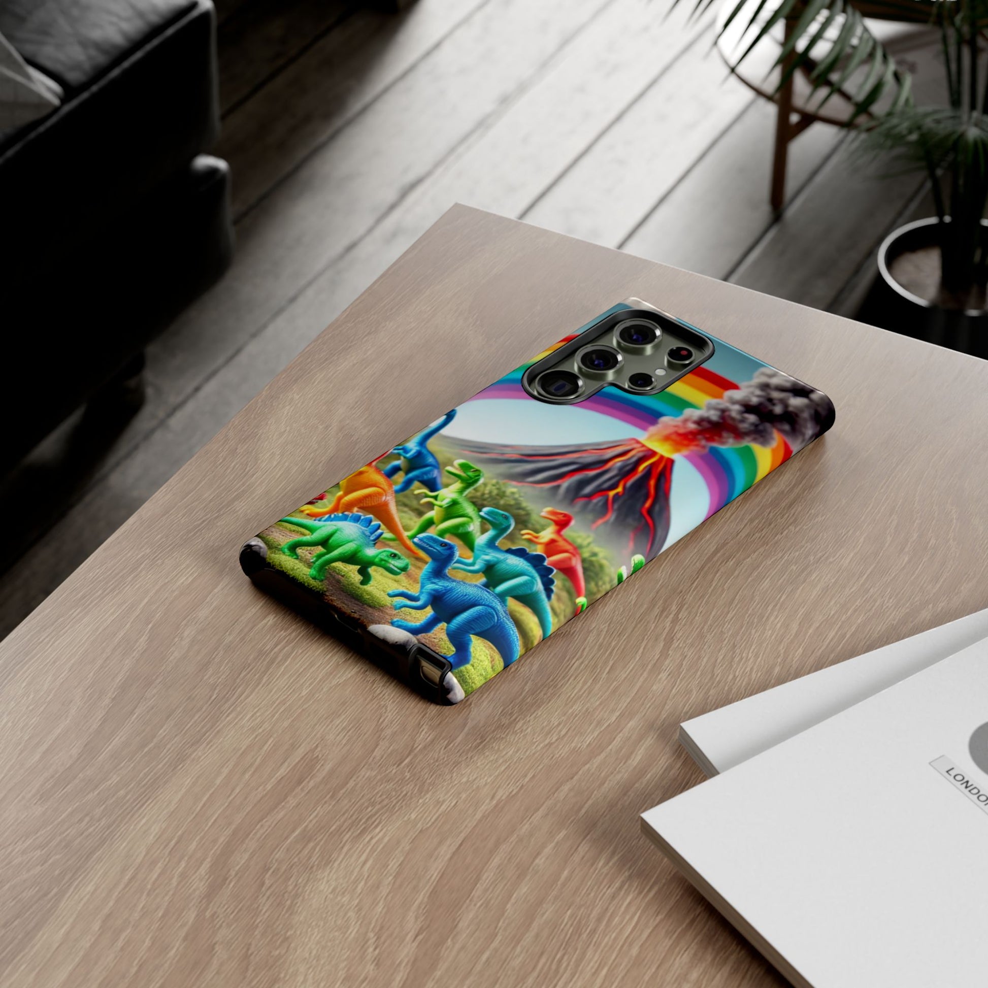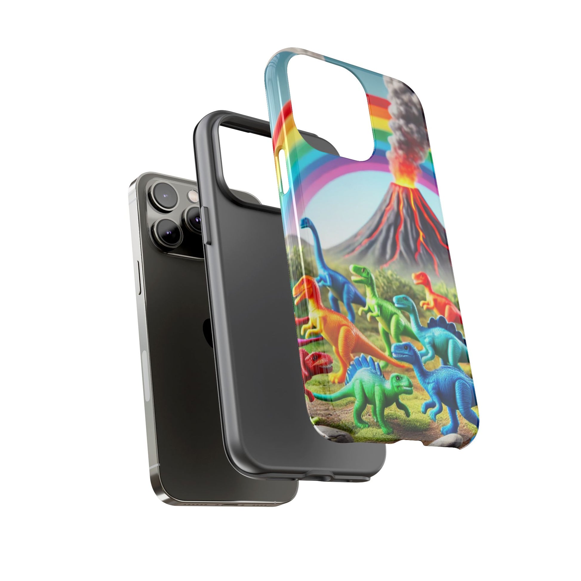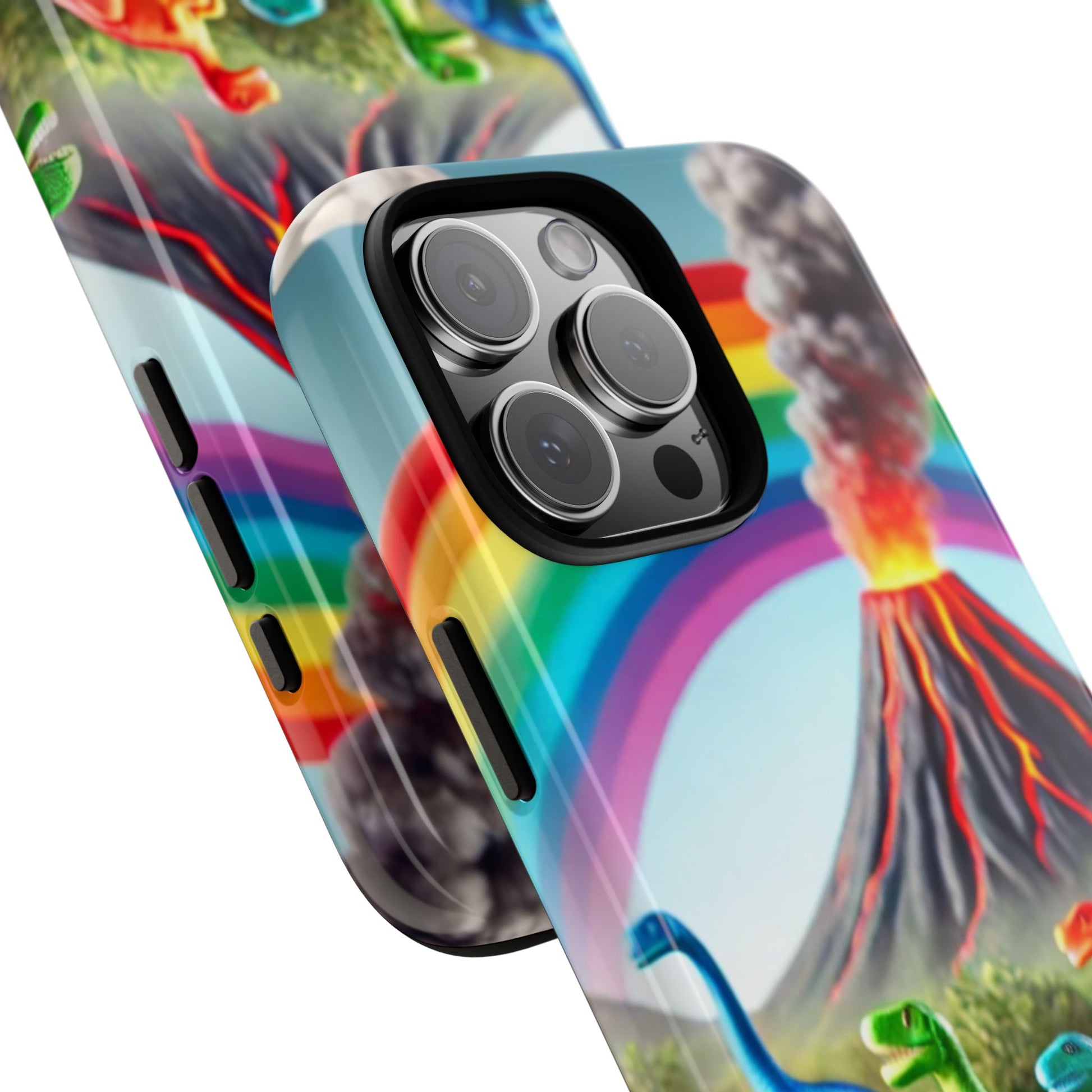 Introducing a vibrant and playful phone case that brings a touch of whimsy to your everyday life. This durable case features a captivating design of colorful dinosaurs against a backdrop of an erupting volcano and a stunning rainbow, instantly uplifting your spirit. Perfect for those who appreciate fun, unique styles, this product is ideal for kids, dinosaur enthusiasts, or anyone wanting to showcase their playful side. Great for birthdays, holidays, or just to brighten someone’s day, it fits seamlessly into your lifestyle, whether you’re at school, work, or out with friends. Enjoy the durability and protection without sacrificing style!