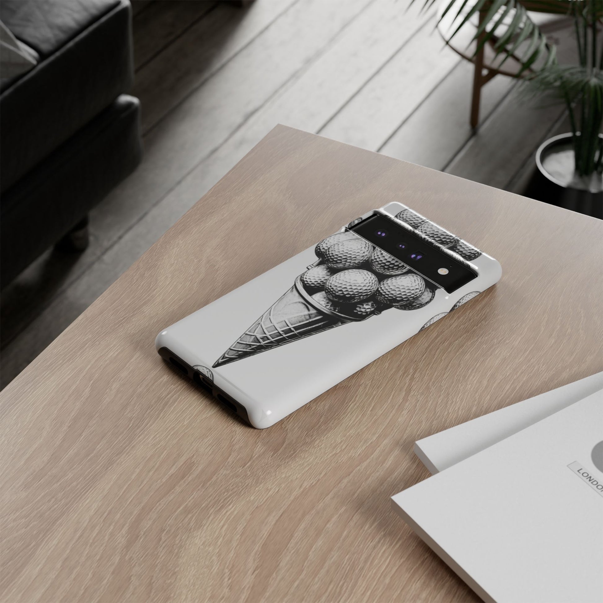 Introduce a stylish expression of your personality with this unique phone case. Designed to protect while showcasing an eye-catching 3D wrap of playful golf balls stacked in an ice cream cone, this product emanates fun and creativity. Perfect for those who love to stand out and bring a bit of whimsy to their everyday tech. Ideal for golfers, sports enthusiasts, or anyone looking to add a dash of humor to their phone accessories. This case is suitable for various occasions, whether it’s a birthday gift, holiday celebration, or just a treat for yourself!