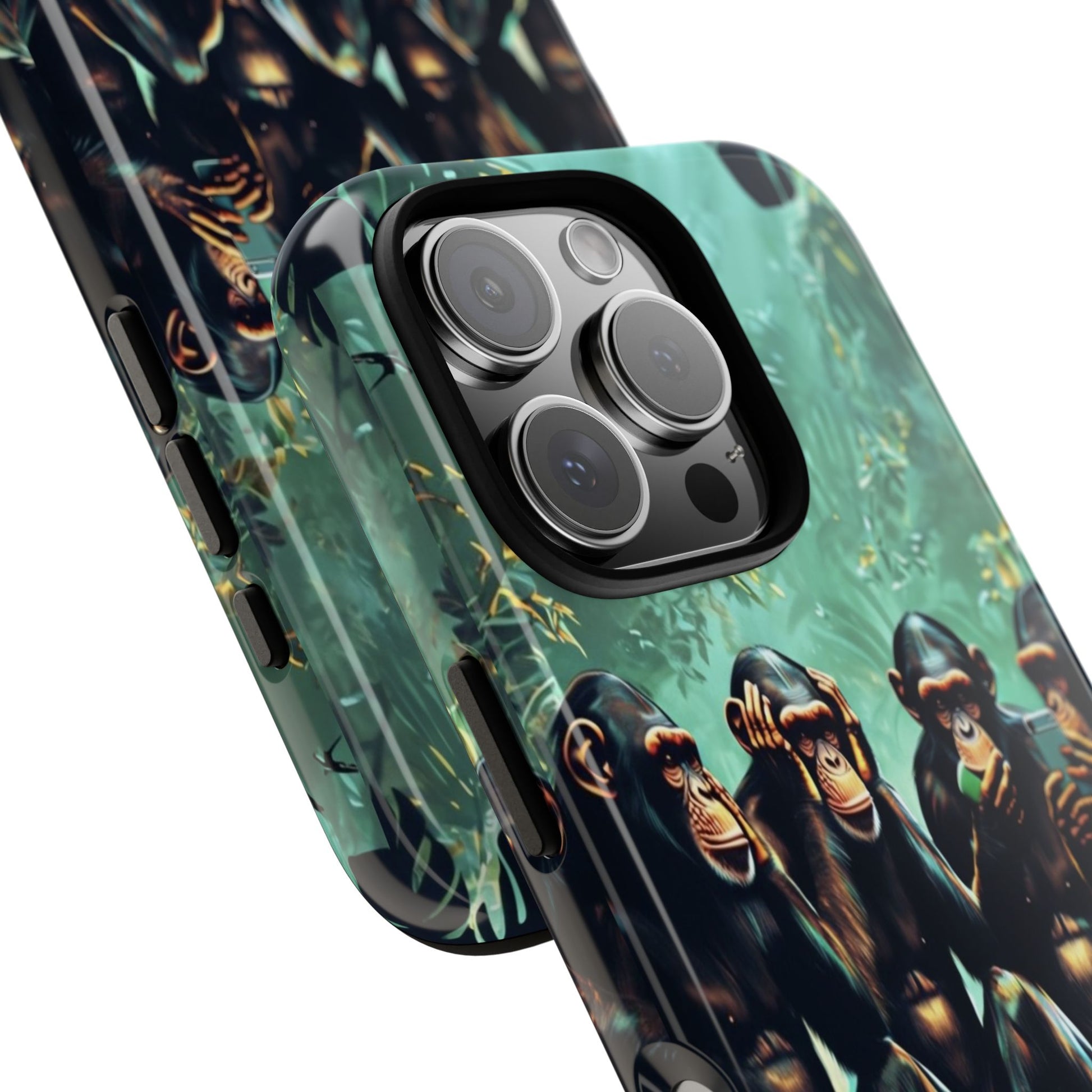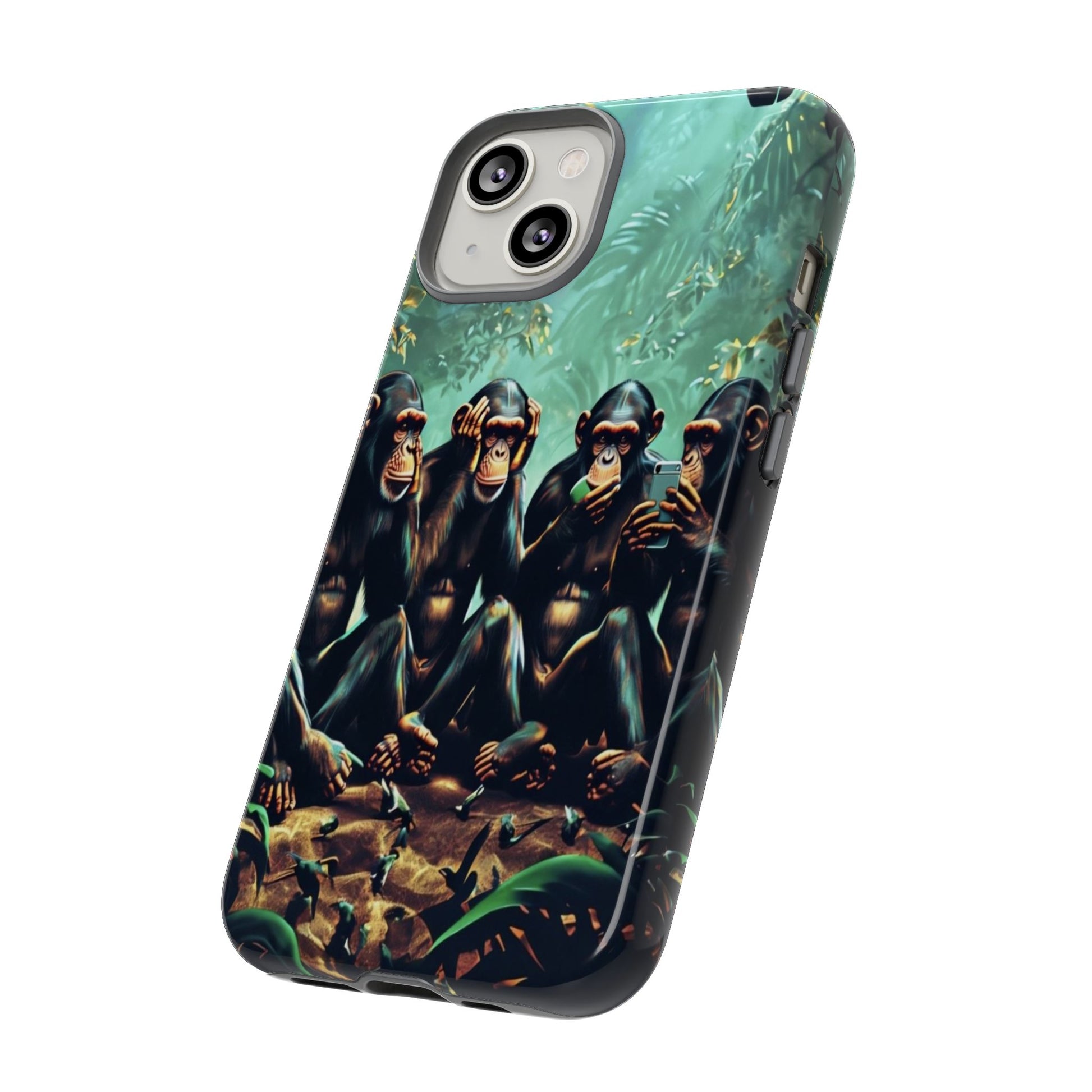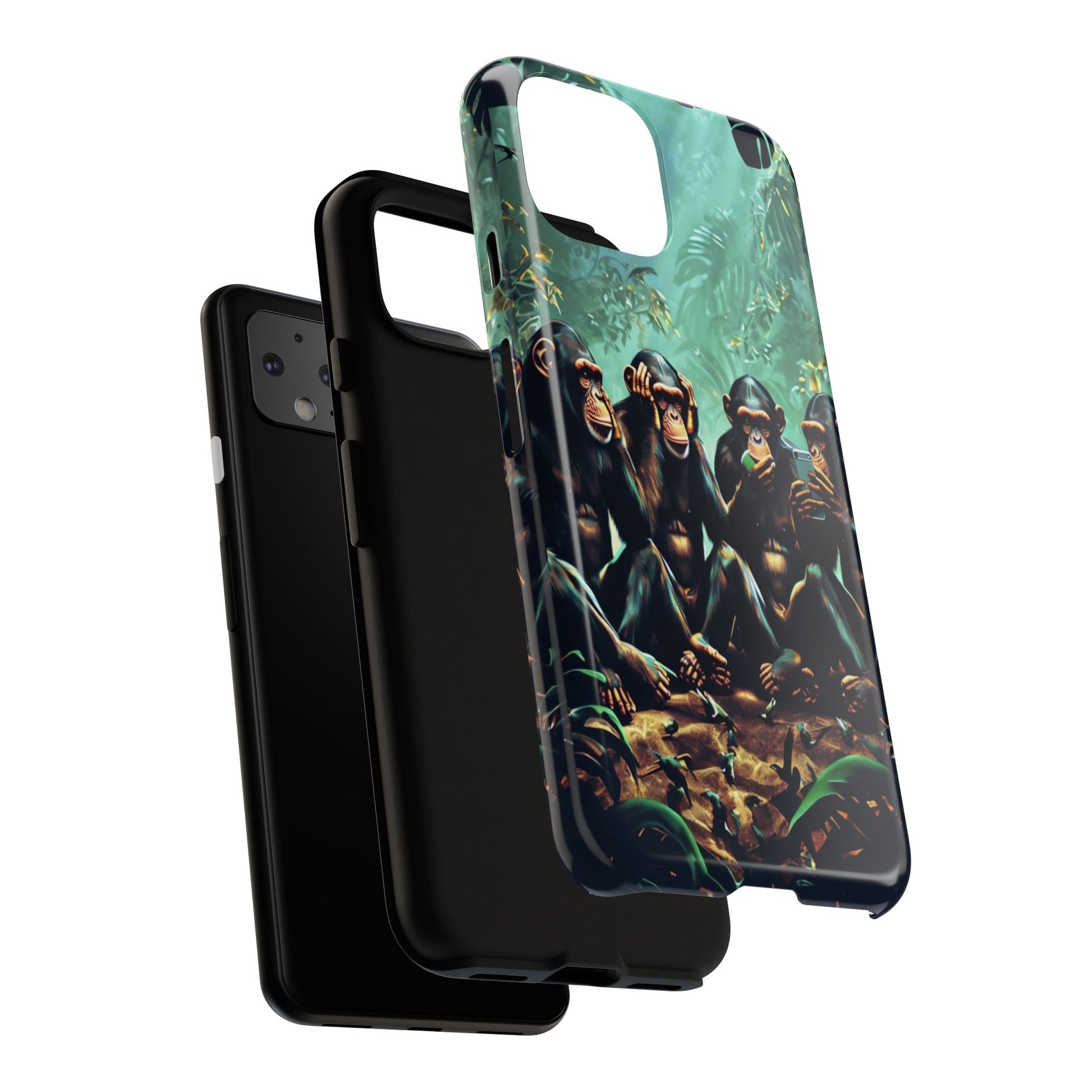The modern monkey - head bent, glued to the phone, blind to the world around, a satire.