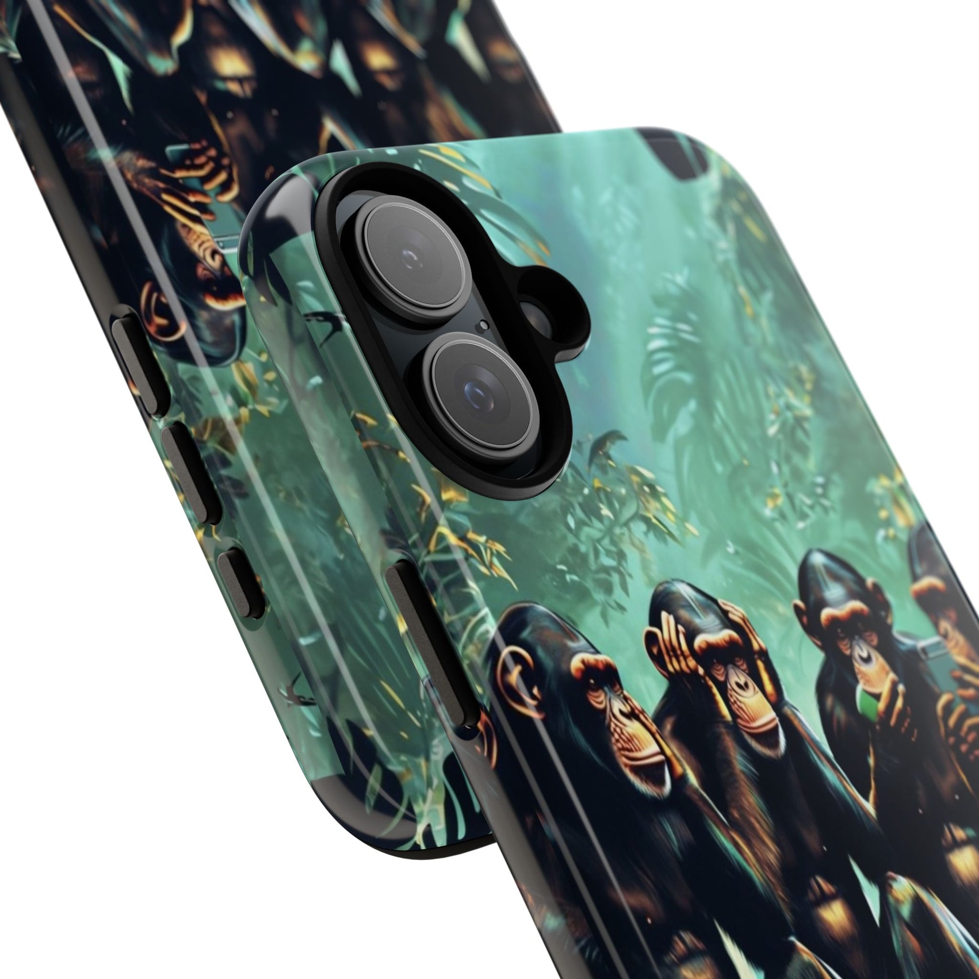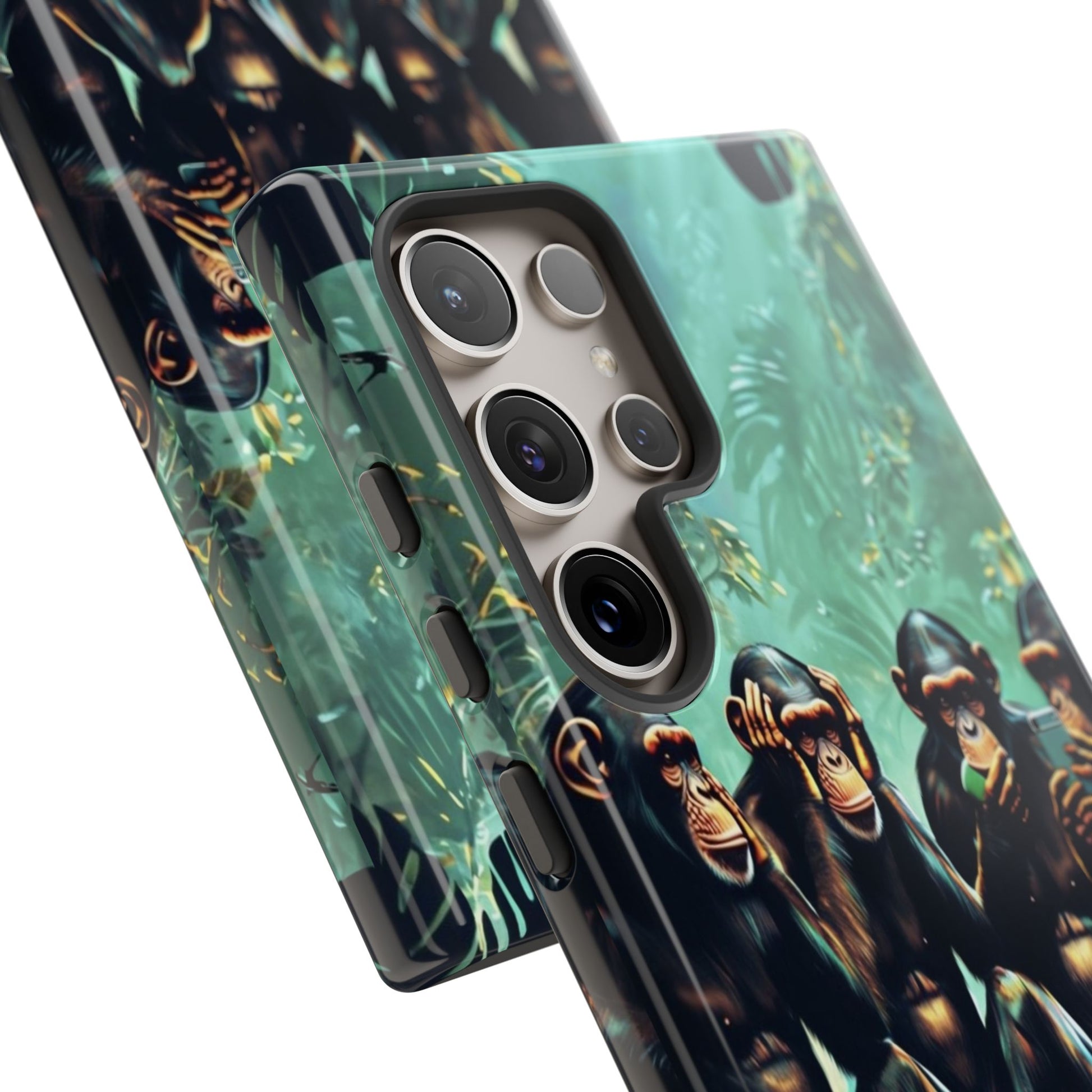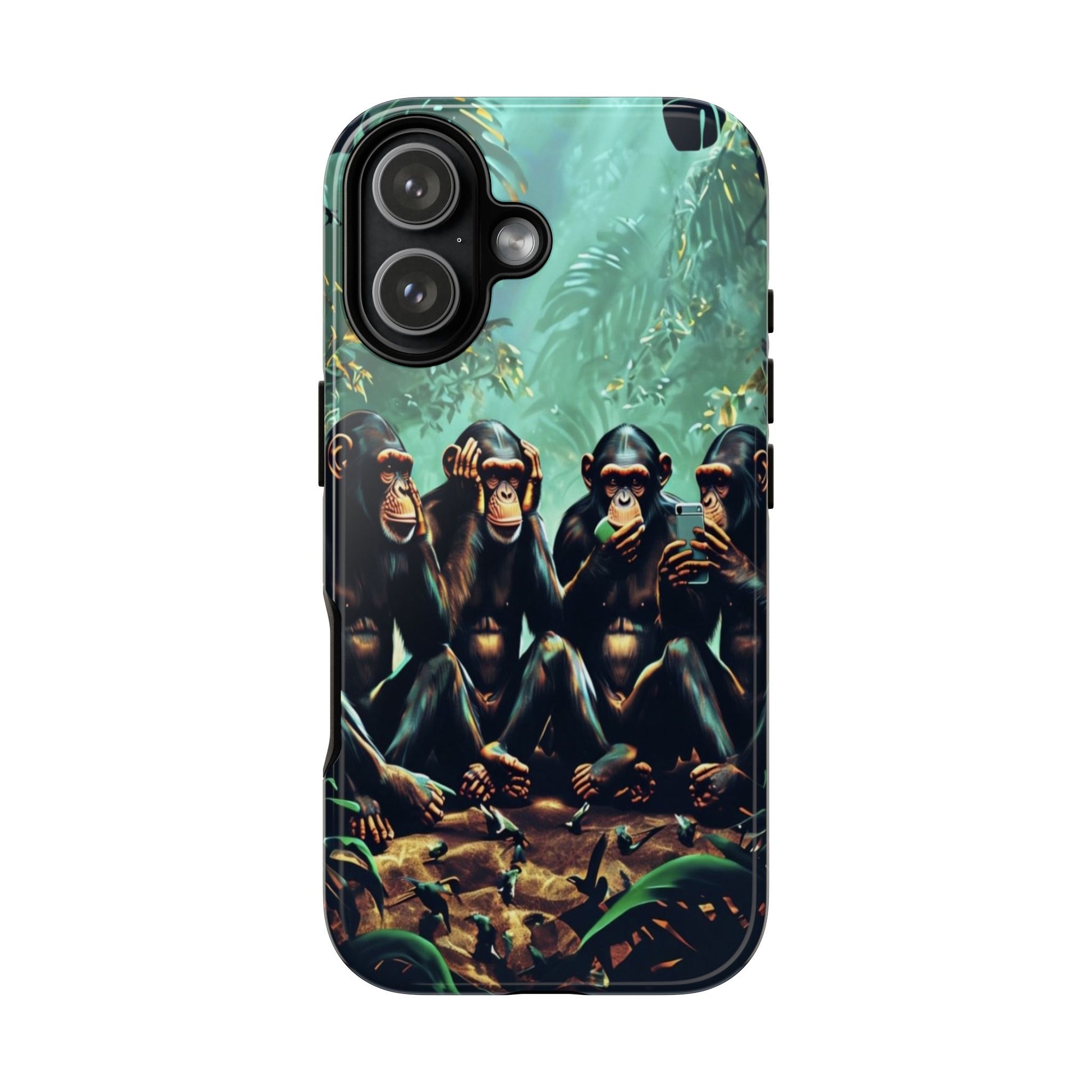 The modern monkey - head bent, glued to the phone, blind to the world around, a satire.