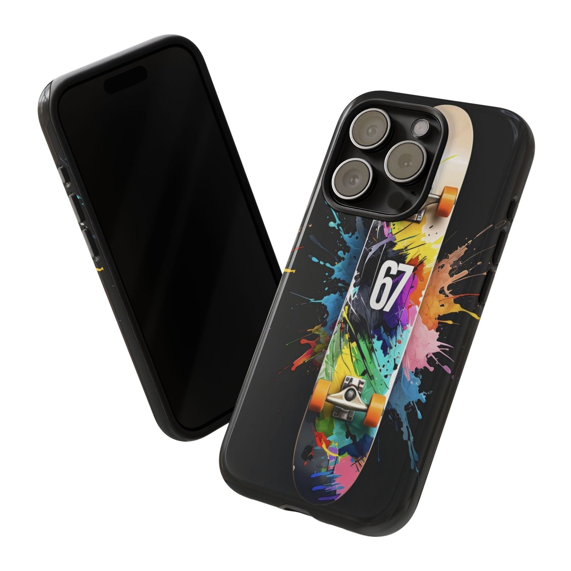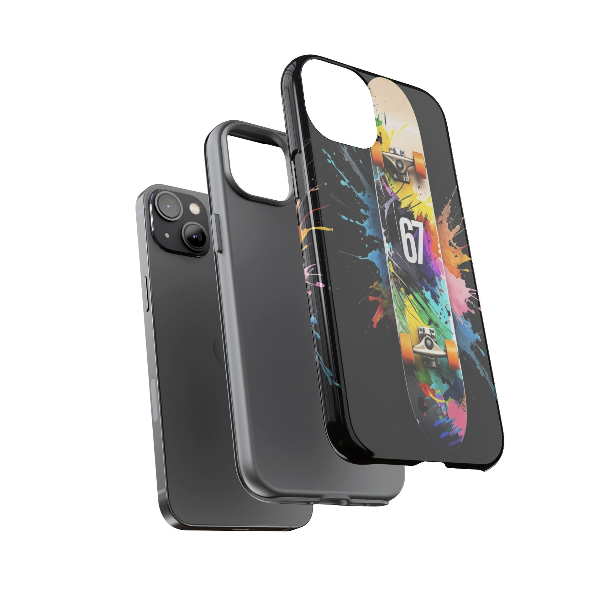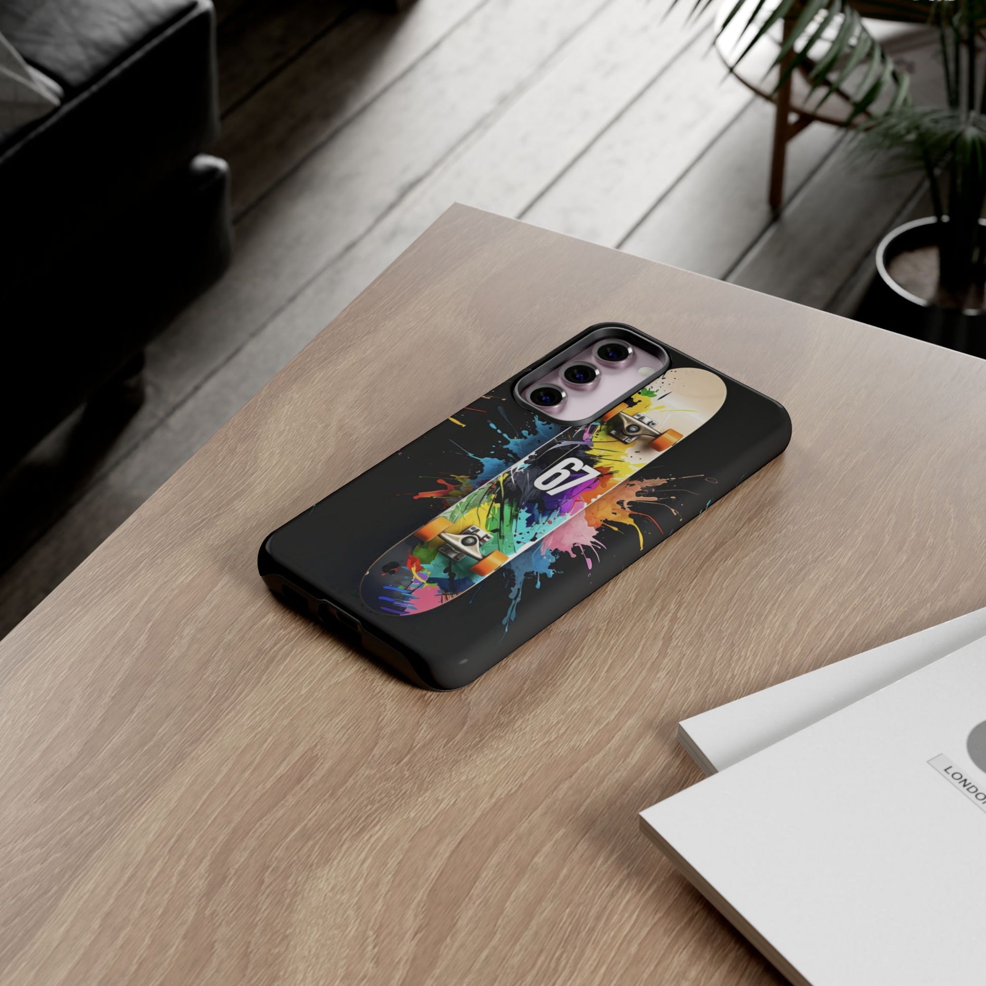 Introducing a vibrant and protective phone case that speaks to the creative spirit. Designed to make a statement, this product showcases a dynamic skateboarding graphic covered in splashes of color. Perfect for skaters, artists, and anyone who loves to express themselves, this phone case blends style with functionality. It exudes energy and enthusiasm, ideal for everyday use or as a gift. Whether it's for a birthday, a holiday celebration, or simply to brighten someone's day, this phone case fits seamlessly into the life of any active individual. Celebrate your passion and show off your unique style!
