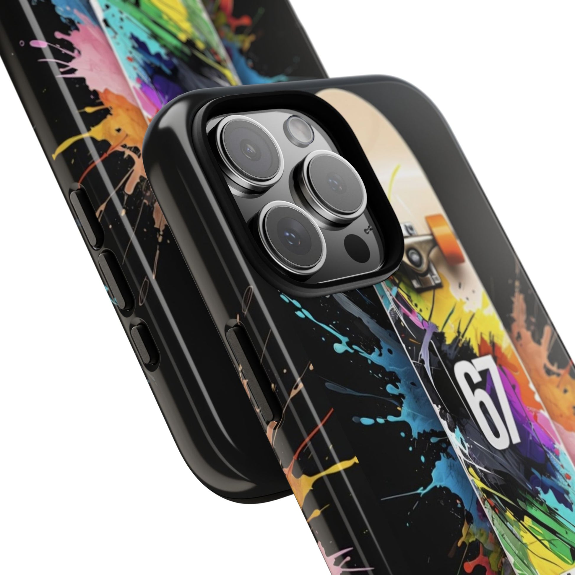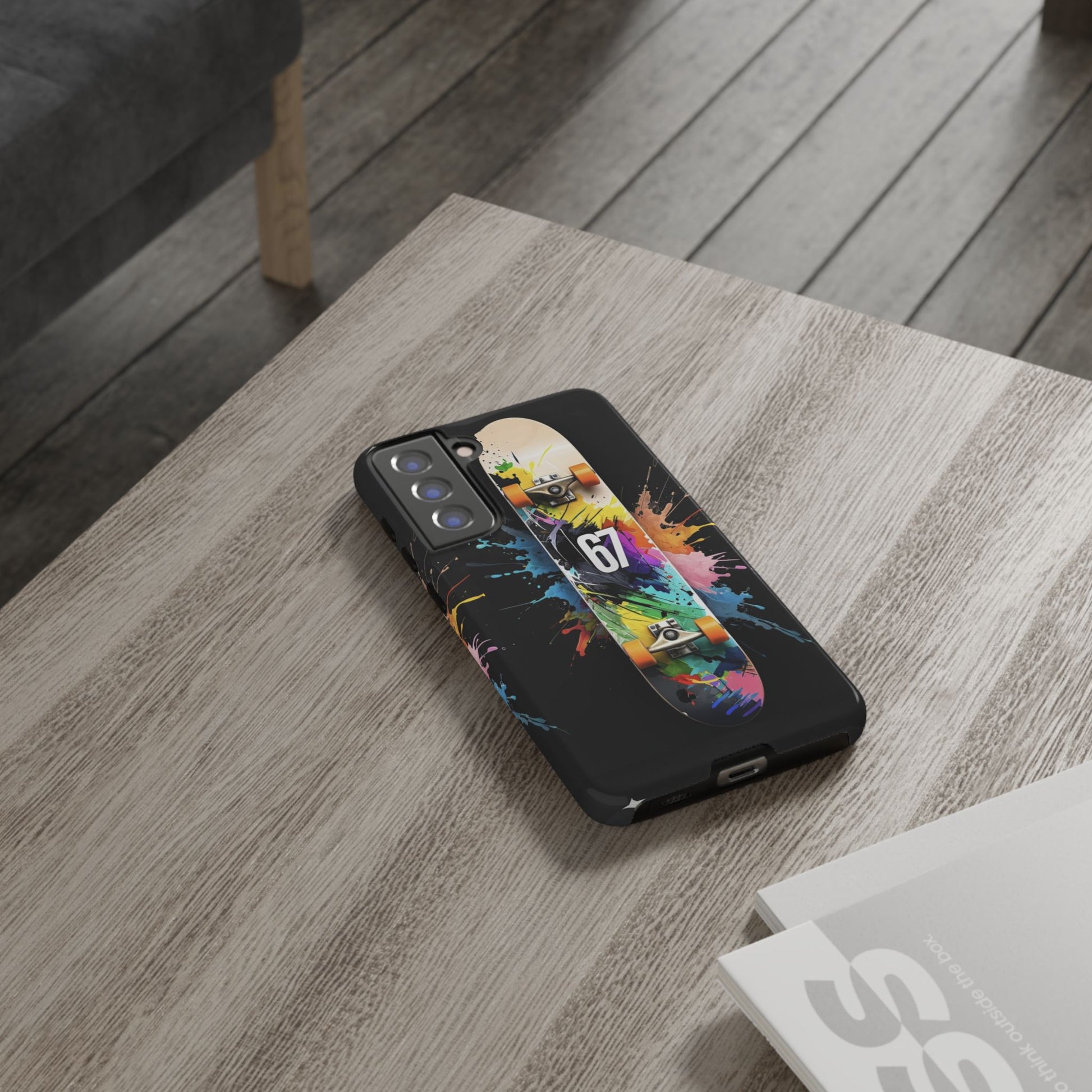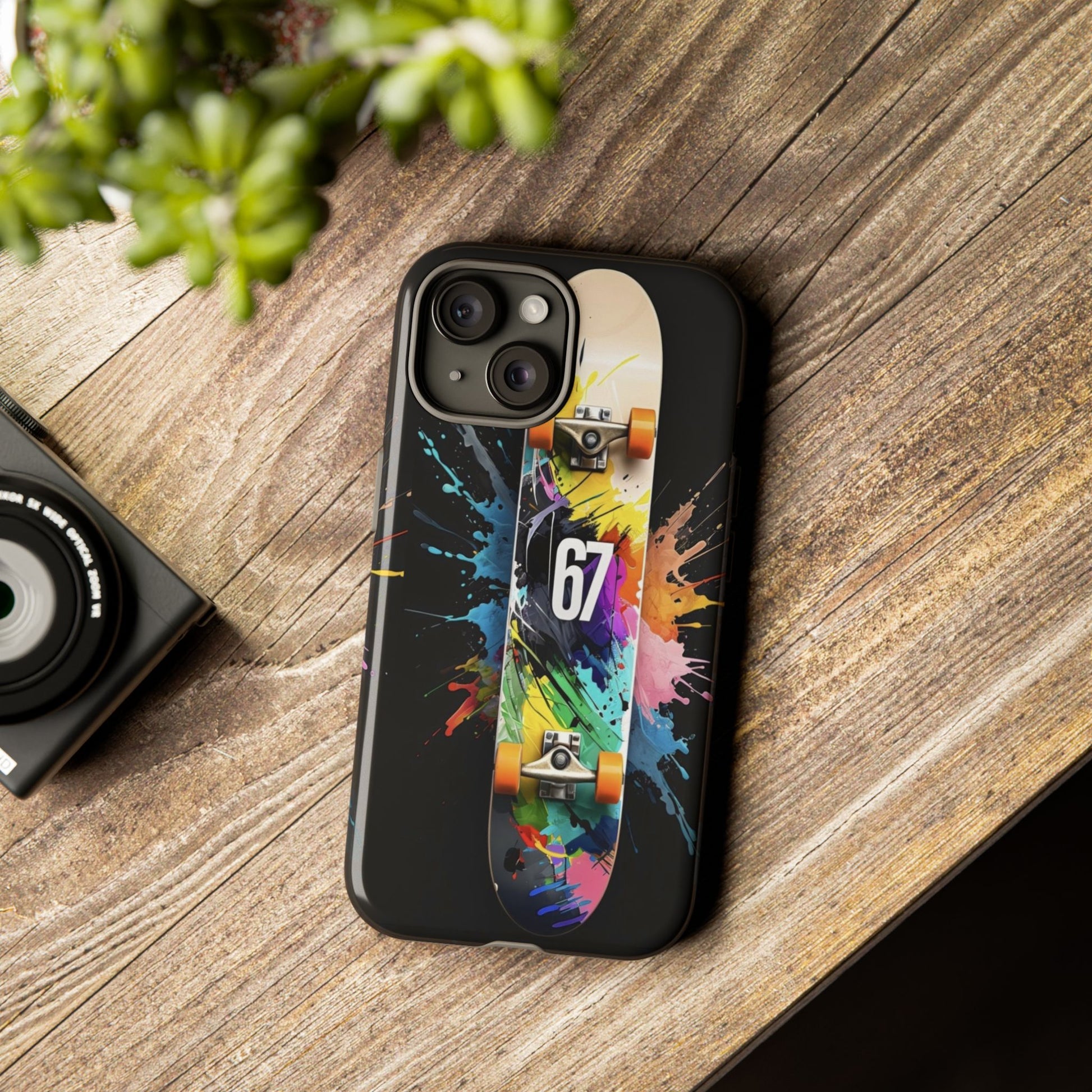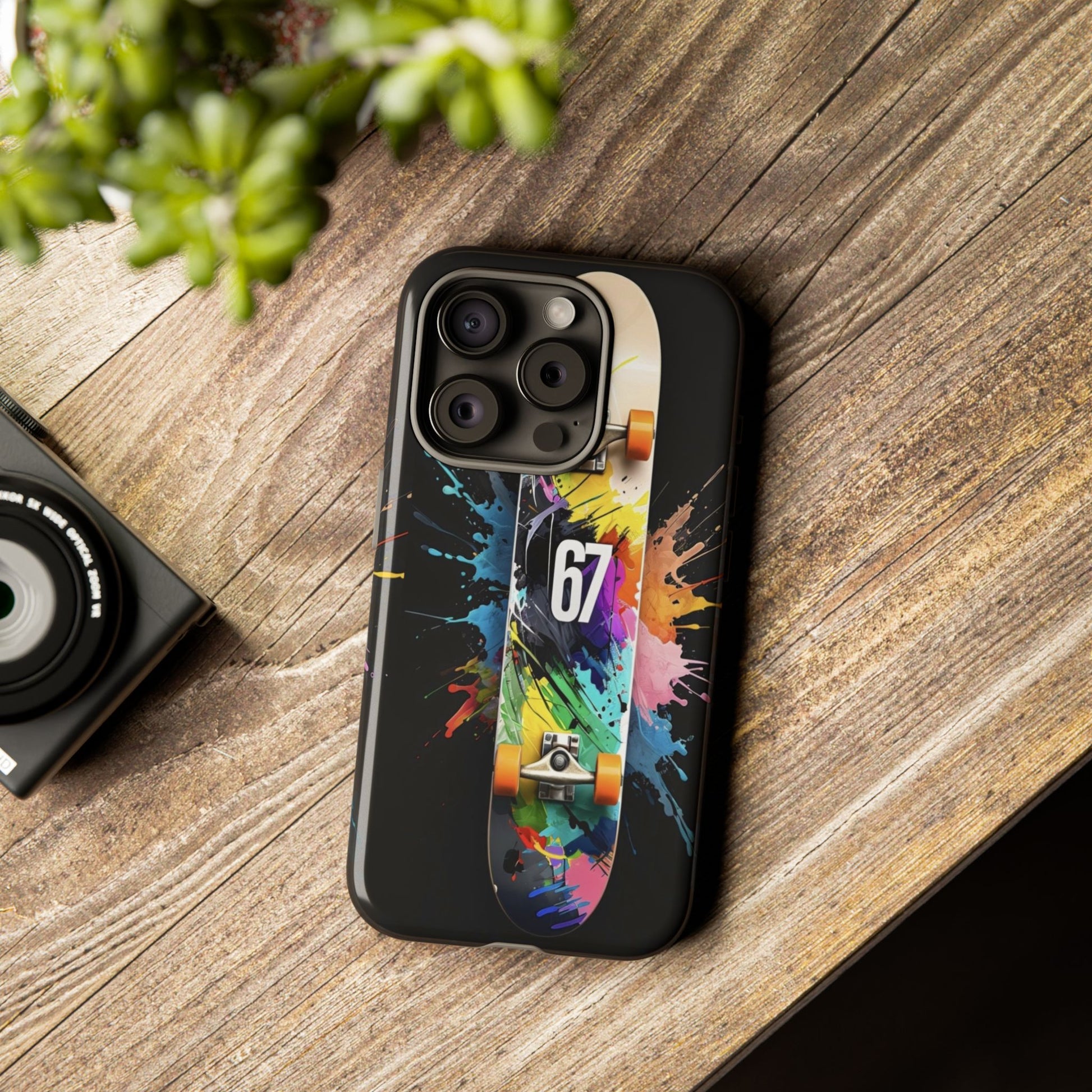 Introducing a vibrant and protective phone case that speaks to the creative spirit. Designed to make a statement, this product showcases a dynamic skateboarding graphic covered in splashes of color. Perfect for skaters, artists, and anyone who loves to express themselves, this phone case blends style with functionality. It exudes energy and enthusiasm, ideal for everyday use or as a gift. Whether it's for a birthday, a holiday celebration, or simply to brighten someone's day, this phone case fits seamlessly into the life of any active individual. Celebrate your passion and show off your unique style!