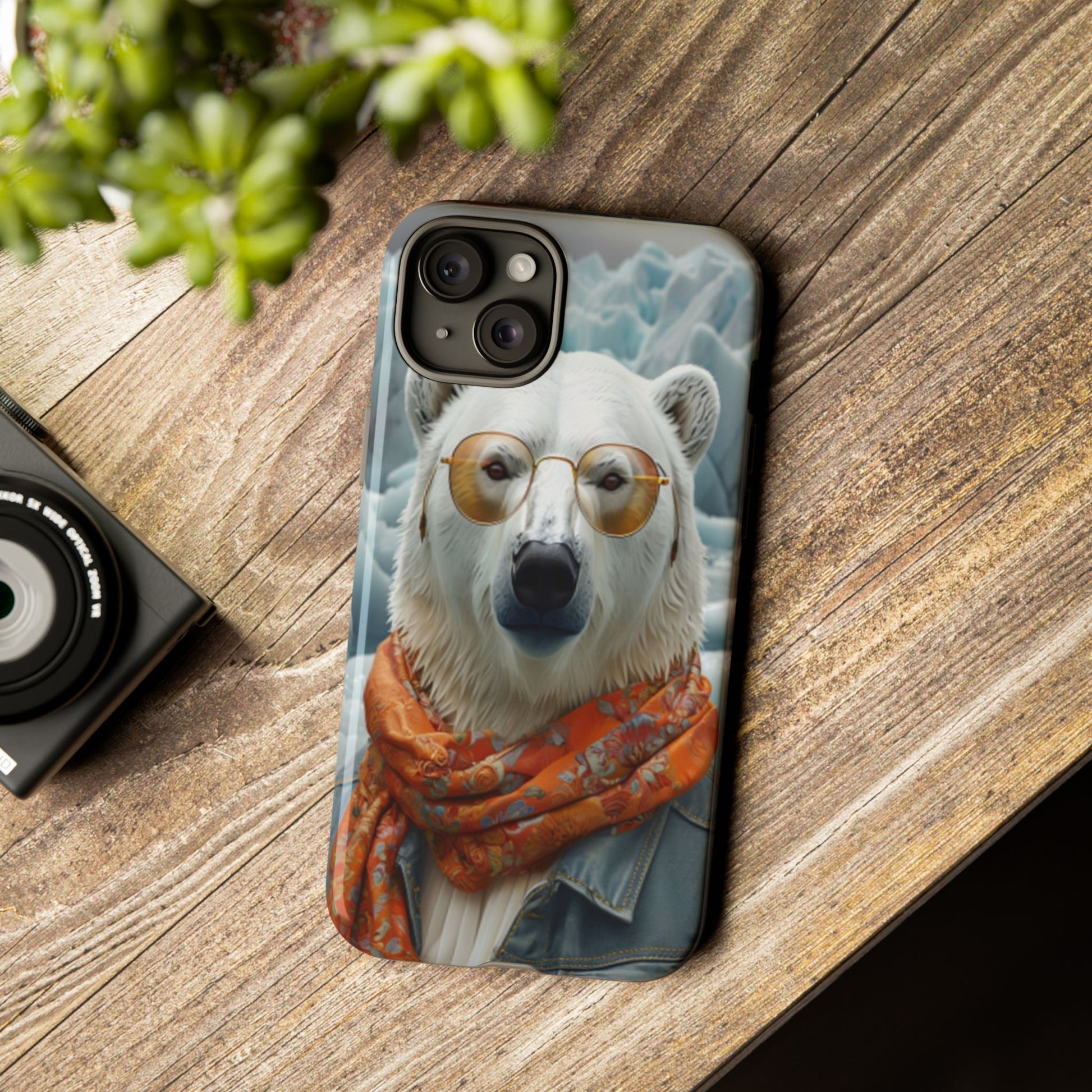 Meet your new favorite accessory: a stylish and protective phone case that seamlessly blends functionality with whimsical design. This phone case features a unique illustration of a fashionable polar bear, exuding charm and personality. Perfect for animal lovers and those with a quirky sense of style, this case adds a playful touch to your everyday carry. Not only is it visually striking, but it's also built to withstand the rigors of daily life, protecting your phone from drops and scratches. Ideal for gifting on birthdays, holidays, or any occasion where you want to brighten someone’s day. Its vibe is both fun and functional, making your phone stand out while ensuring it stays safe. Whether you're cozying up at a winter gathering or exploring the outdoors, this phone case is a conversation starter and a stylish companion.