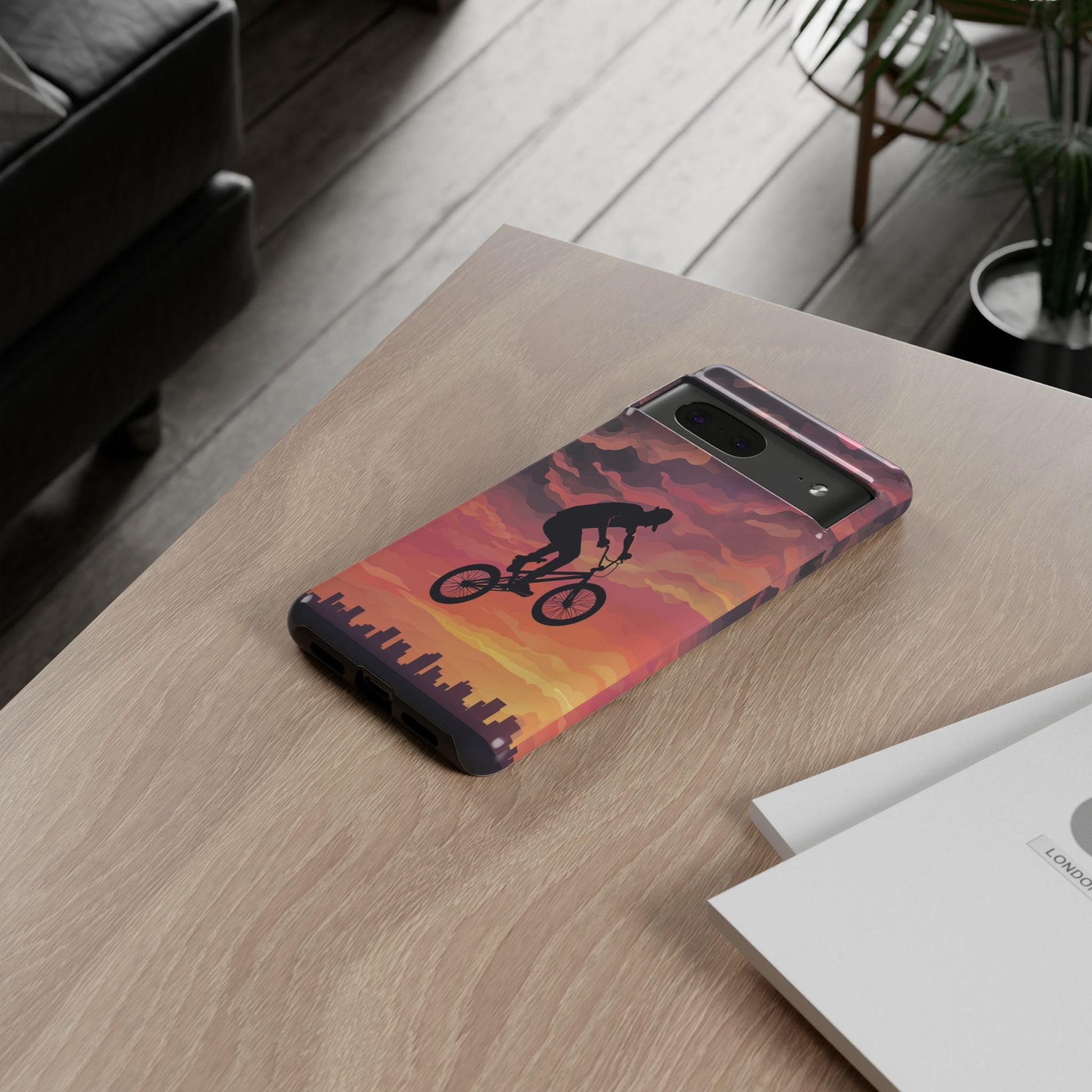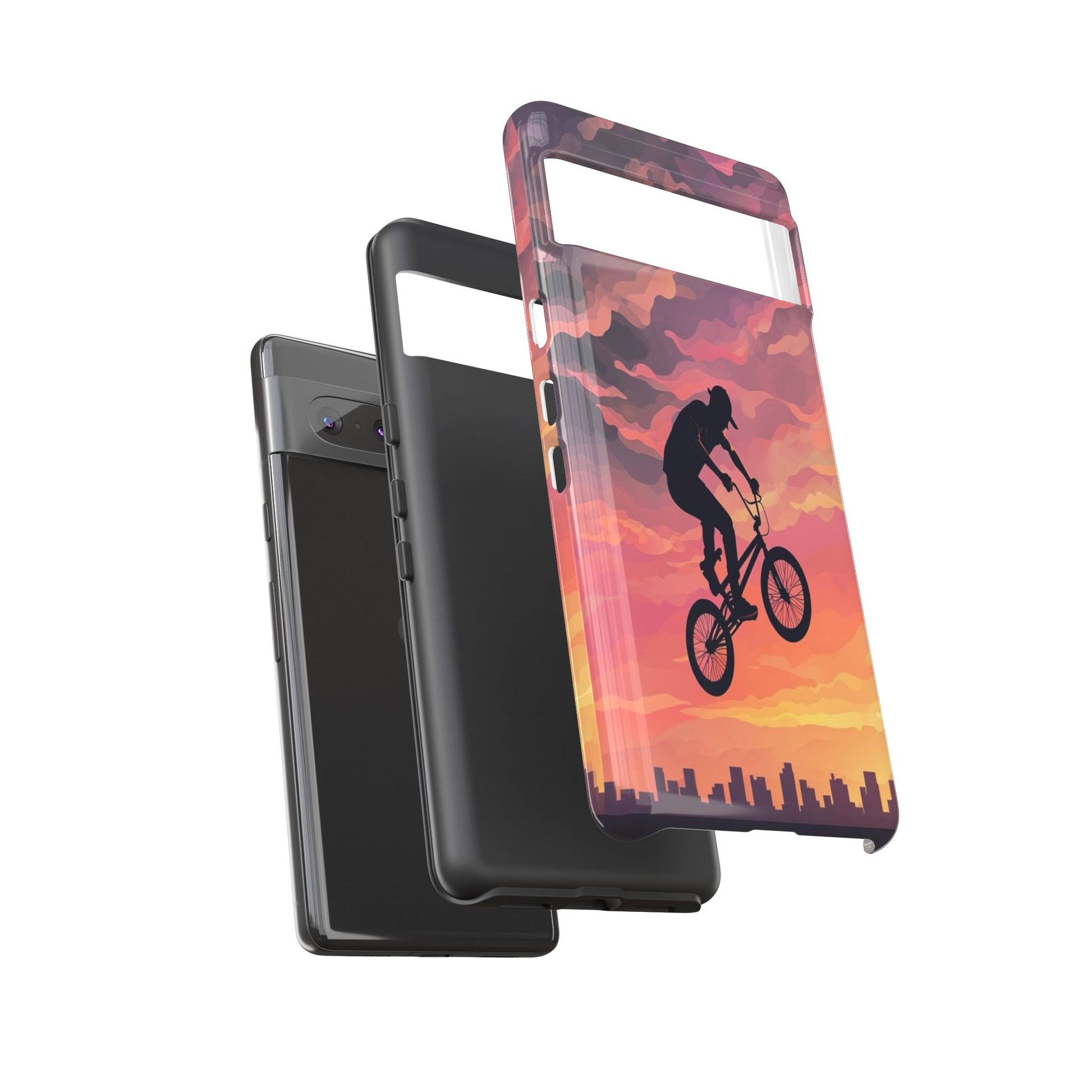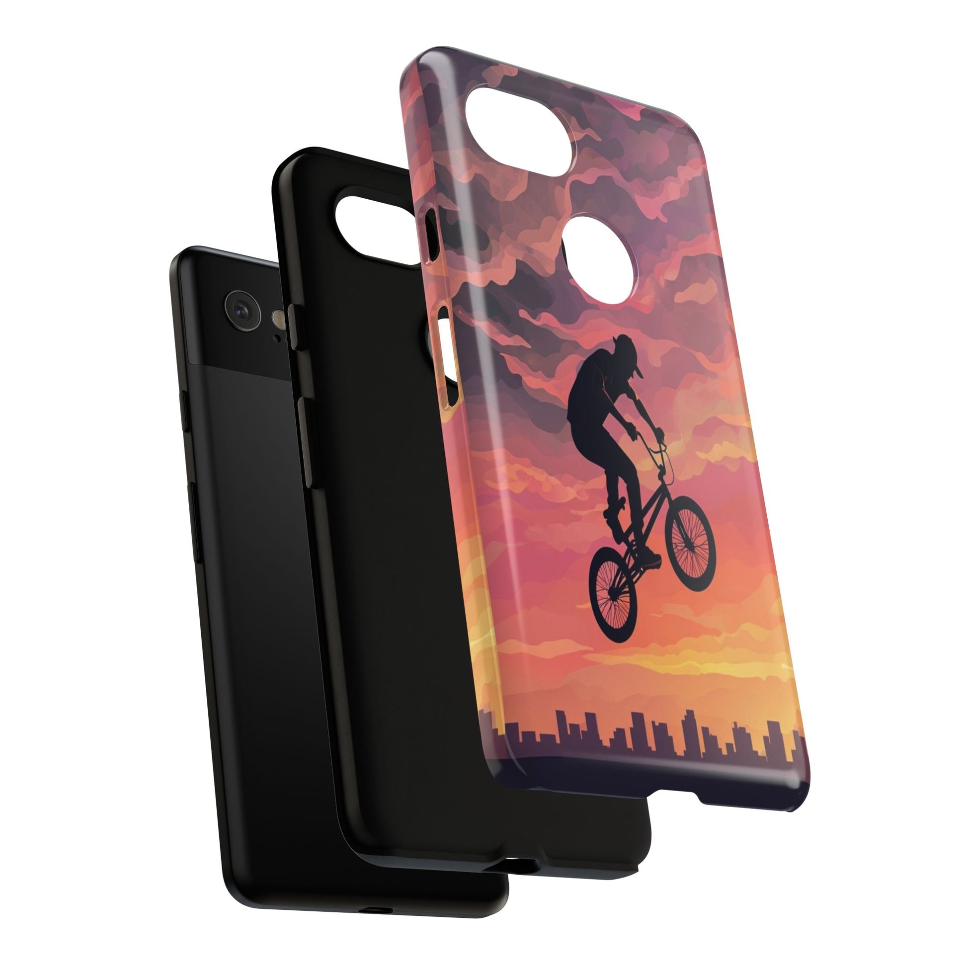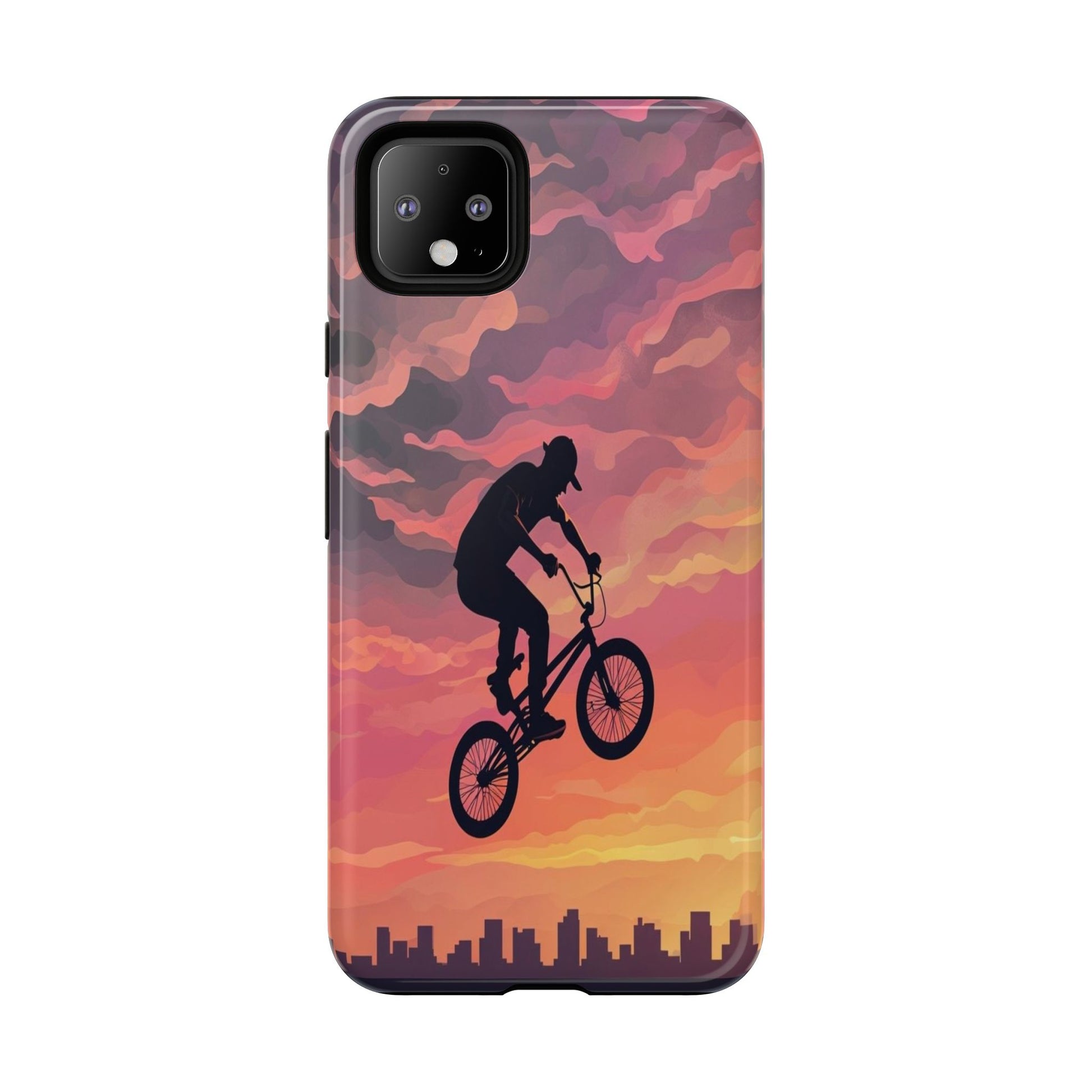 Introducing a stunning Tough Case designed for adventure lovers! This durable phone case combines artistry and protection, featuring a vibrant sunset backdrop with a silhouette of a cyclist soaring through the sky. It radiates a sense of thrill and freedom, perfect for those who live life on the edge. Ideal for outdoor enthusiasts, athletes, and anyone who appreciates bold design, this Tough Case fits seamlessly into active lifestyles. Whether you're hitting a bike trail or simply enjoying daily adventures, this case is your perfect companion. Great for gifts on occasions like birthdays, holidays, or just as a treat for yourself!