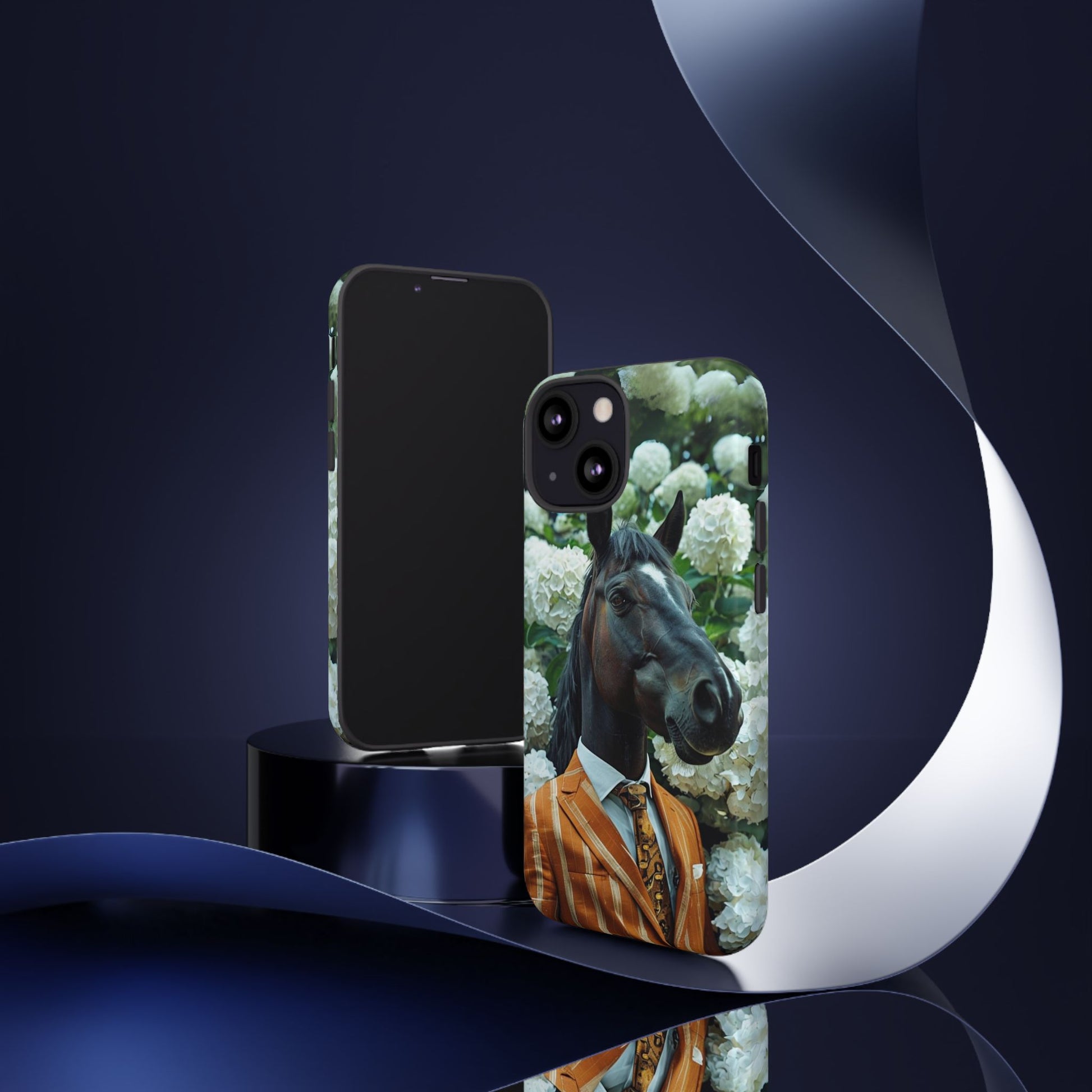 Introducing a unique phone case that blends art and functionality! This durable case, featuring a striking design of a horse in a suit surrounded by blooming flowers, adds a whimsical touch to your everyday tech. Perfect for those who enjoy expressing their personality through their phone accessories, it caters to artists, animal lovers, and anyone who appreciates creativity. This stylish case not only protects your phone but brings a smile to your face every time you reach for it. Ideal for gifting during birthdays, holidays, or simply as a treat for yourself to celebrate everyday moments. Elevate your phone's style while ensuring it stays safe and stylish, no matter the occasion.