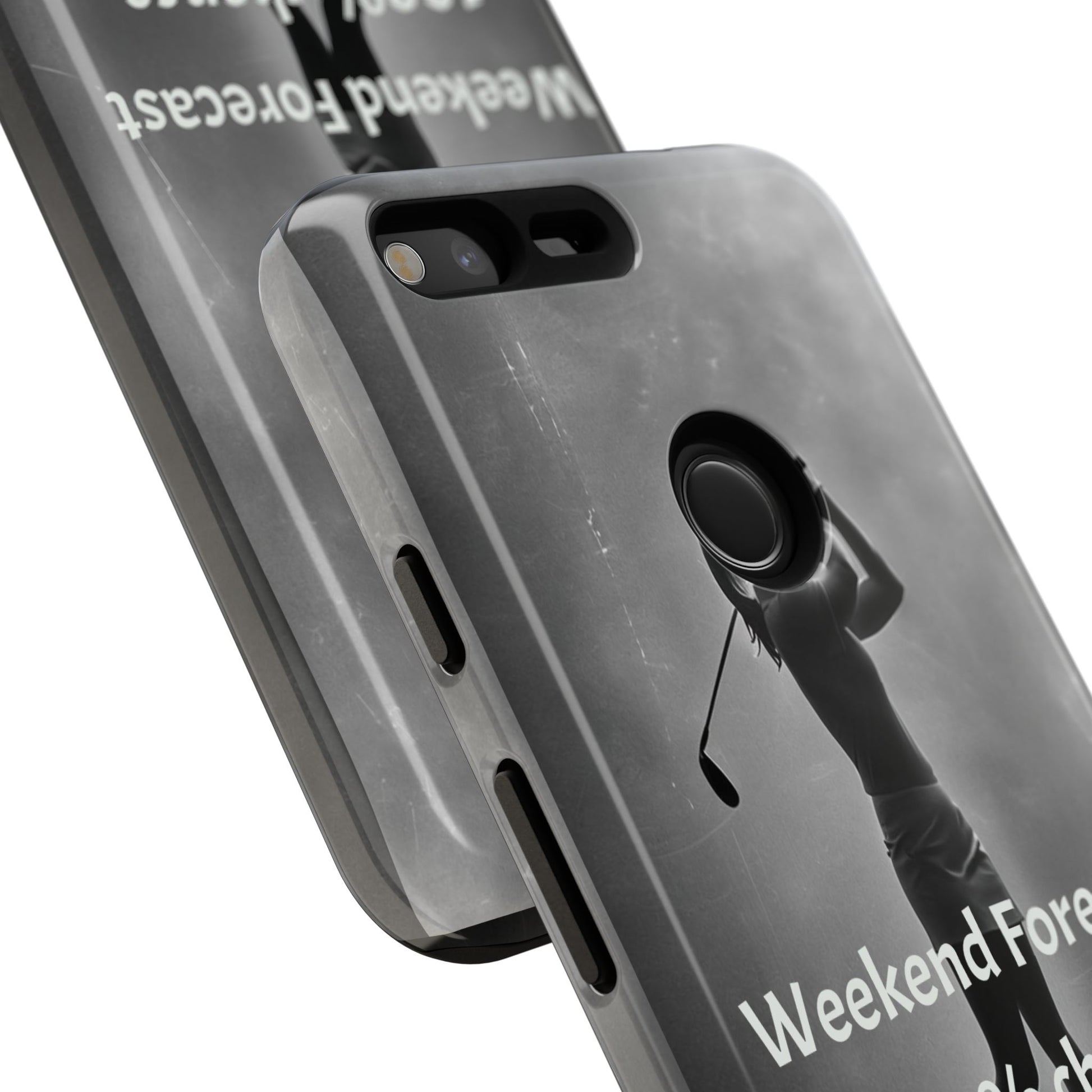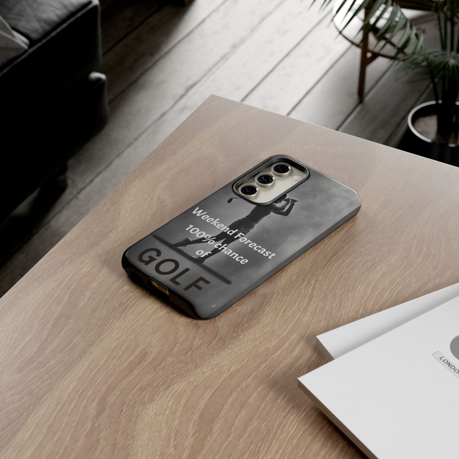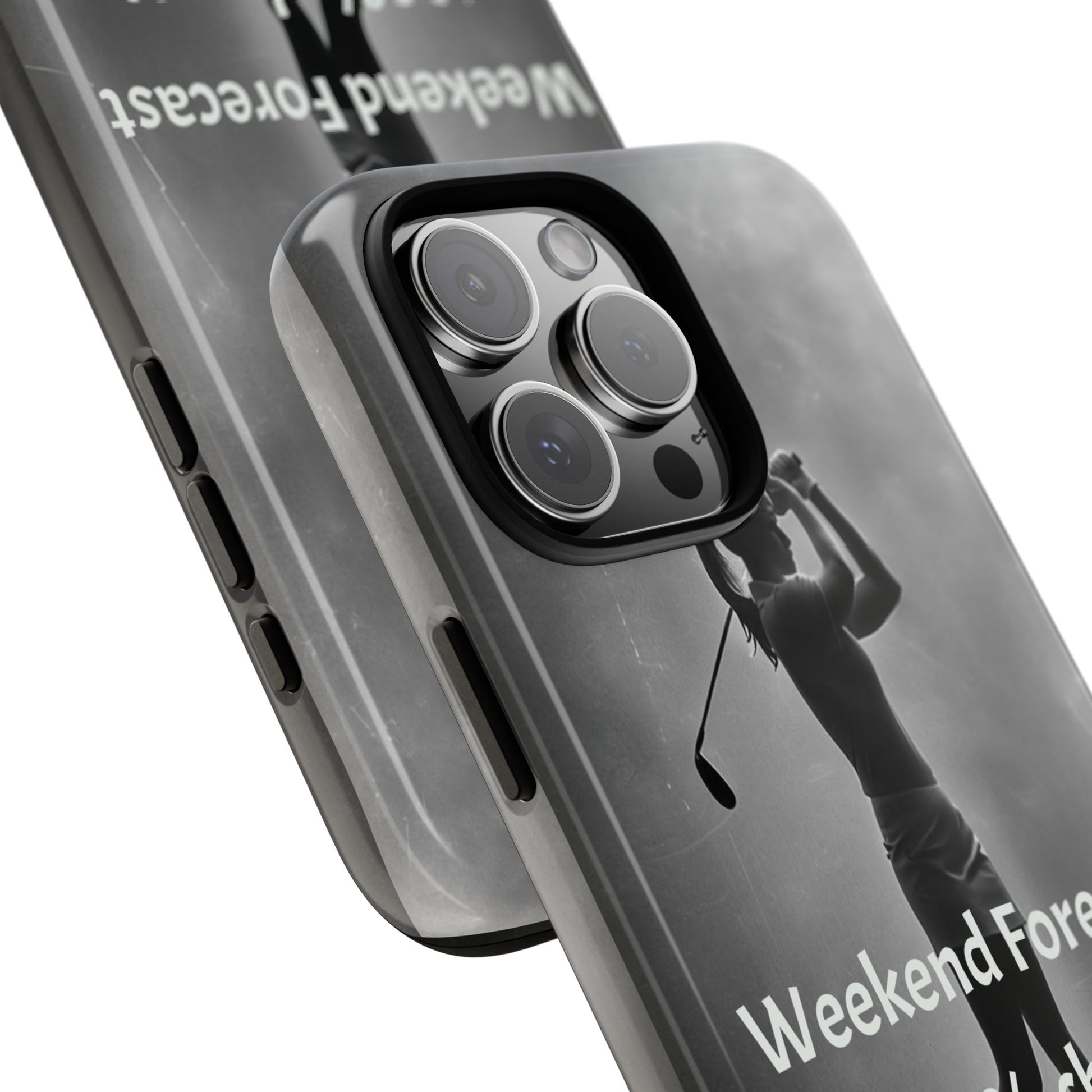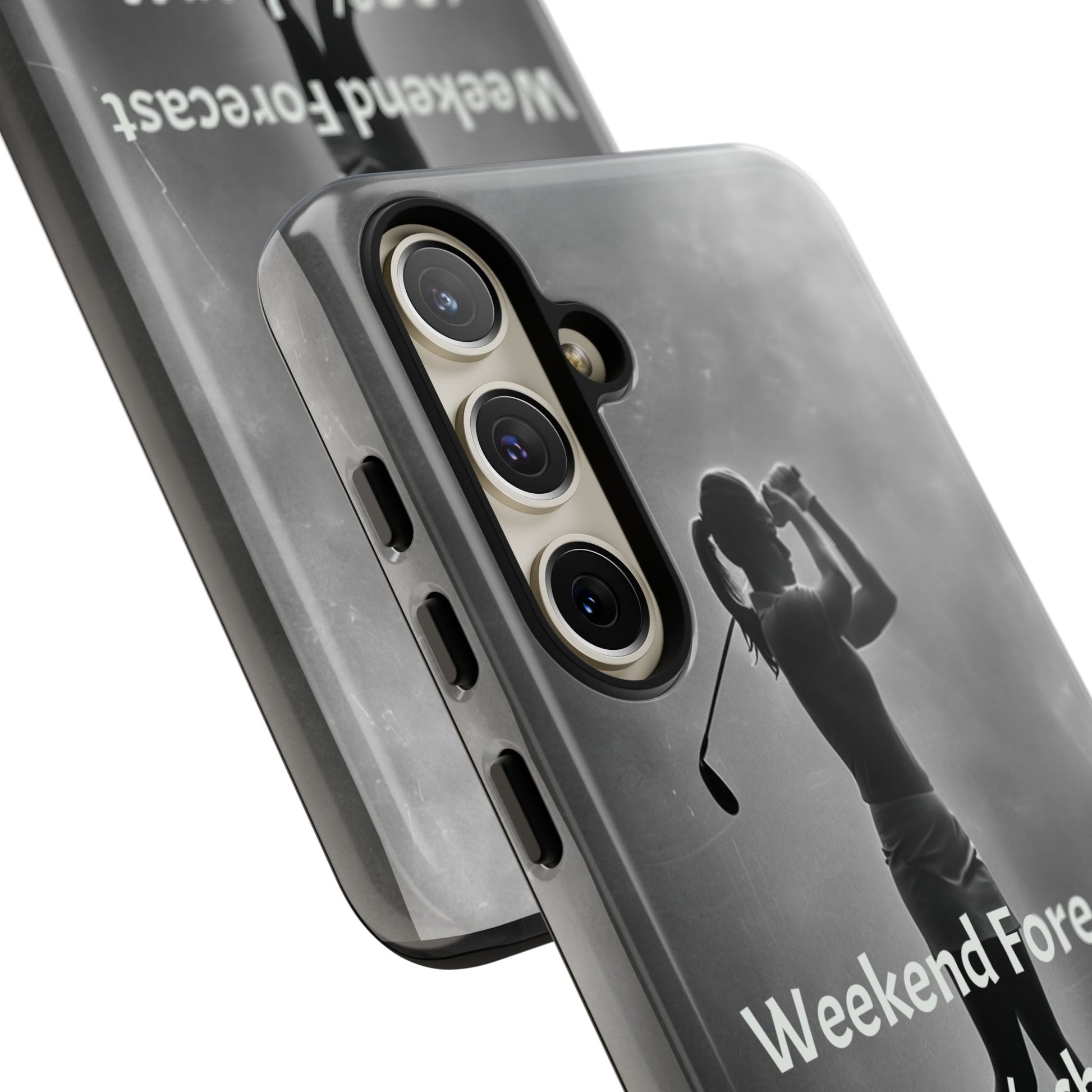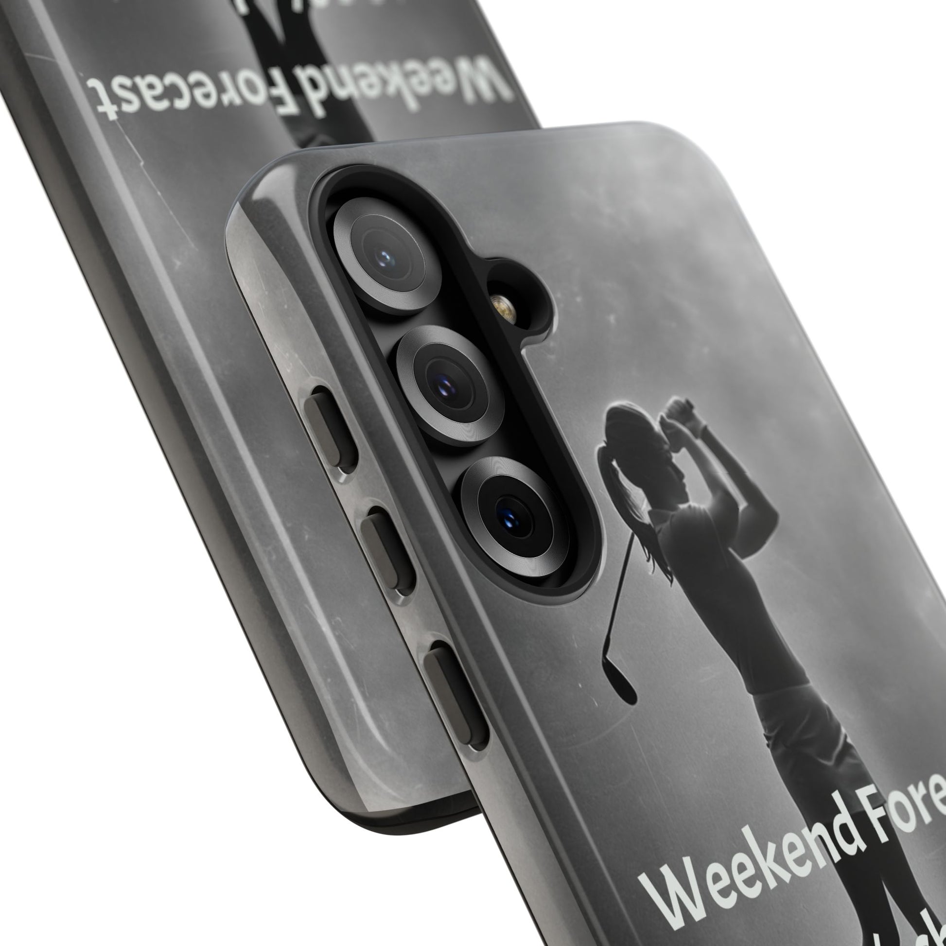 Introducing our premium Tough Cases designed for the passionate golfer! This durable phone case offers not only protection but a stylish flair that speaks to your love for the game. With a design that humorously highlights the weekend forecast for golf, it brings cheerful vibes and personality to your everyday carry. Perfect for golf enthusiasts, these cases make a fantastic gift for birthdays, Father's Day, or any occasion that celebrates friendship and fun on the golf course. Whether you’re out hitting the greens or just sharing a laugh with friends, this case fits seamlessly into your lifestyle.