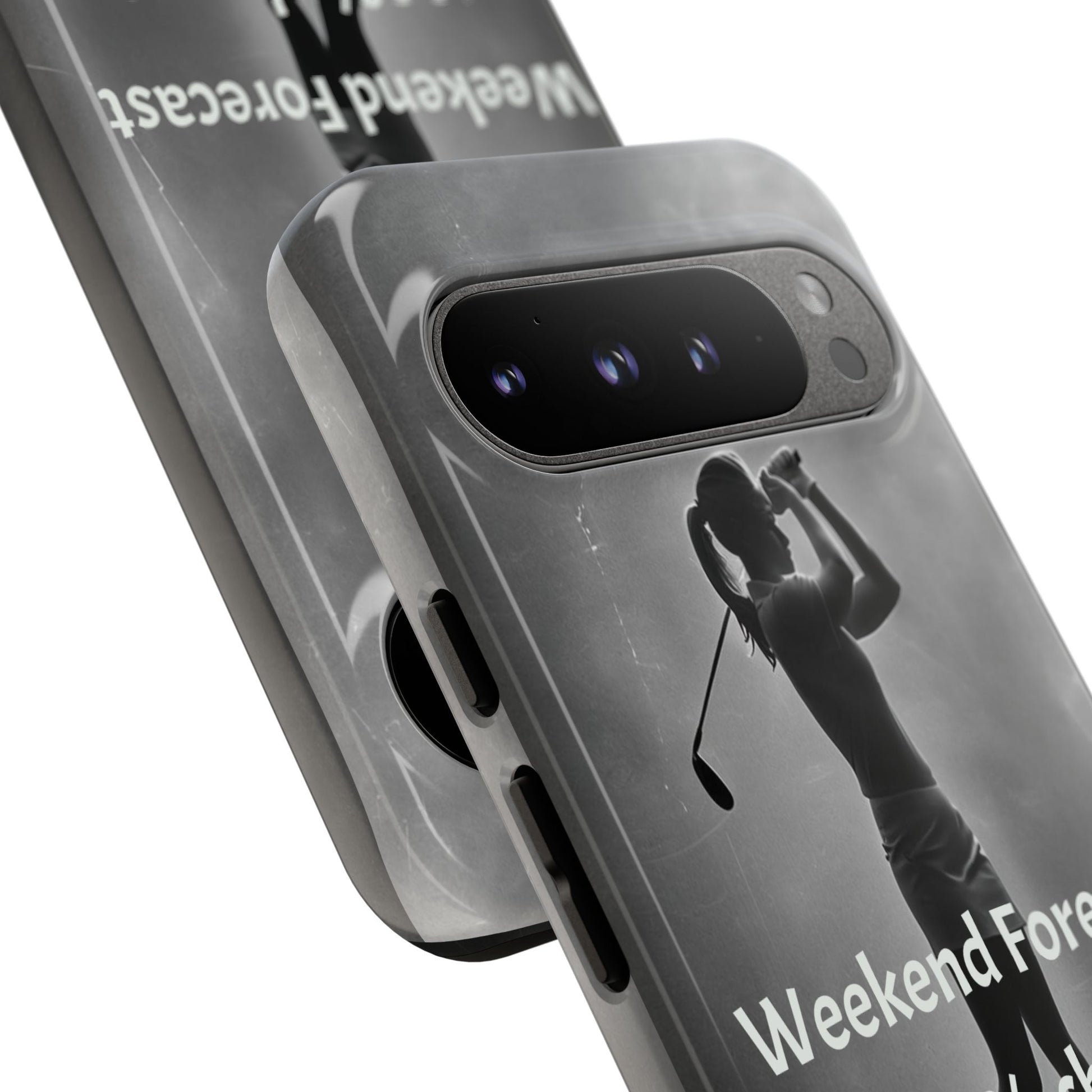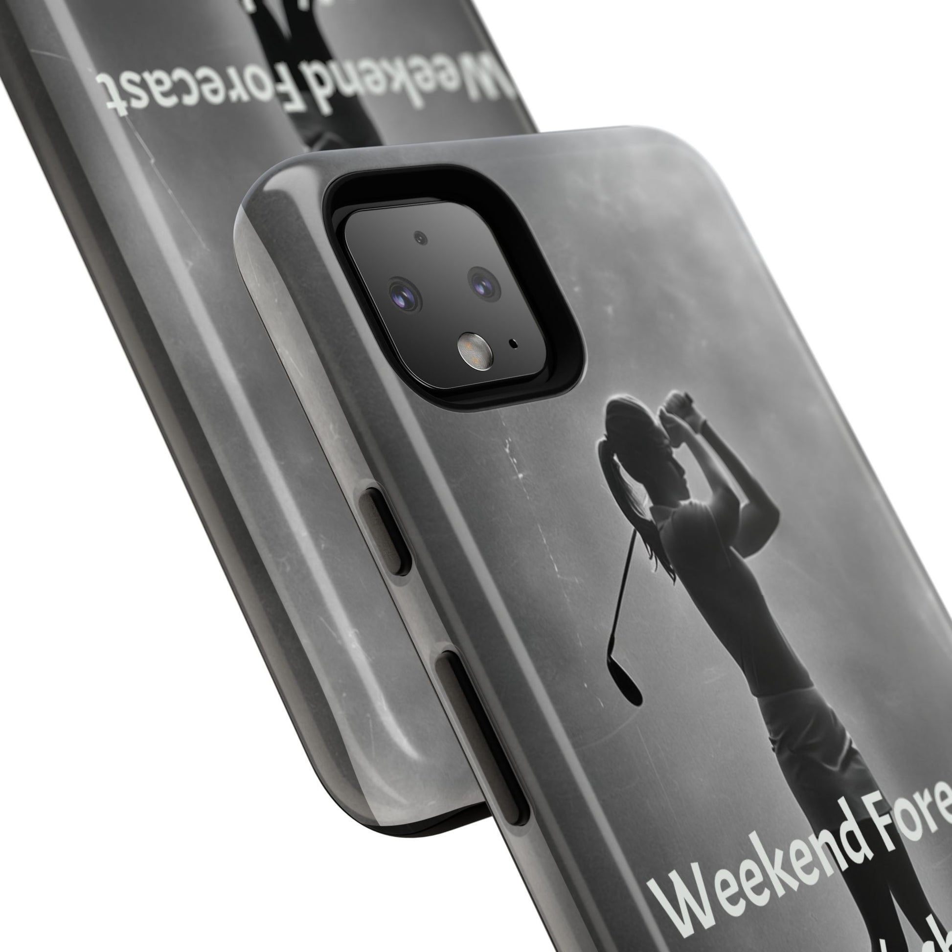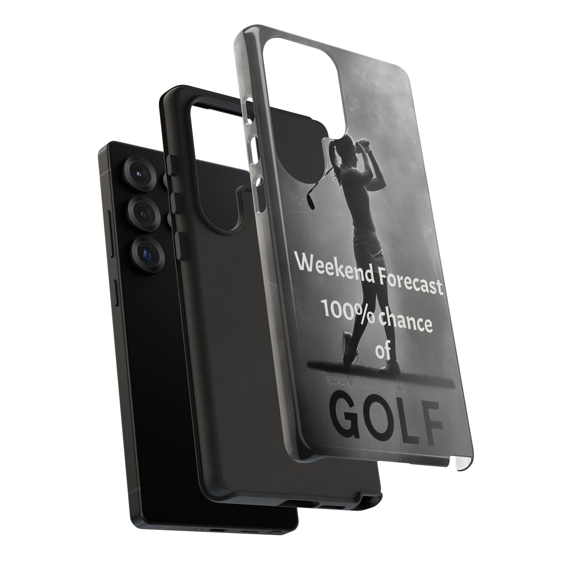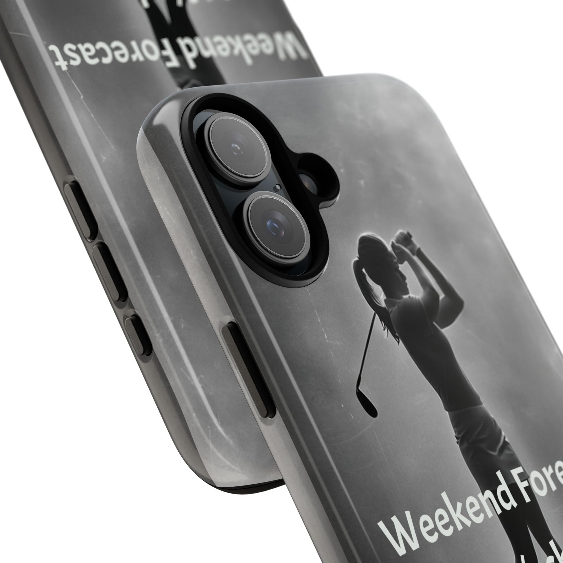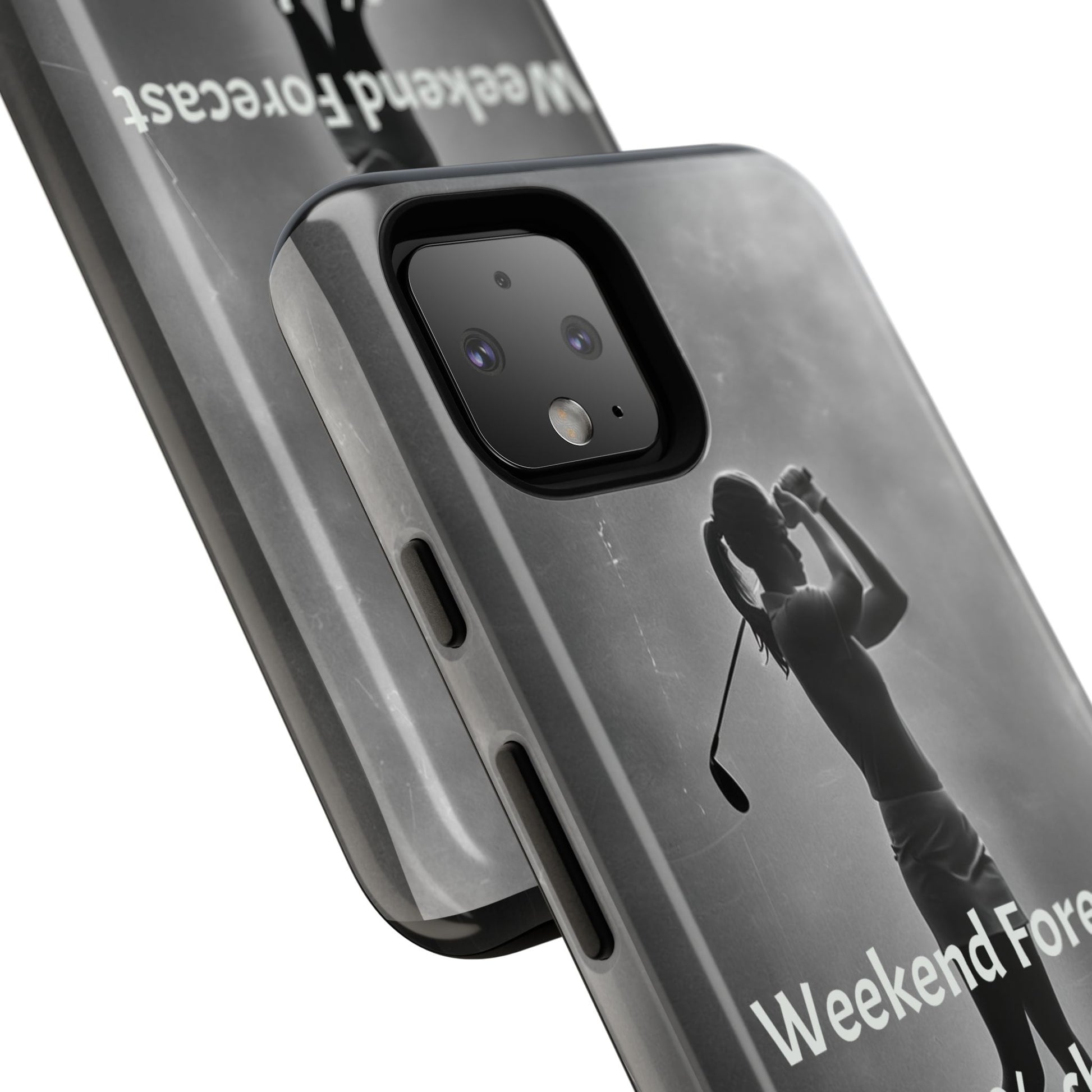 Introducing our premium Tough Cases designed for the passionate golfer! This durable phone case offers not only protection but a stylish flair that speaks to your love for the game. With a design that humorously highlights the weekend forecast for golf, it brings cheerful vibes and personality to your everyday carry. Perfect for golf enthusiasts, these cases make a fantastic gift for birthdays, Father's Day, or any occasion that celebrates friendship and fun on the golf course. Whether you’re out hitting the greens or just sharing a laugh with friends, this case fits seamlessly into your lifestyle.