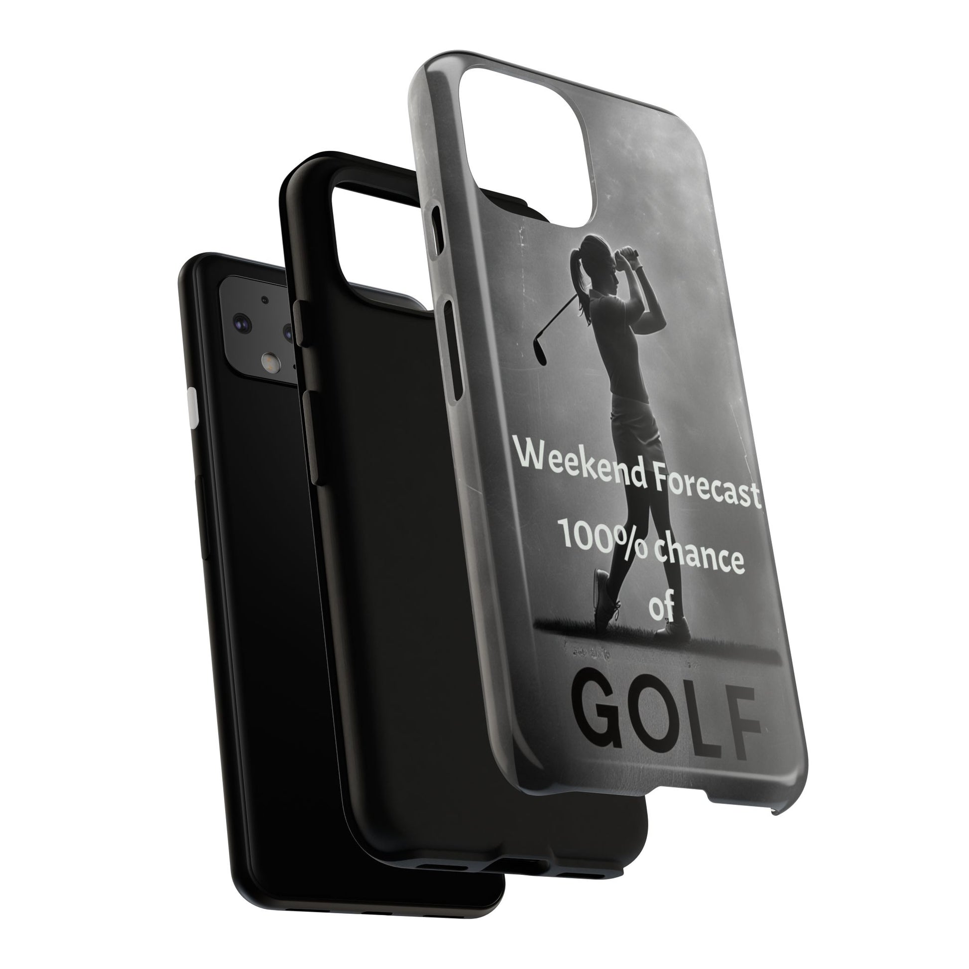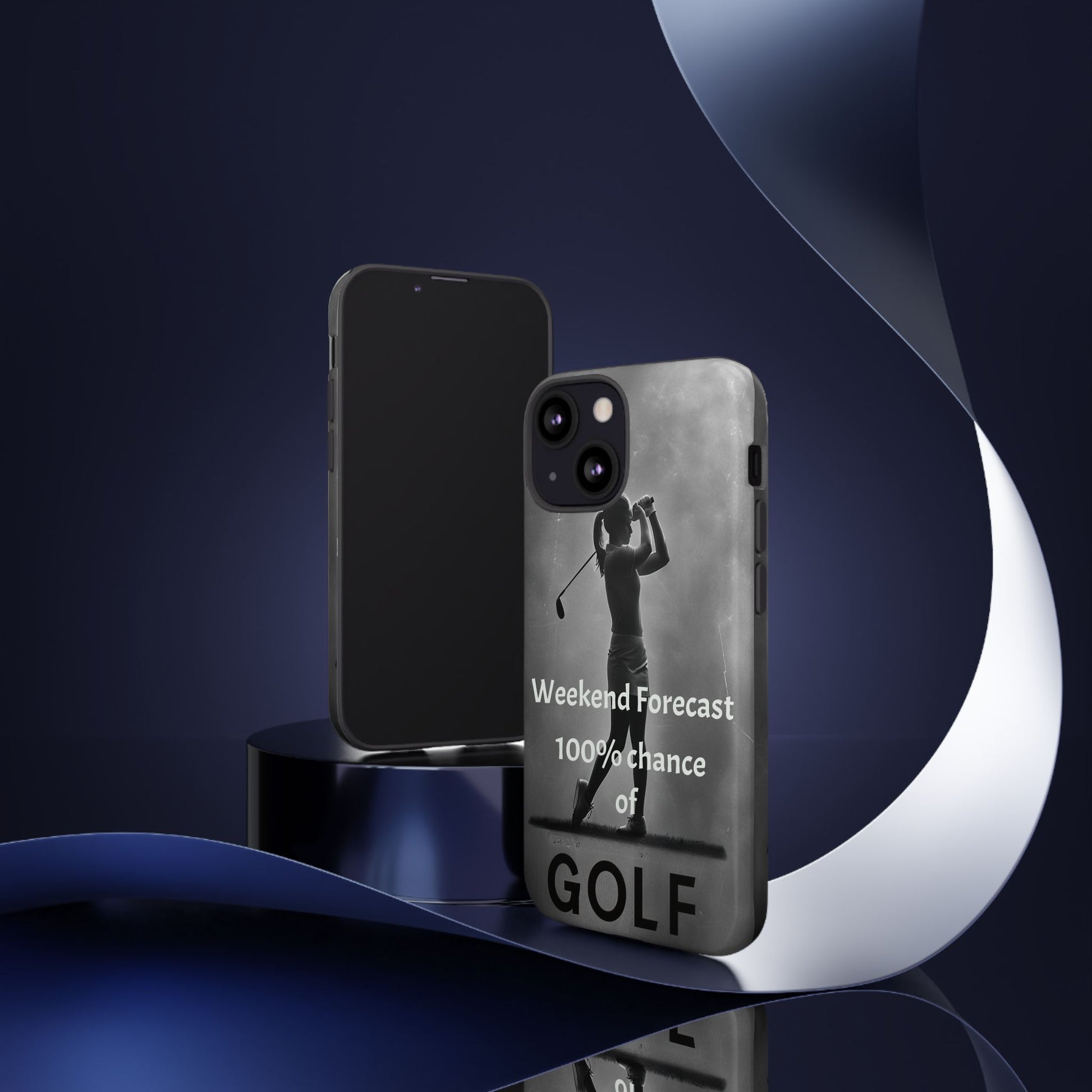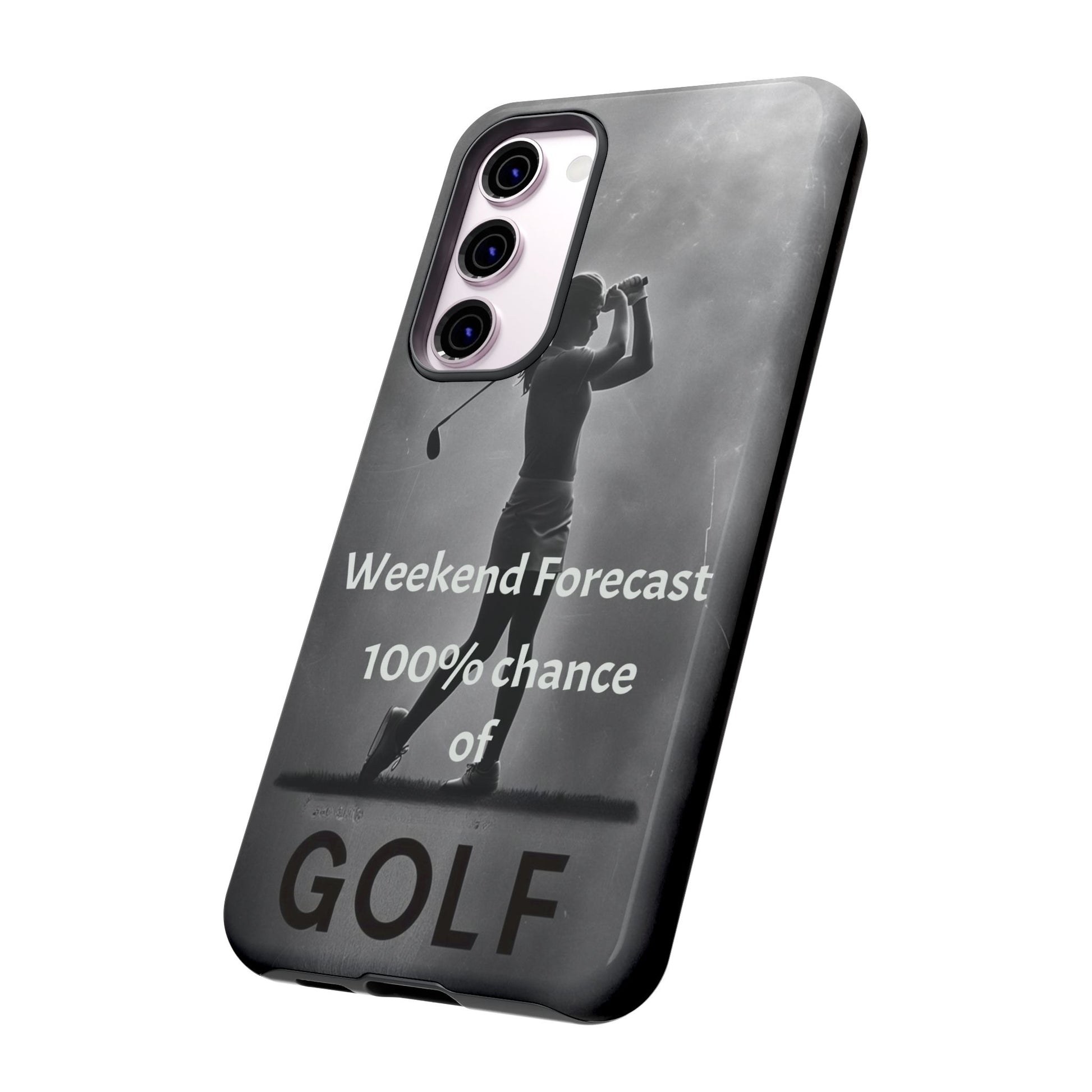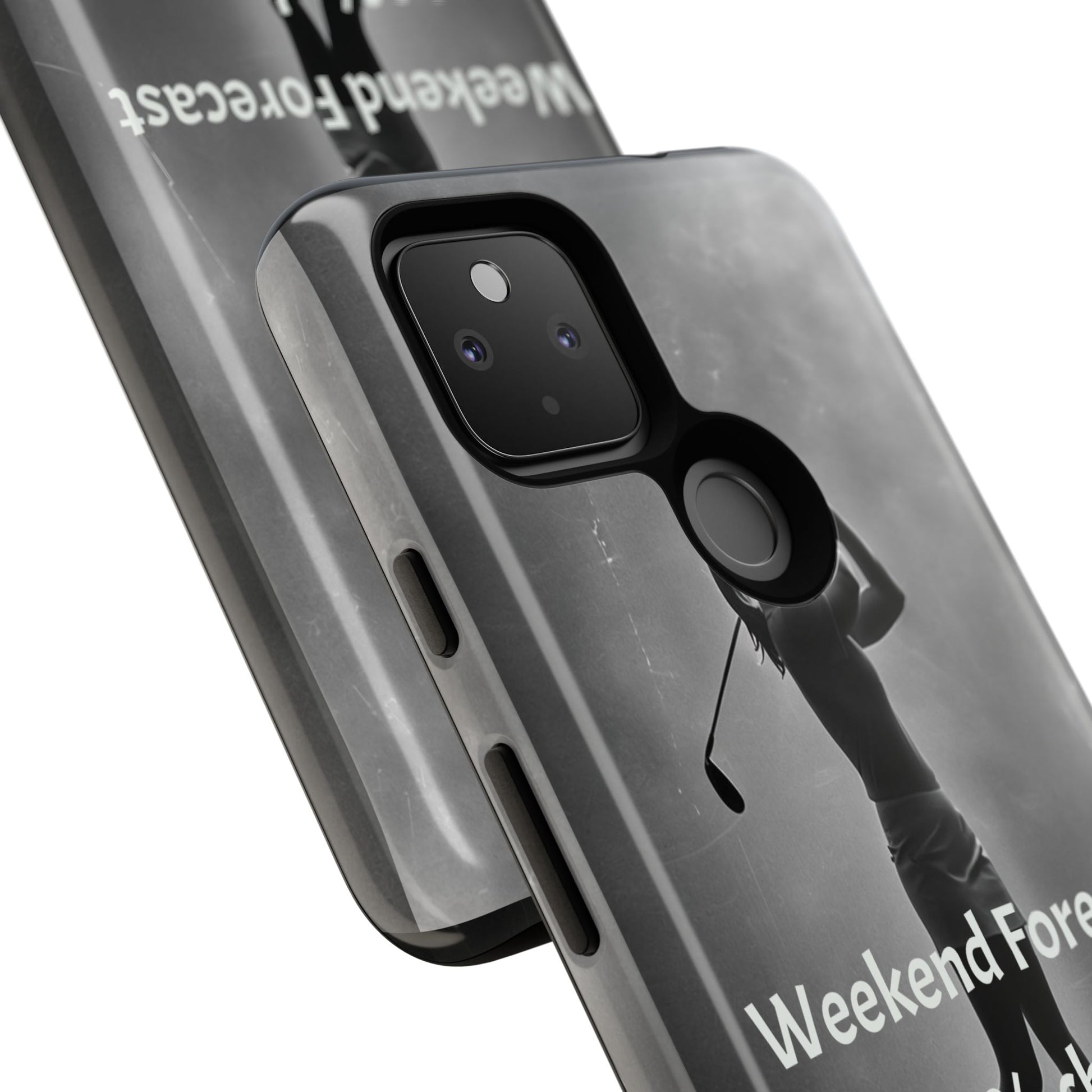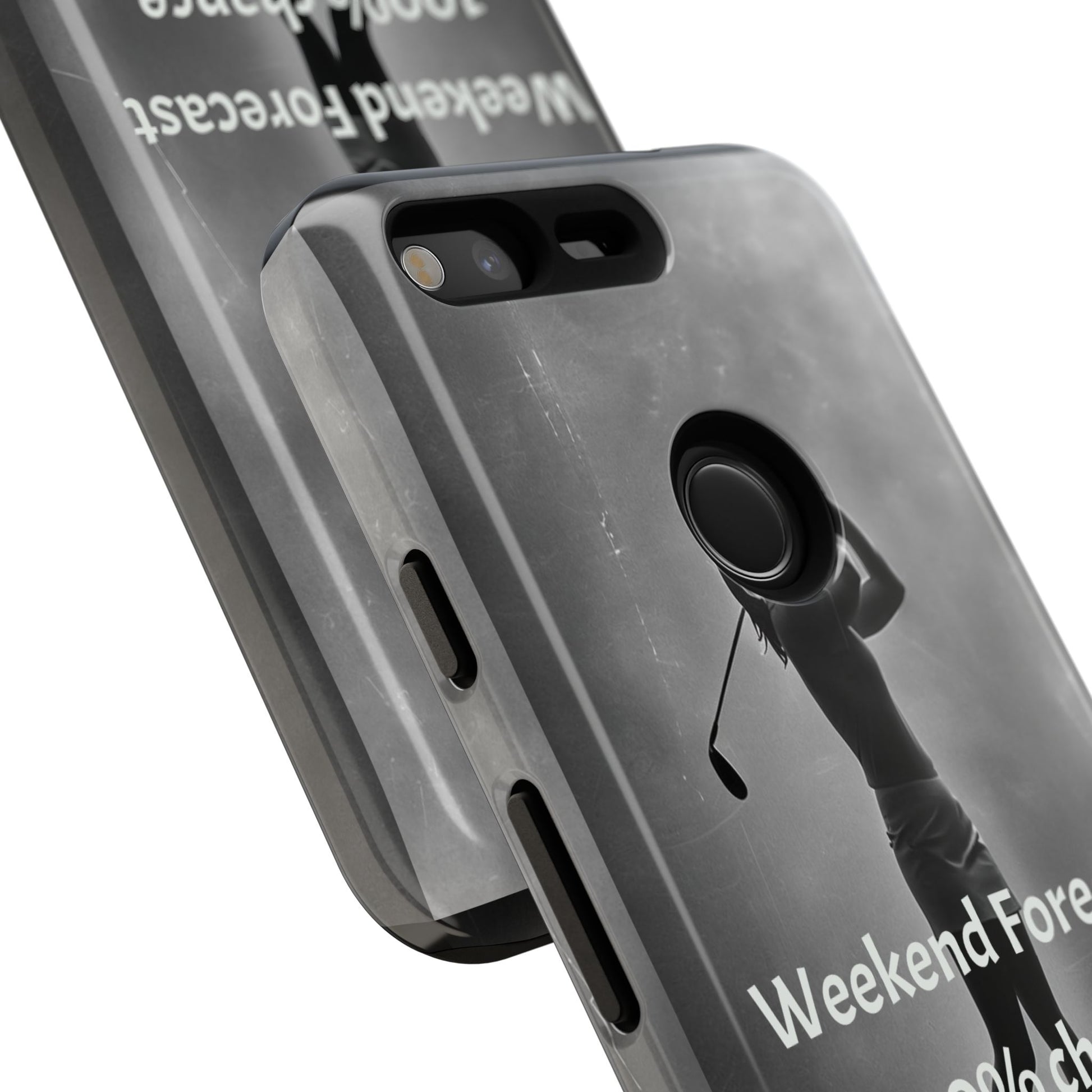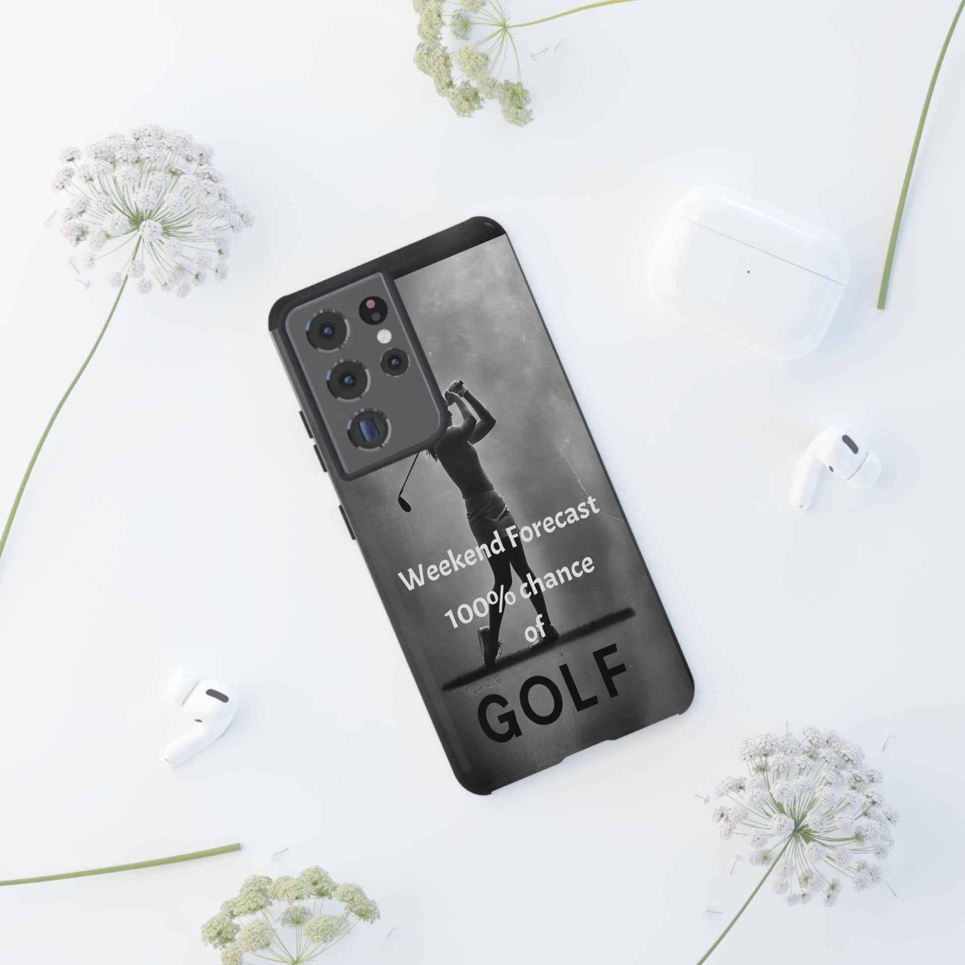 Introducing our premium Tough Cases designed for the passionate golfer! This durable phone case offers not only protection but a stylish flair that speaks to your love for the game. With a design that humorously highlights the weekend forecast for golf, it brings cheerful vibes and personality to your everyday carry. Perfect for golf enthusiasts, these cases make a fantastic gift for birthdays, Father's Day, or any occasion that celebrates friendship and fun on the golf course. Whether you’re out hitting the greens or just sharing a laugh with friends, this case fits seamlessly into your lifestyle.