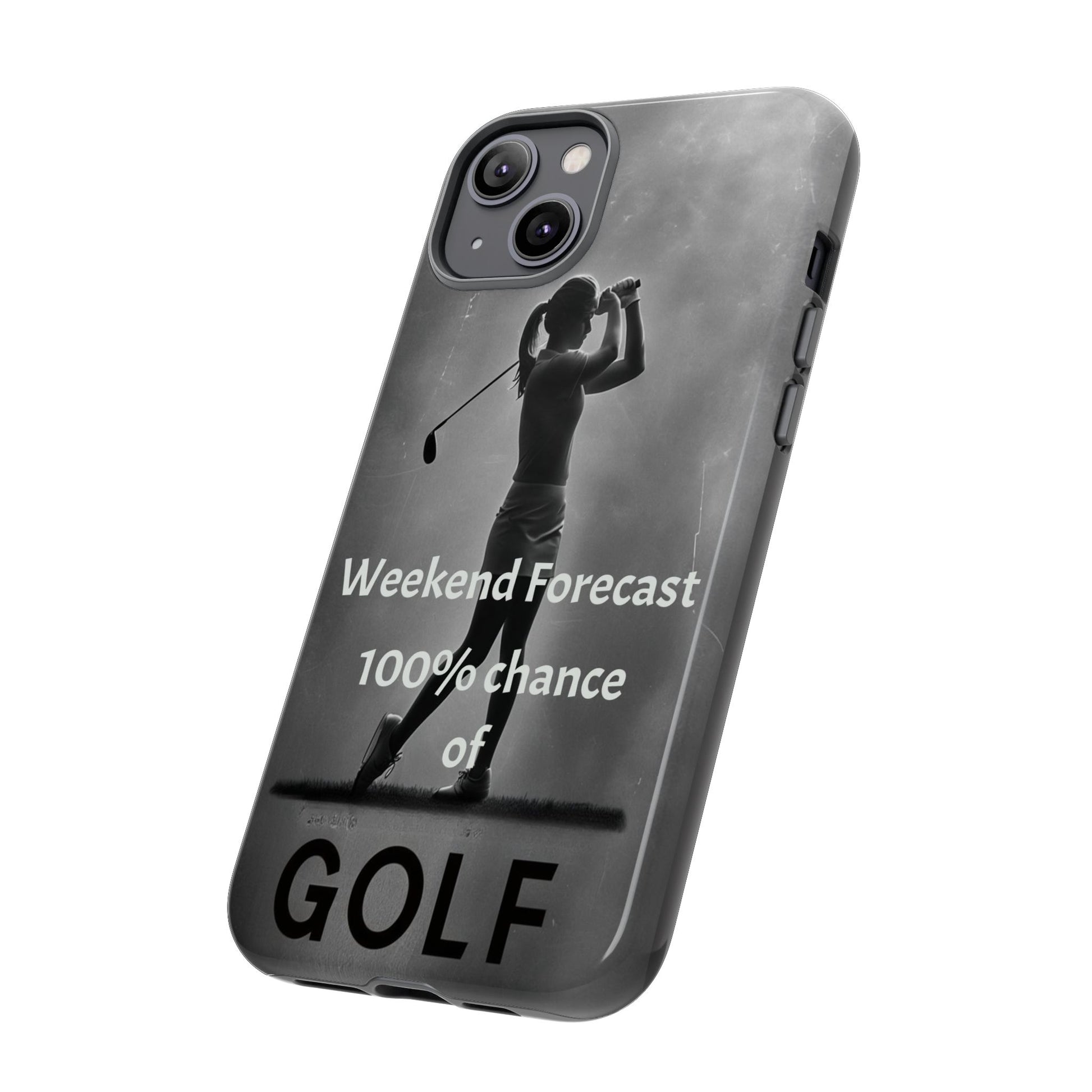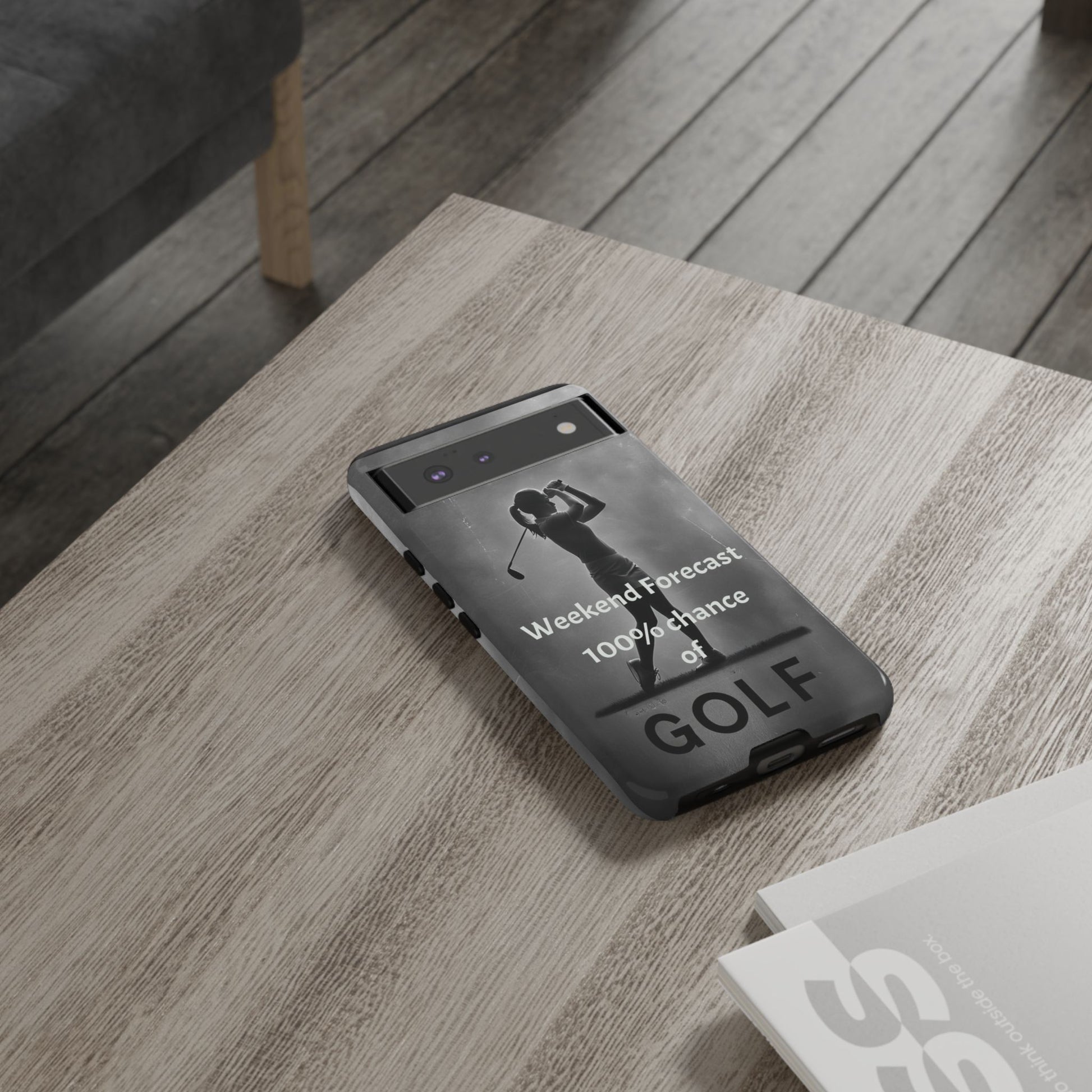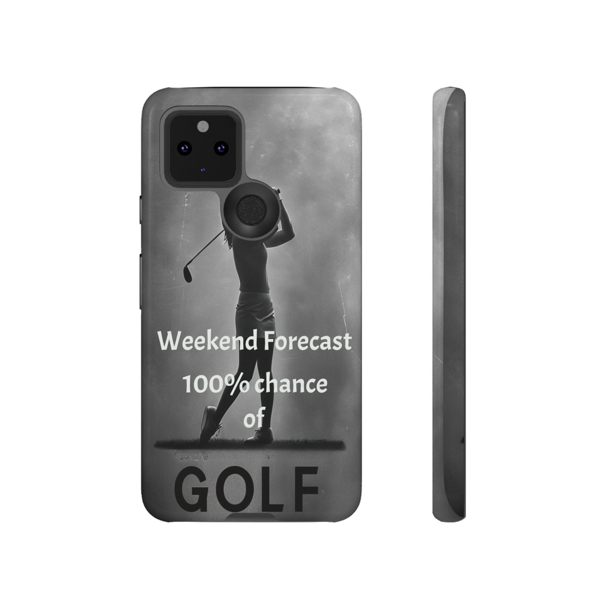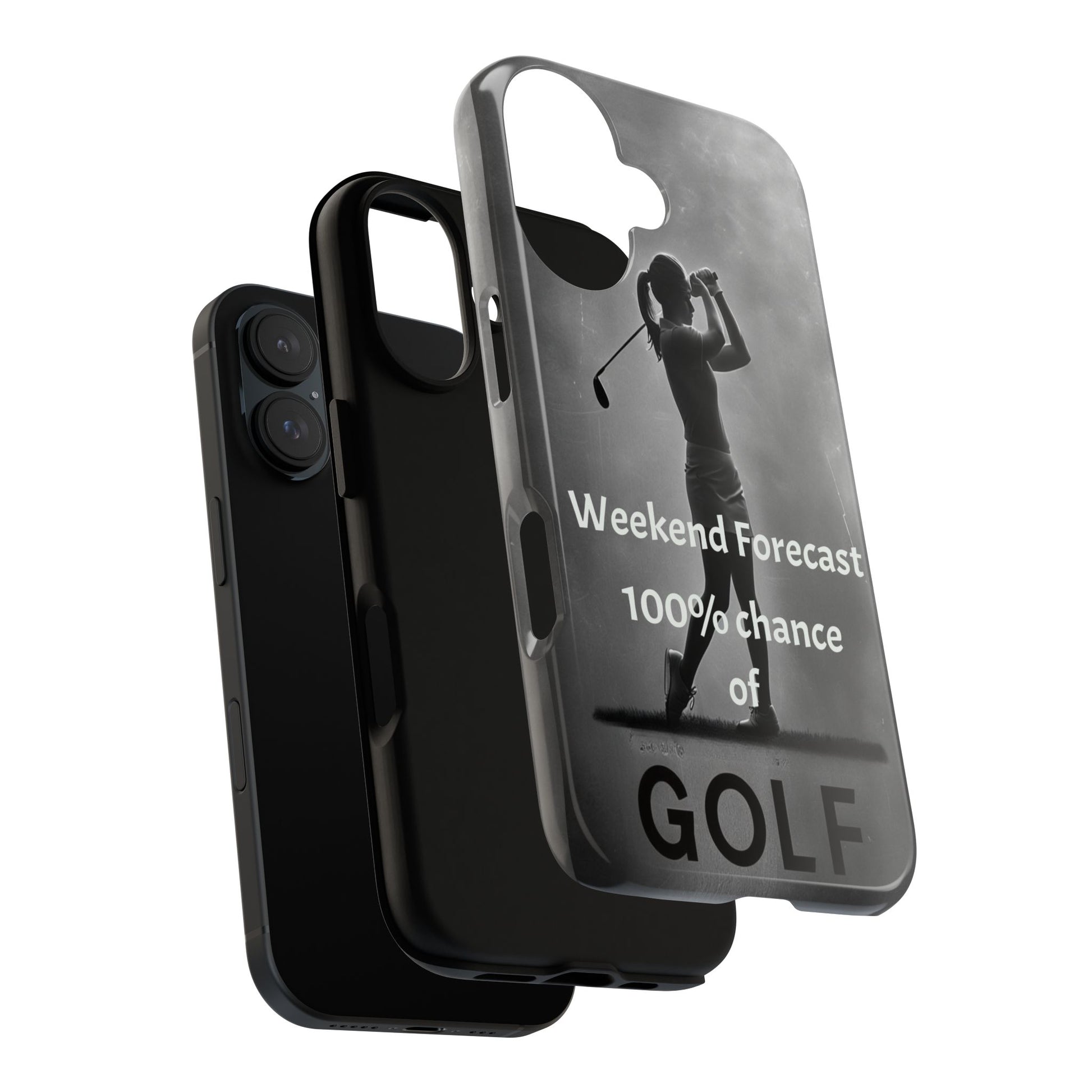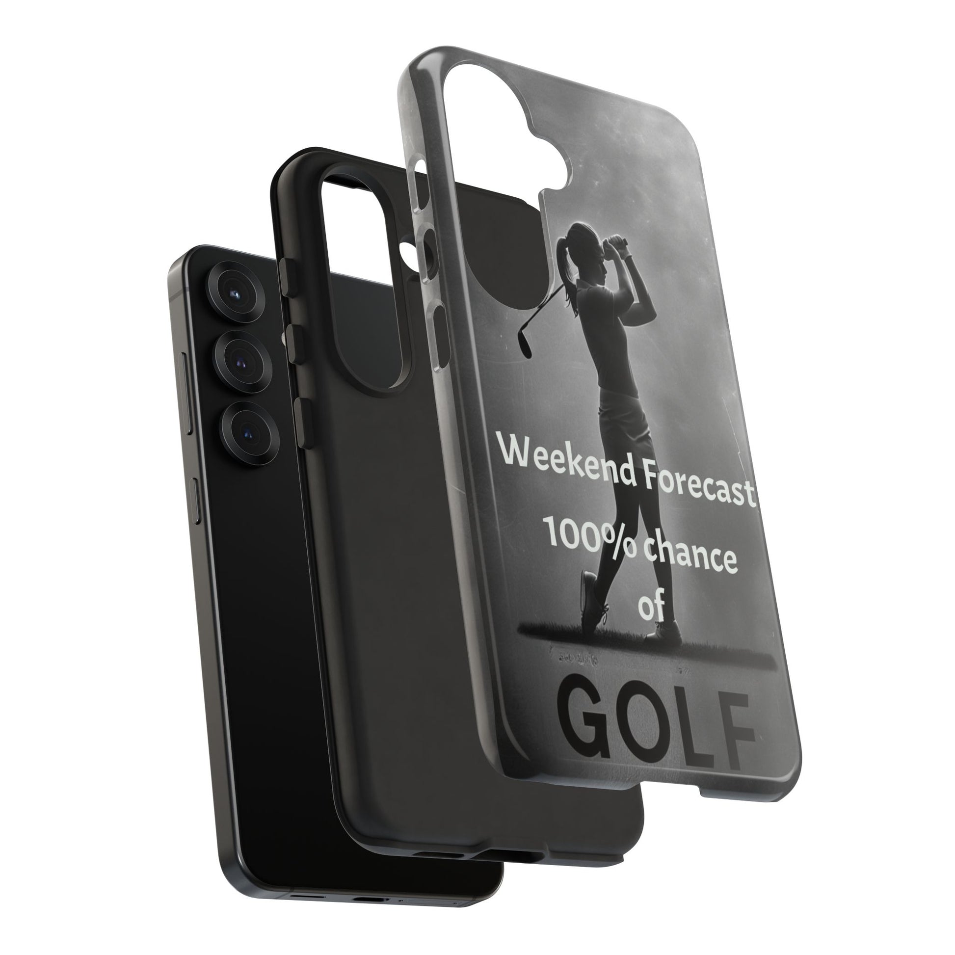 Introducing our premium Tough Cases designed for the passionate golfer! This durable phone case offers not only protection but a stylish flair that speaks to your love for the game. With a design that humorously highlights the weekend forecast for golf, it brings cheerful vibes and personality to your everyday carry. Perfect for golf enthusiasts, these cases make a fantastic gift for birthdays, Father's Day, or any occasion that celebrates friendship and fun on the golf course. Whether you’re out hitting the greens or just sharing a laugh with friends, this case fits seamlessly into your lifestyle.