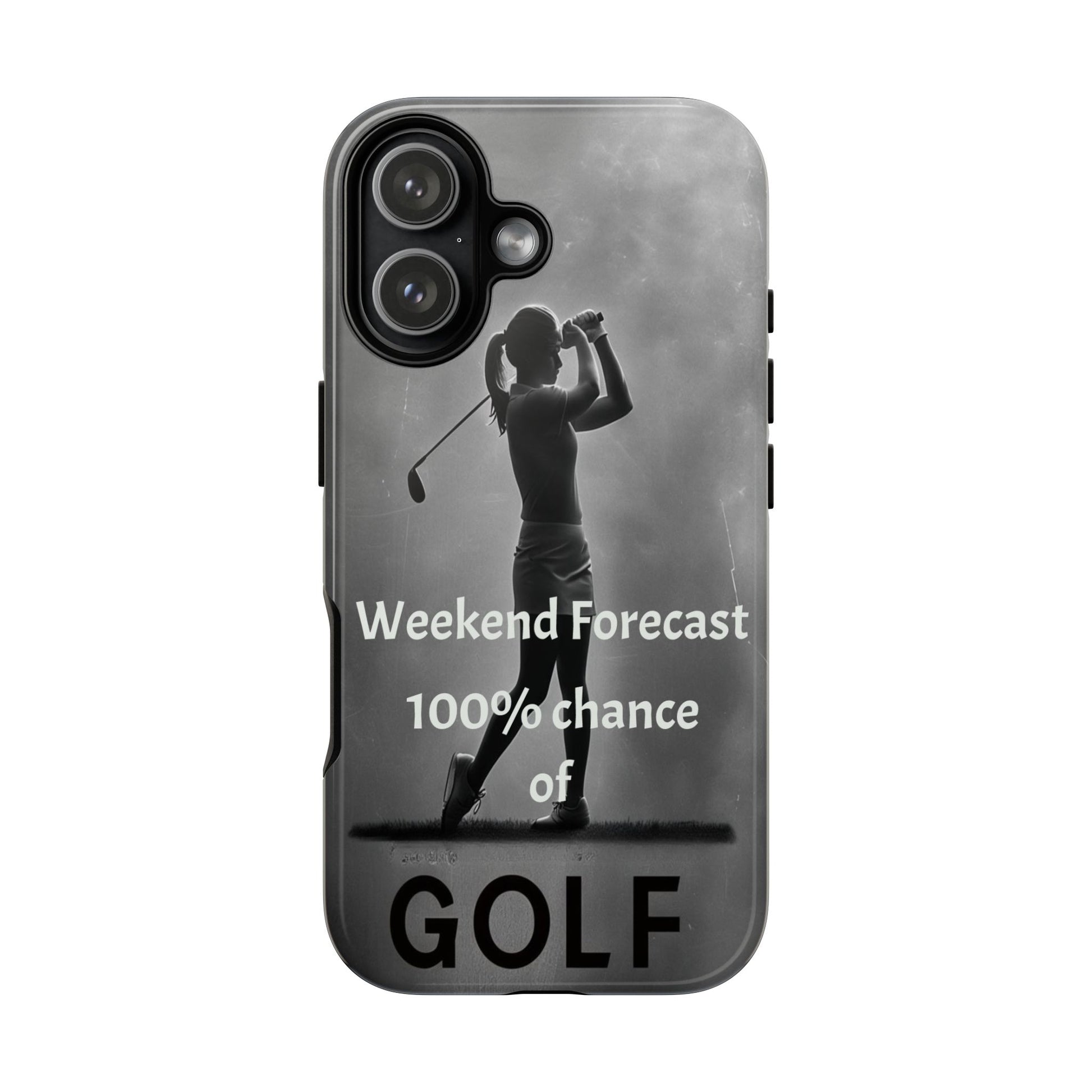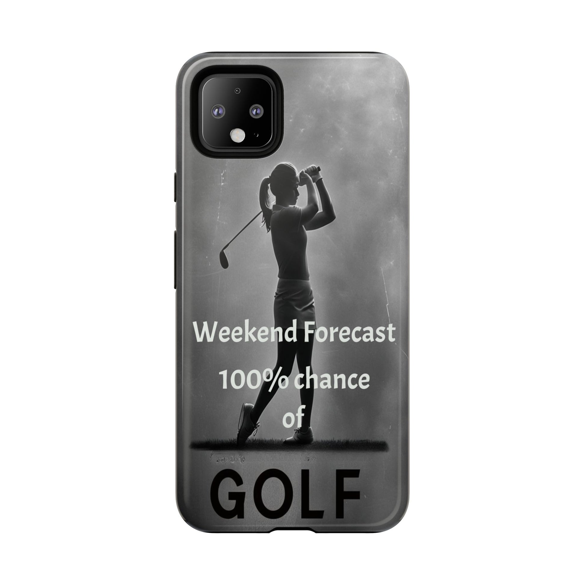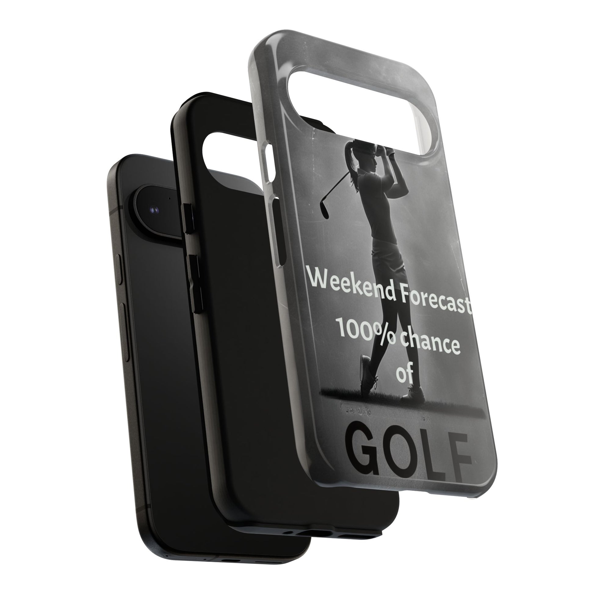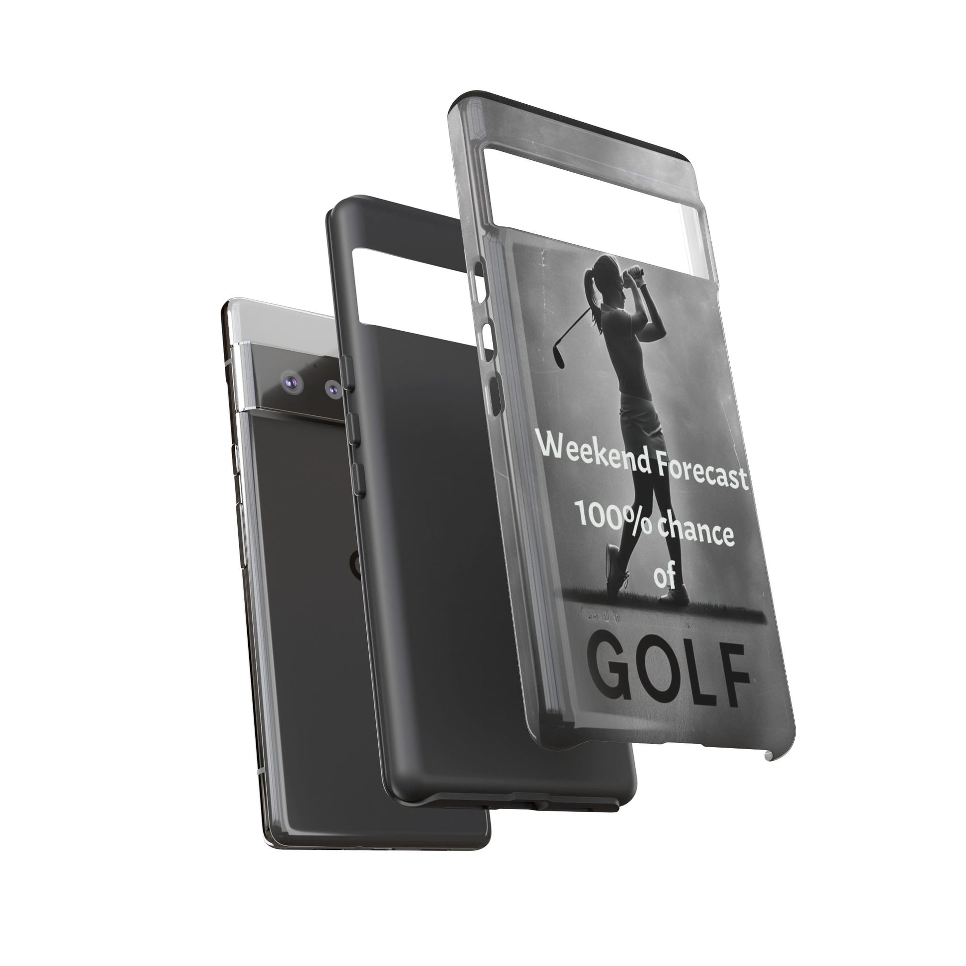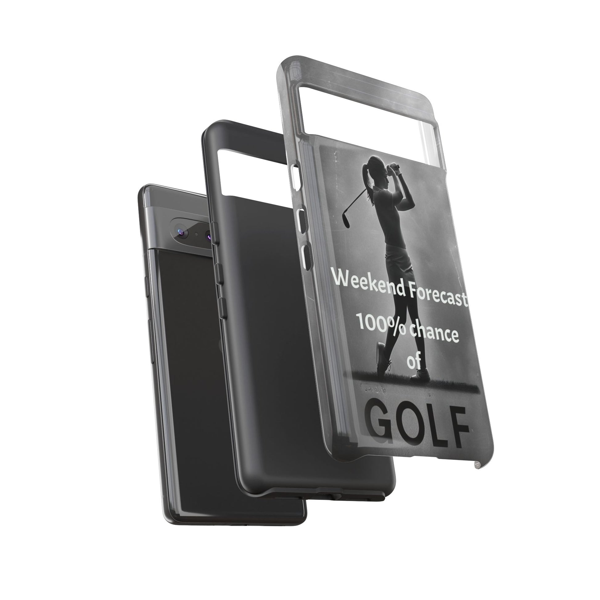Introducing our premium Tough Cases designed for the passionate golfer! This durable phone case offers not only protection but a stylish flair that speaks to your love for the game. With a design that humorously highlights the weekend forecast for golf, it brings cheerful vibes and personality to your everyday carry. Perfect for golf enthusiasts, these cases make a fantastic gift for birthdays, Father's Day, or any occasion that celebrates friendship and fun on the golf course. Whether you’re out hitting the greens or just sharing a laugh with friends, this case fits seamlessly into your lifestyle.