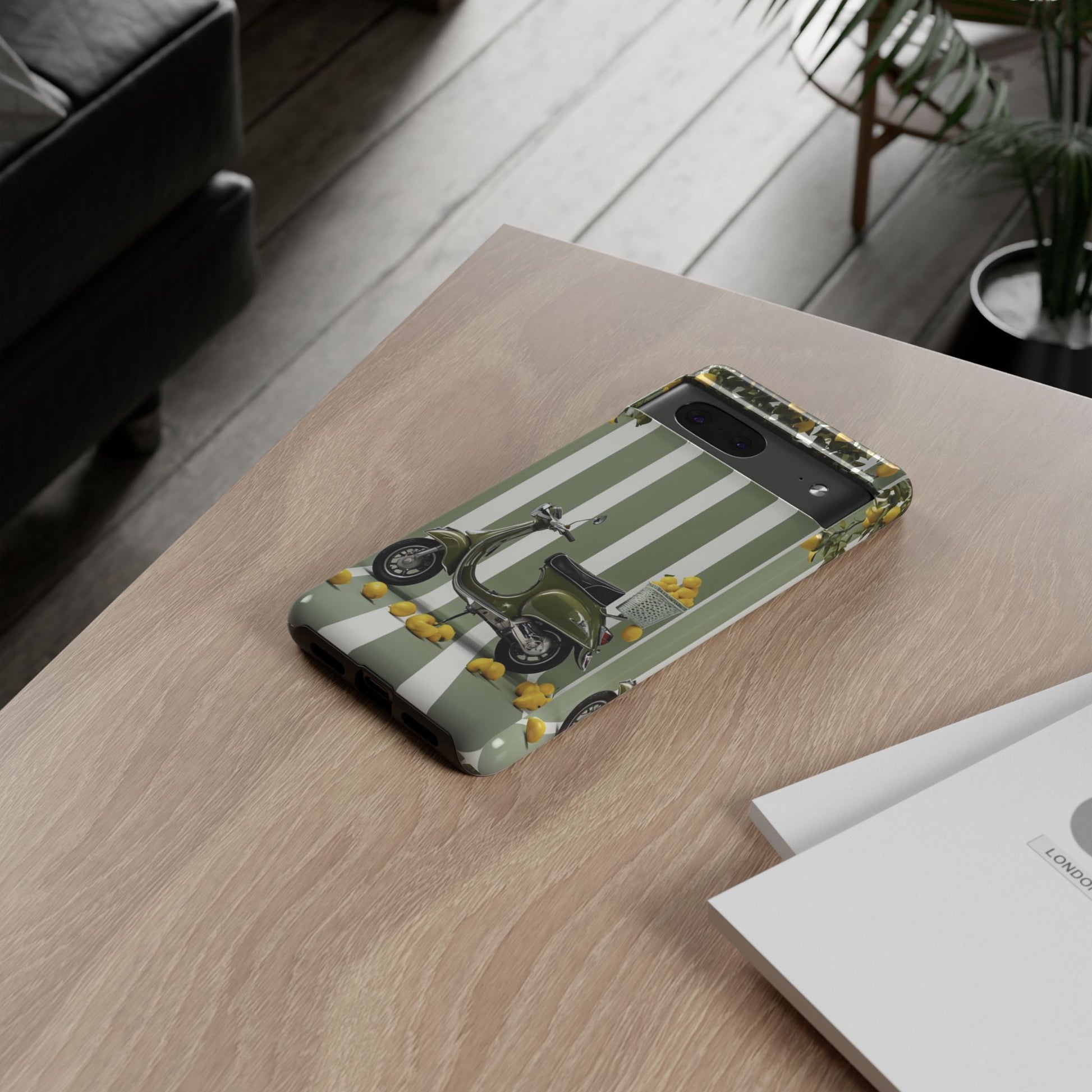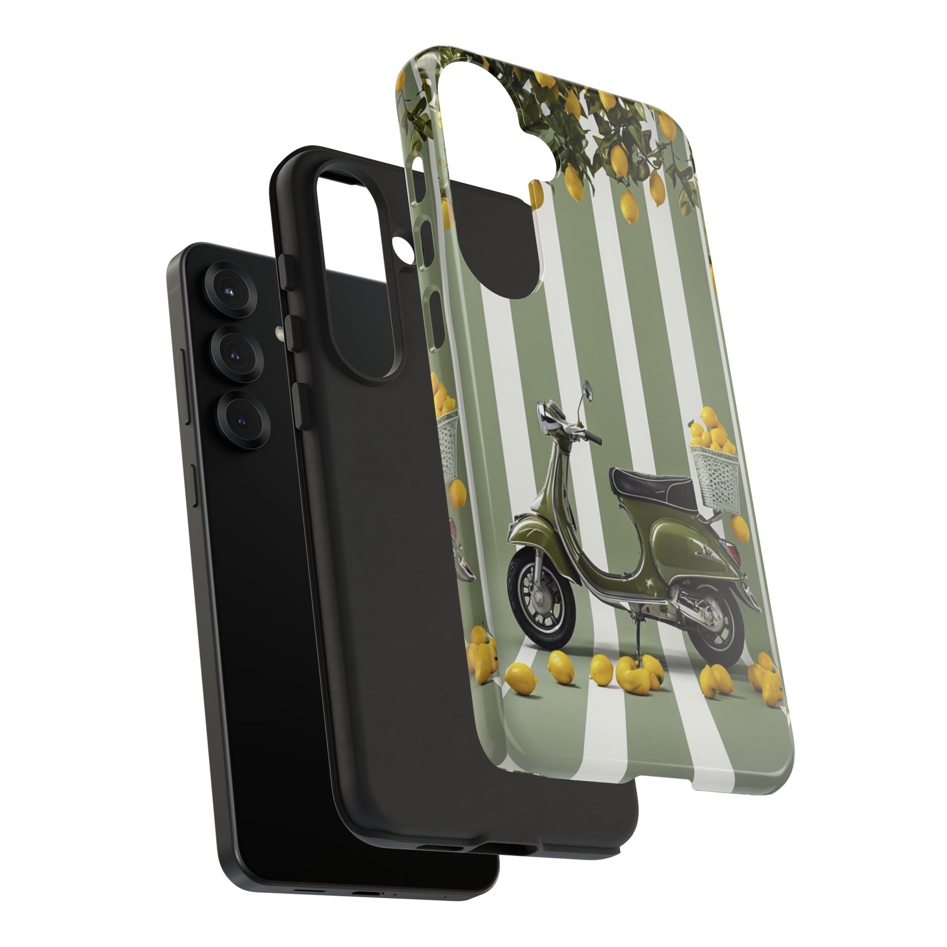 Enhance your style with this vibrant phone case, a perfect blend of art and protection. Featuring a cheerful design of a scooter surrounded by lemons, this durable phone case adds a refreshing touch to your everyday tech. The lively colors and unique imagery evoke a sunny, carefree vibe, making it an ideal accessory for anyone who loves a splash of fun in their life. Perfect for individuals who appreciate creativity and want to express their personality through their gadgets. This product is suitable for everyday use, gifting, or celebrating special occasions like birthdays, holidays, or just because!